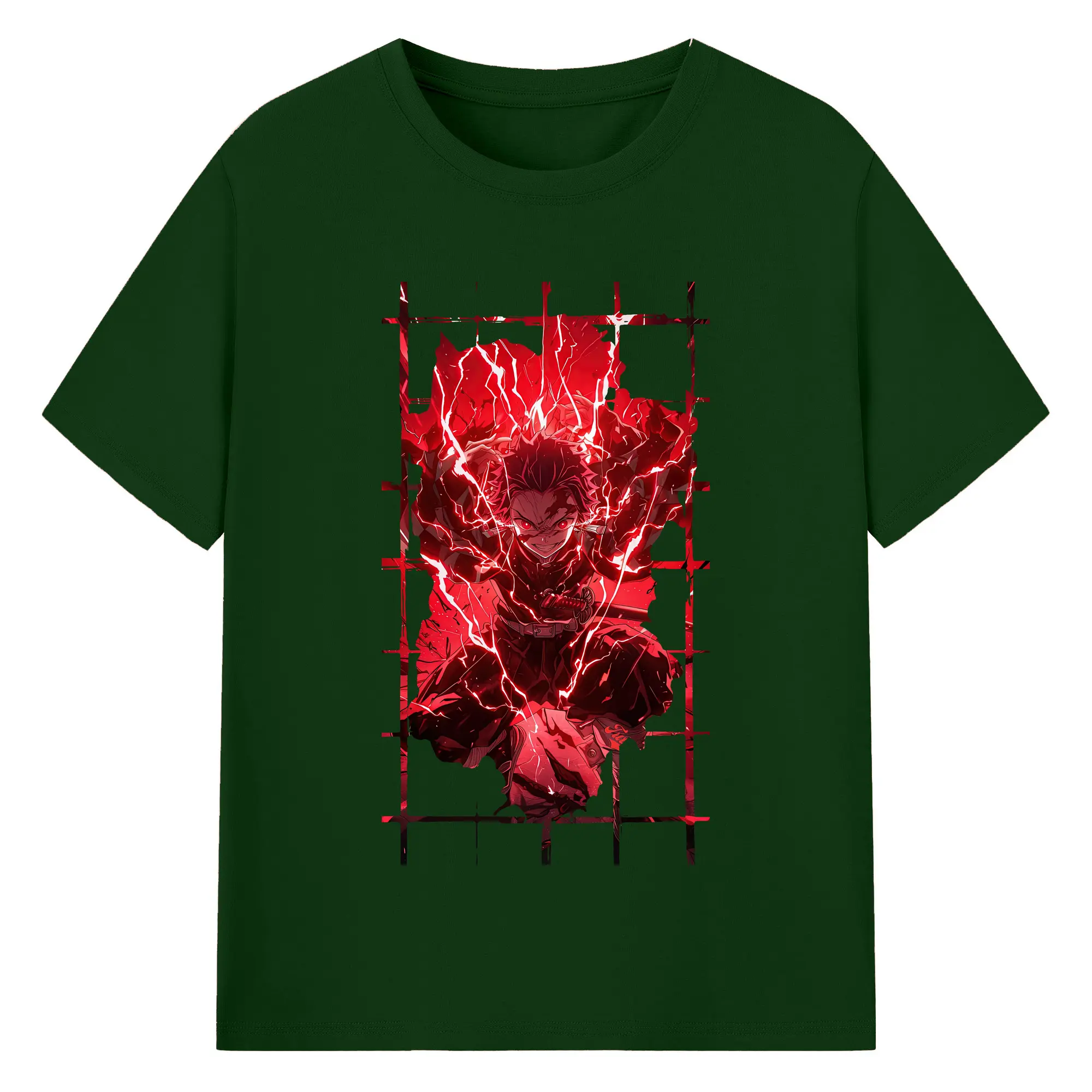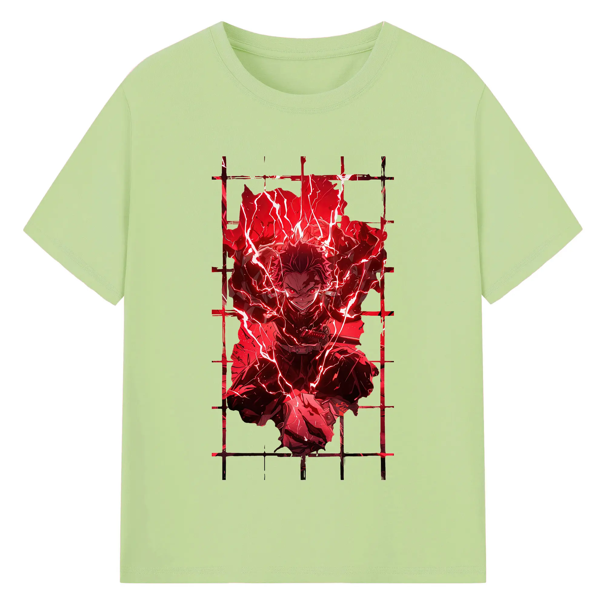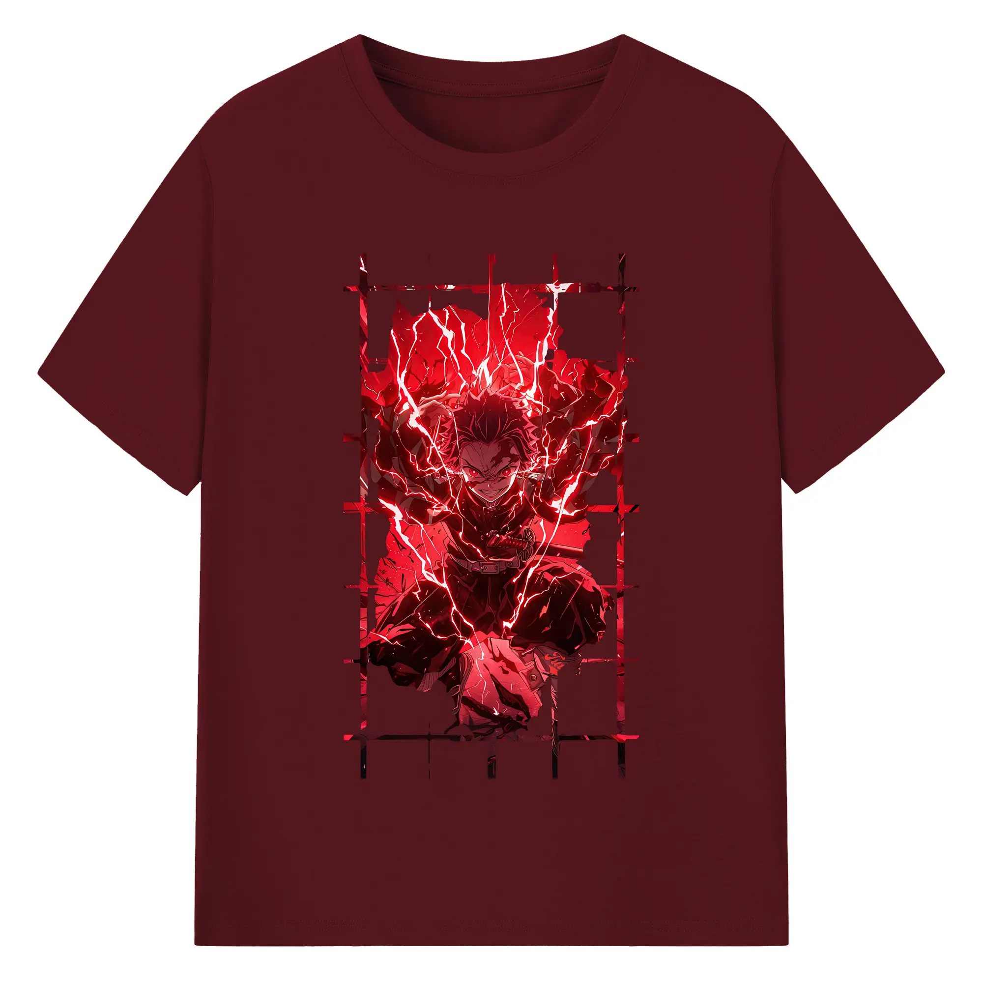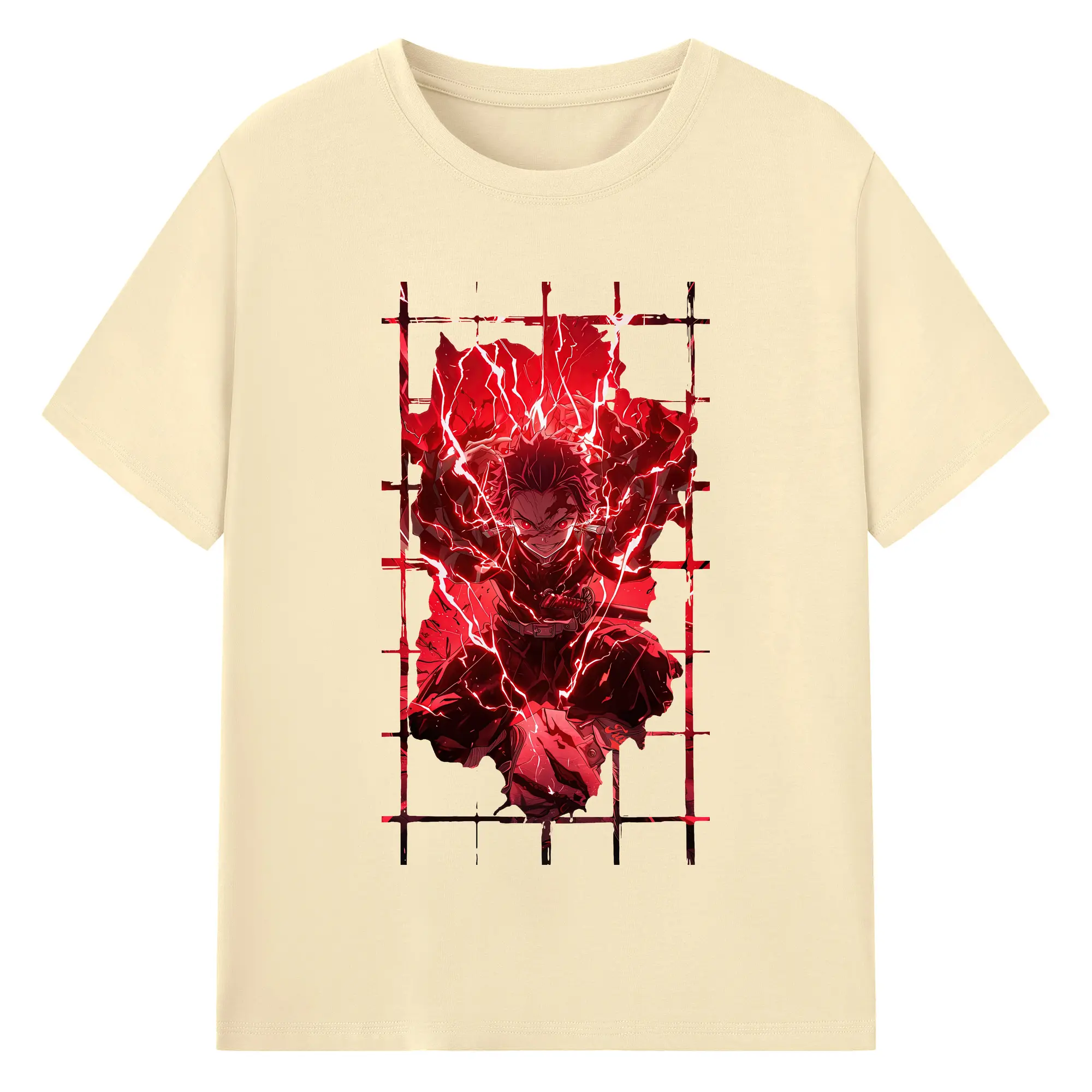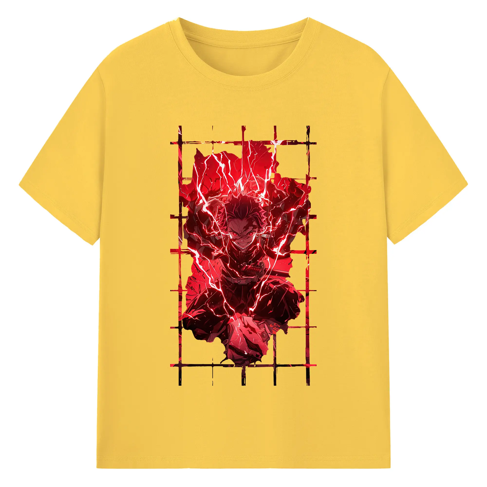 鬼滅の刃 グッズ,竈門 炭治郎 - 綿100% 半袖Tシャツ ・ バックプリント ・ 快適 通気性 ・ 日常使い 散歩 スポーツ用