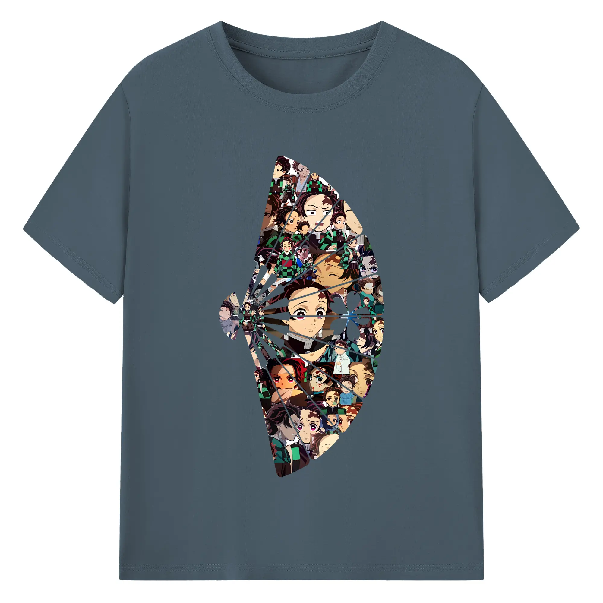 鬼滅の刃 グッズ,竈門 炭治郎 - 綿100% 半袖Tシャツ ・ バックプリント ・ 快適 通気性 ・ 日常使い 散歩 スポーツ用