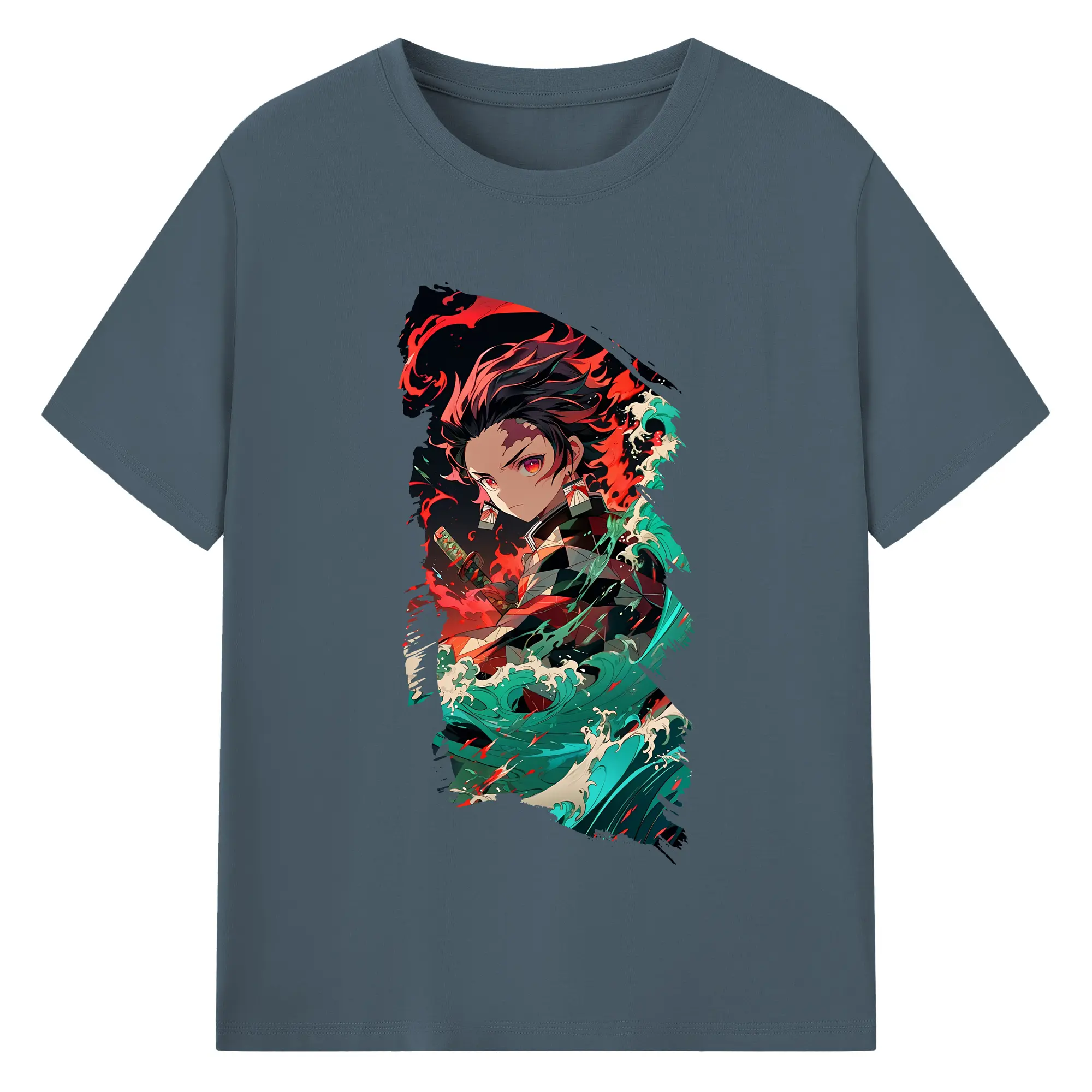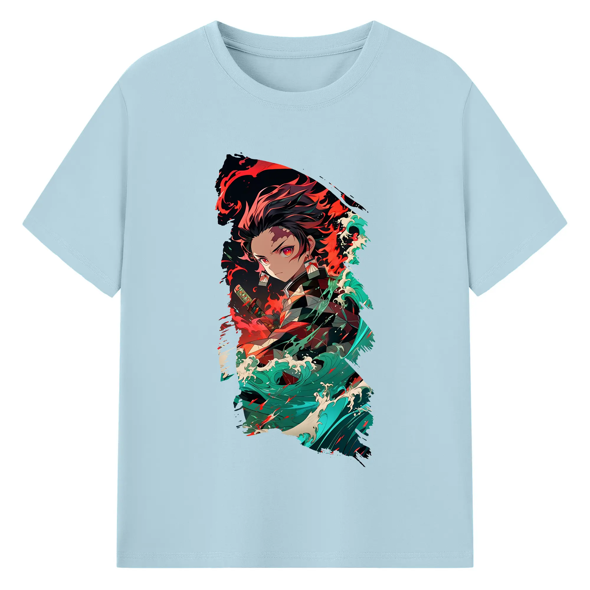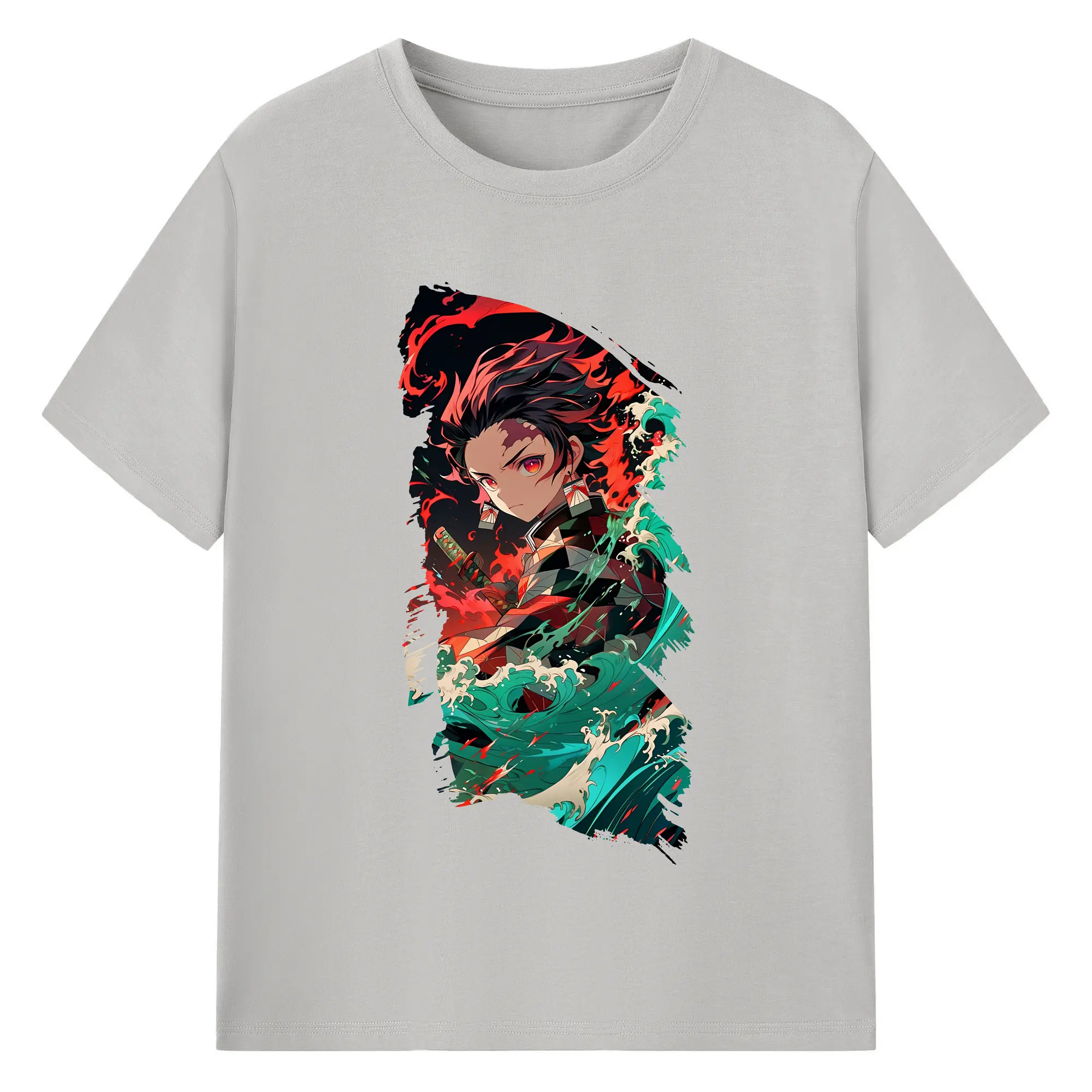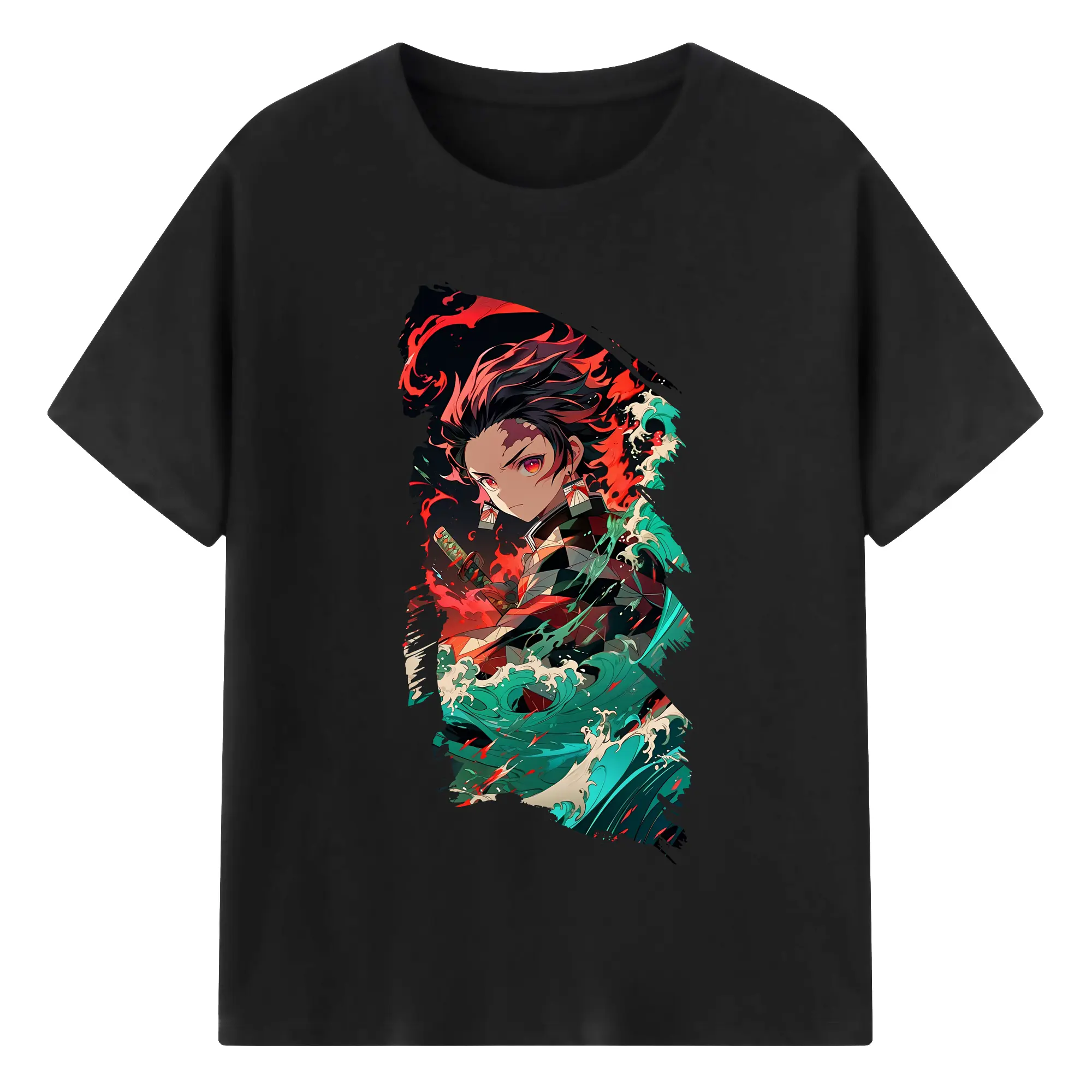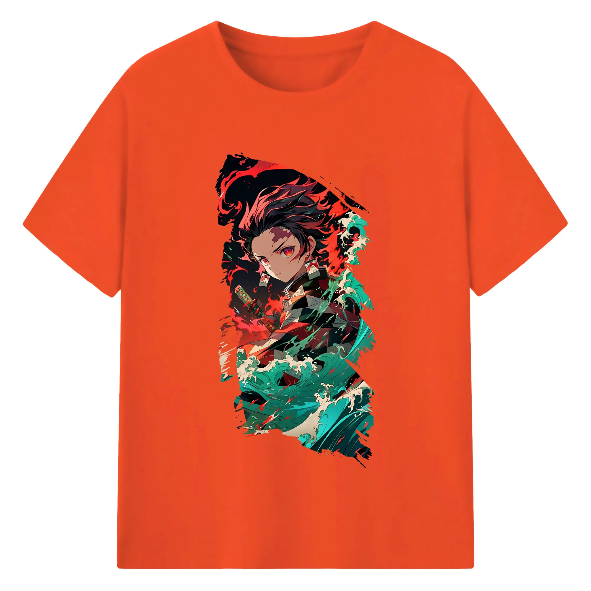 鬼滅の刃 グッズ,竈門 炭治郎 - 綿100% 半袖Tシャツ ・ バックプリント ・ 快適 通気性 ・ 日常使い 散歩 スポーツ用