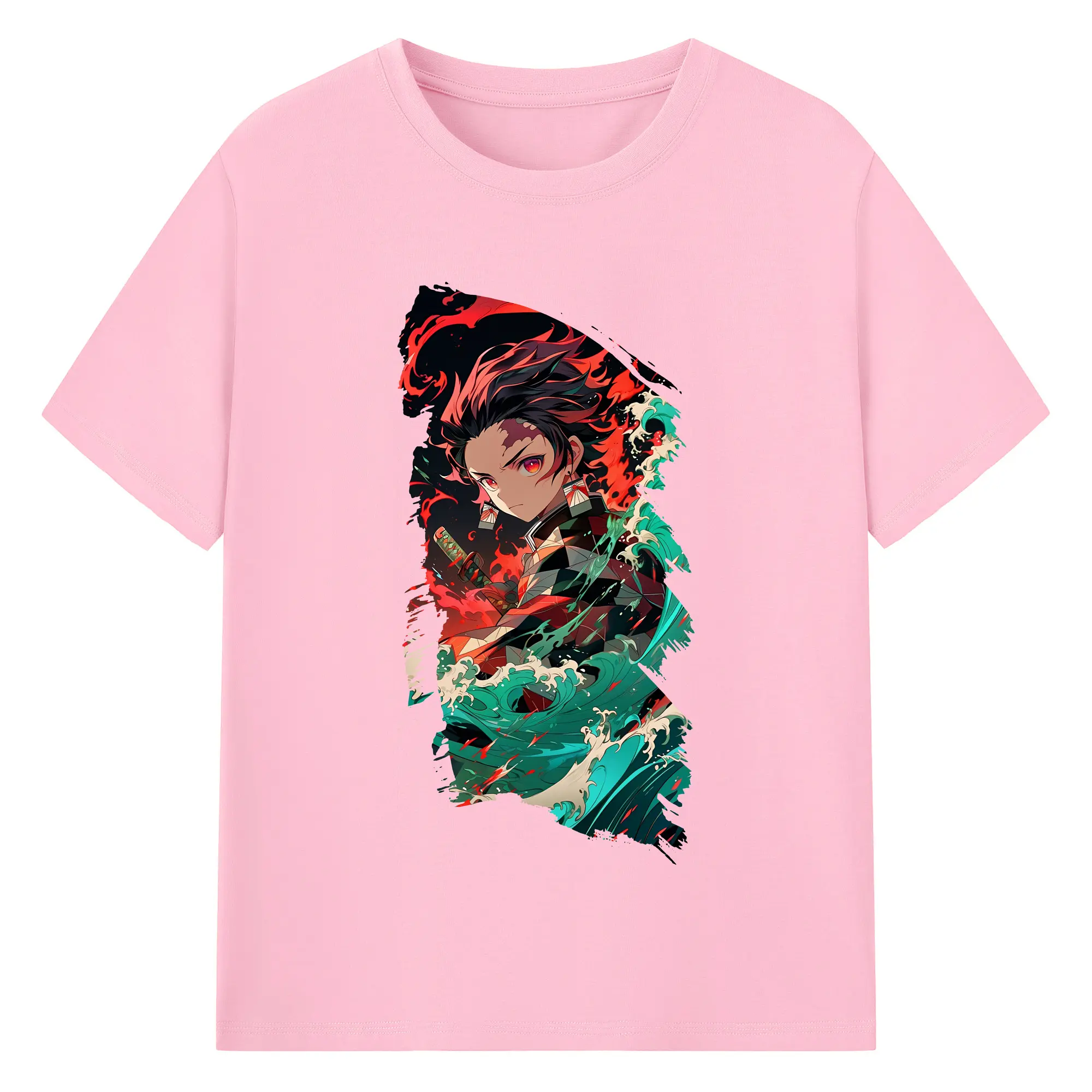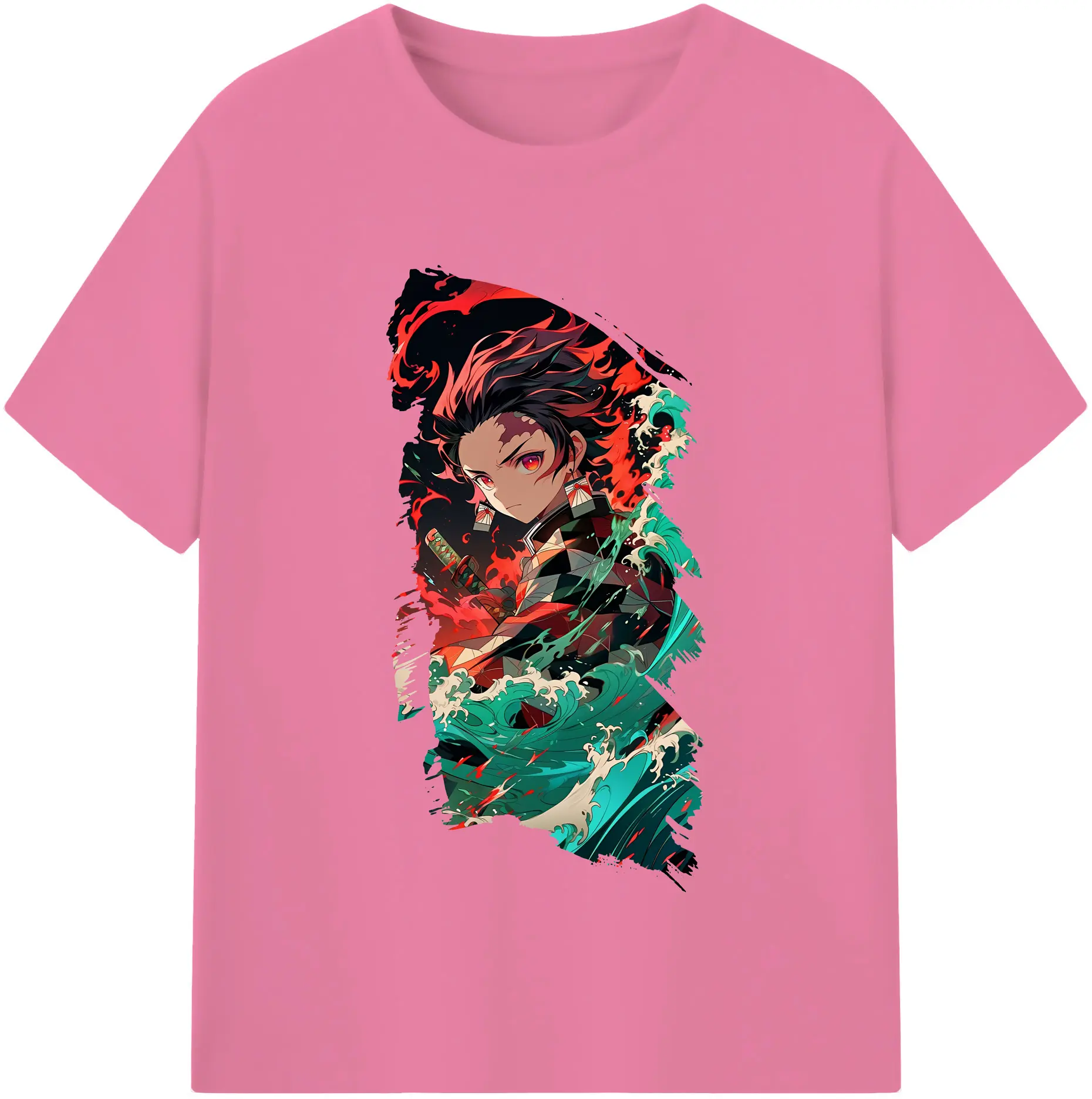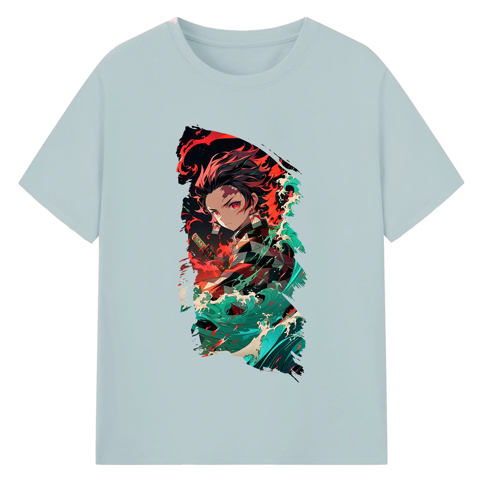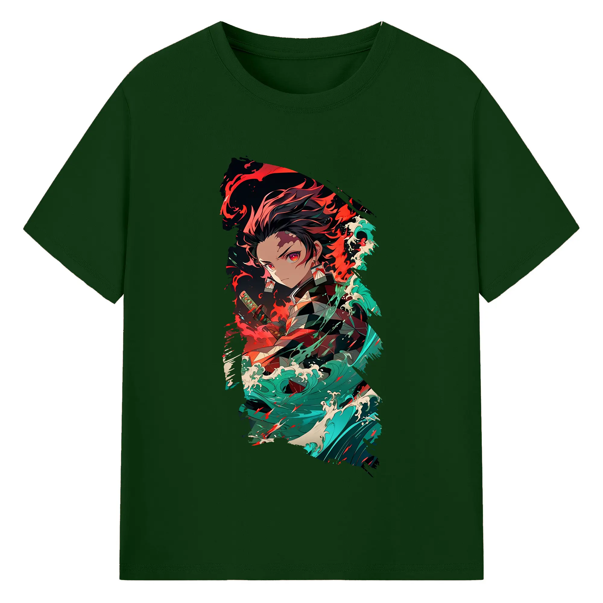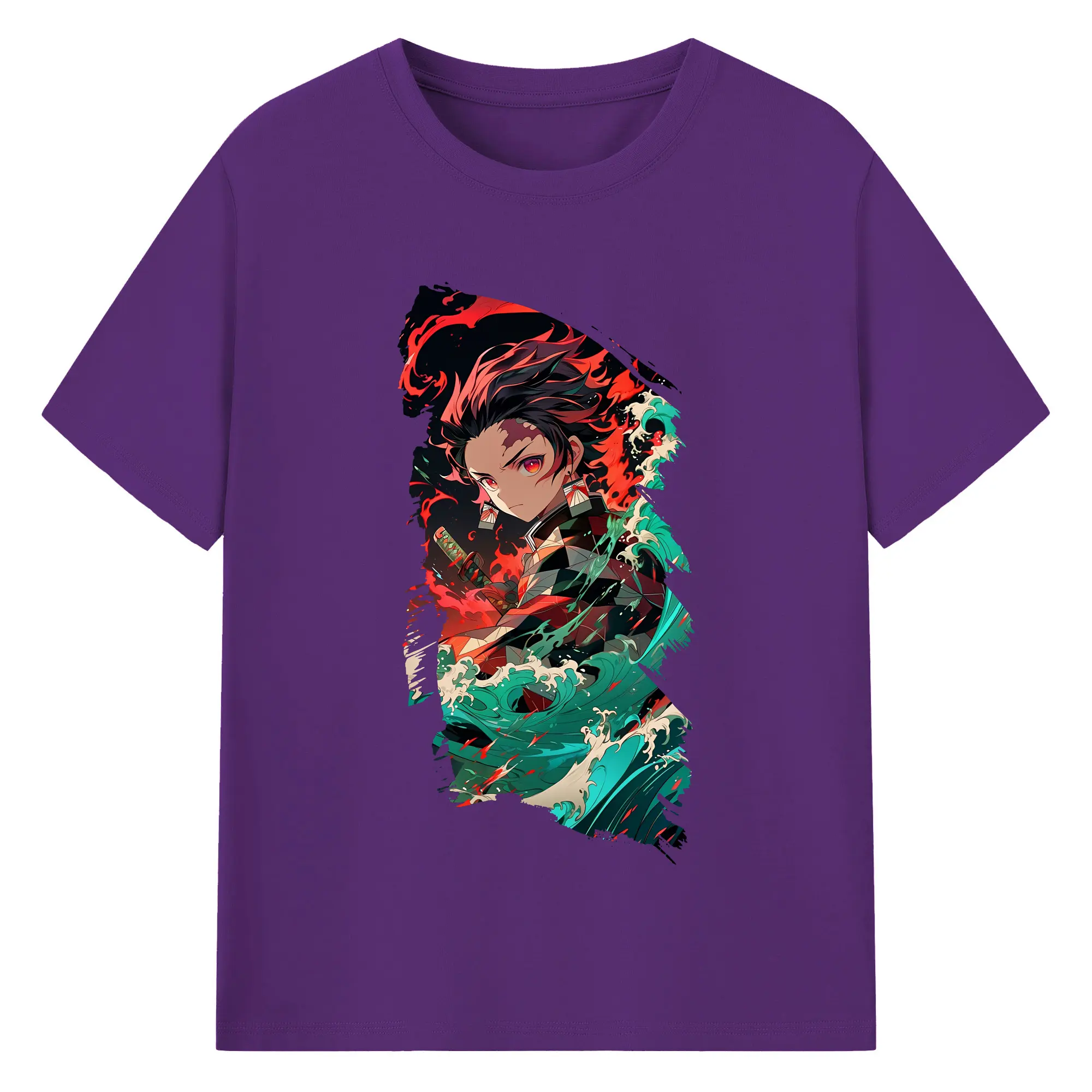 鬼滅の刃 グッズ,竈門 炭治郎 - 綿100% 半袖Tシャツ ・ バックプリント ・ 快適 通気性 ・ 日常使い 散歩 スポーツ用