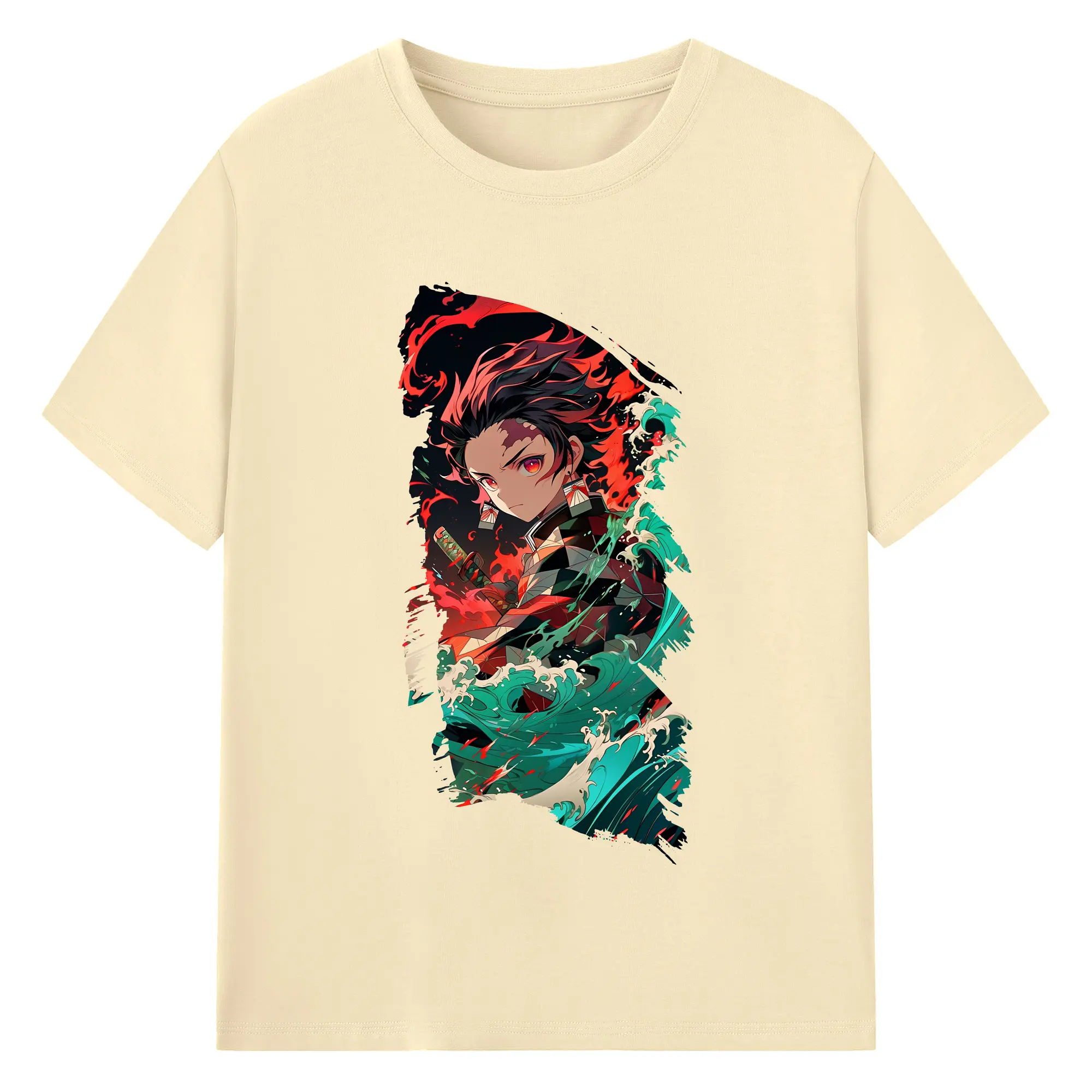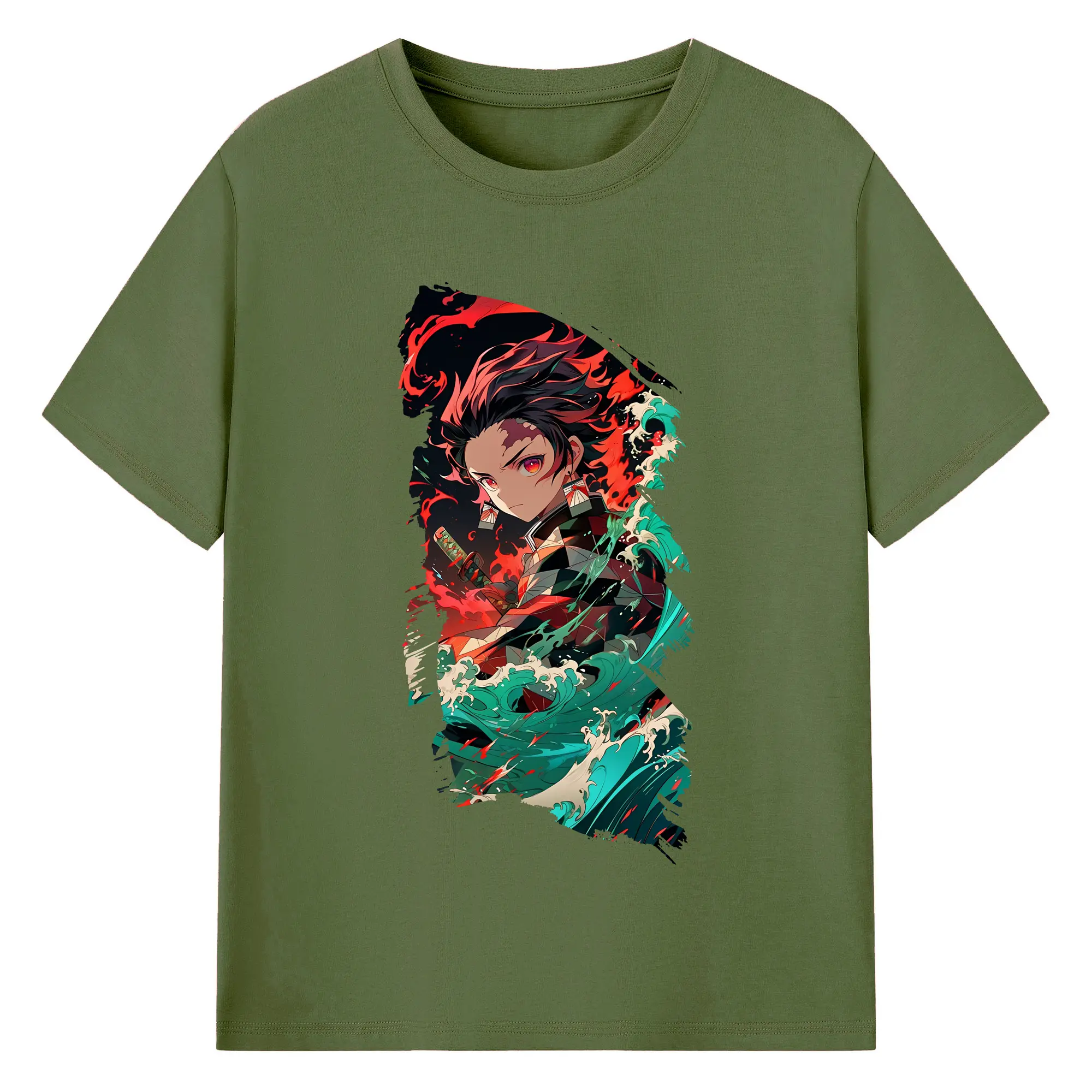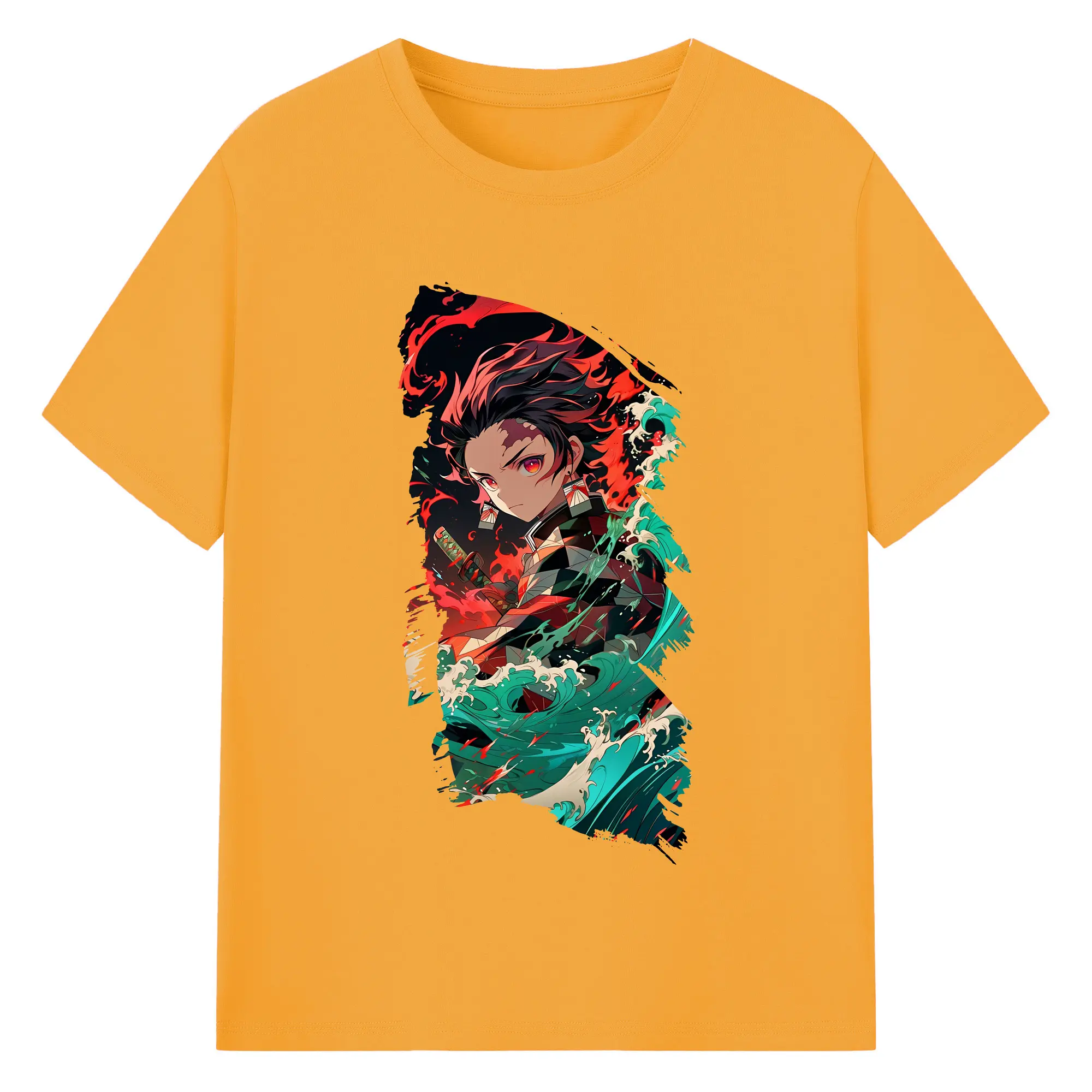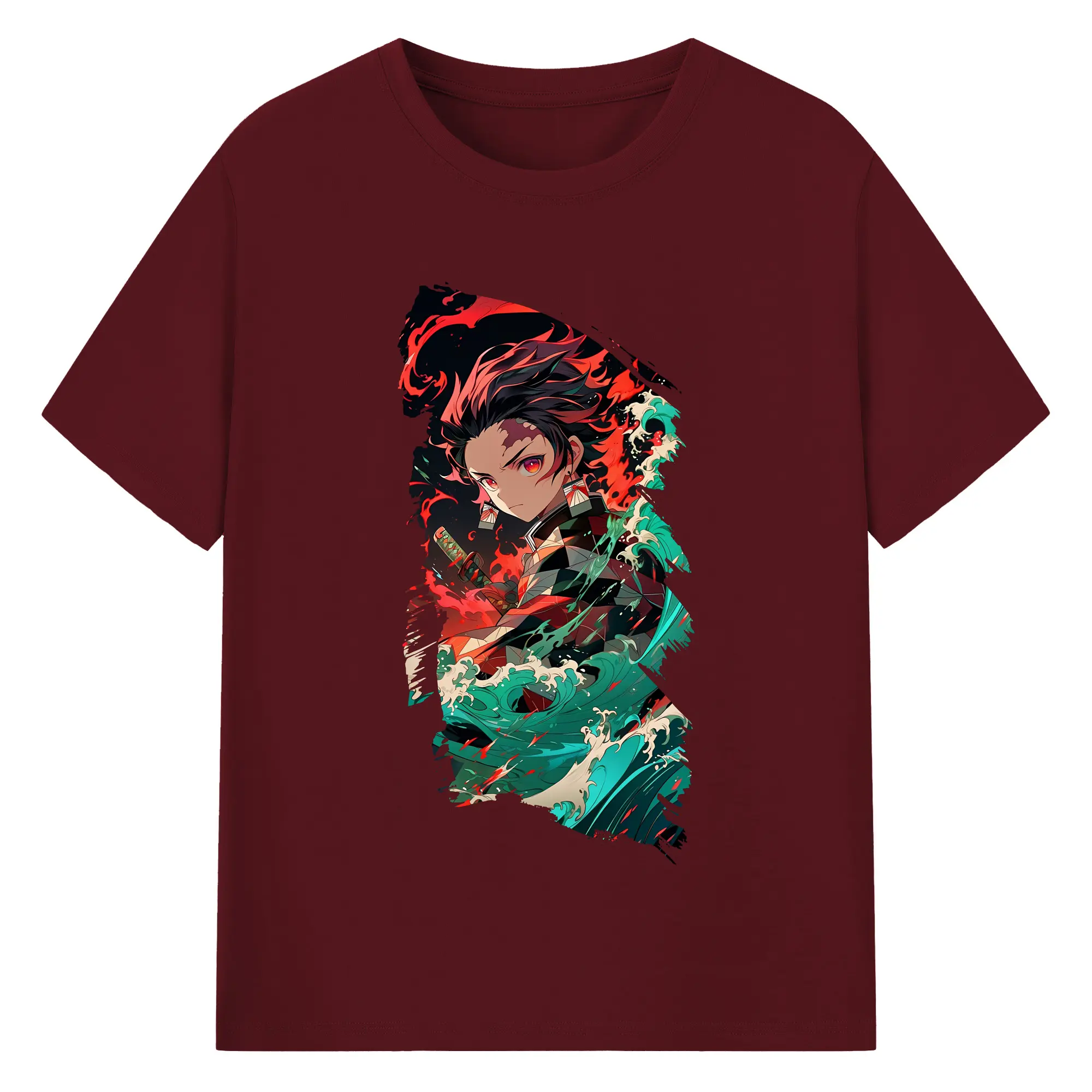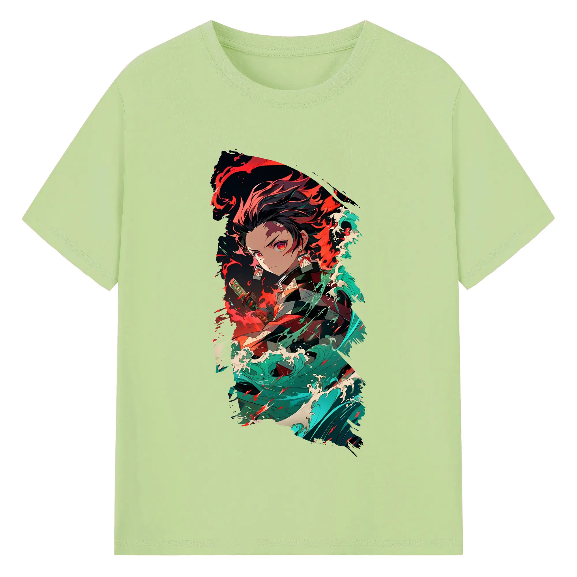 鬼滅の刃 グッズ,竈門 炭治郎 - 綿100% 半袖Tシャツ ・ バックプリント ・ 快適 通気性 ・ 日常使い 散歩 スポーツ用