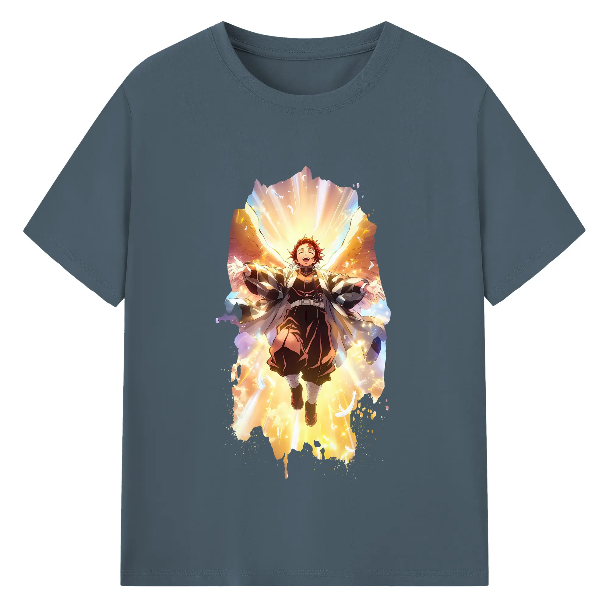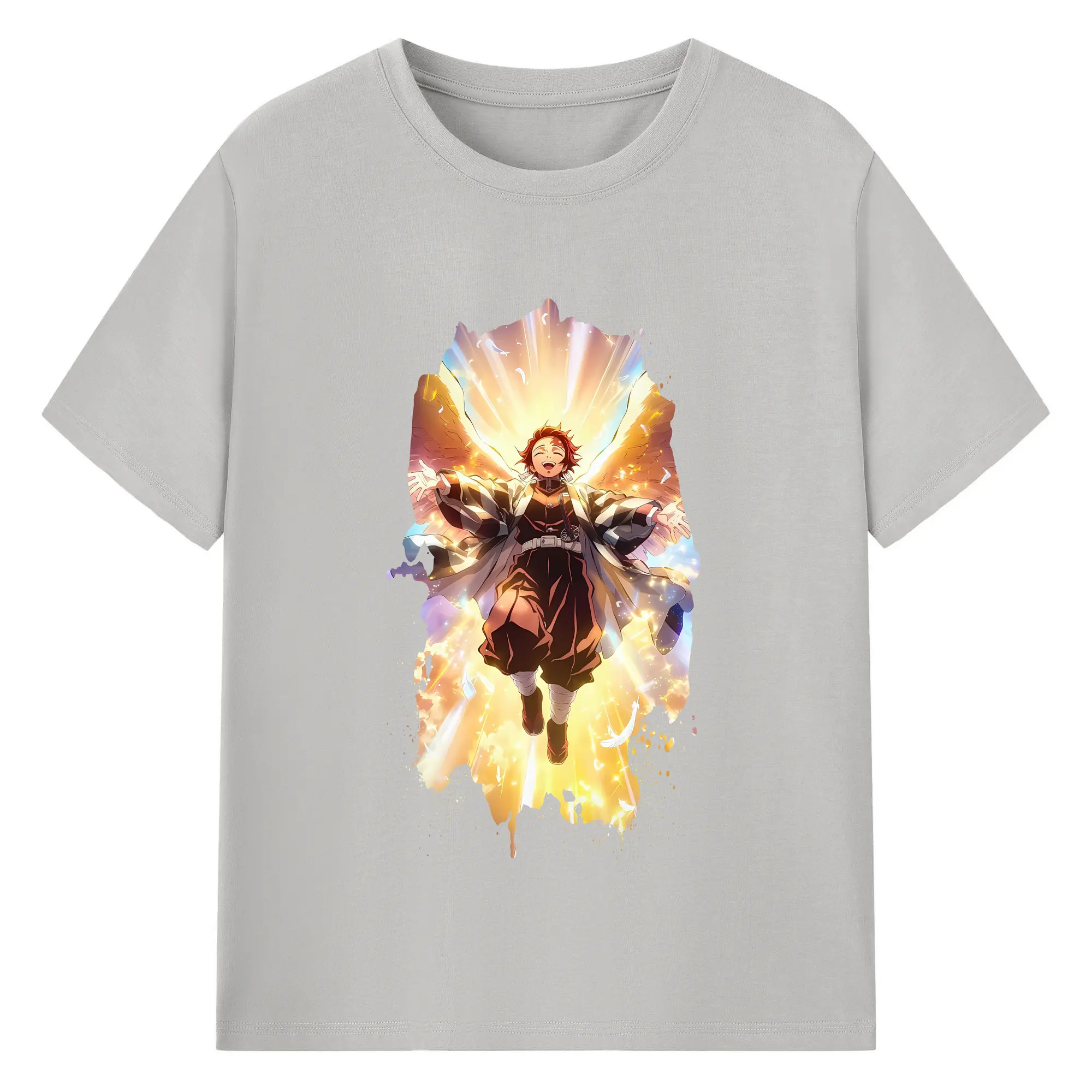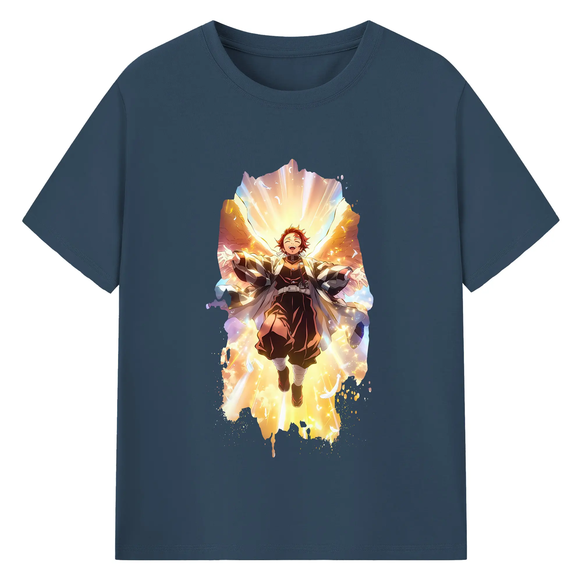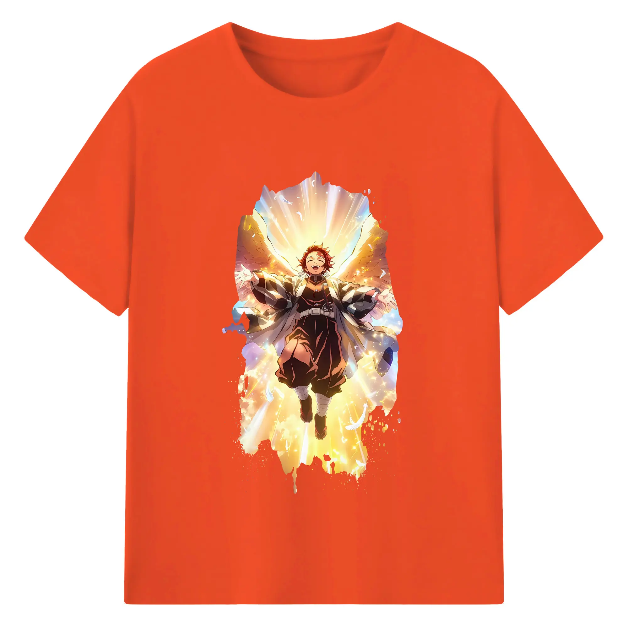 鬼滅の刃 グッズ,竈門 炭治郎 - 綿100% 半袖Tシャツ ・ バックプリント ・ 快適 通気性 ・ 日常使い 散歩 スポーツ用