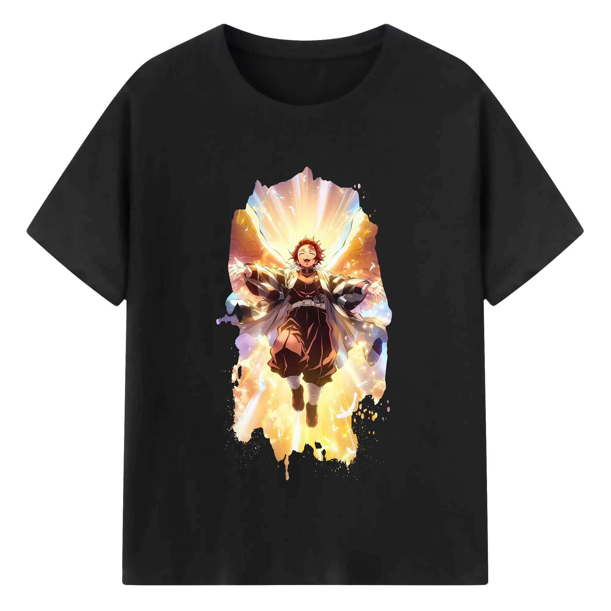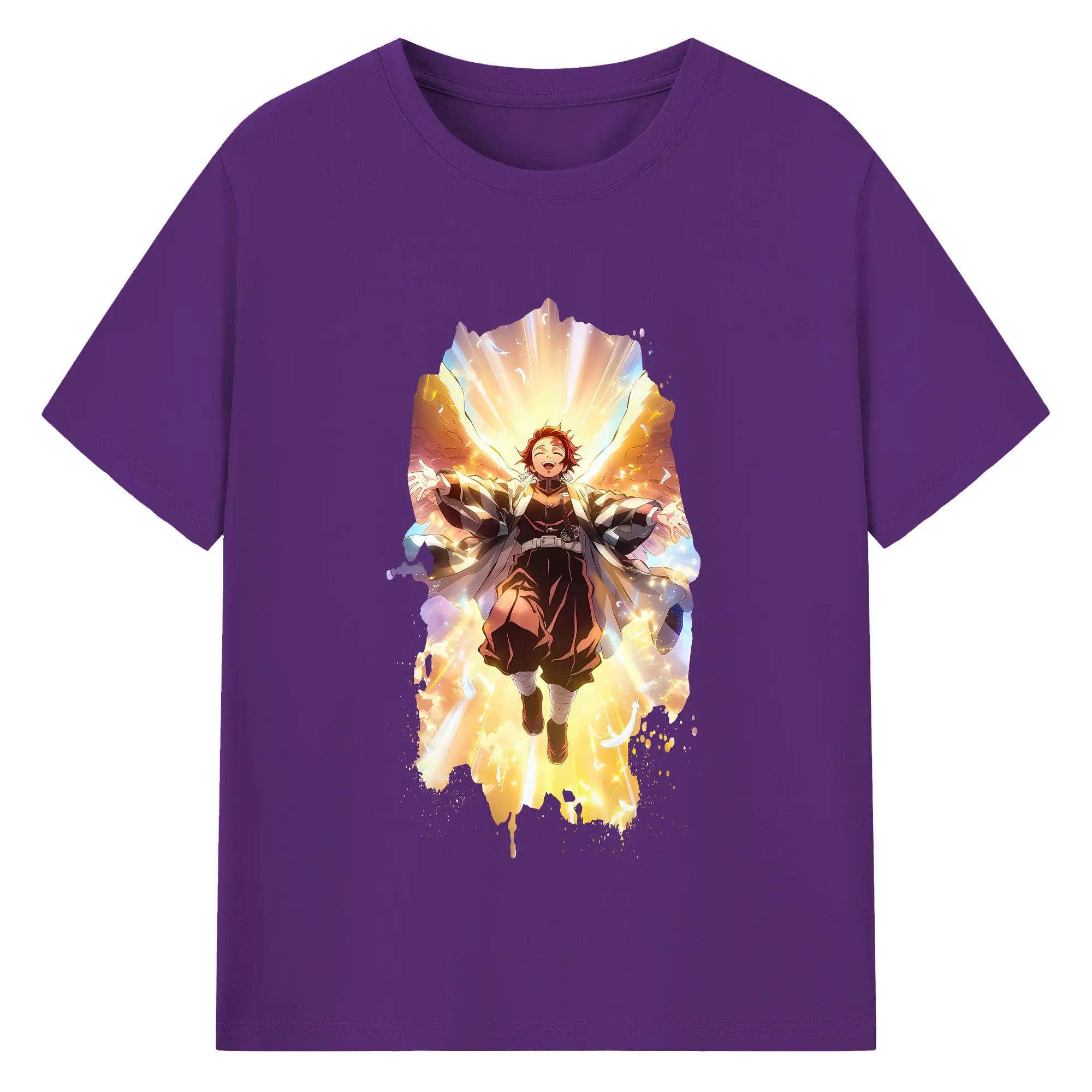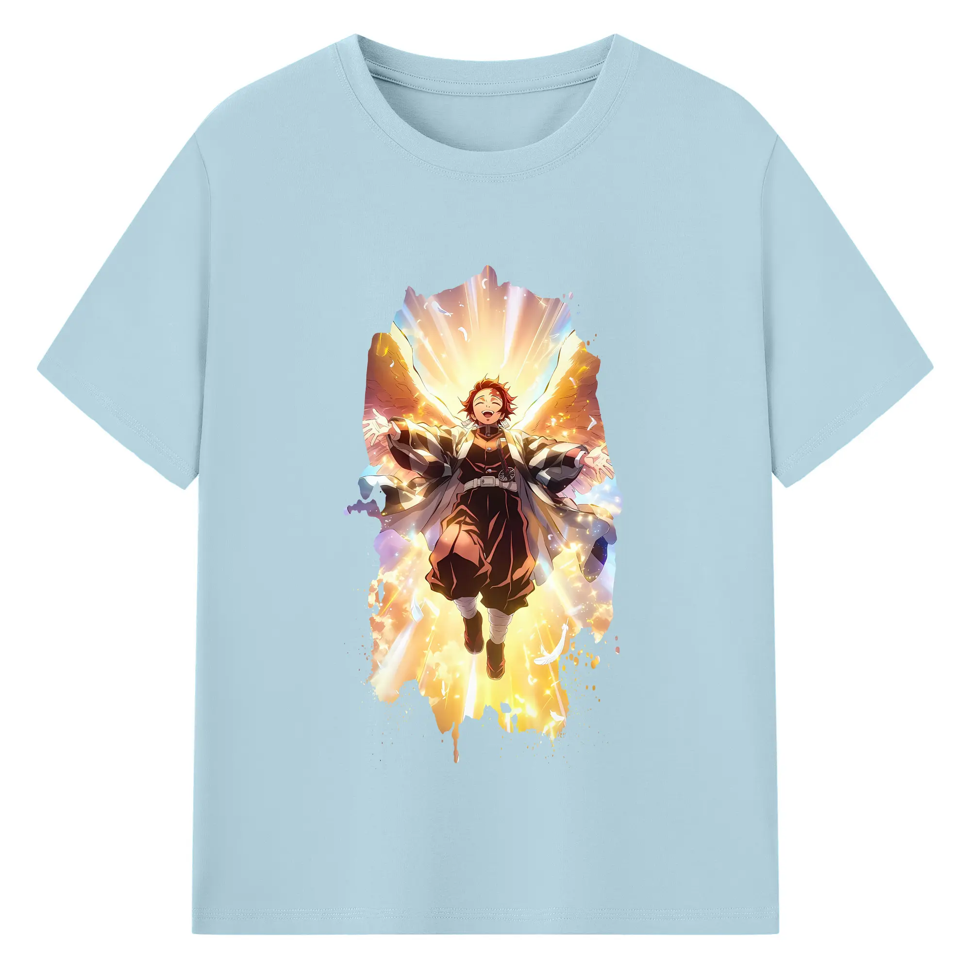 鬼滅の刃 グッズ,竈門 炭治郎 - 綿100% 半袖Tシャツ ・ バックプリント ・ 快適 通気性 ・ 日常使い 散歩 スポーツ用