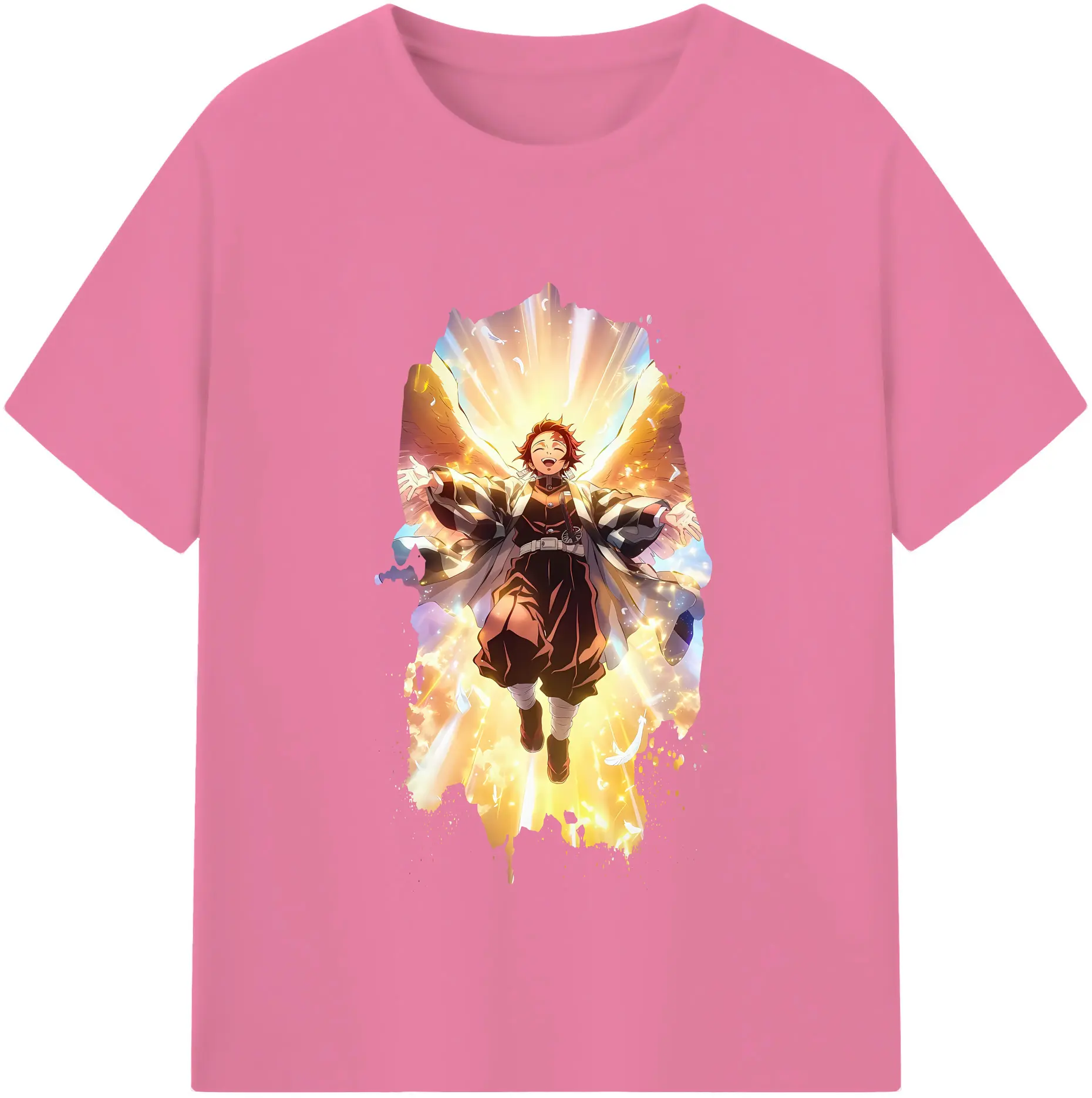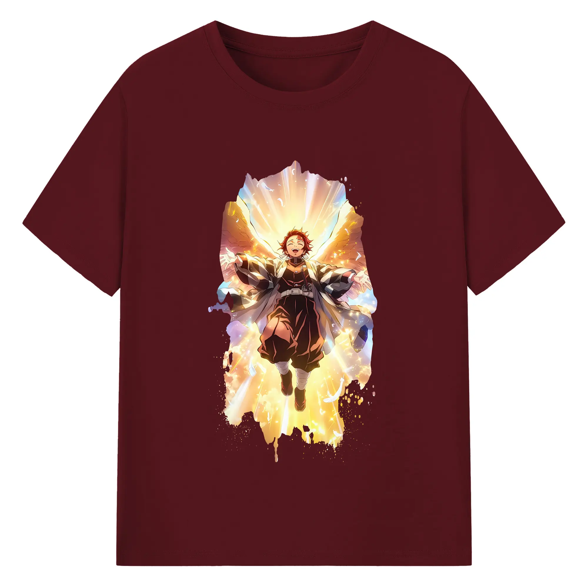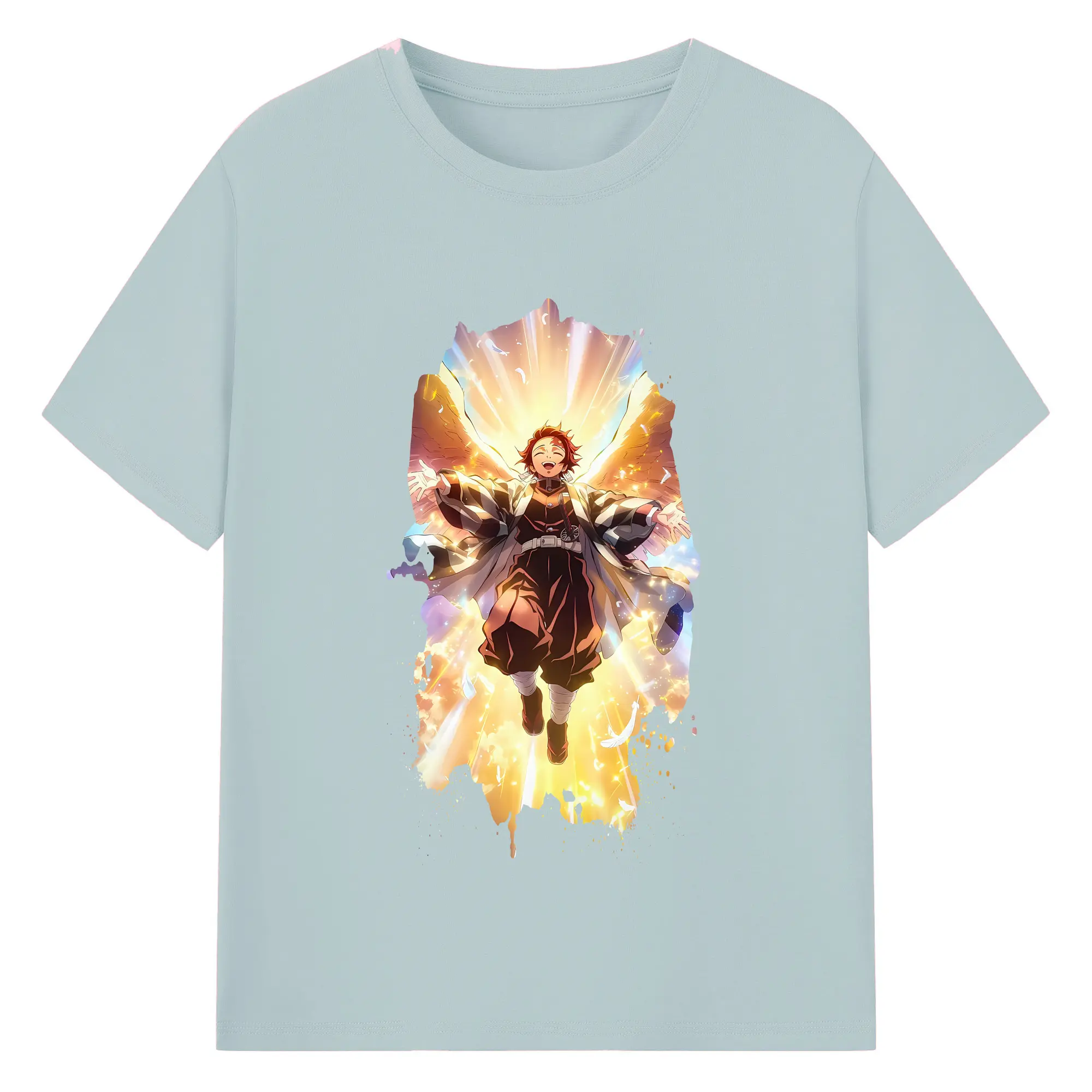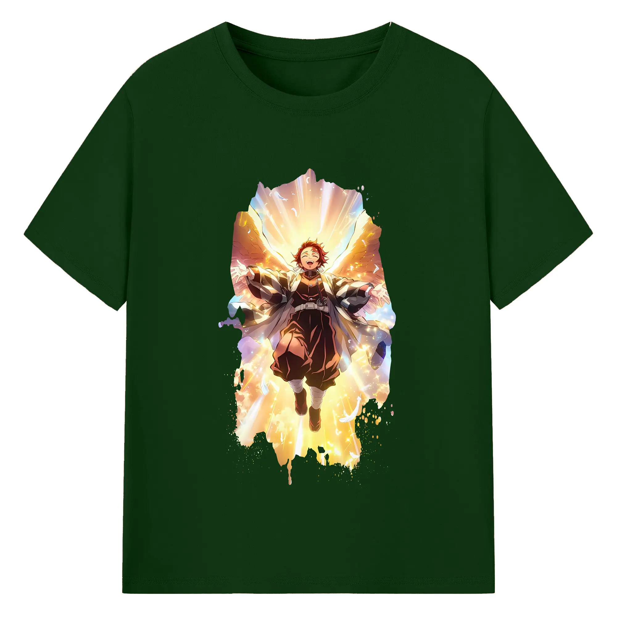 鬼滅の刃 グッズ,竈門 炭治郎 - 綿100% 半袖Tシャツ ・ バックプリント ・ 快適 通気性 ・ 日常使い 散歩 スポーツ用