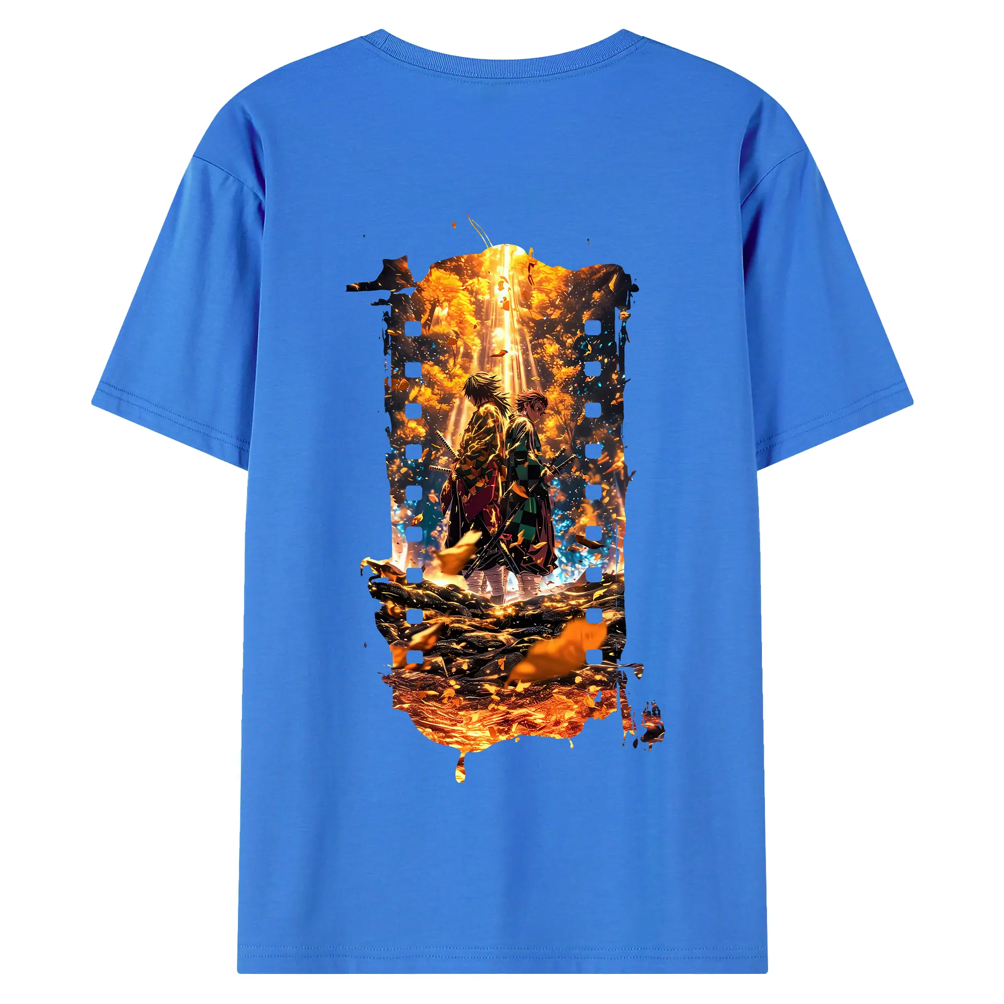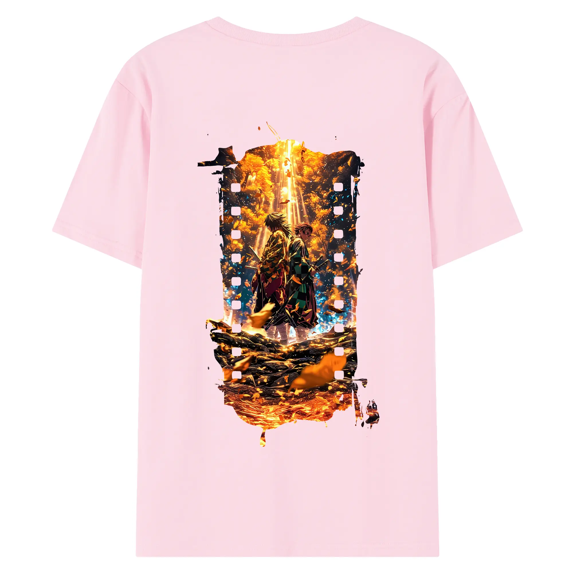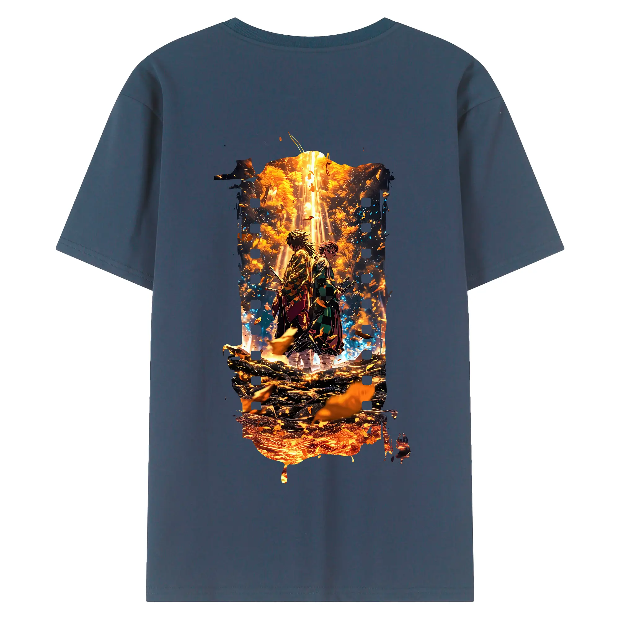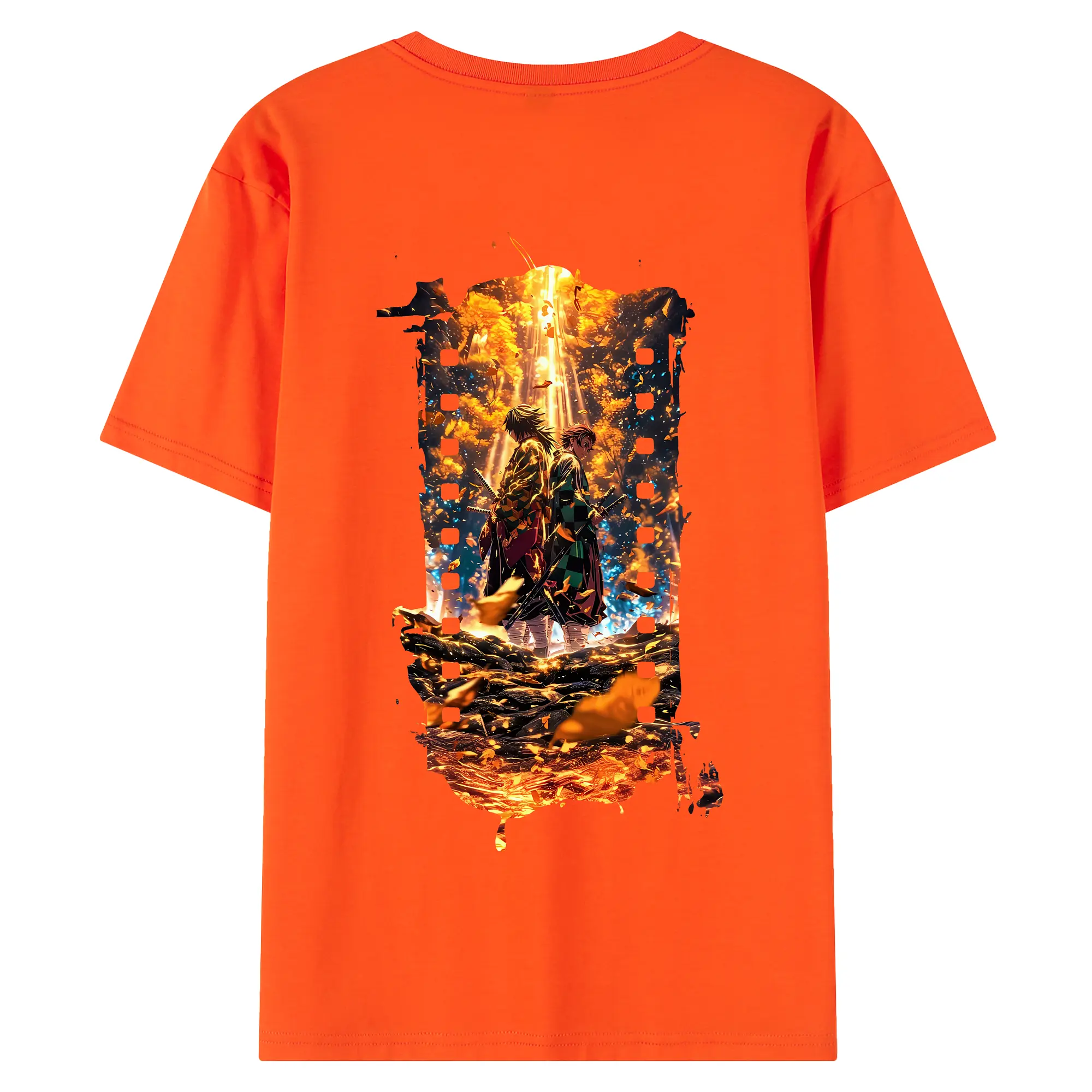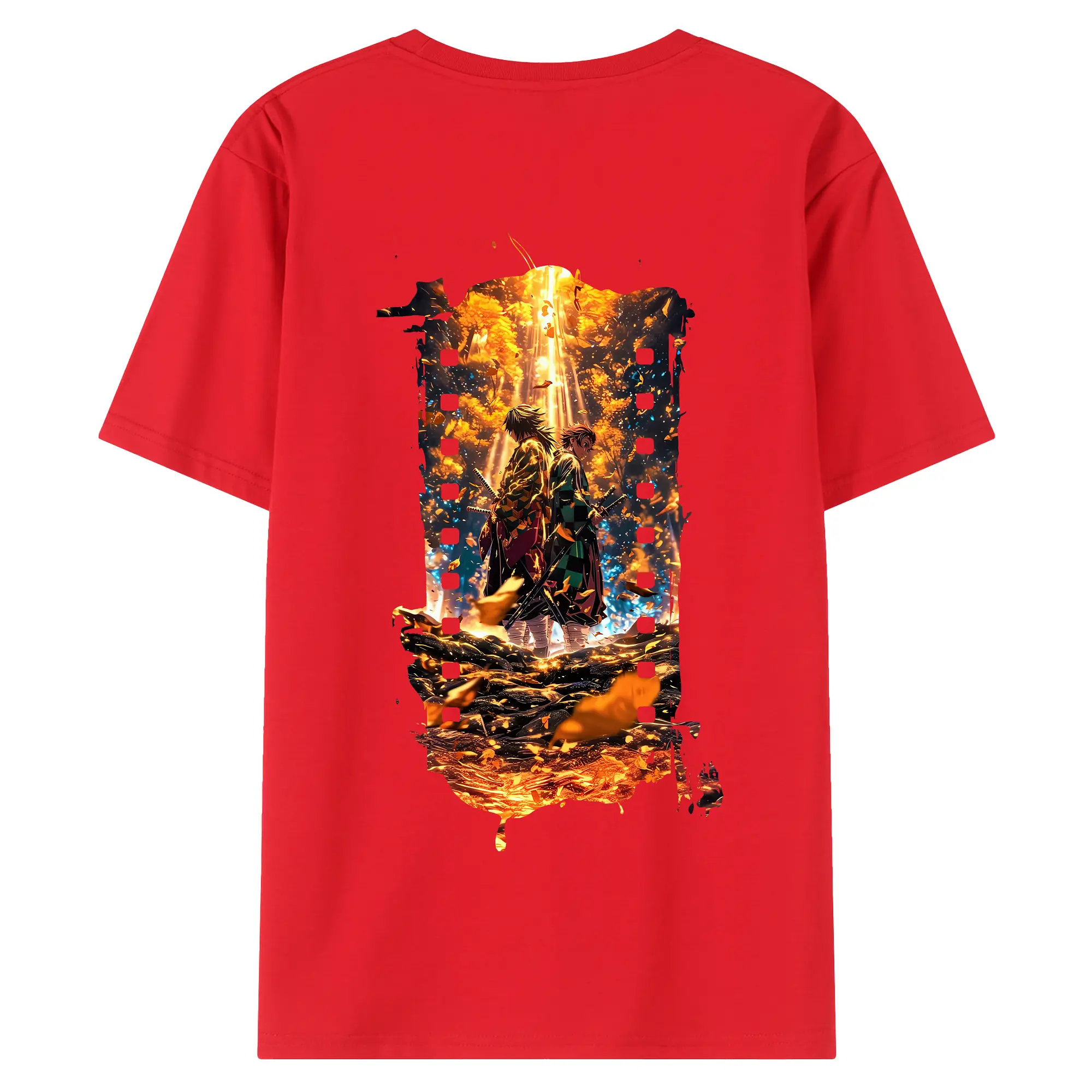 鬼滅の刃 グッズ,竈門 炭治郎 - 綿100% 半袖Tシャツ ・ バックプリント ・ 快適 通気性 ・ 日常使い 散歩 スポーツ用