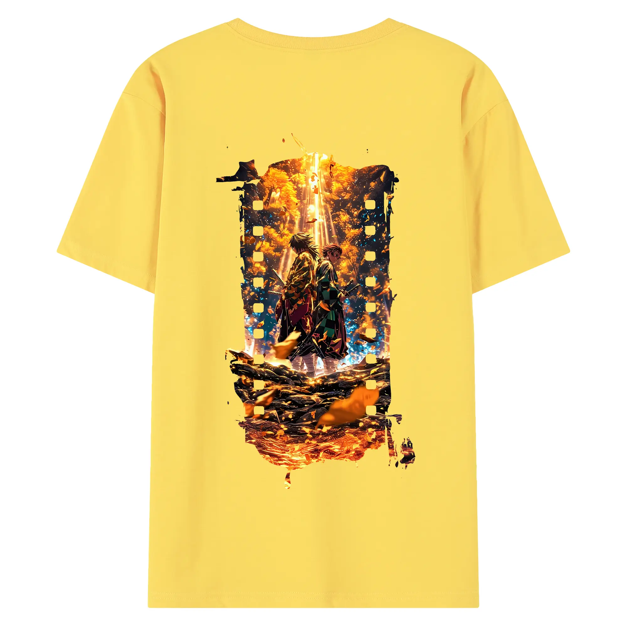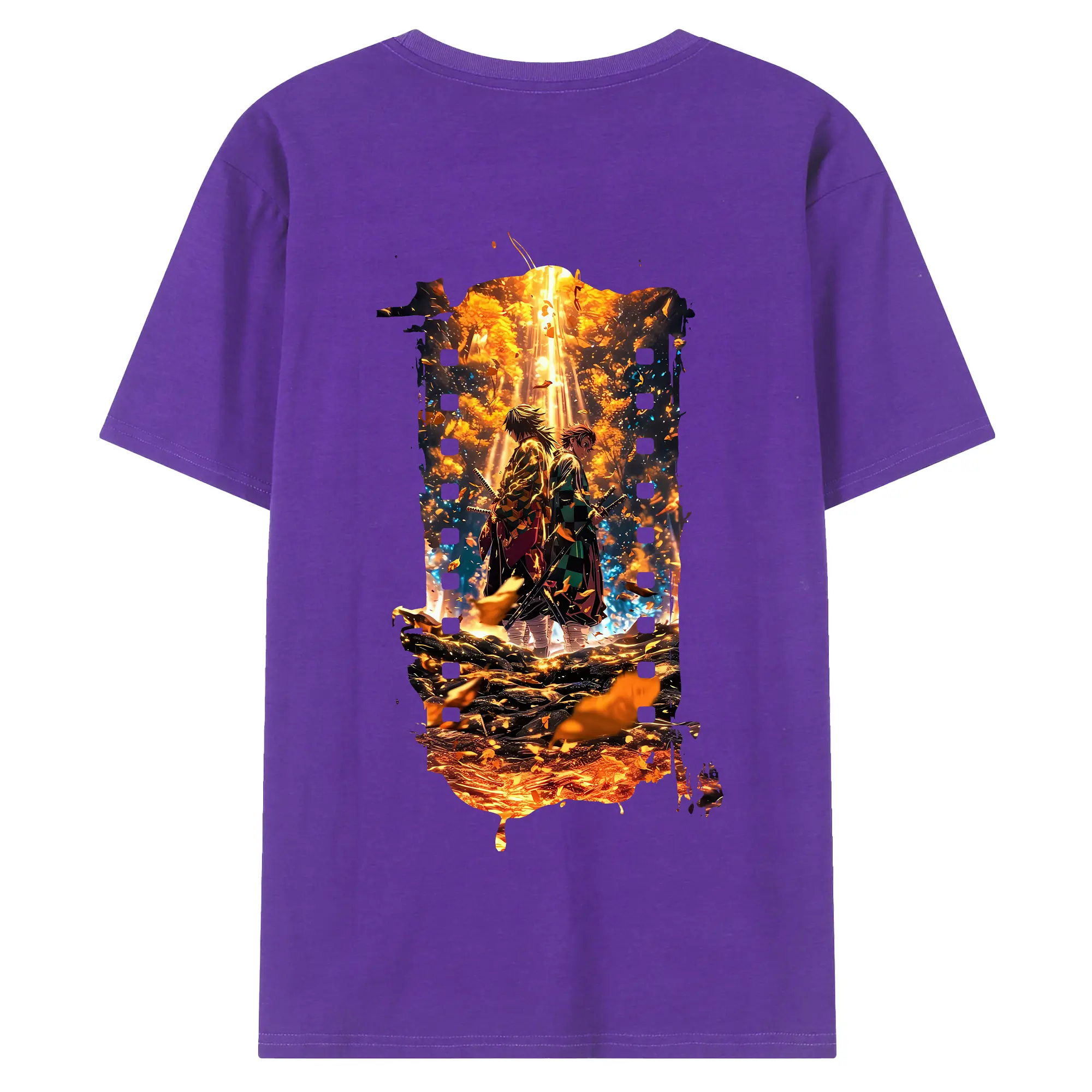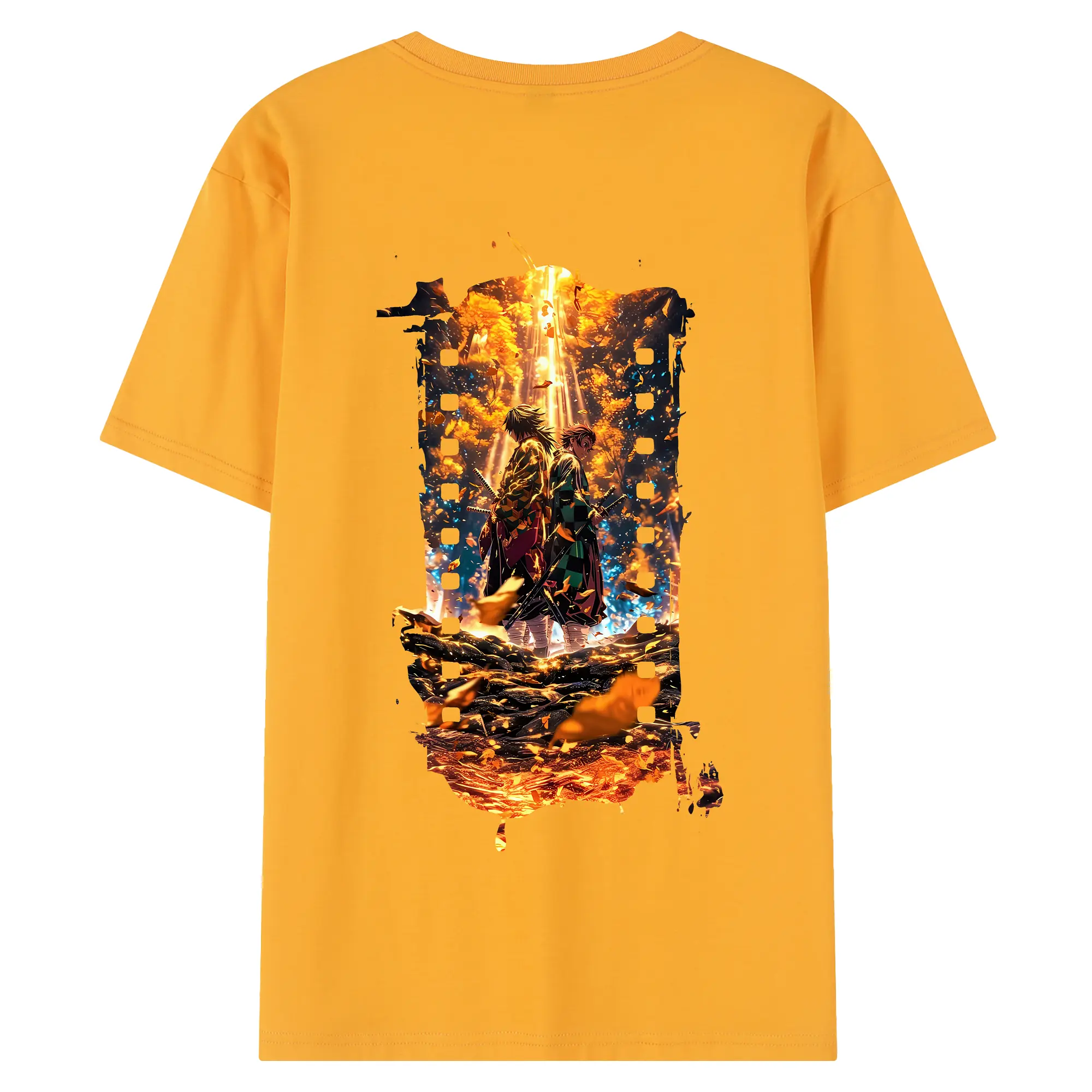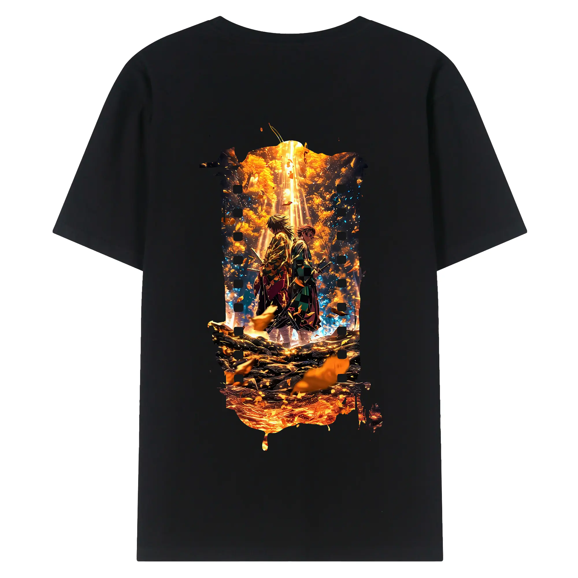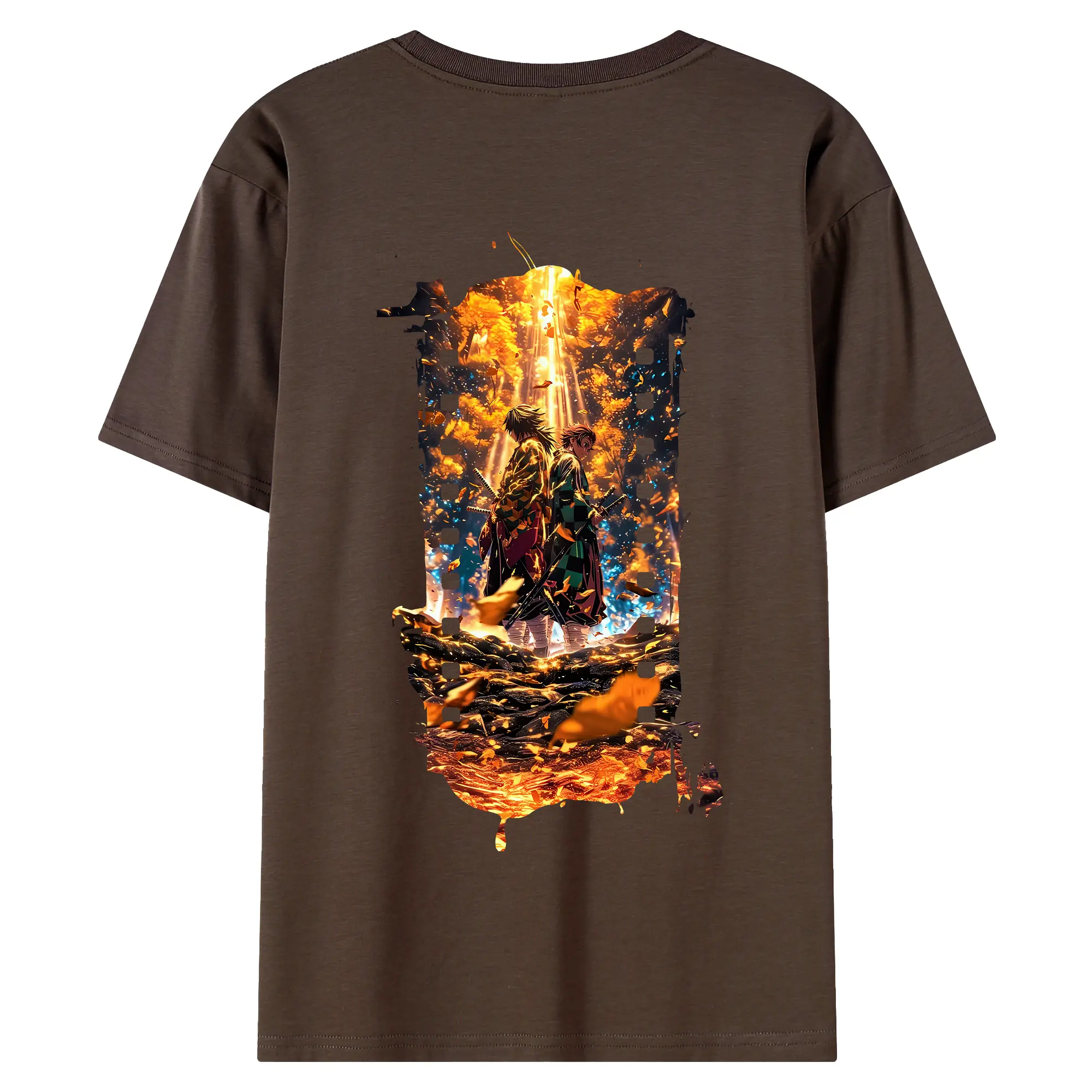 鬼滅の刃 グッズ,竈門 炭治郎 - 綿100% 半袖Tシャツ ・ バックプリント ・ 快適 通気性 ・ 日常使い 散歩 スポーツ用