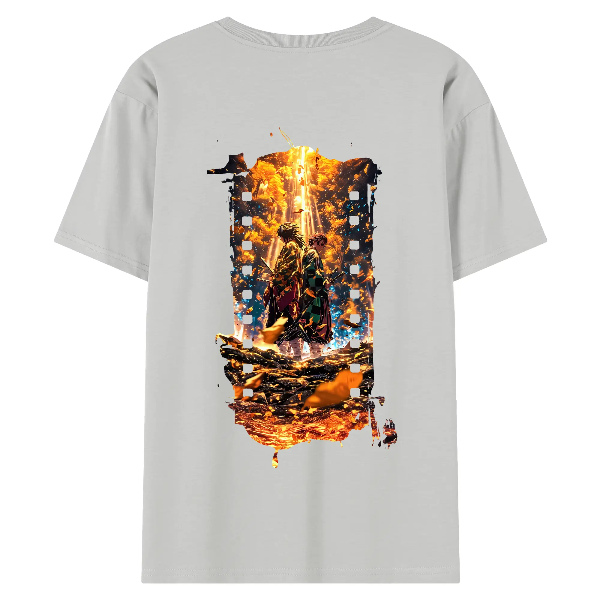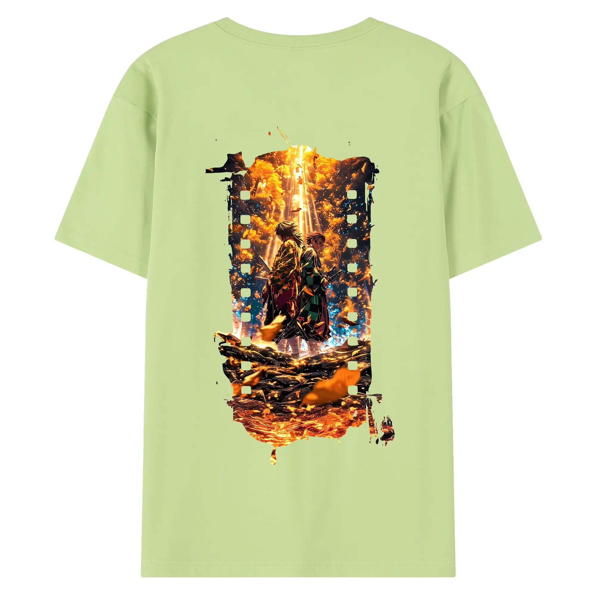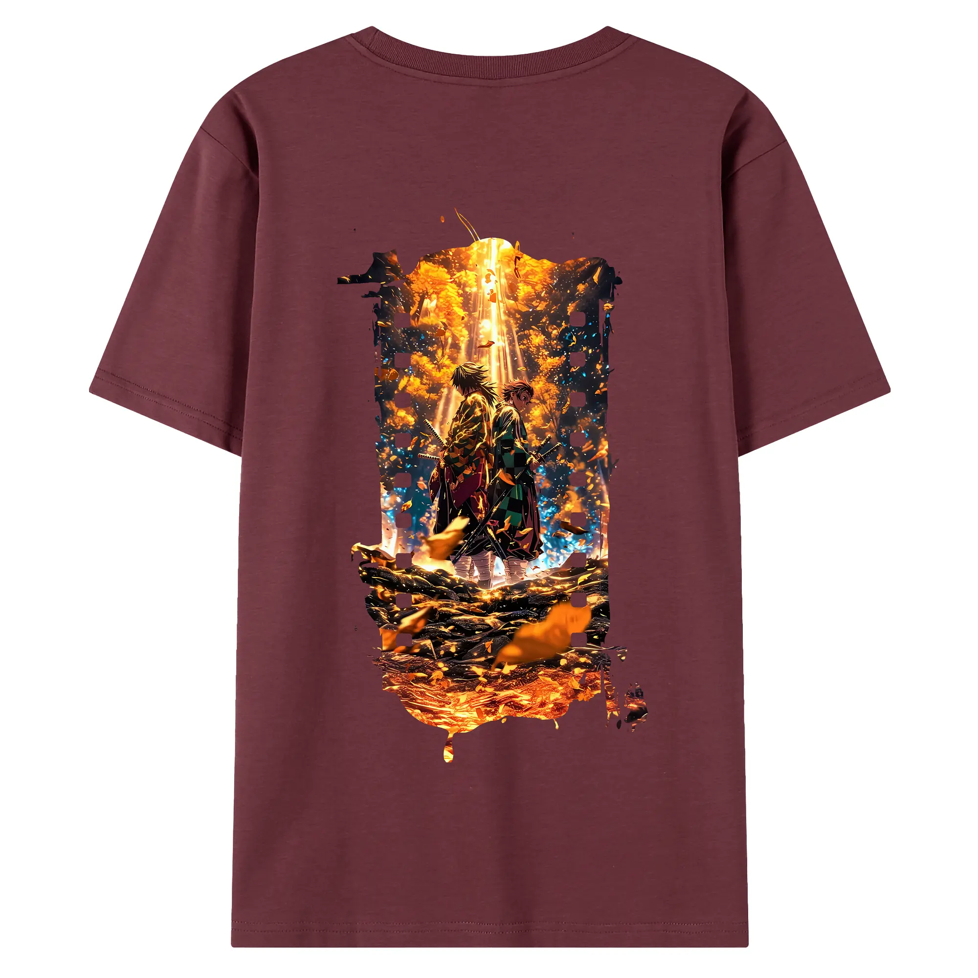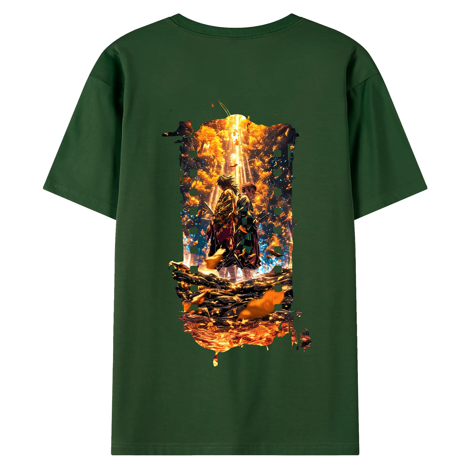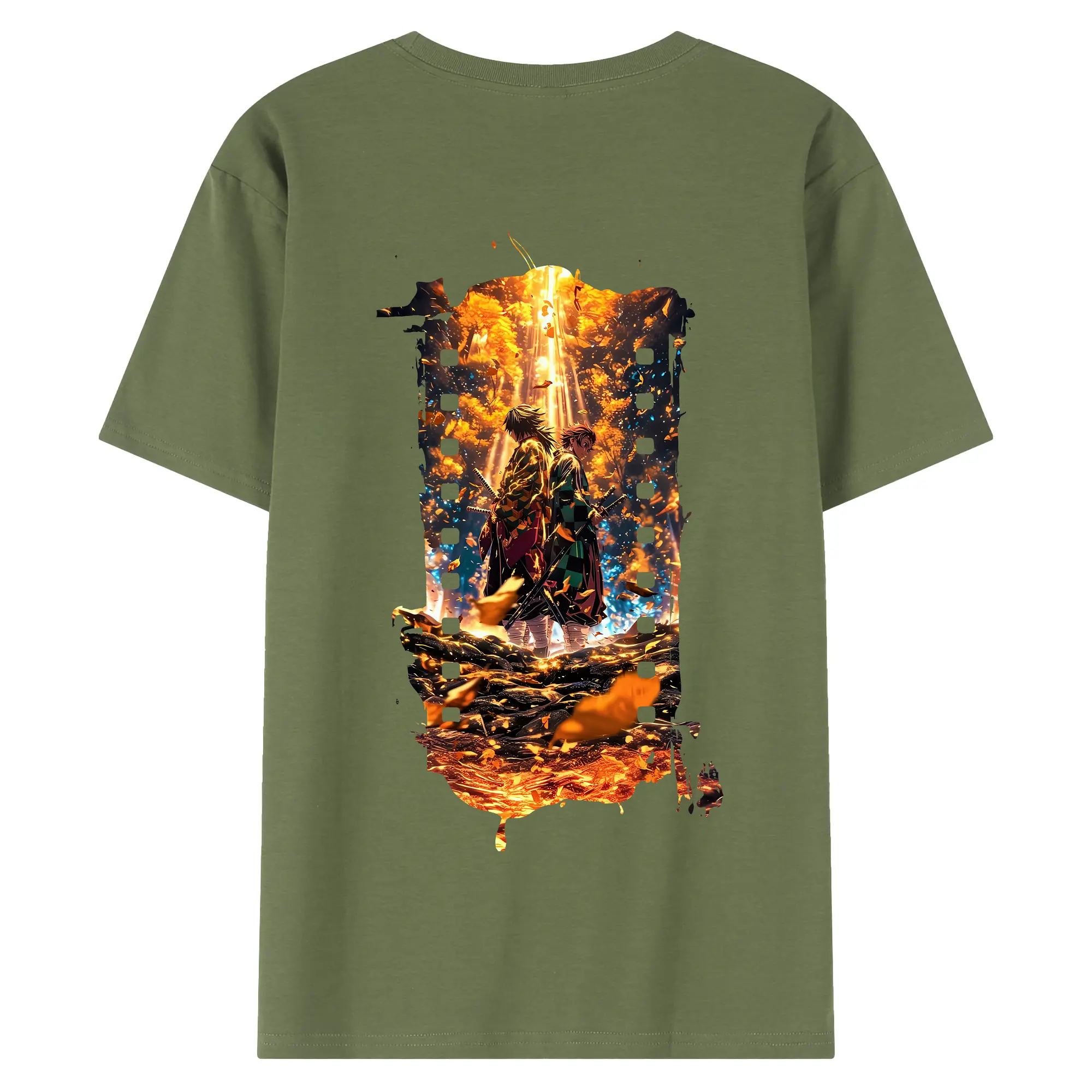 鬼滅の刃 グッズ,竈門 炭治郎 - 綿100% 半袖Tシャツ ・ バックプリント ・ 快適 通気性 ・ 日常使い 散歩 スポーツ用