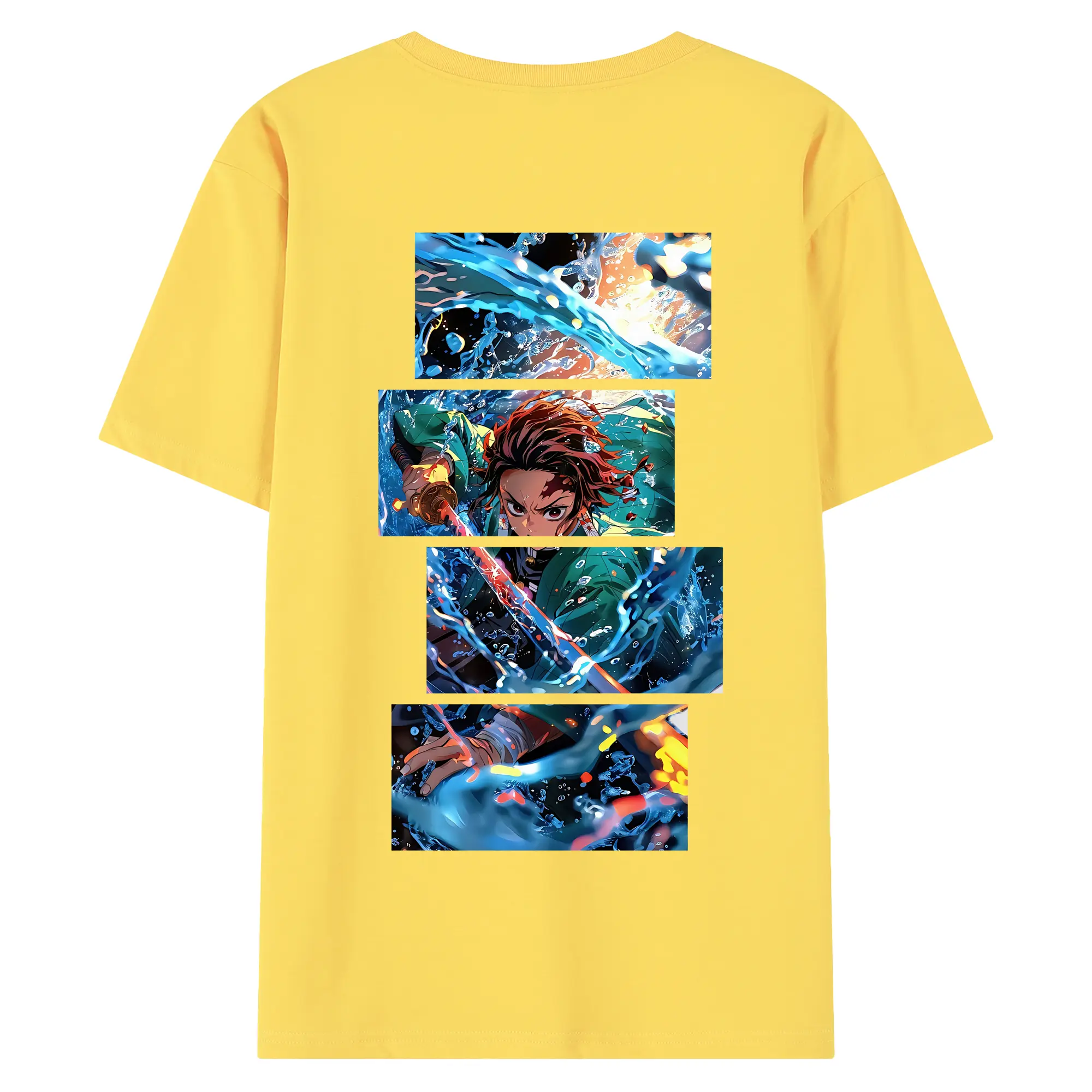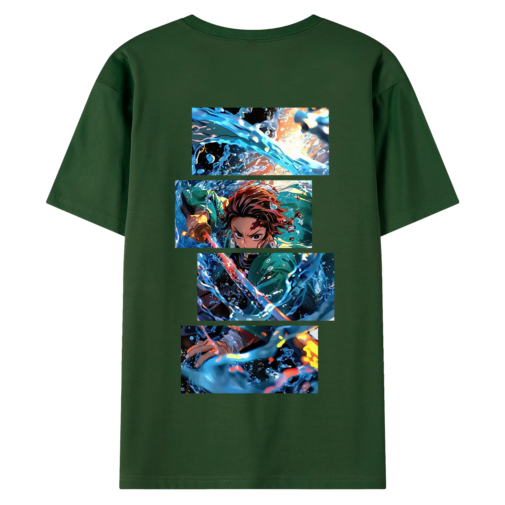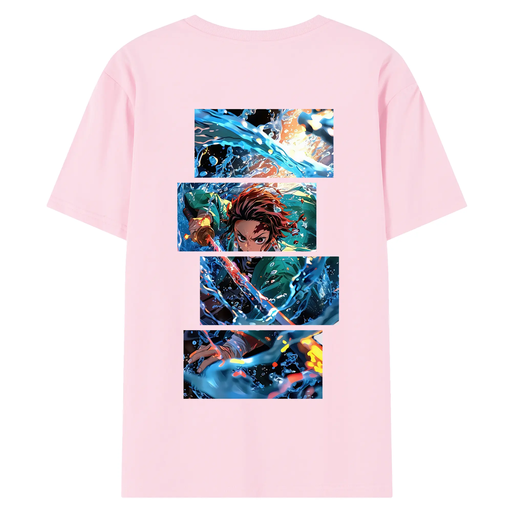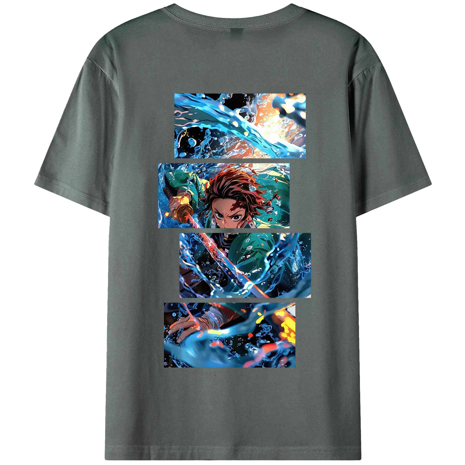 鬼滅の刃 グッズ,竈門 炭治郎 - 綿100% 半袖Tシャツ ・ フロントプリント ・ 快適 通気性 ・ 日常使い 散歩 スポーツ用