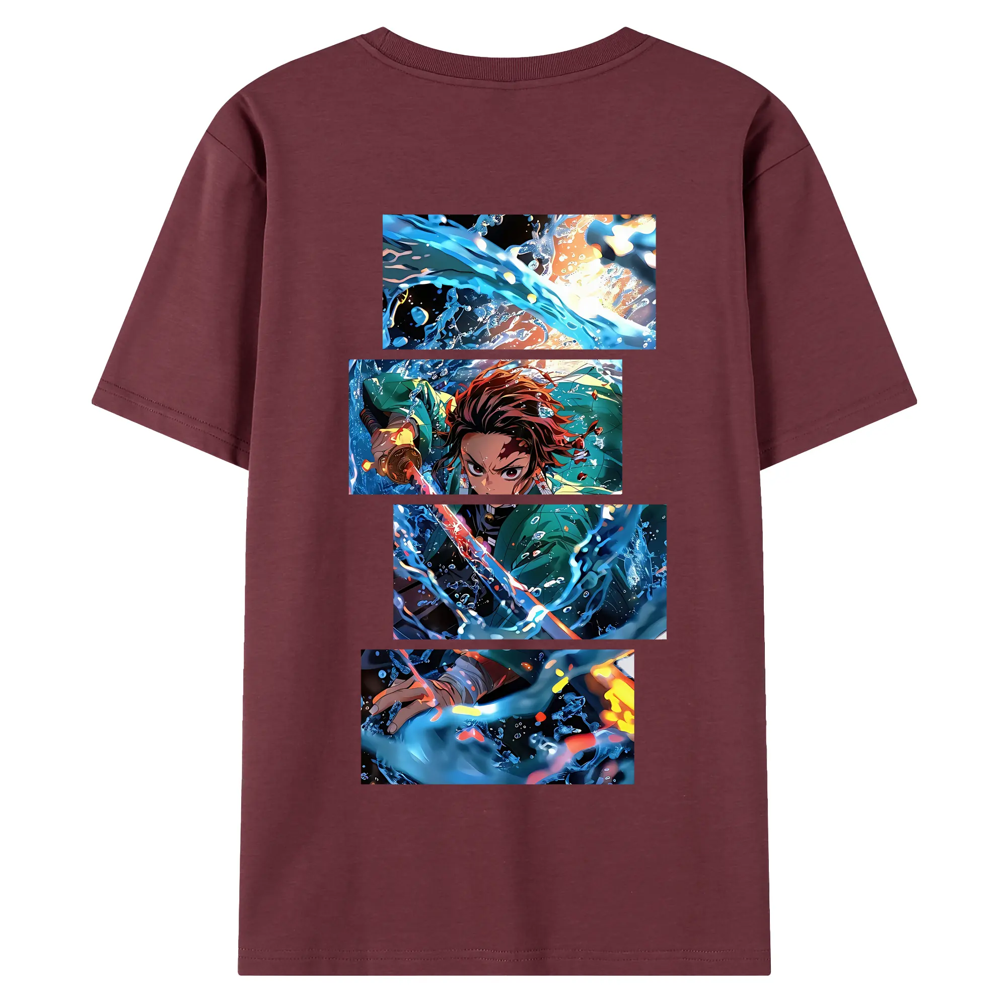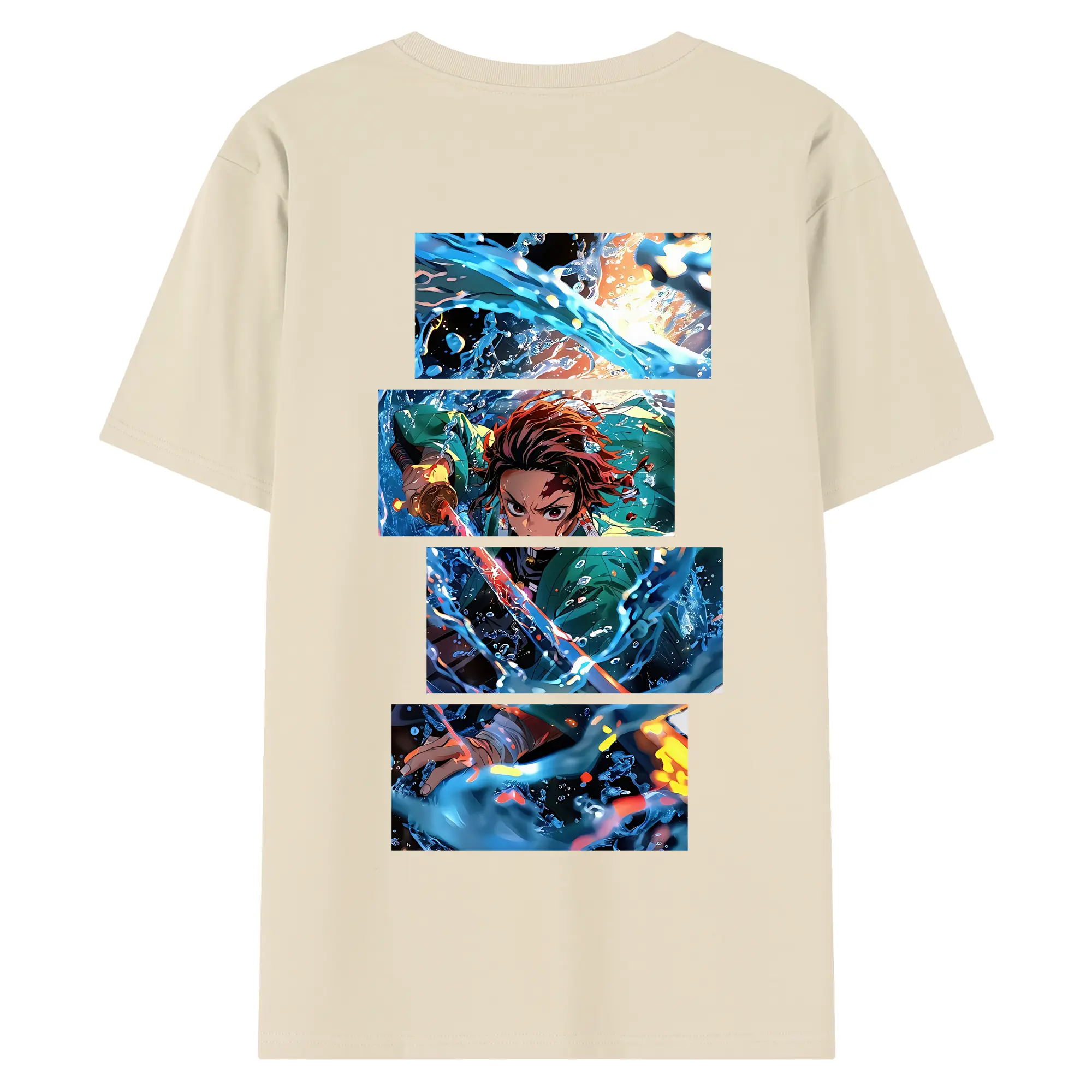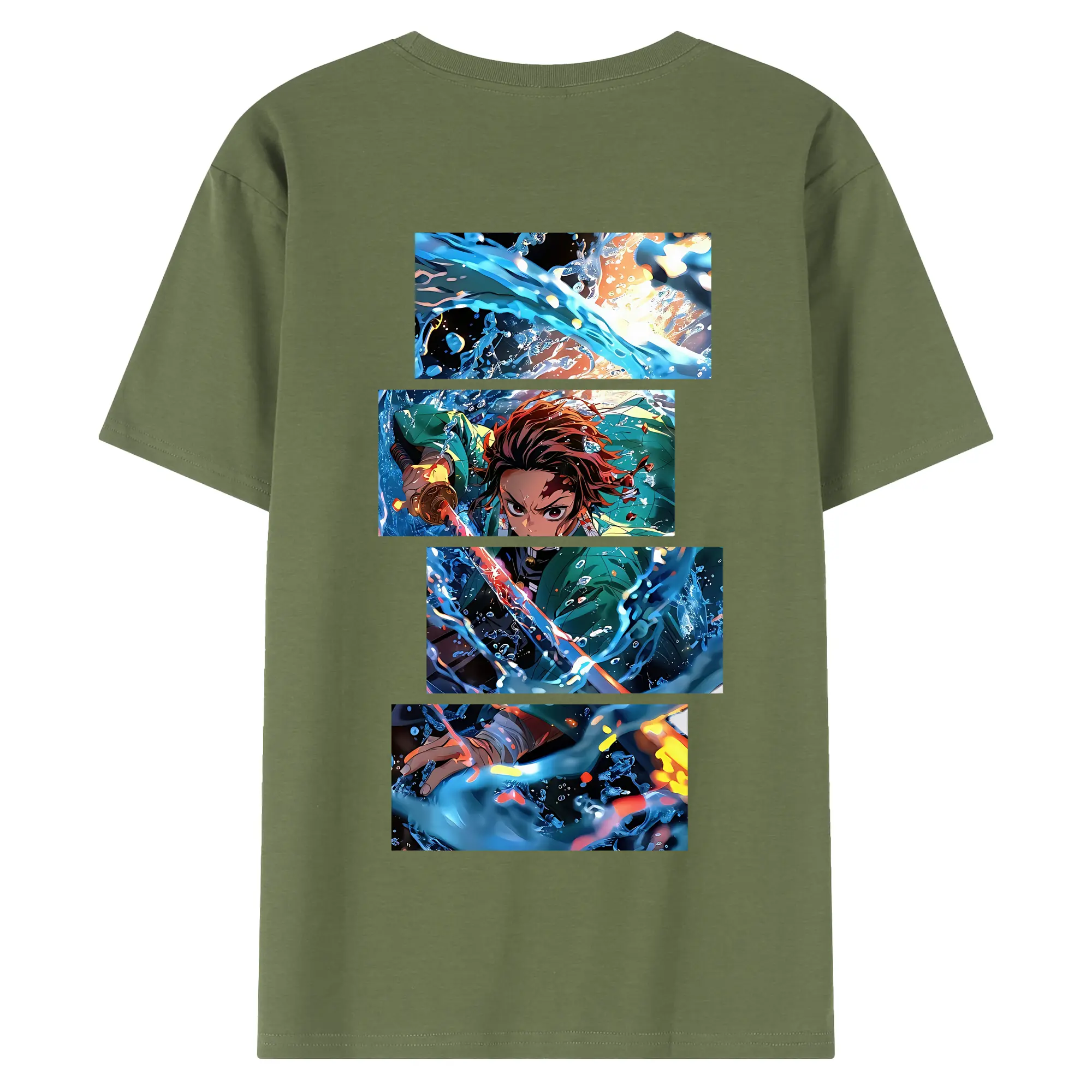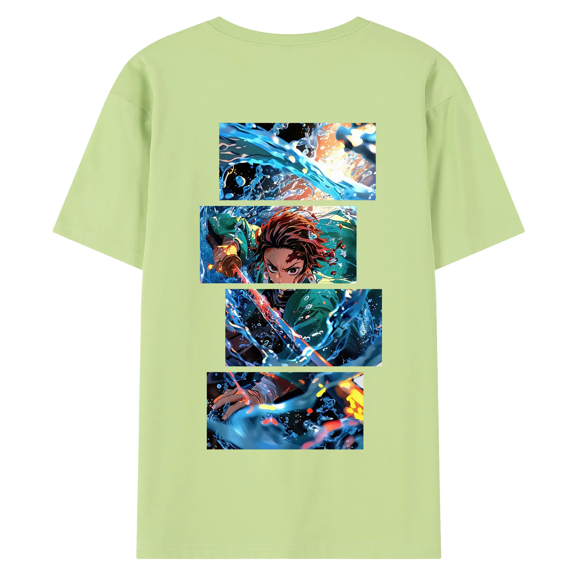 鬼滅の刃 グッズ,竈門 炭治郎 - 綿100% 半袖Tシャツ ・ フロントプリント ・ 快適 通気性 ・ 日常使い 散歩 スポーツ用