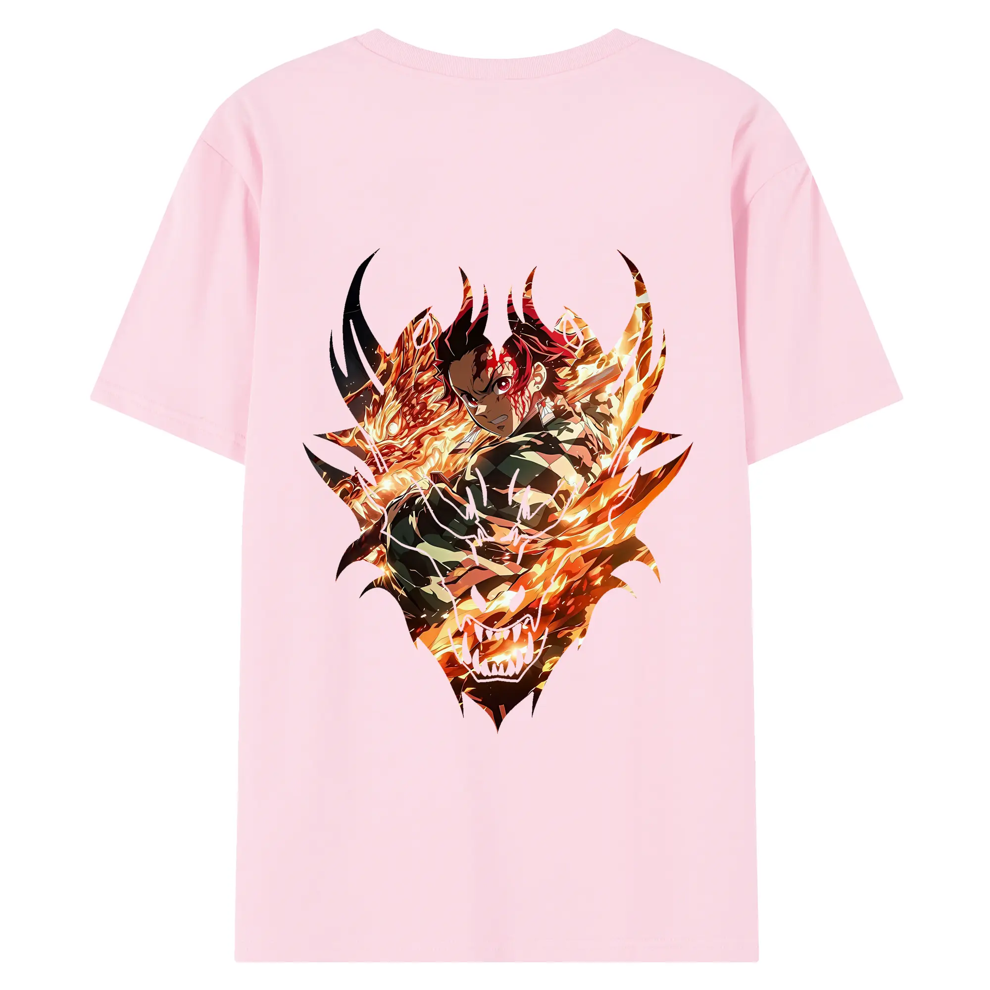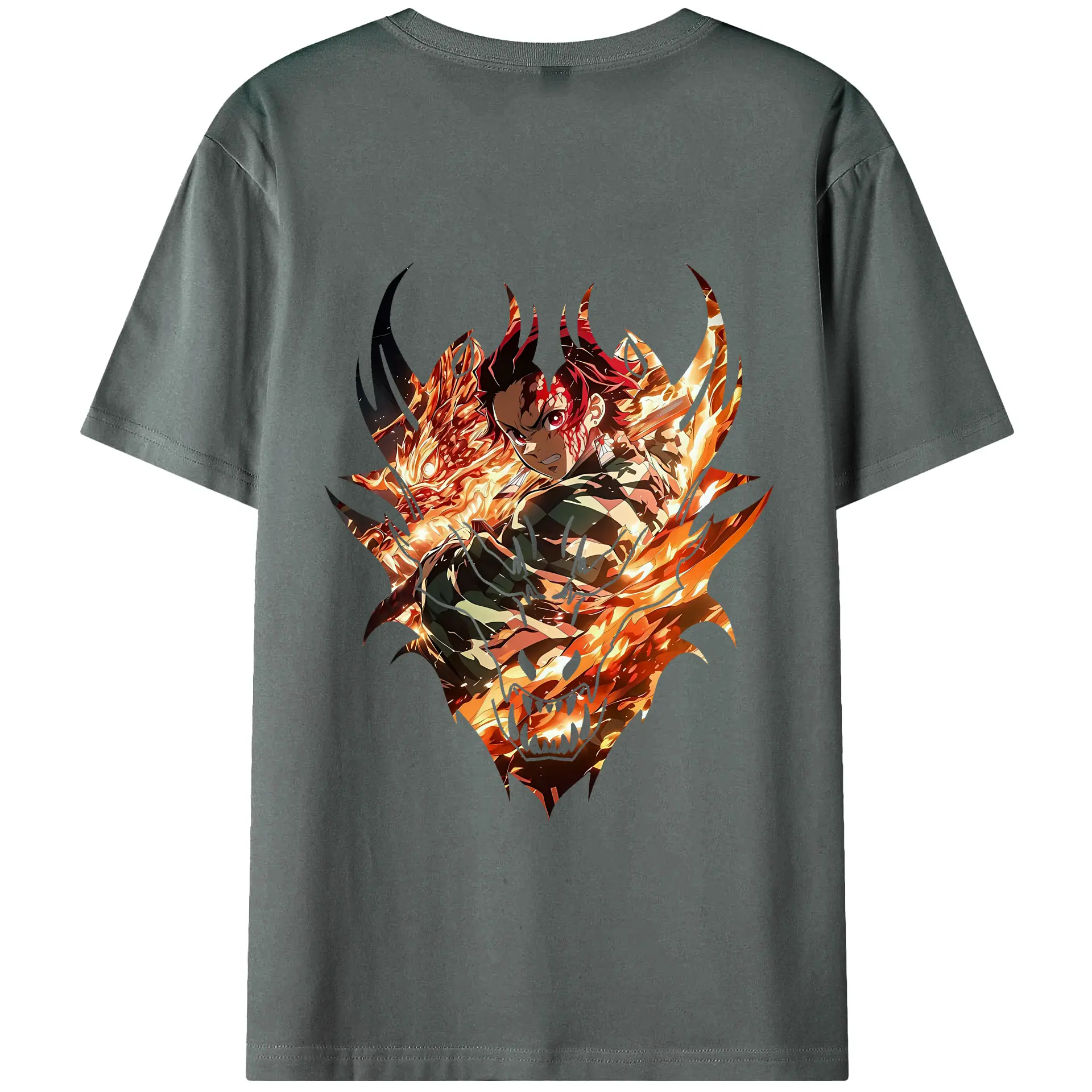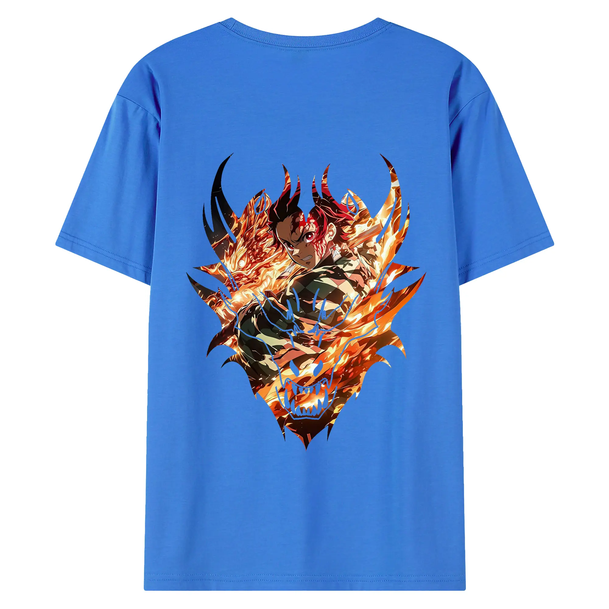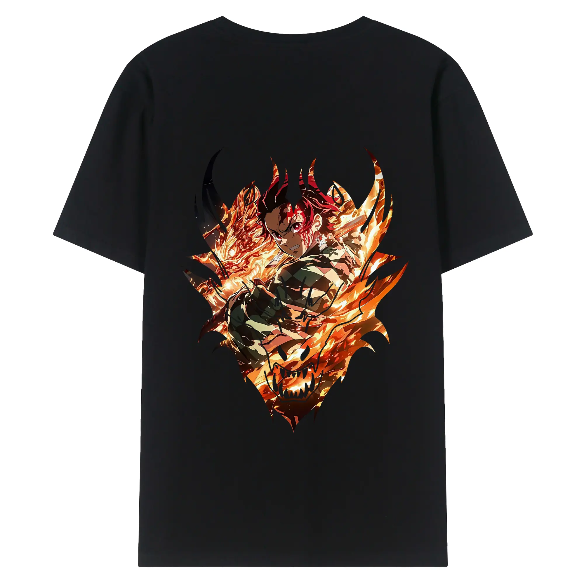 鬼滅の刃 グッズ,竈門 炭治郎 - 綿100% 半袖Tシャツ ・ フロントプリント ・ 快適 通気性 ・ 日常使い 散歩 スポーツ用