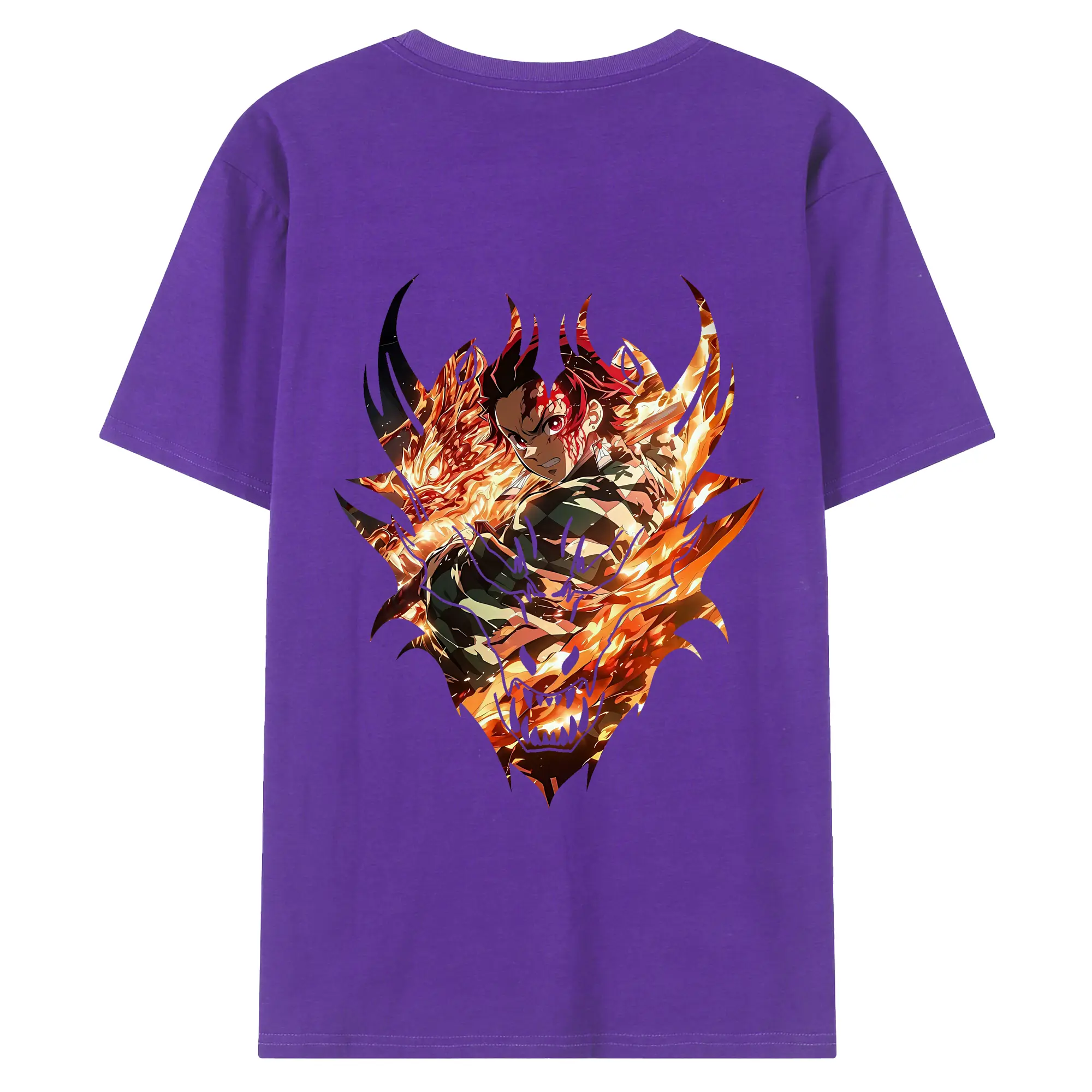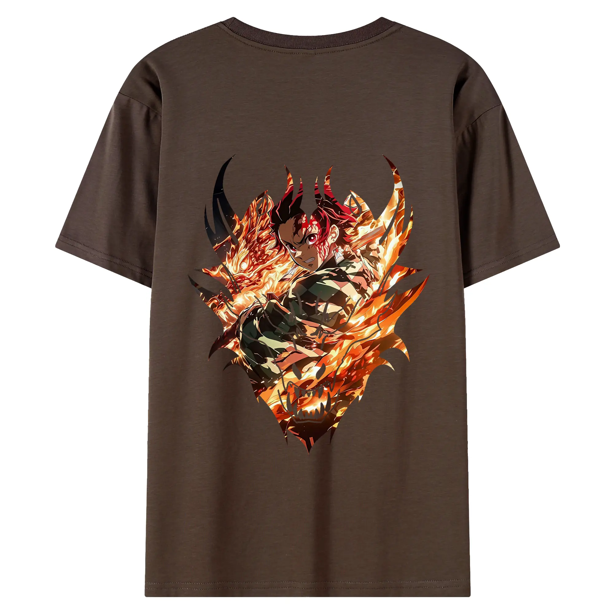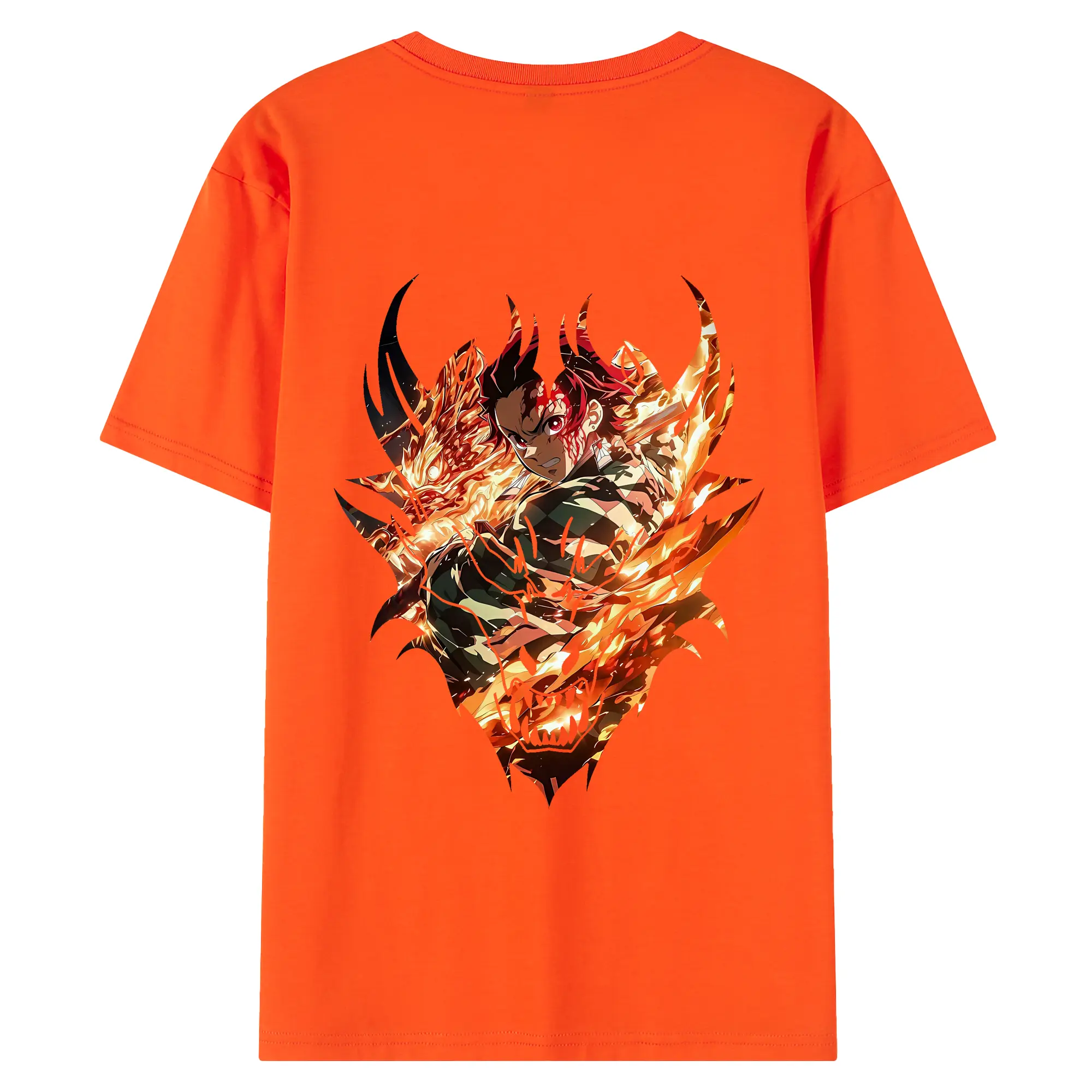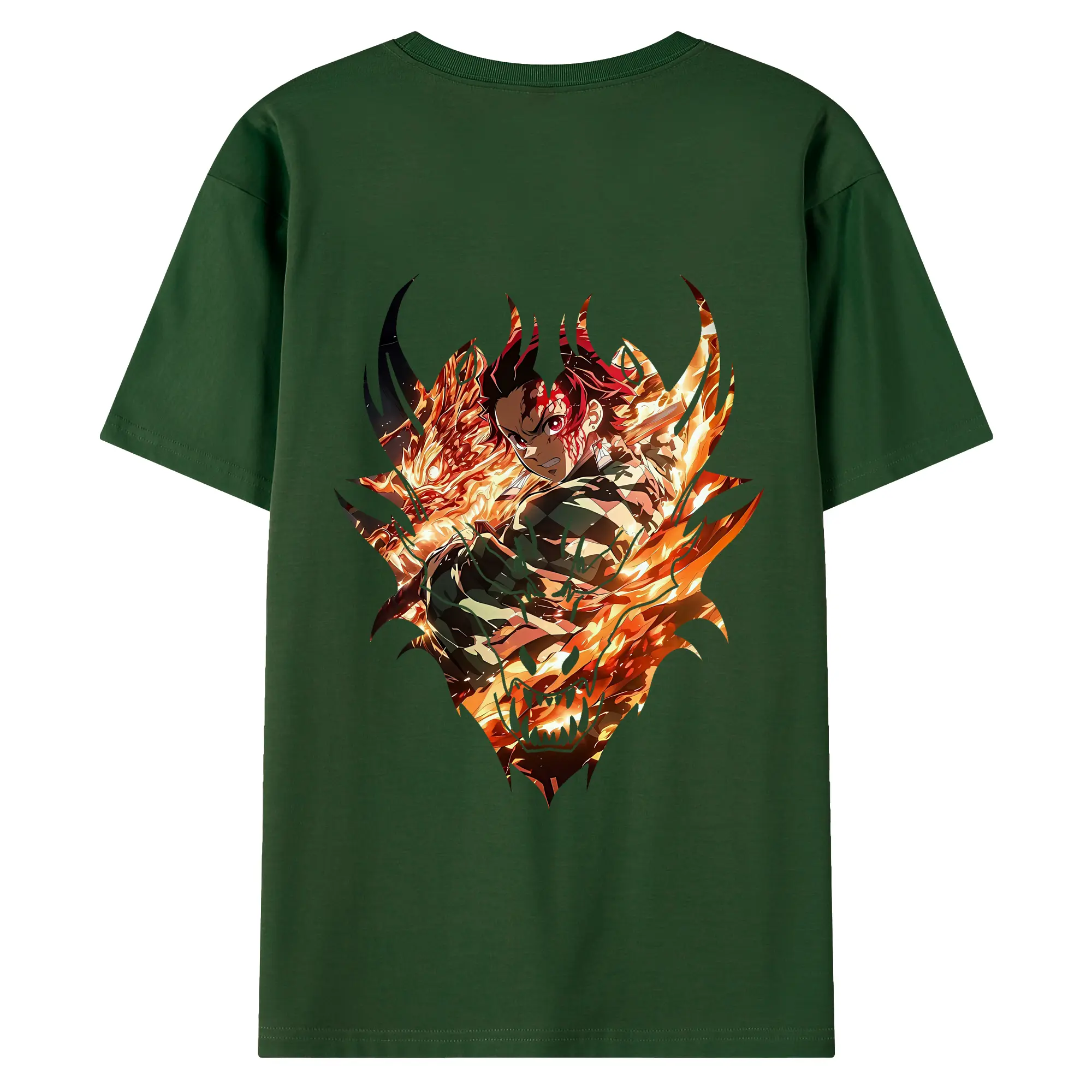 鬼滅の刃 グッズ,竈門 炭治郎 - 綿100% 半袖Tシャツ ・ フロントプリント ・ 快適 通気性 ・ 日常使い 散歩 スポーツ用
