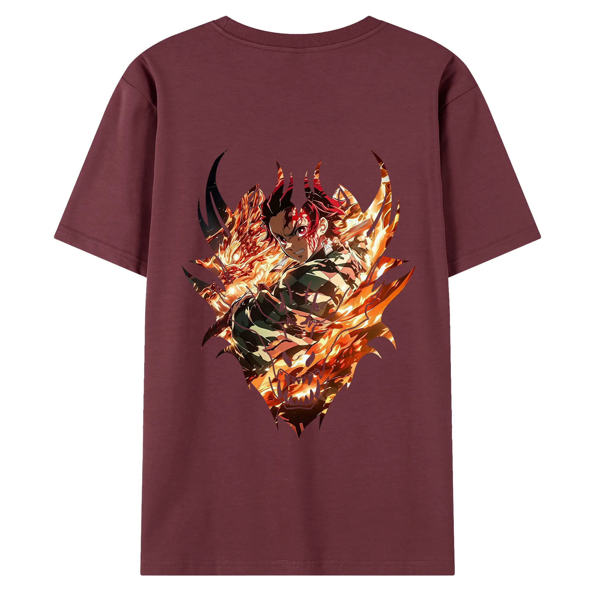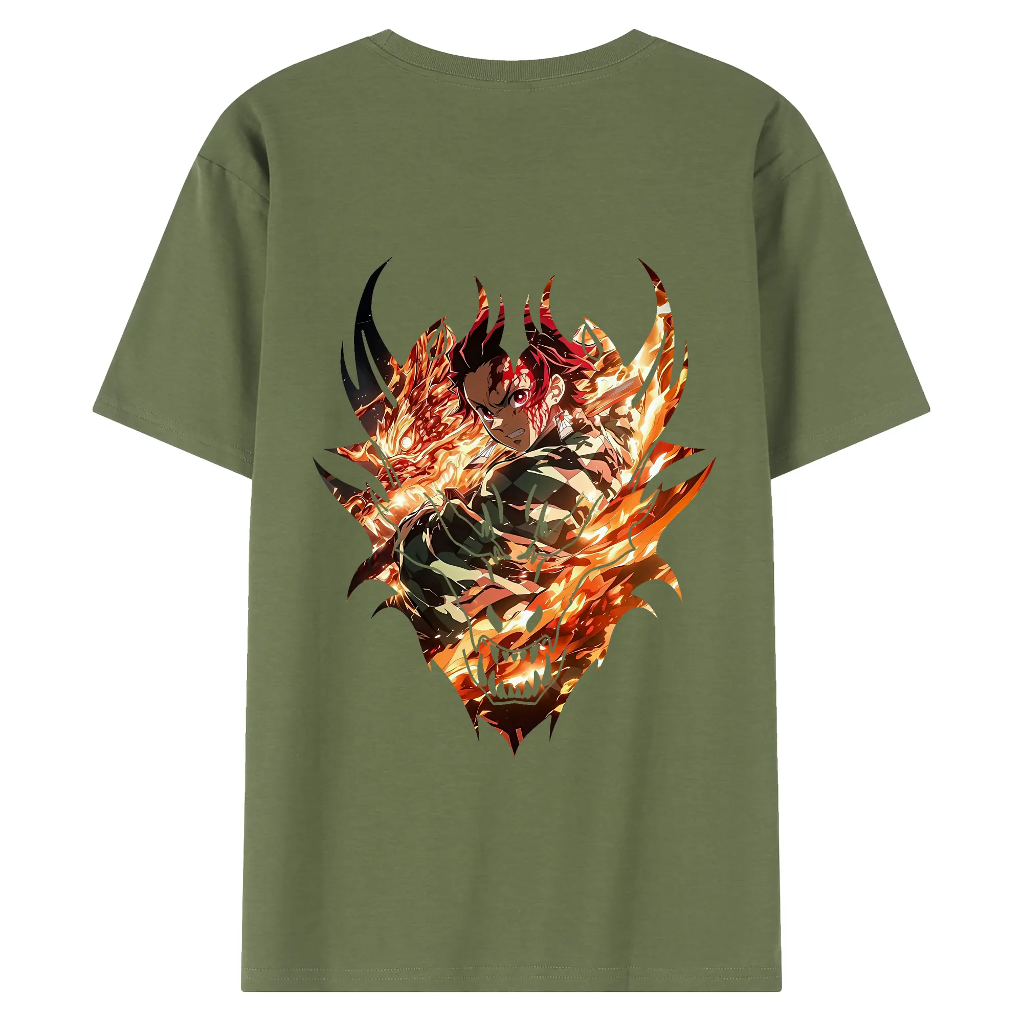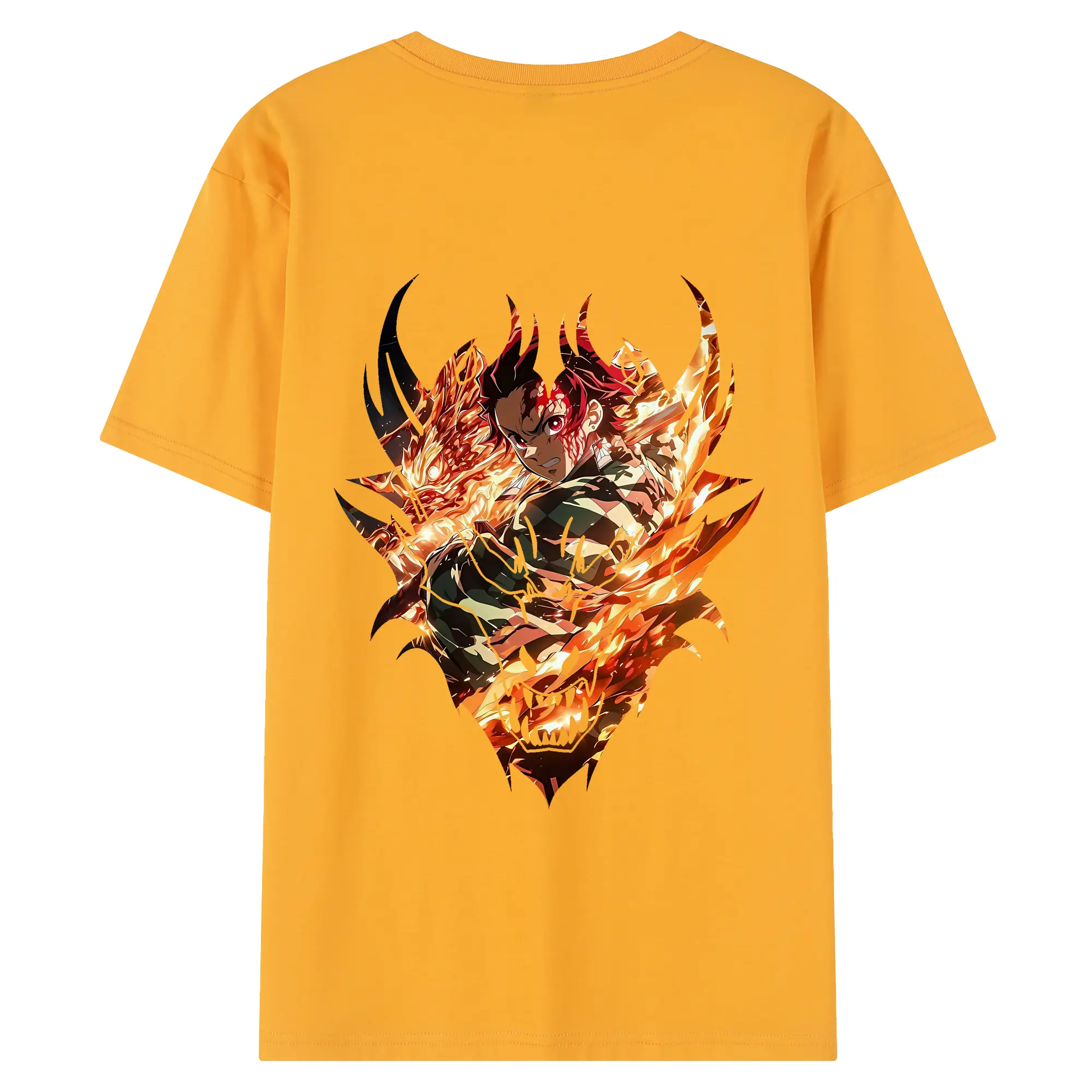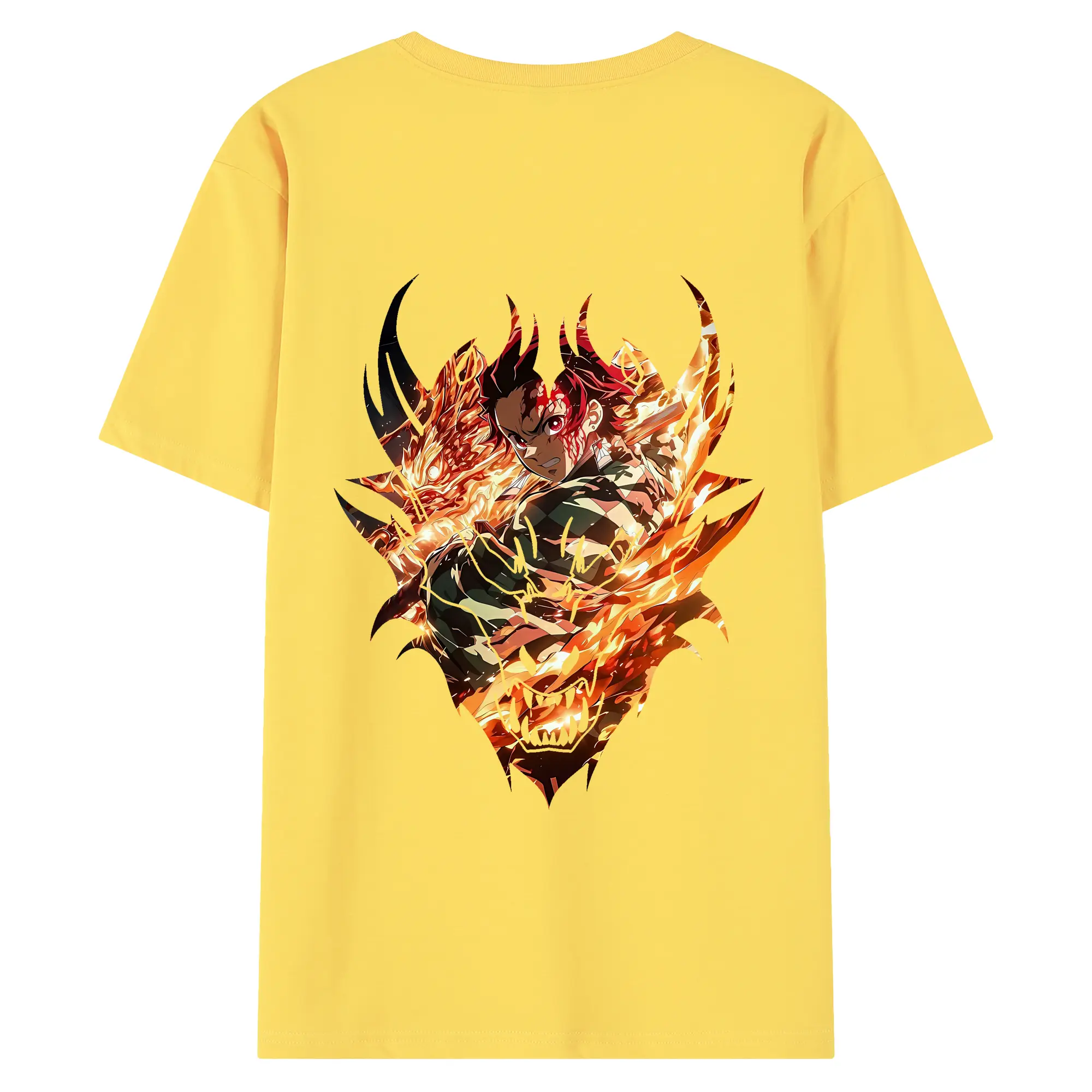 鬼滅の刃 グッズ,竈門 炭治郎 - 綿100% 半袖Tシャツ ・ フロントプリント ・ 快適 通気性 ・ 日常使い 散歩 スポーツ用