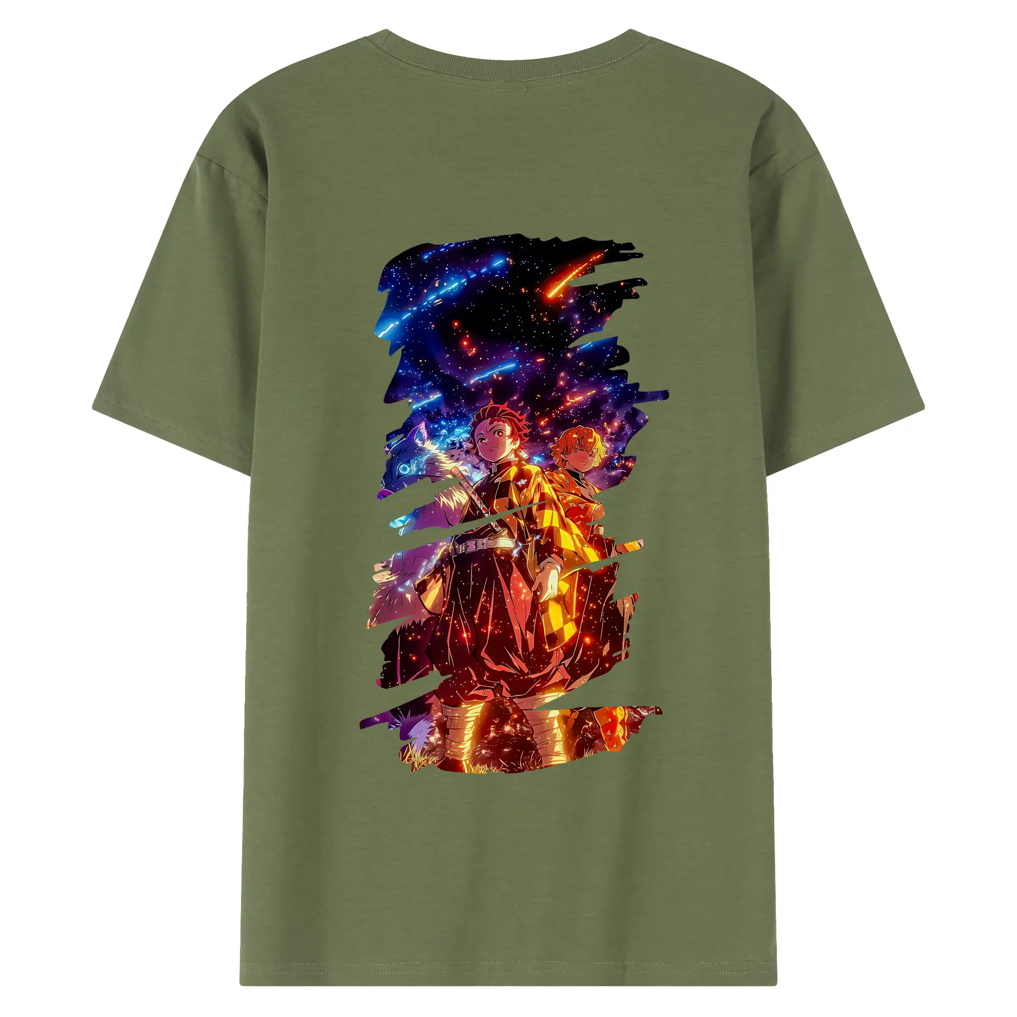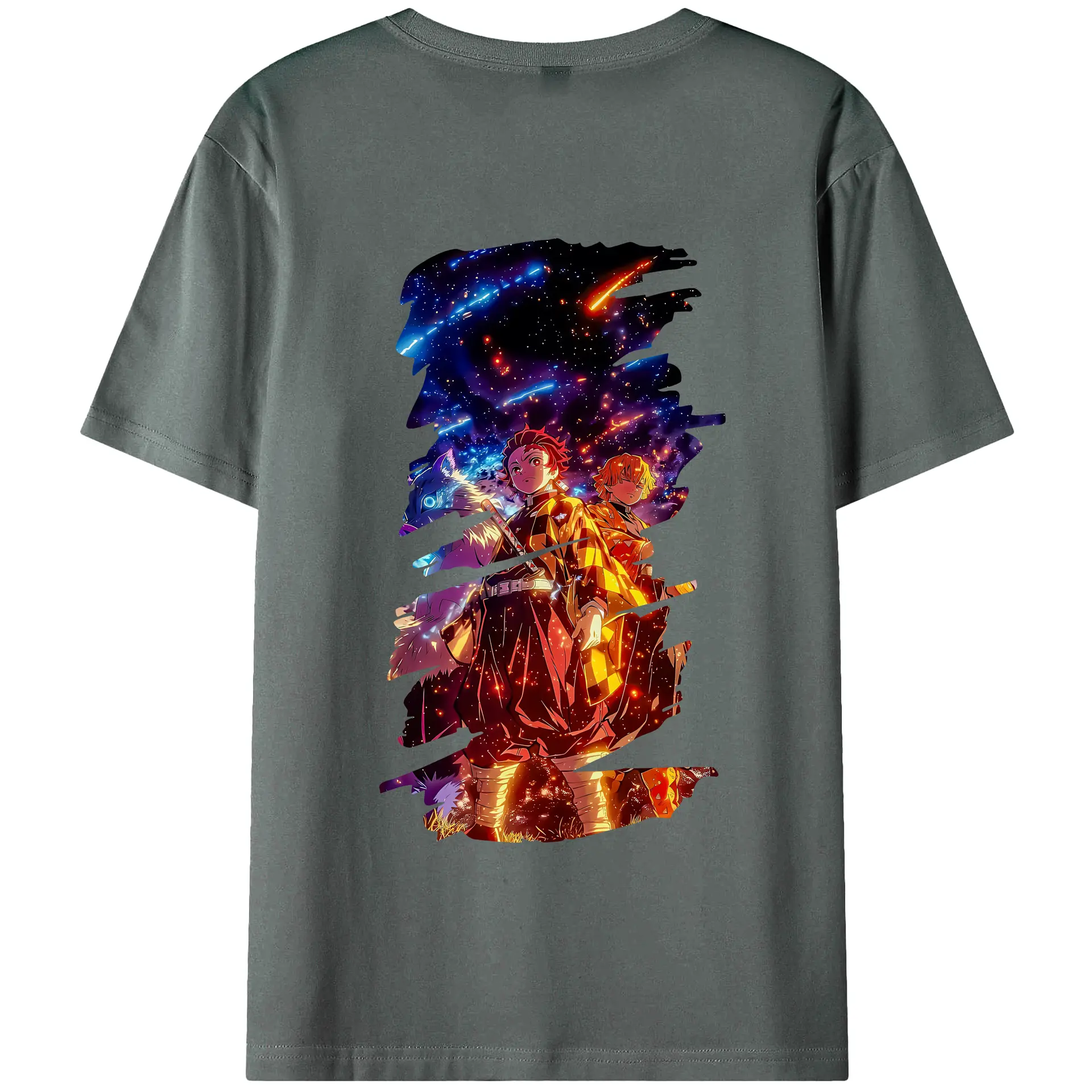 鬼滅の刃 グッズ,竈門 炭治郎 - 綿100% 半袖Tシャツ ・ フロントプリント ・ 快適 通気性 ・ 日常使い 散歩 スポーツ用