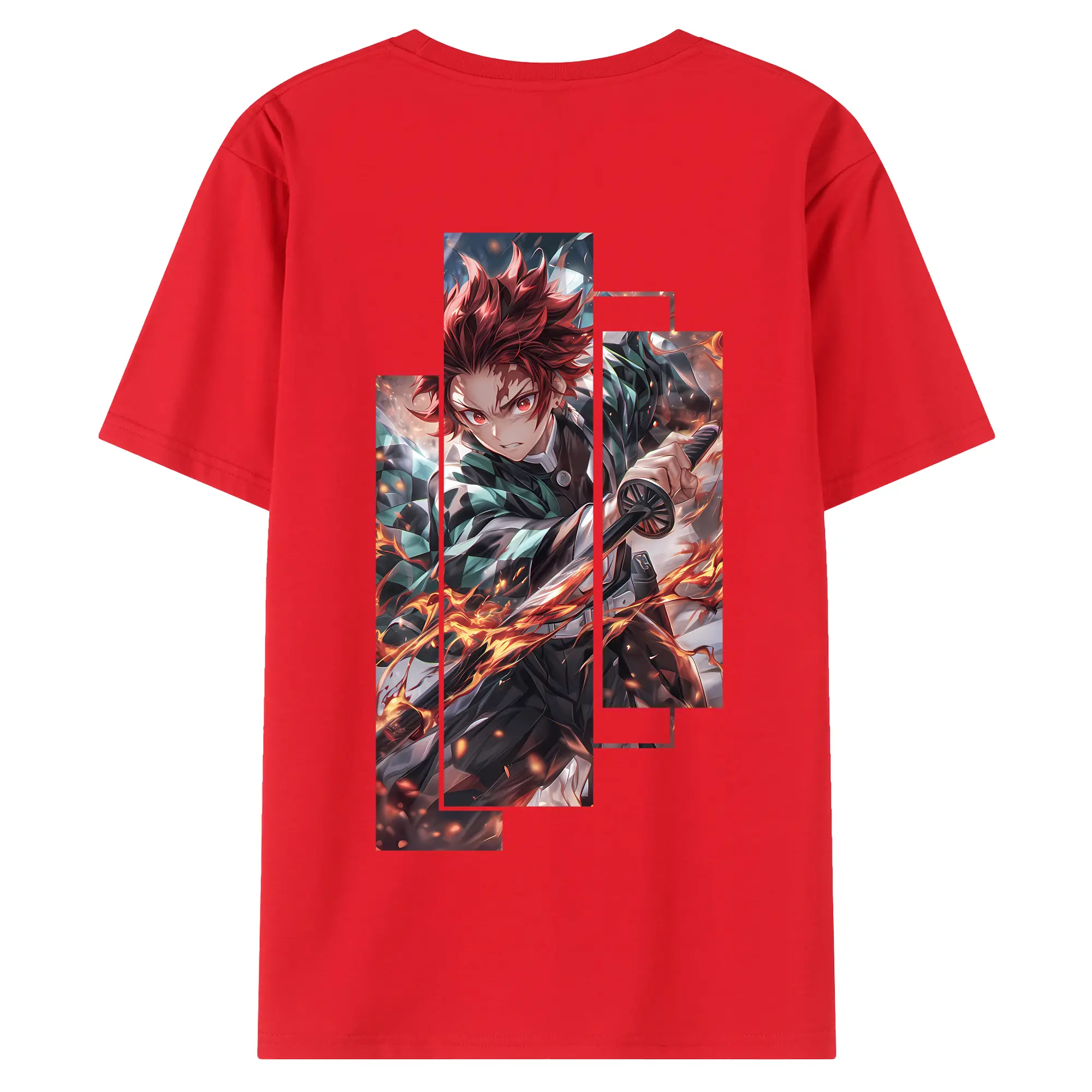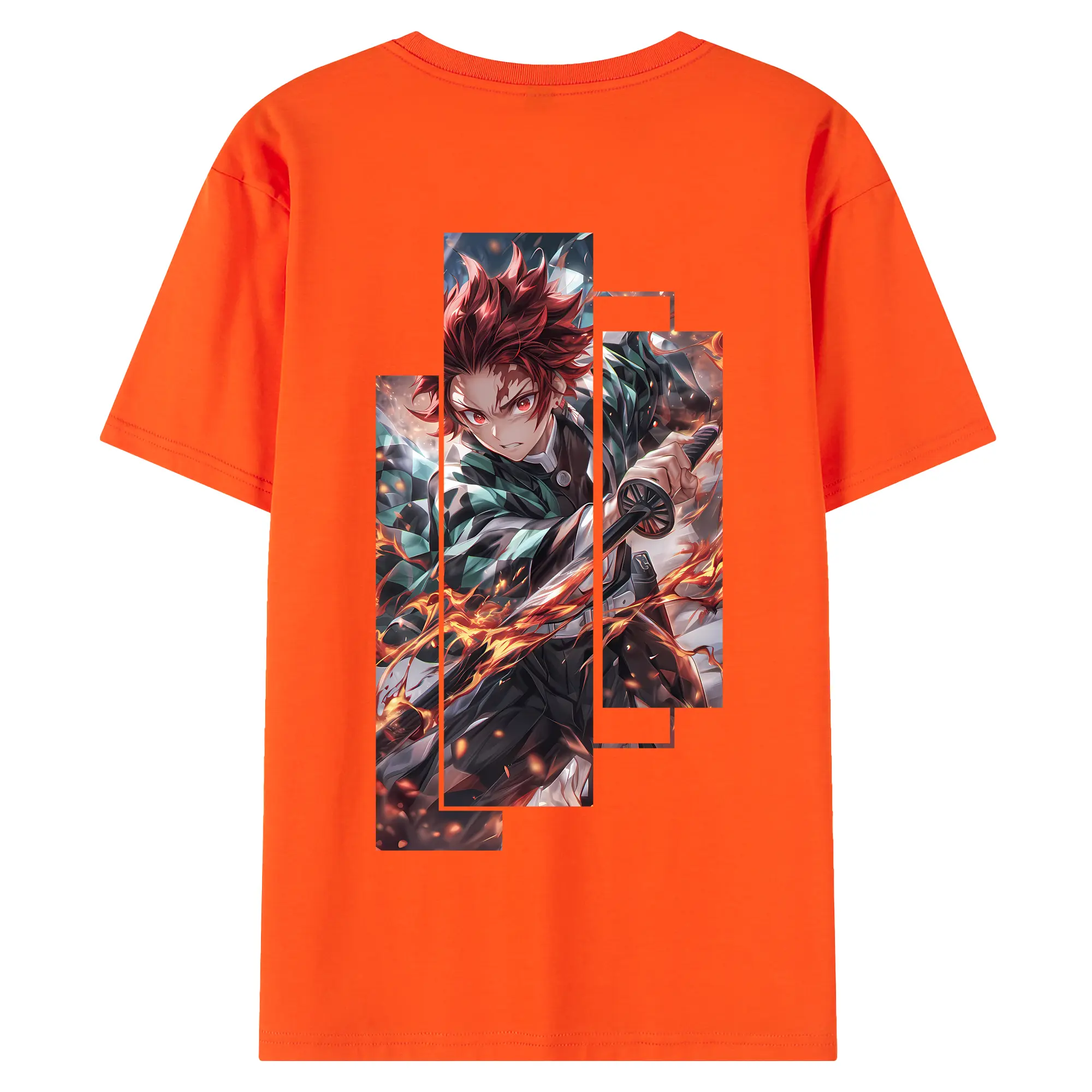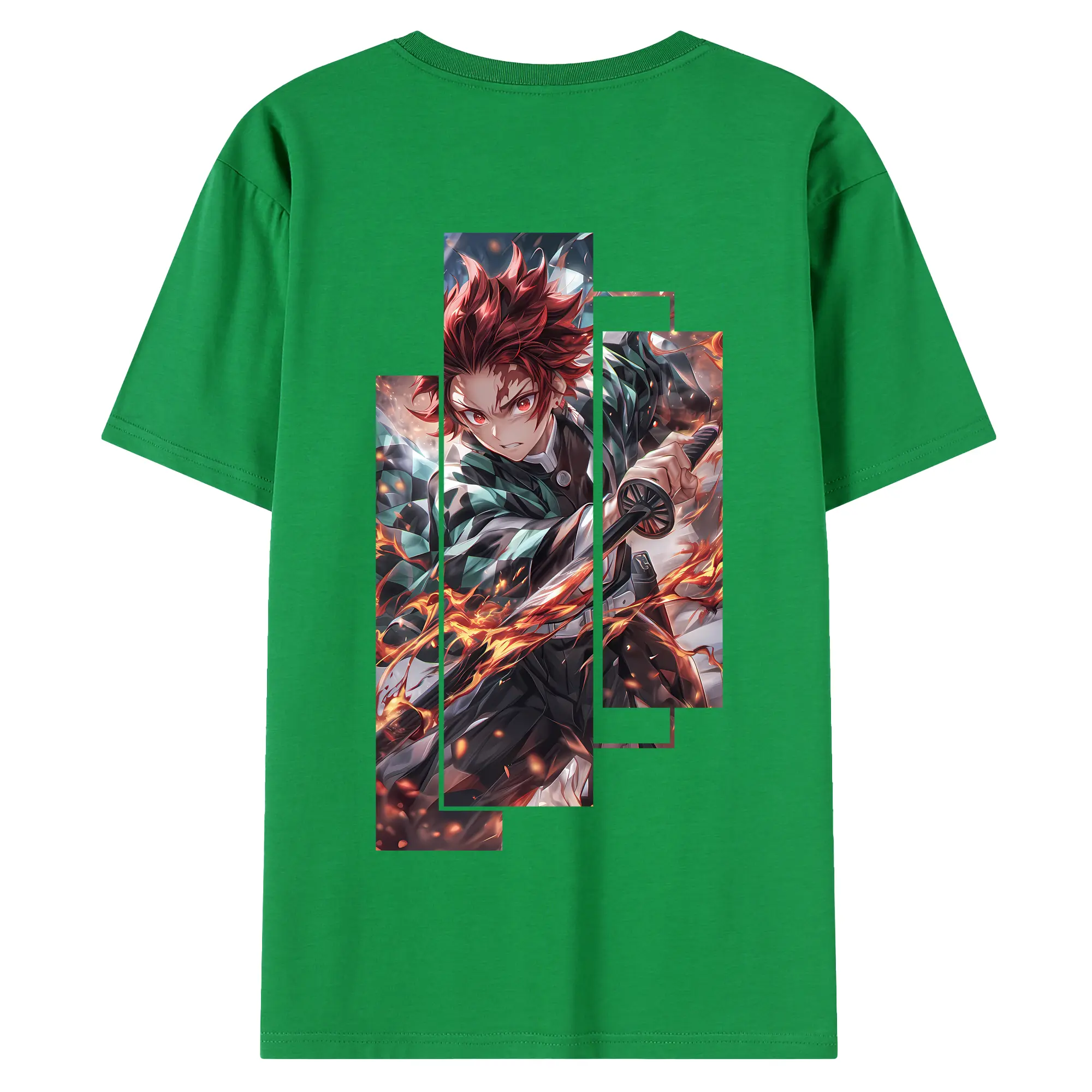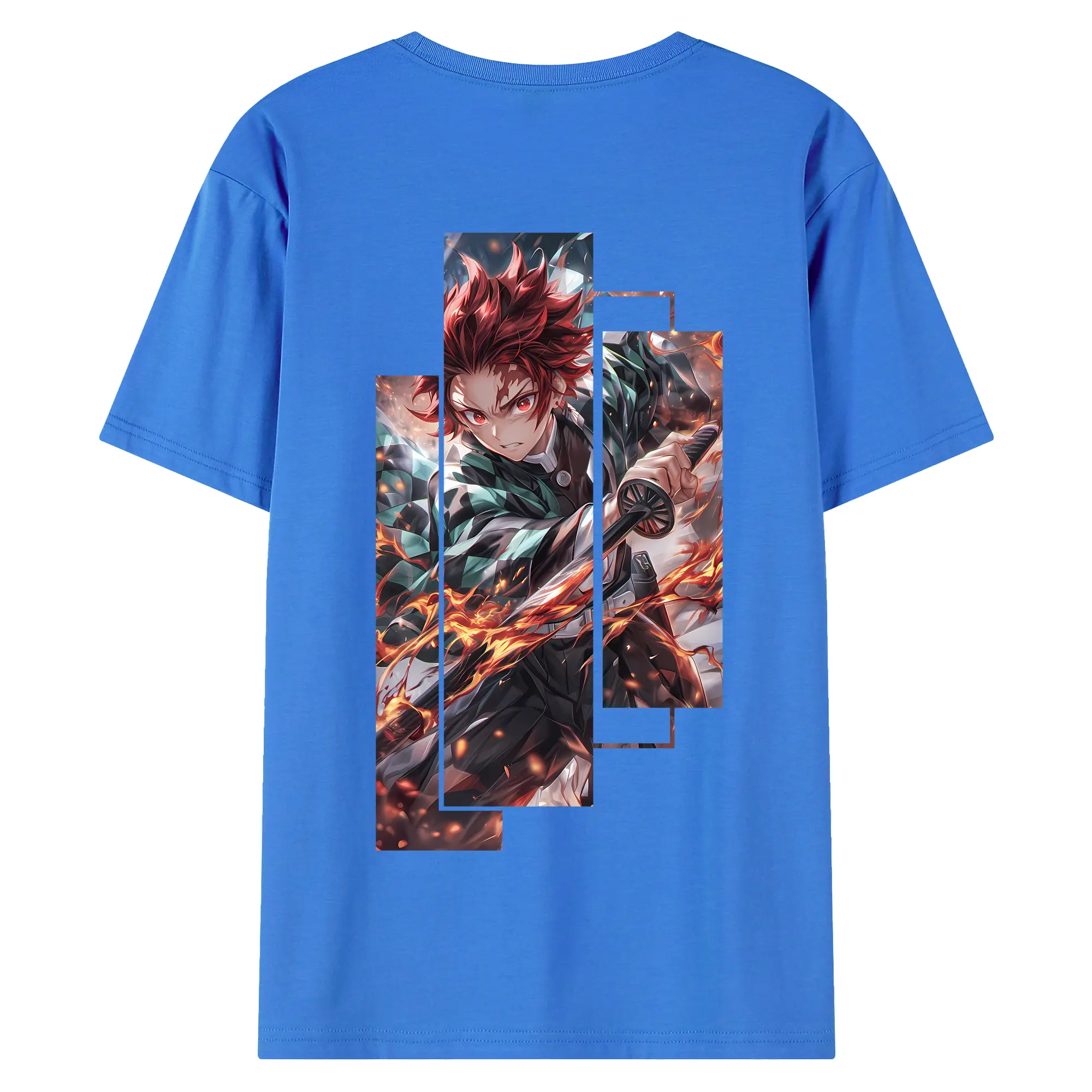 鬼滅の刃 グッズ,竈門 炭治郎 - 綿100% 半袖Tシャツ ・ フロントプリント ・ 快適 通気性 ・ 日常使い 散歩 スポーツ用