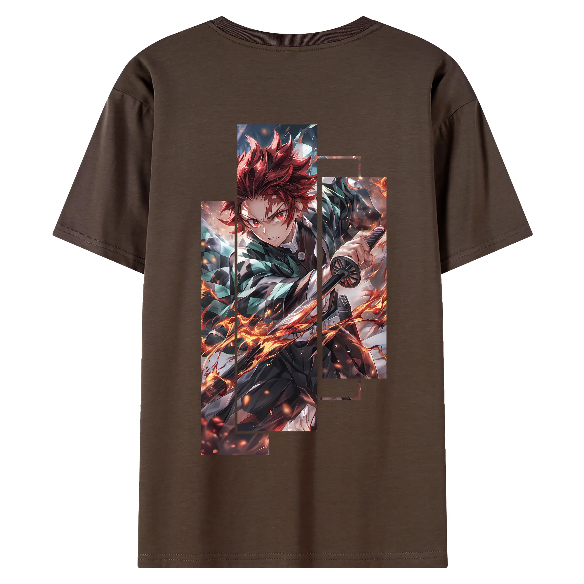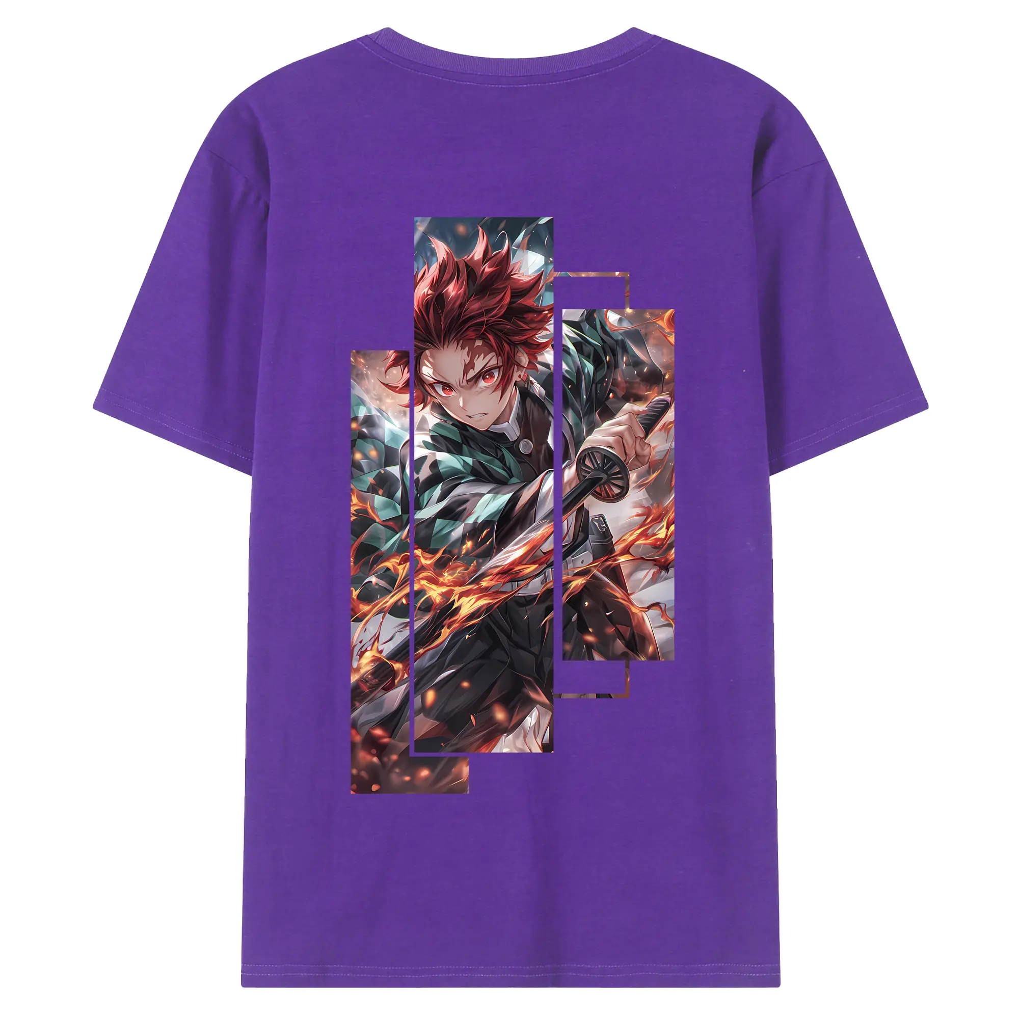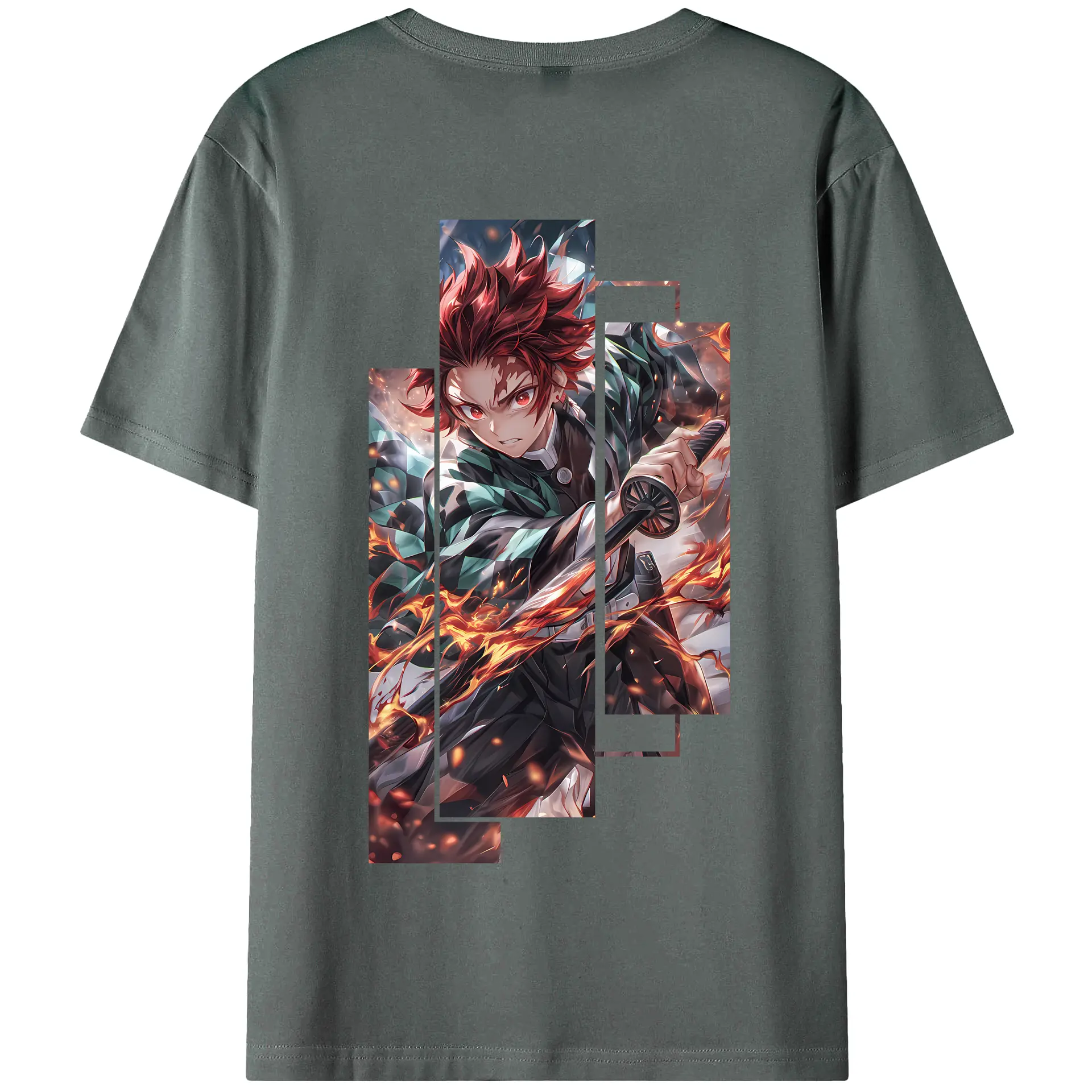 鬼滅の刃 グッズ,竈門 炭治郎 - 綿100% 半袖Tシャツ ・ フロントプリント ・ 快適 通気性 ・ 日常使い 散歩 スポーツ用
