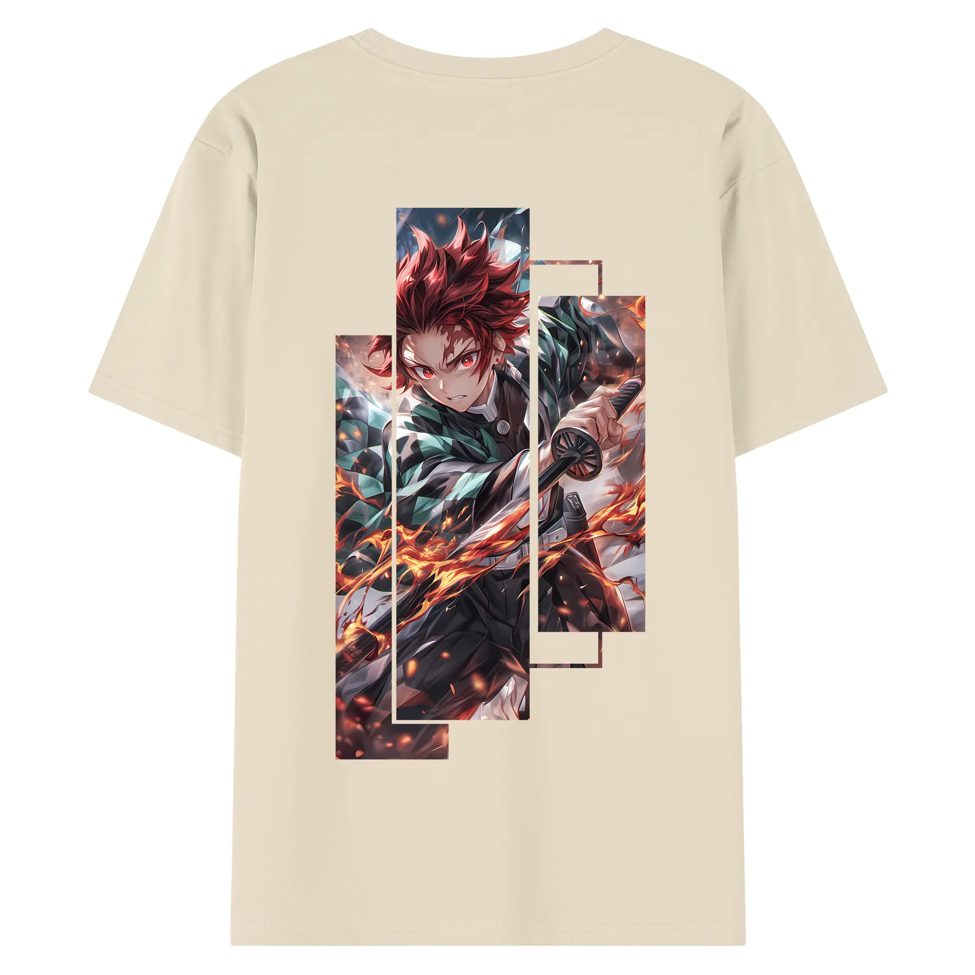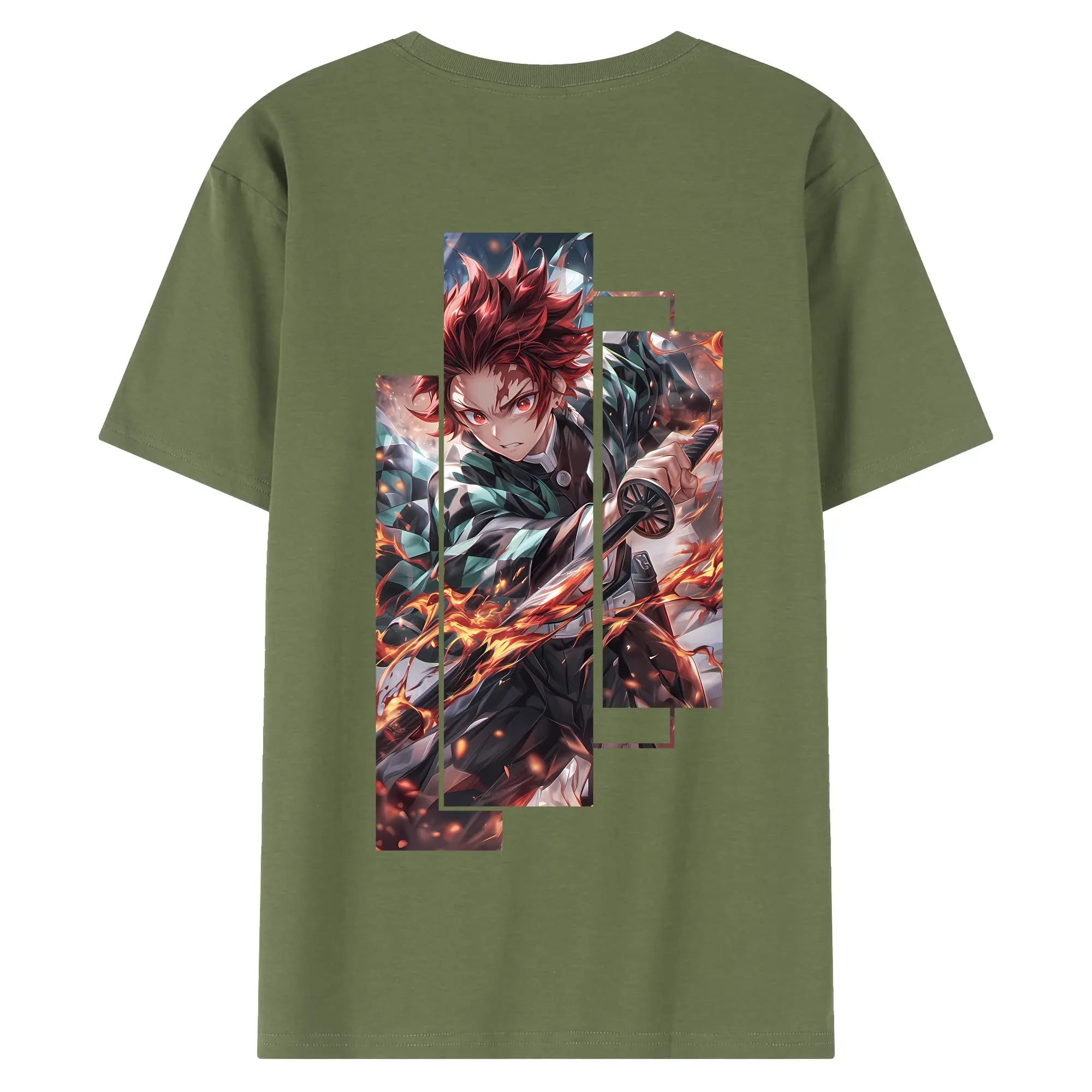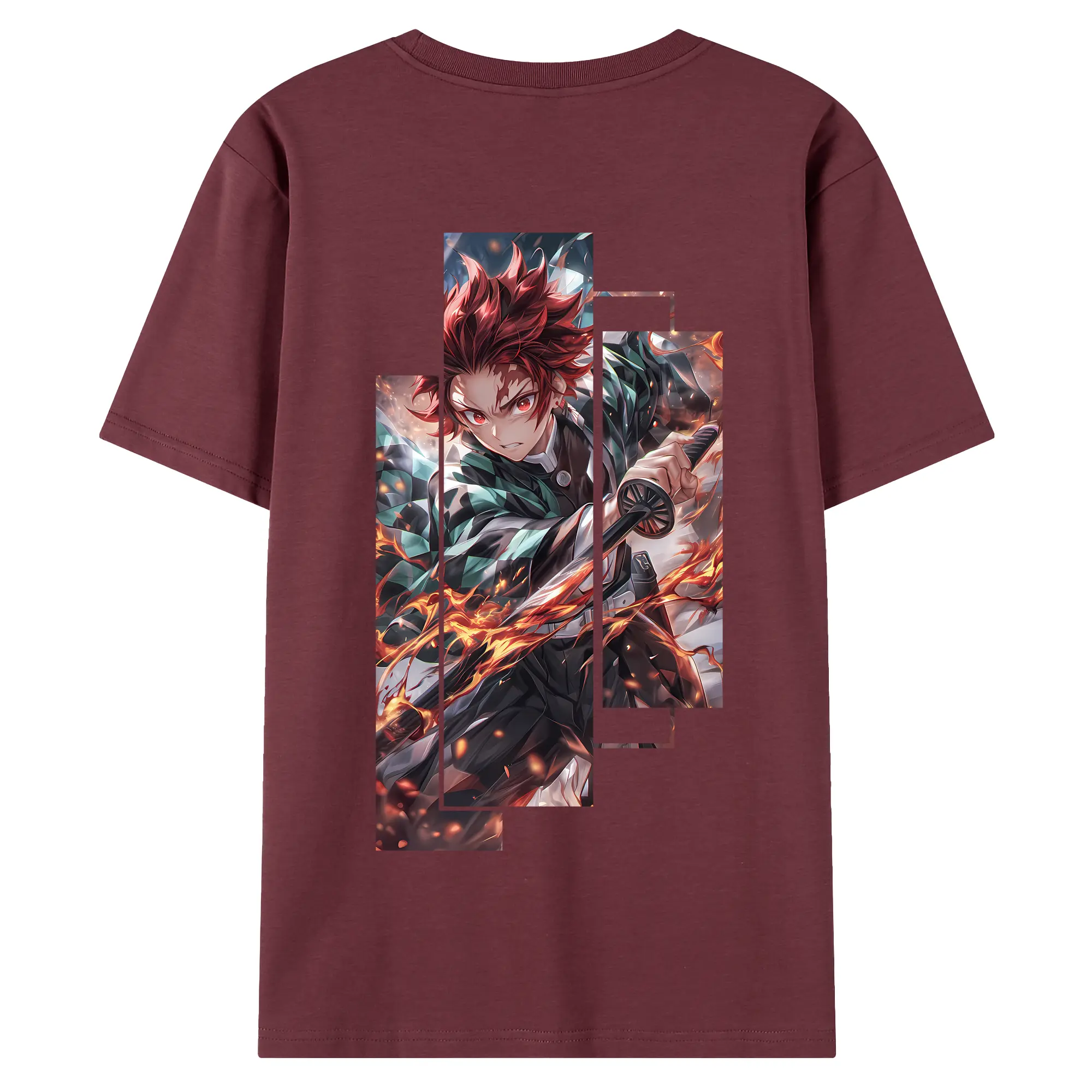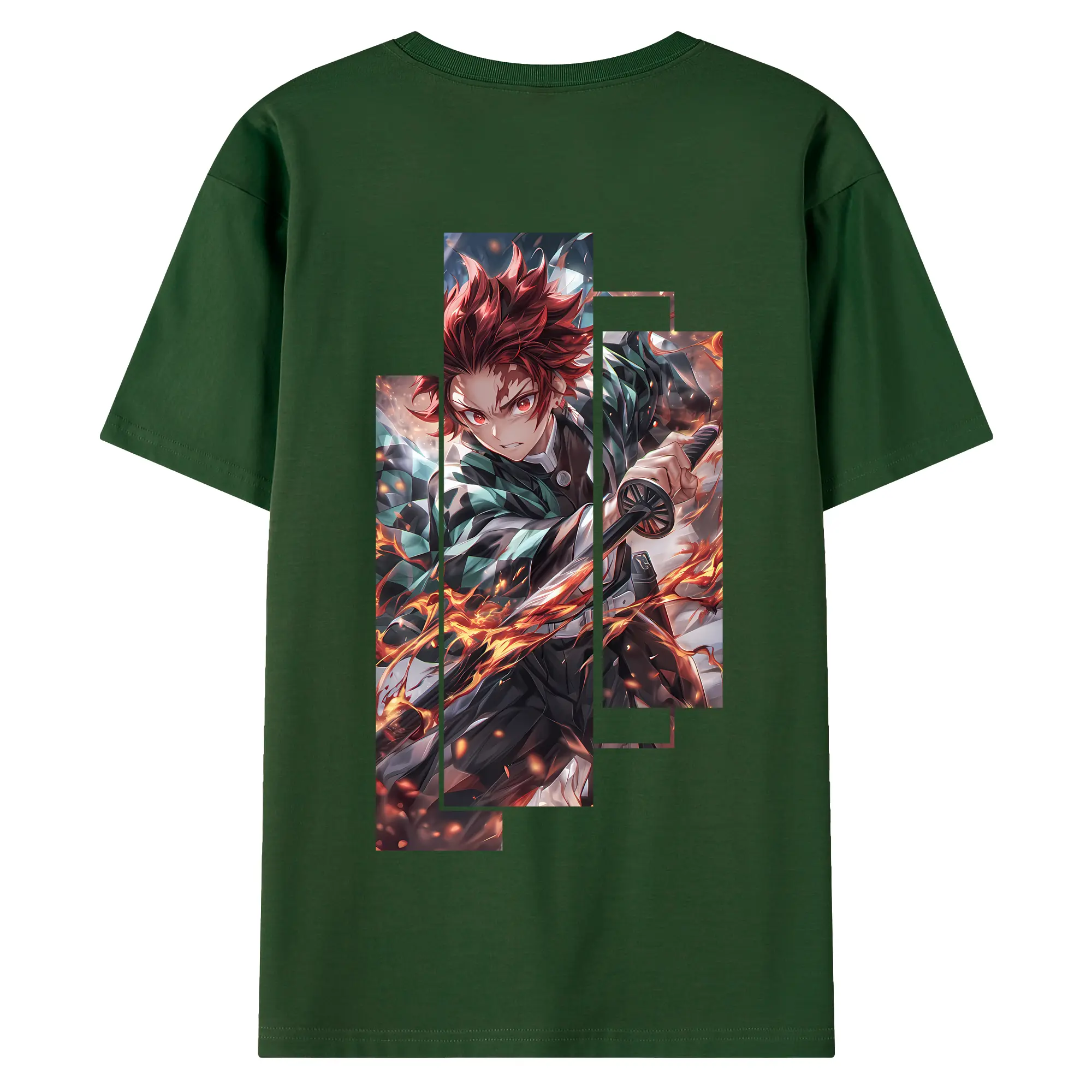 鬼滅の刃 グッズ,竈門 炭治郎 - 綿100% 半袖Tシャツ ・ フロントプリント ・ 快適 通気性 ・ 日常使い 散歩 スポーツ用