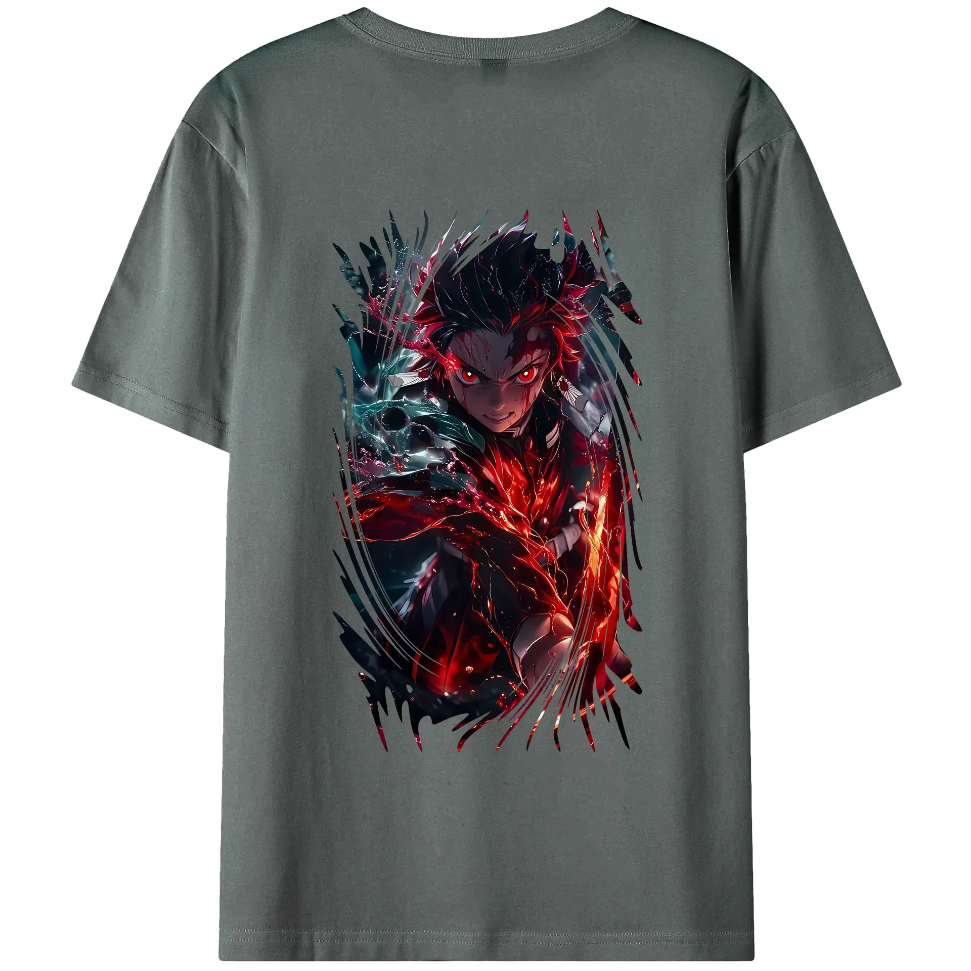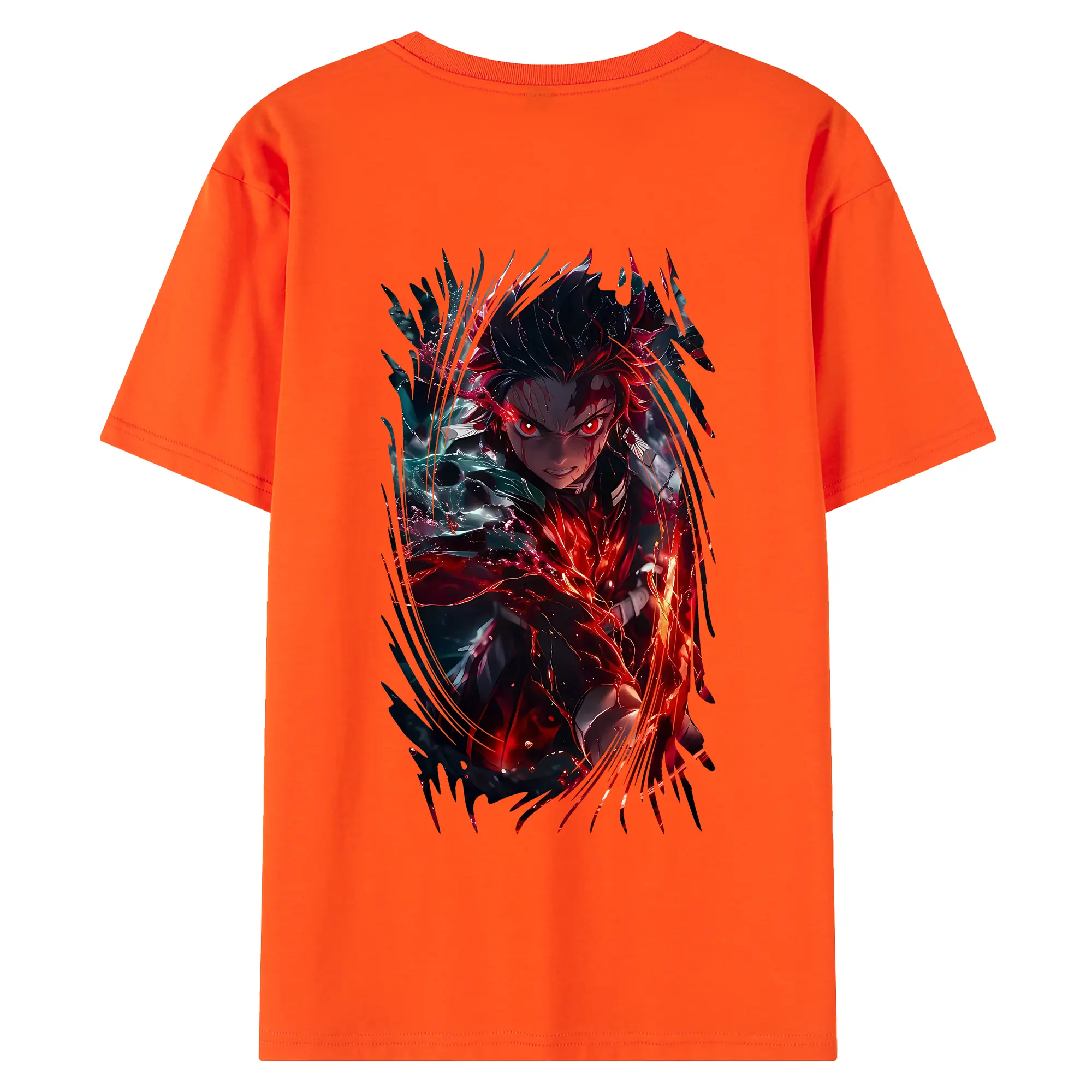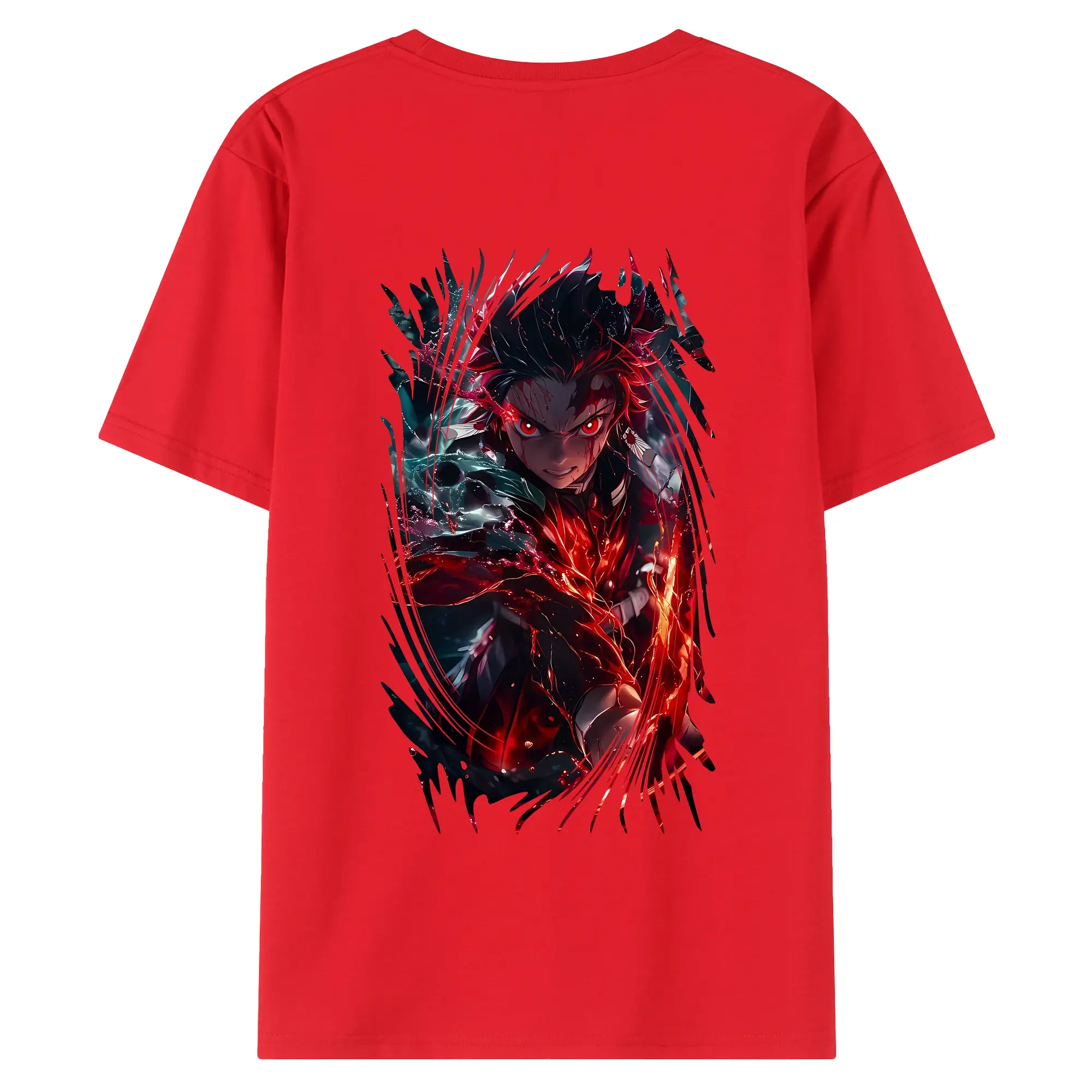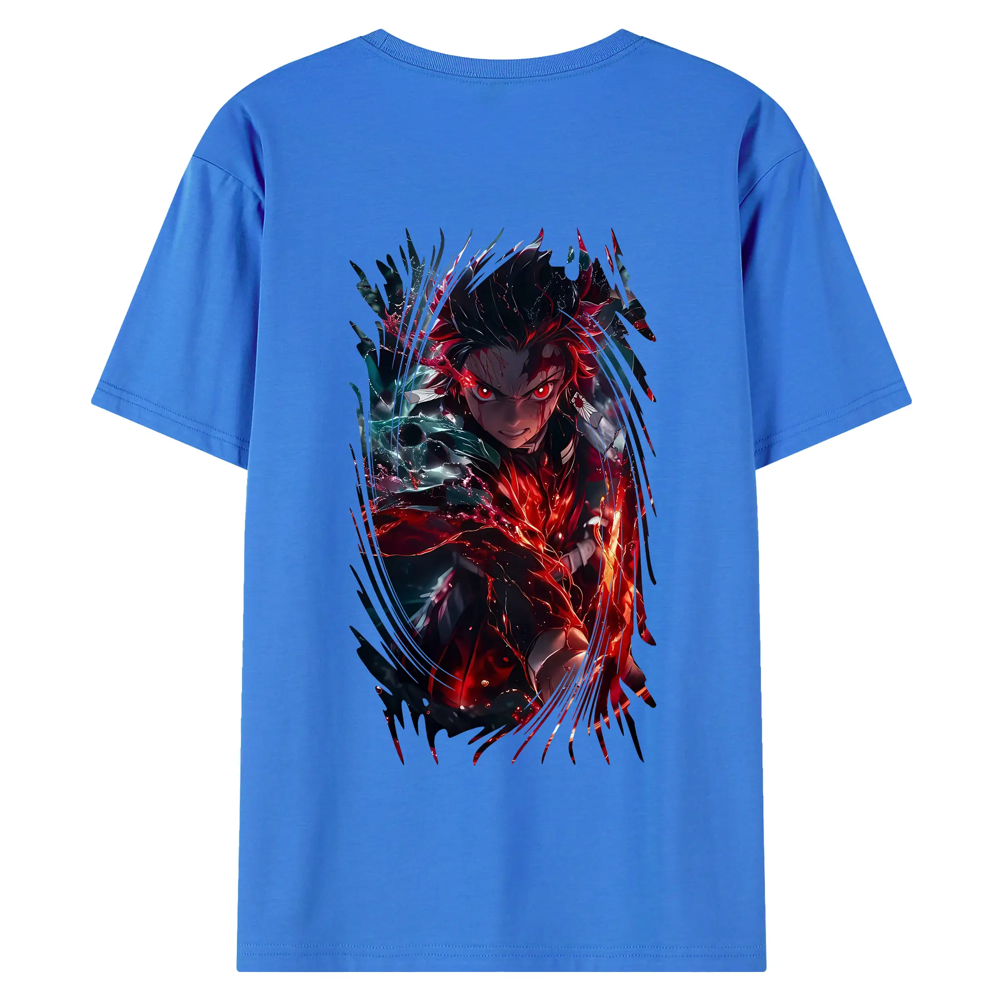 鬼滅の刃 グッズ,竈門 炭治郎 - 綿100% 半袖Tシャツ ・ フロントプリント ・ 快適 通気性 ・ 日常使い 散歩 スポーツ用