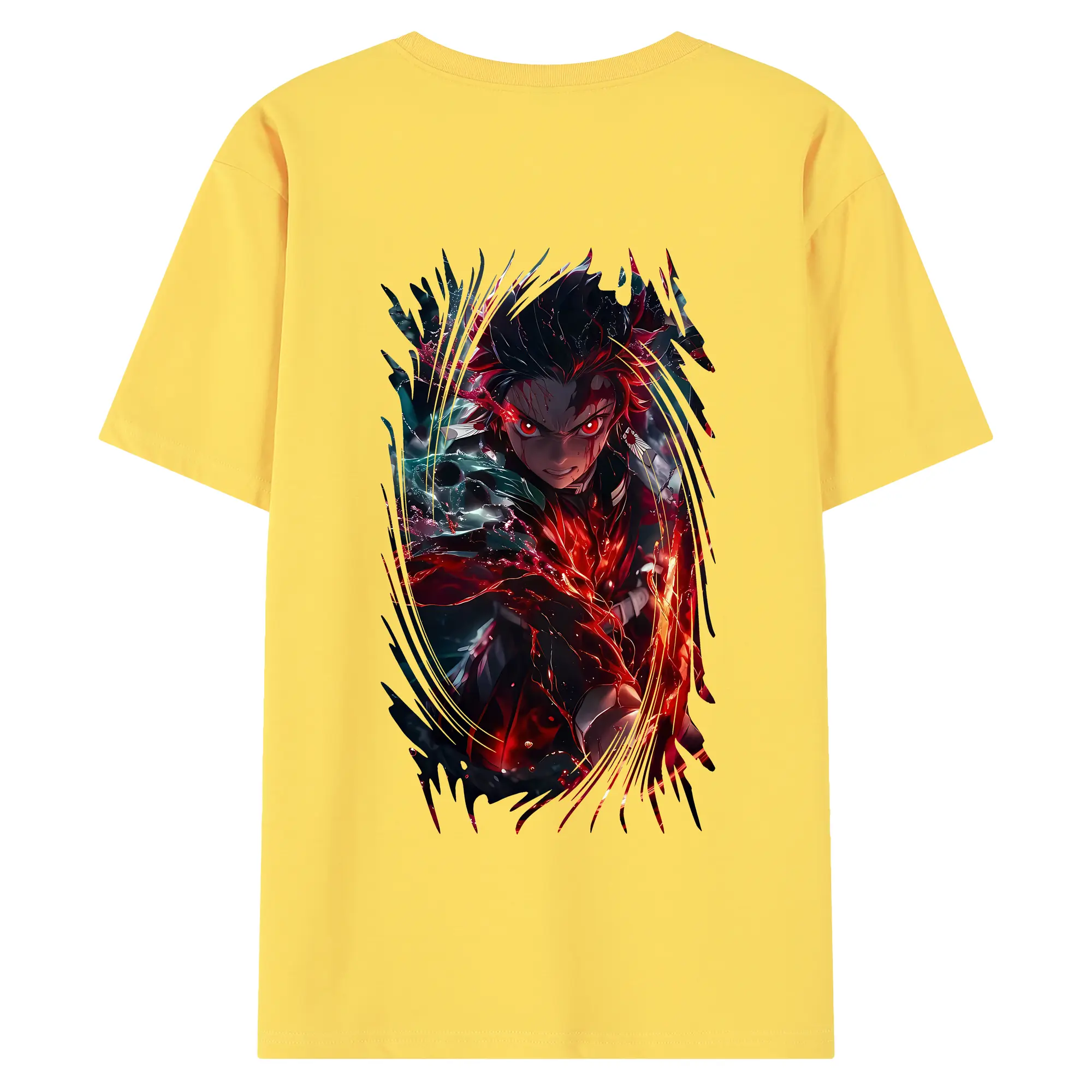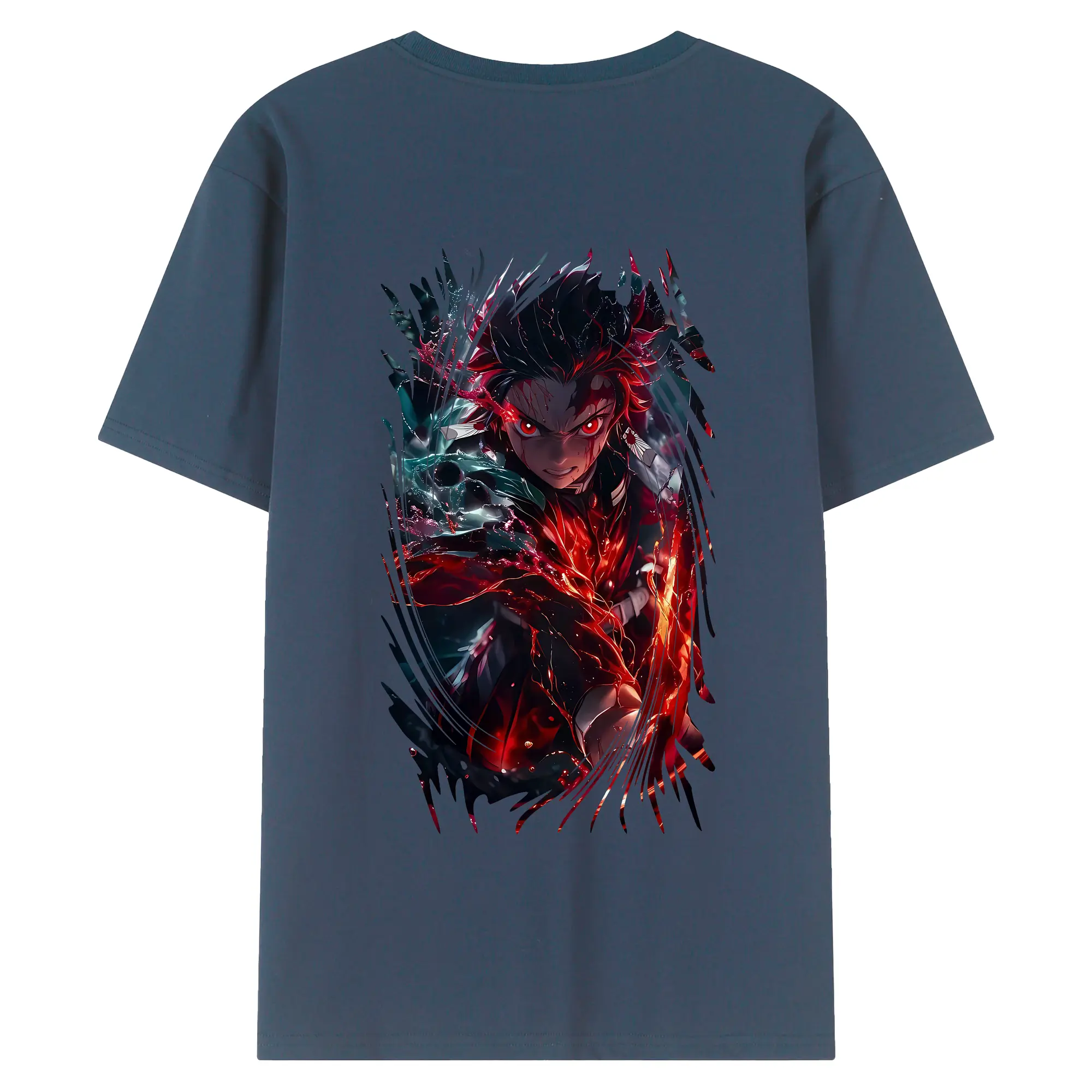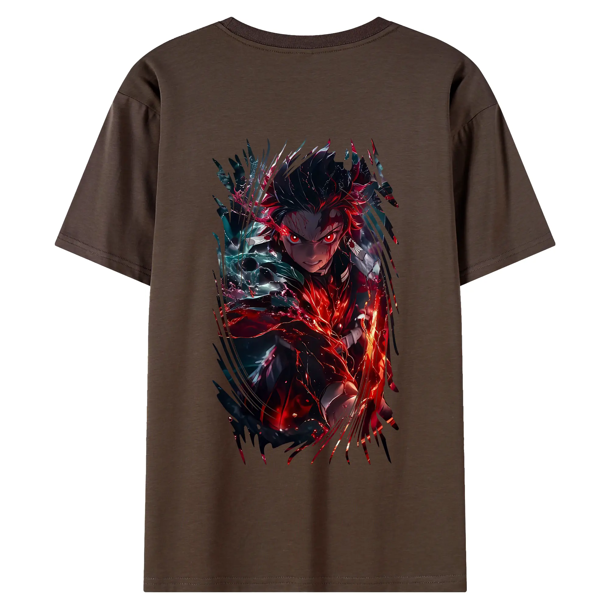 鬼滅の刃 グッズ,竈門 炭治郎 - 綿100% 半袖Tシャツ ・ フロントプリント ・ 快適 通気性 ・ 日常使い 散歩 スポーツ用