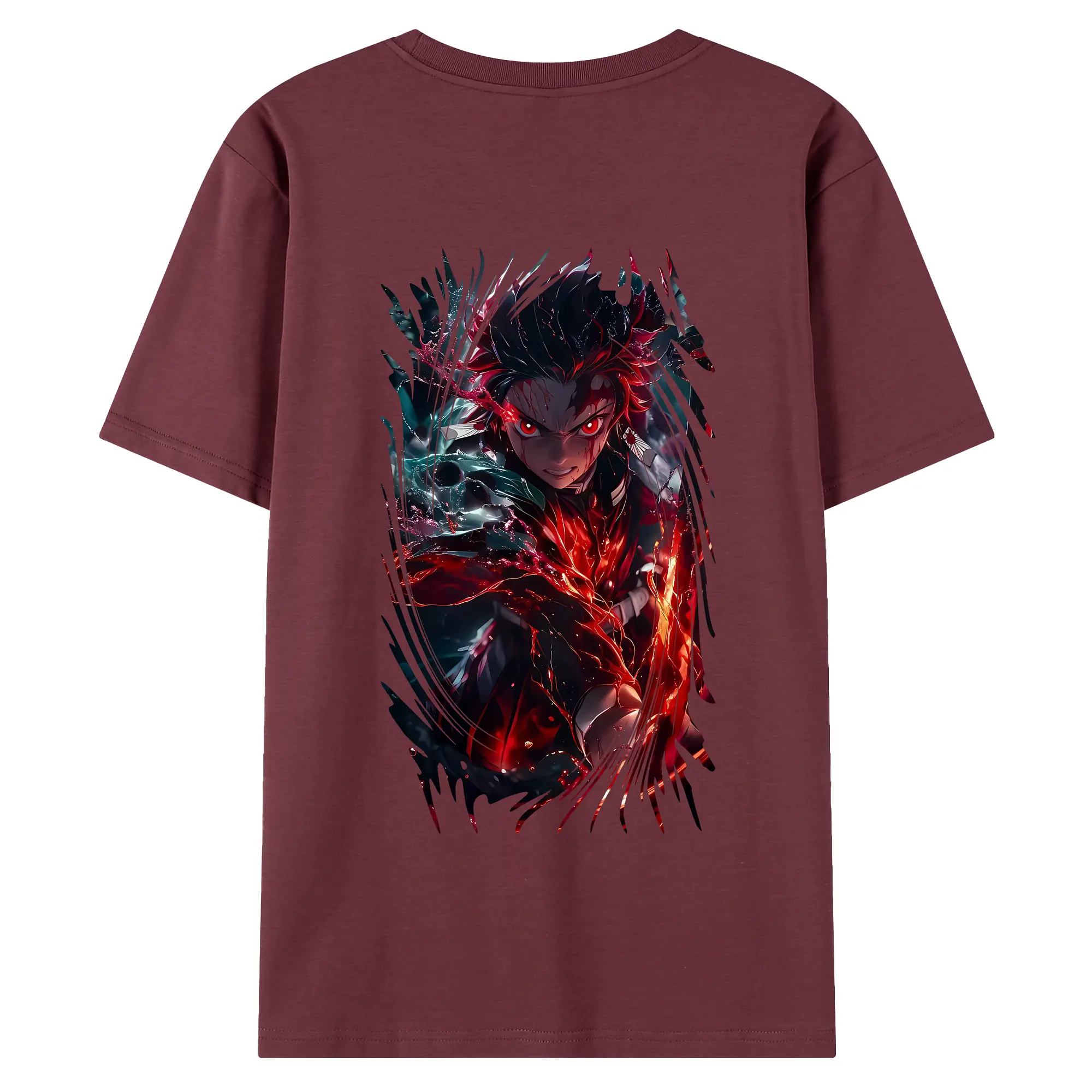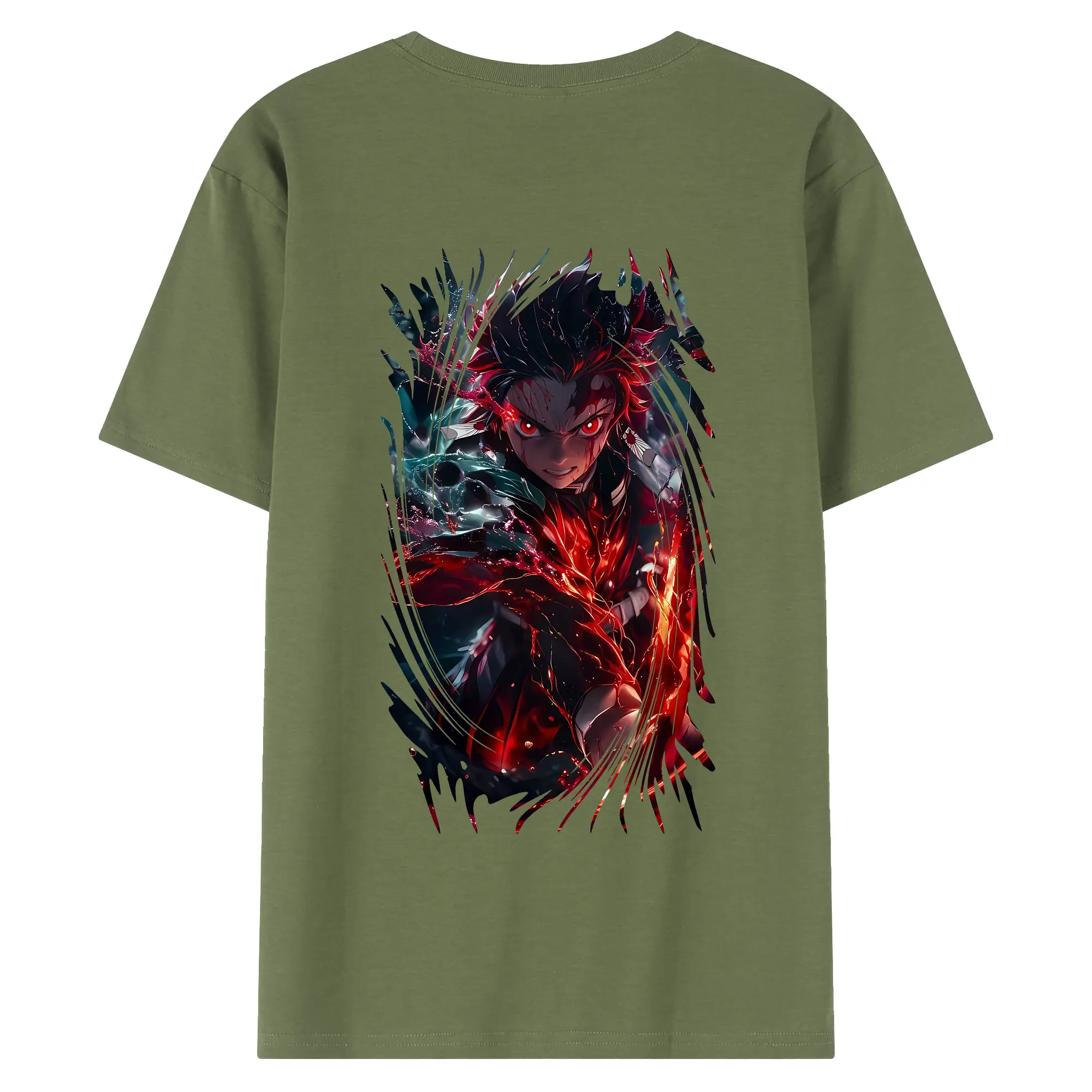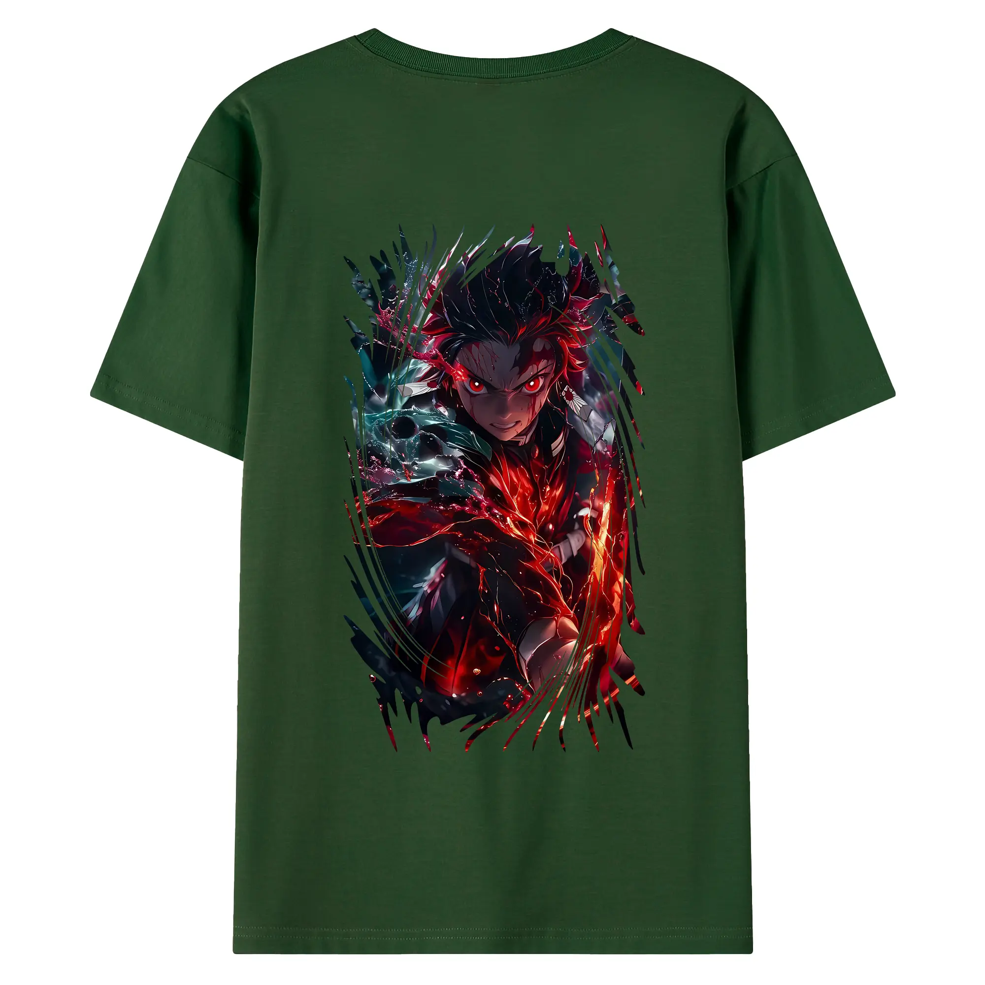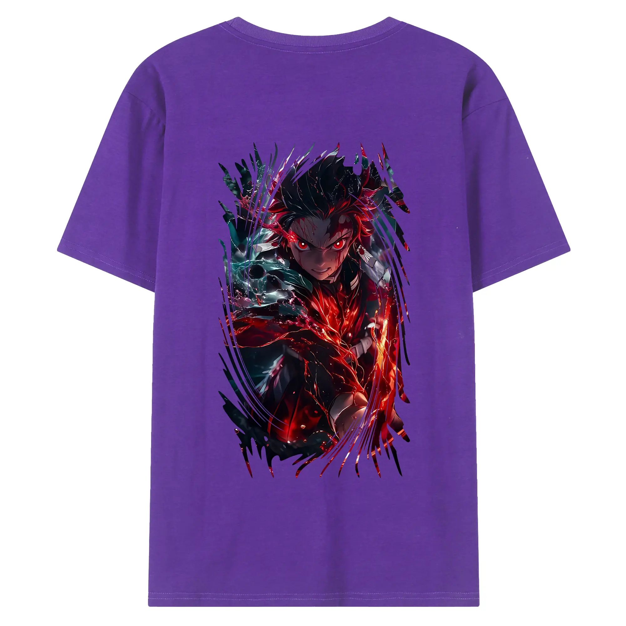 鬼滅の刃 グッズ,竈門 炭治郎 - 綿100% 半袖Tシャツ ・ フロントプリント ・ 快適 通気性 ・ 日常使い 散歩 スポーツ用