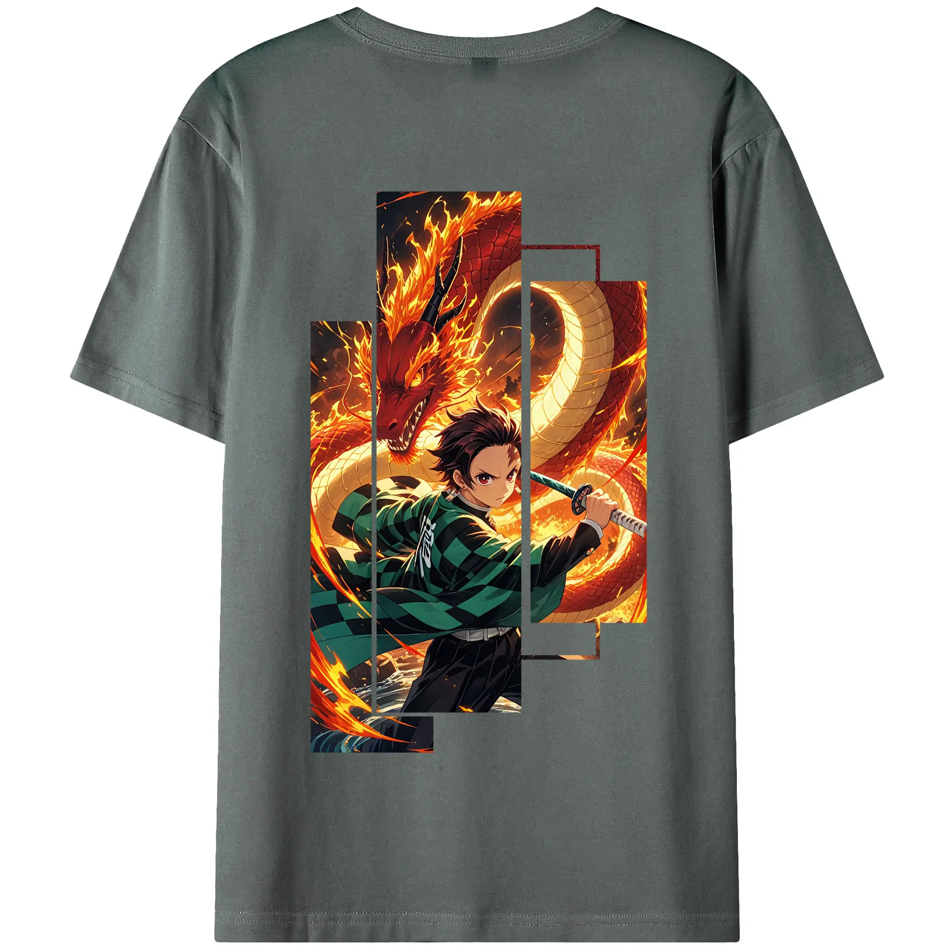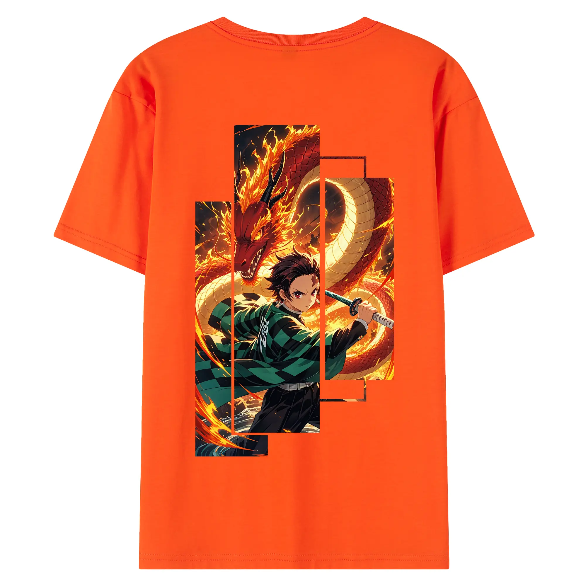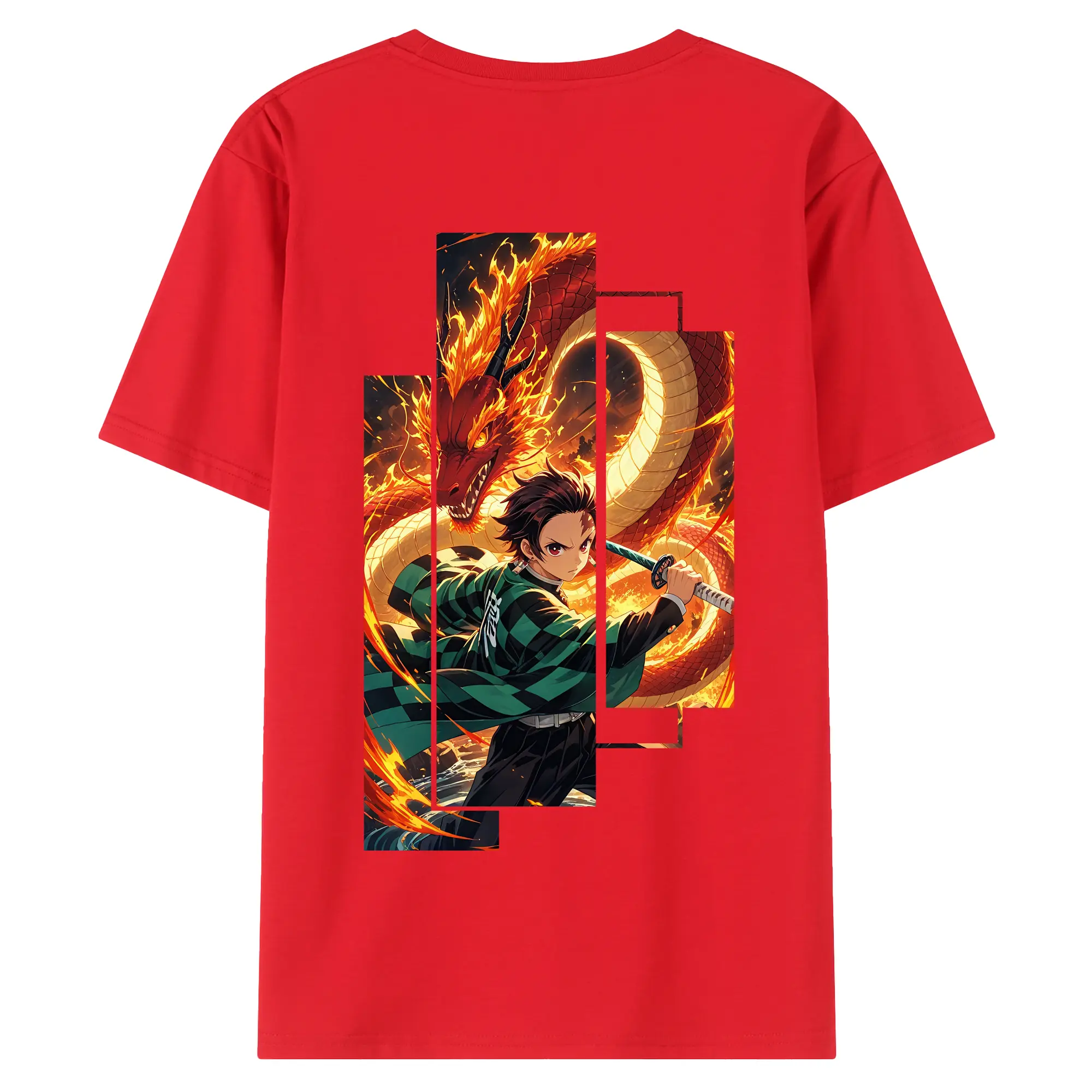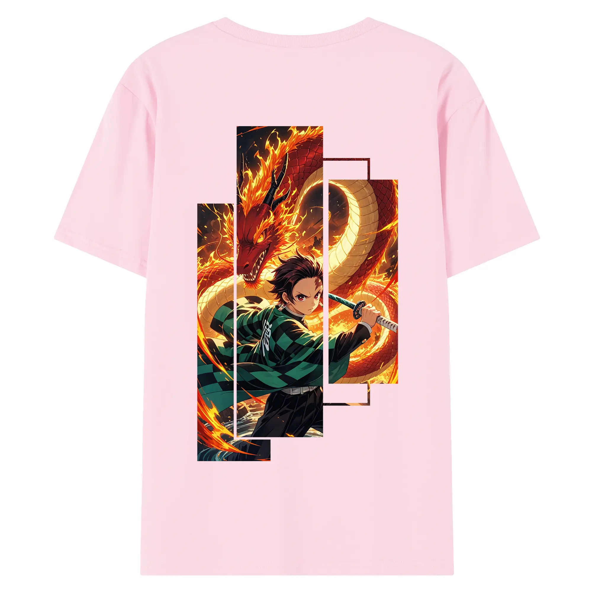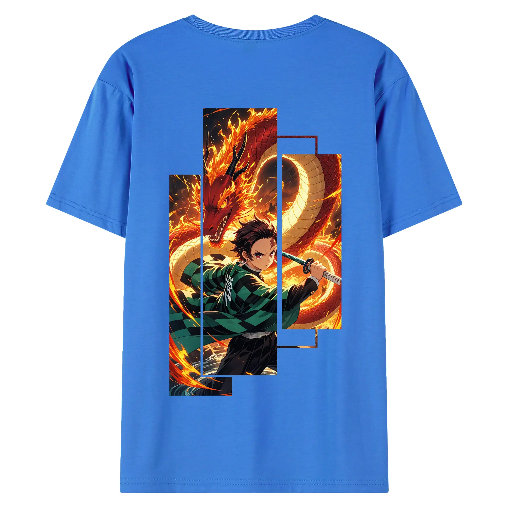 鬼滅の刃 グッズ,竈門 炭治郎 - 綿100% 半袖Tシャツ ・ フロントプリント ・ 快適 通気性 ・ 日常使い 散歩 スポーツ用