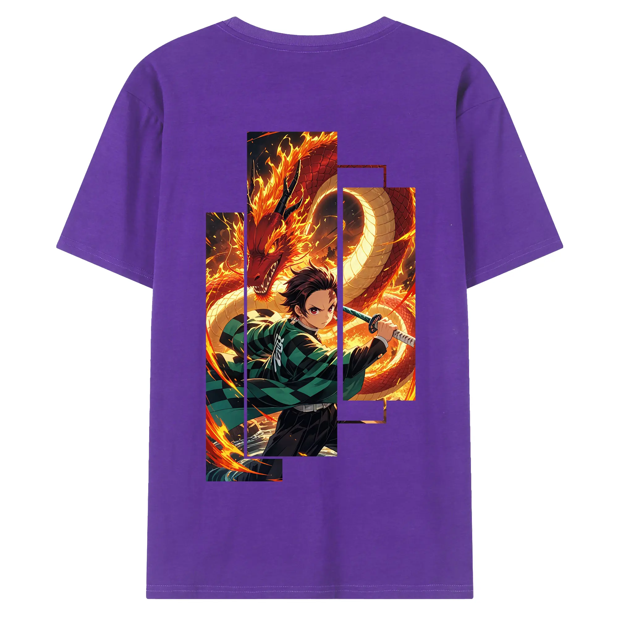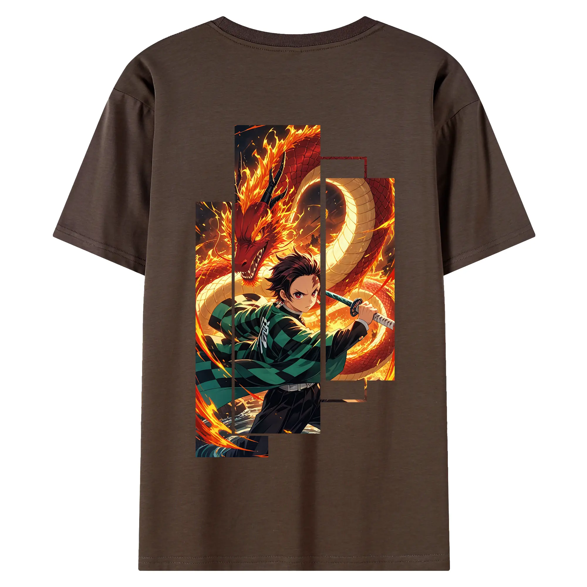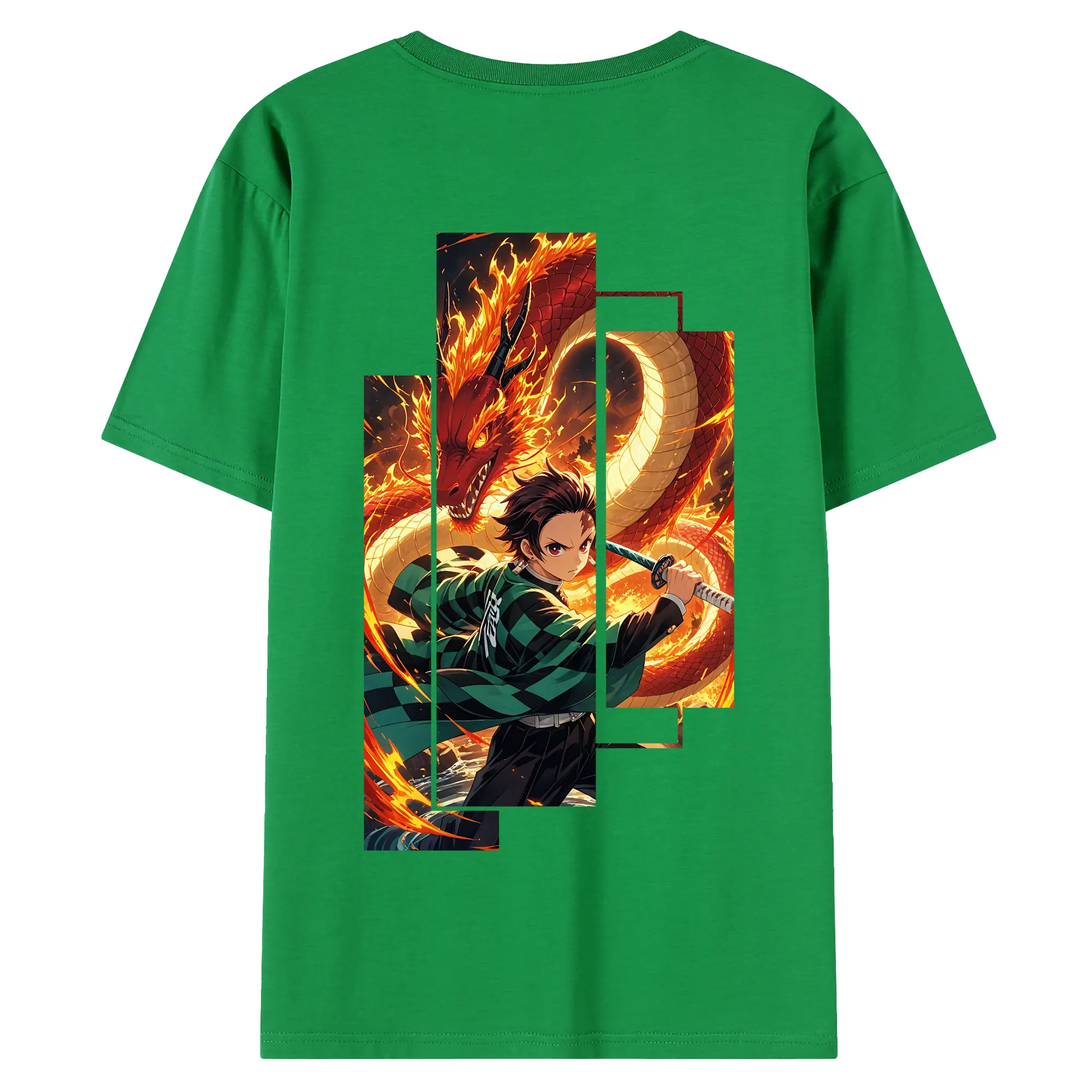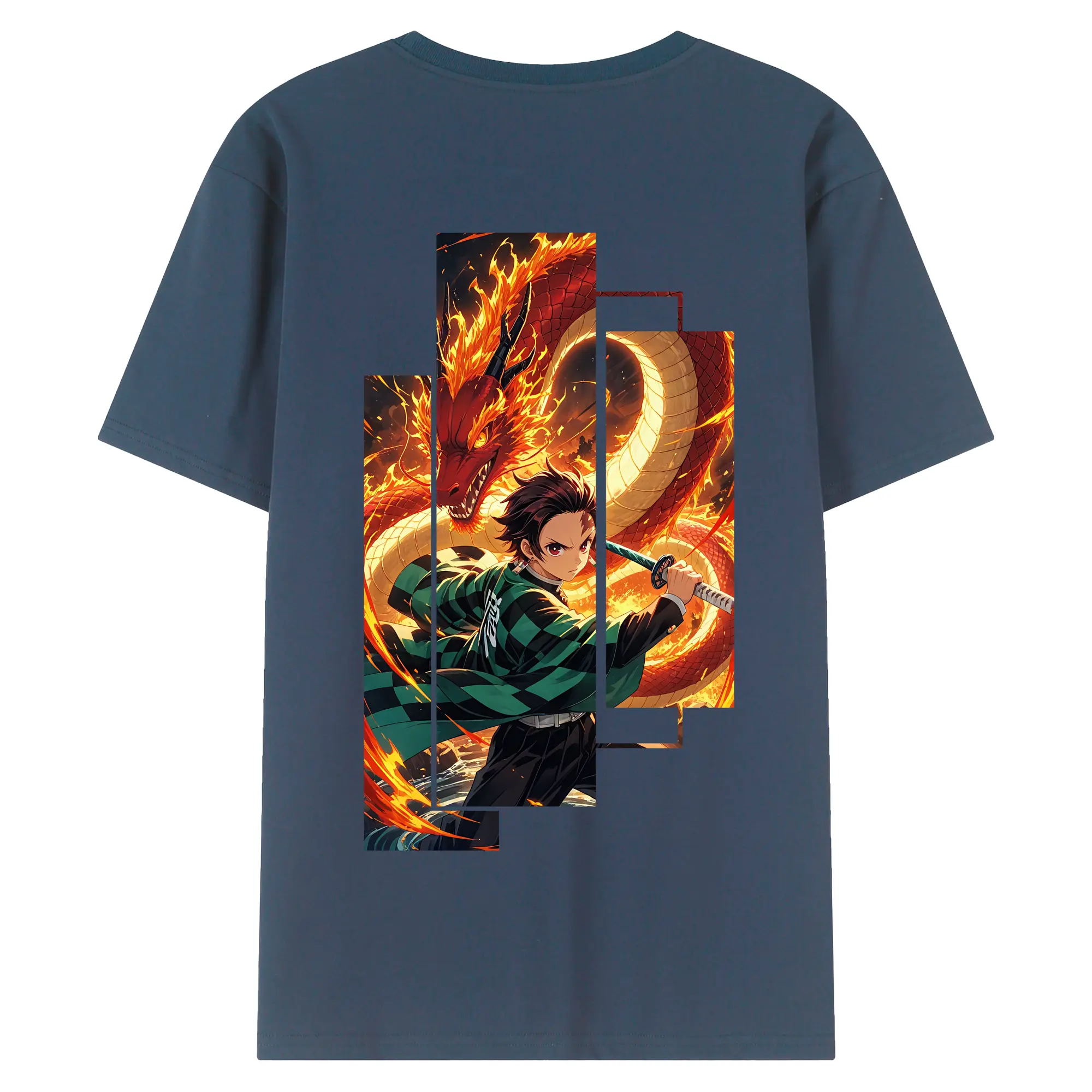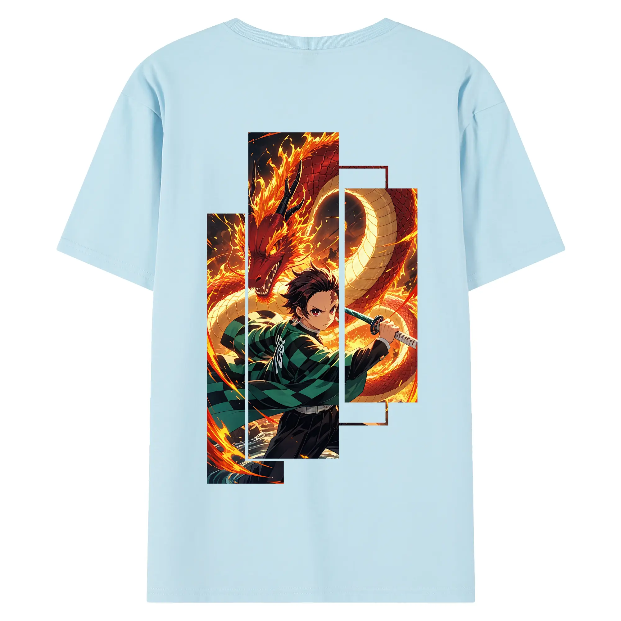 鬼滅の刃 グッズ,竈門 炭治郎 - 綿100% 半袖Tシャツ ・ フロントプリント ・ 快適 通気性 ・ 日常使い 散歩 スポーツ用