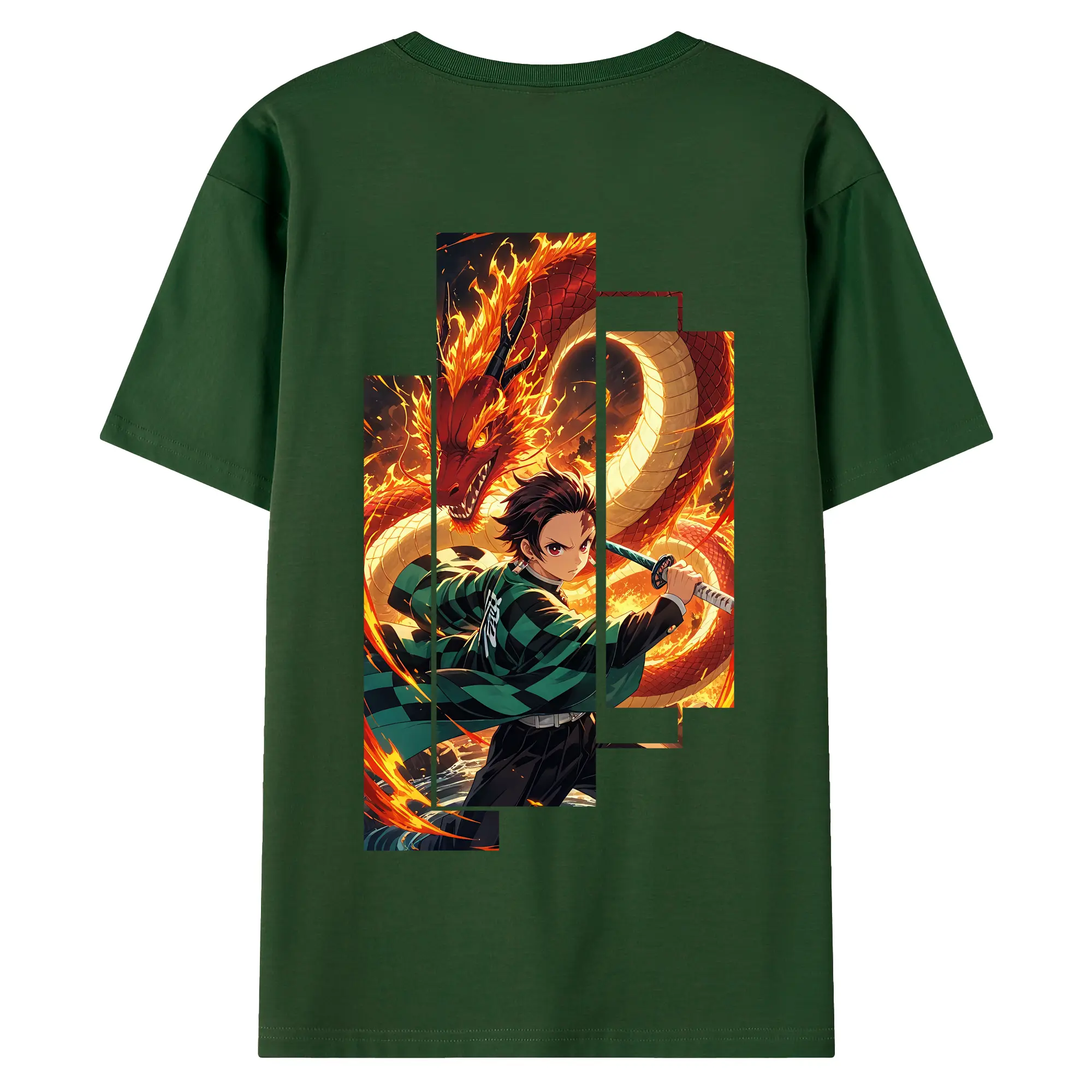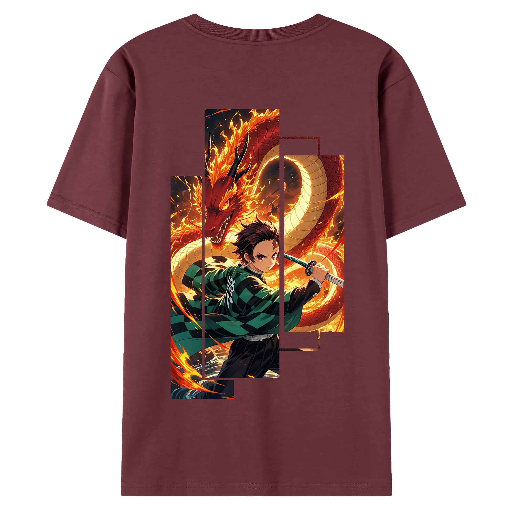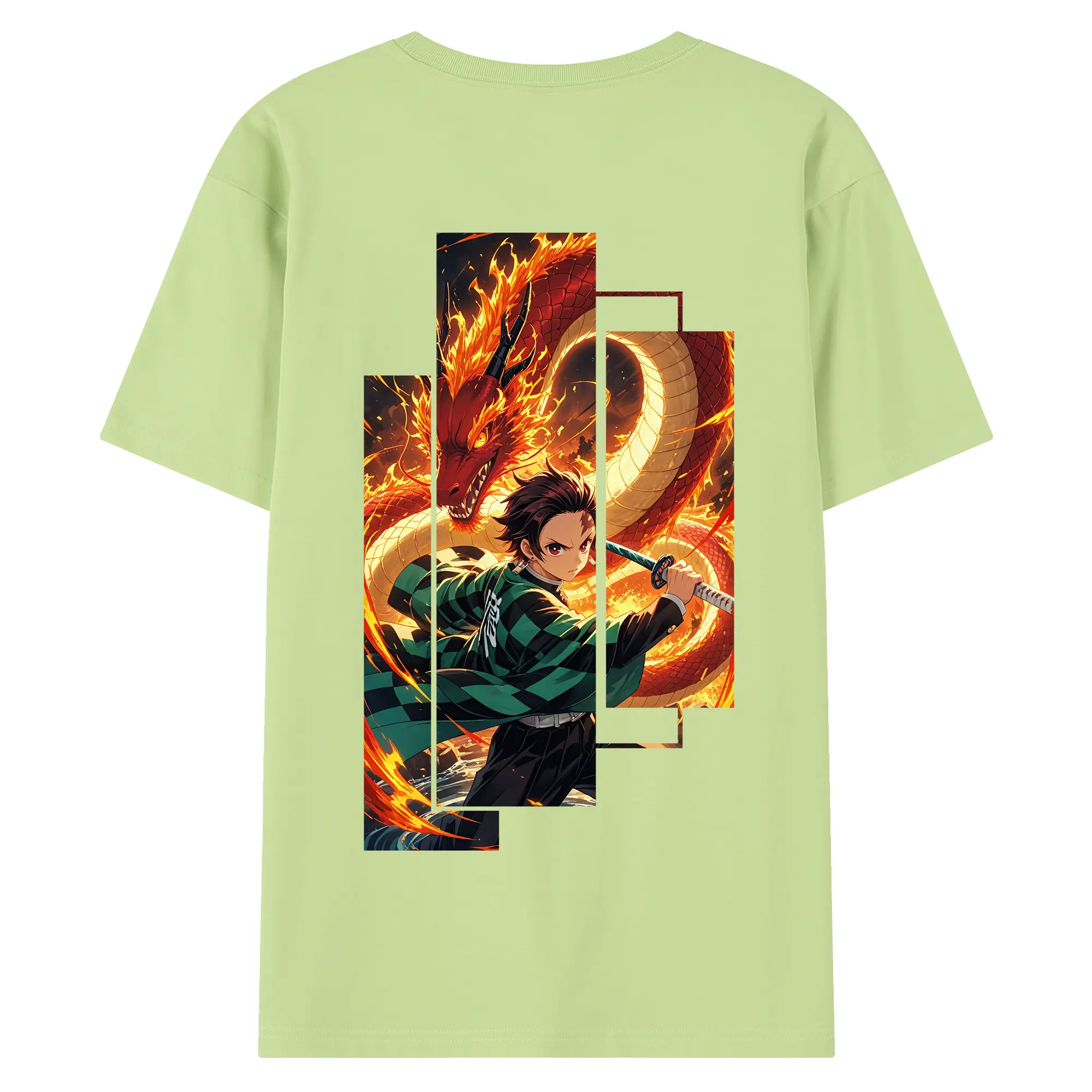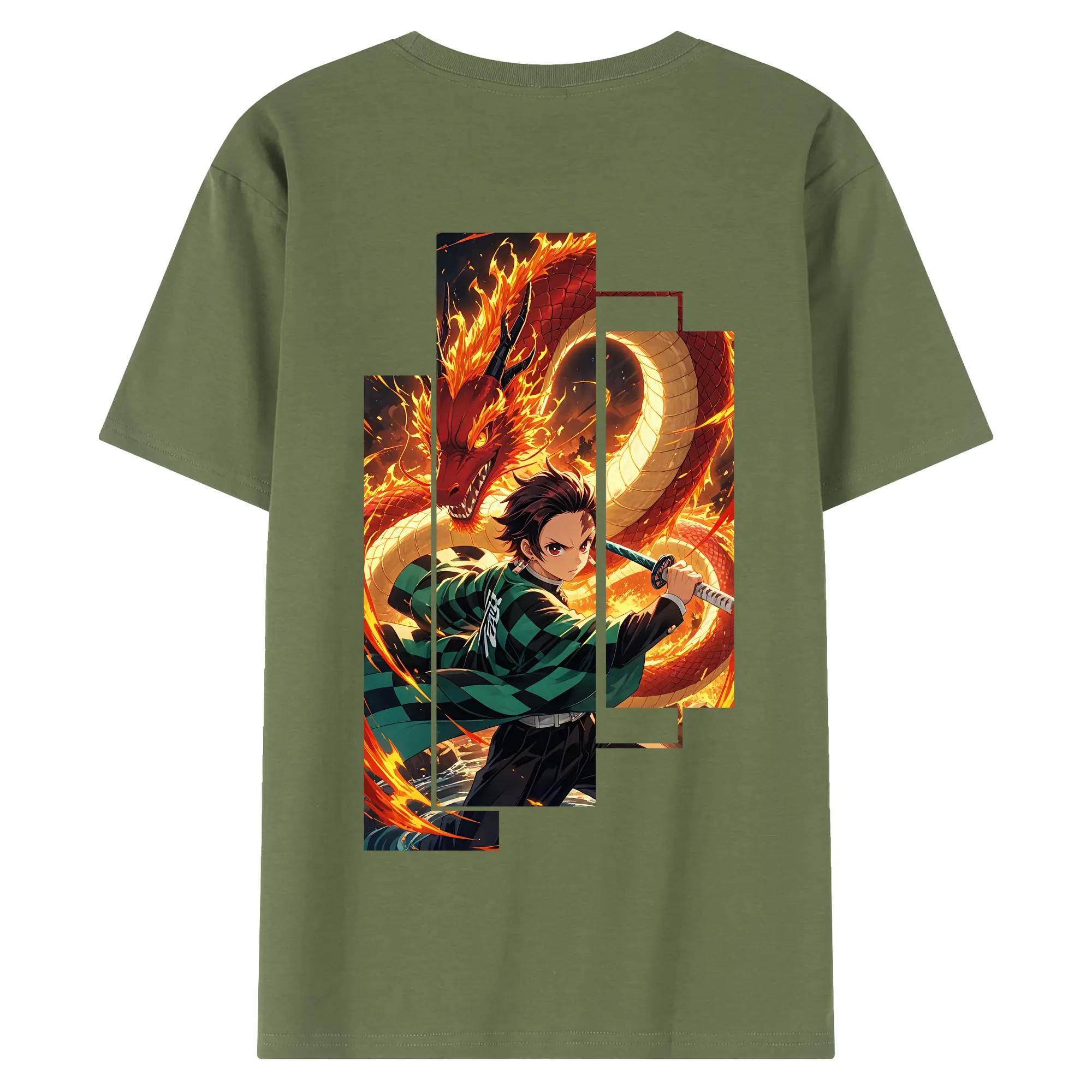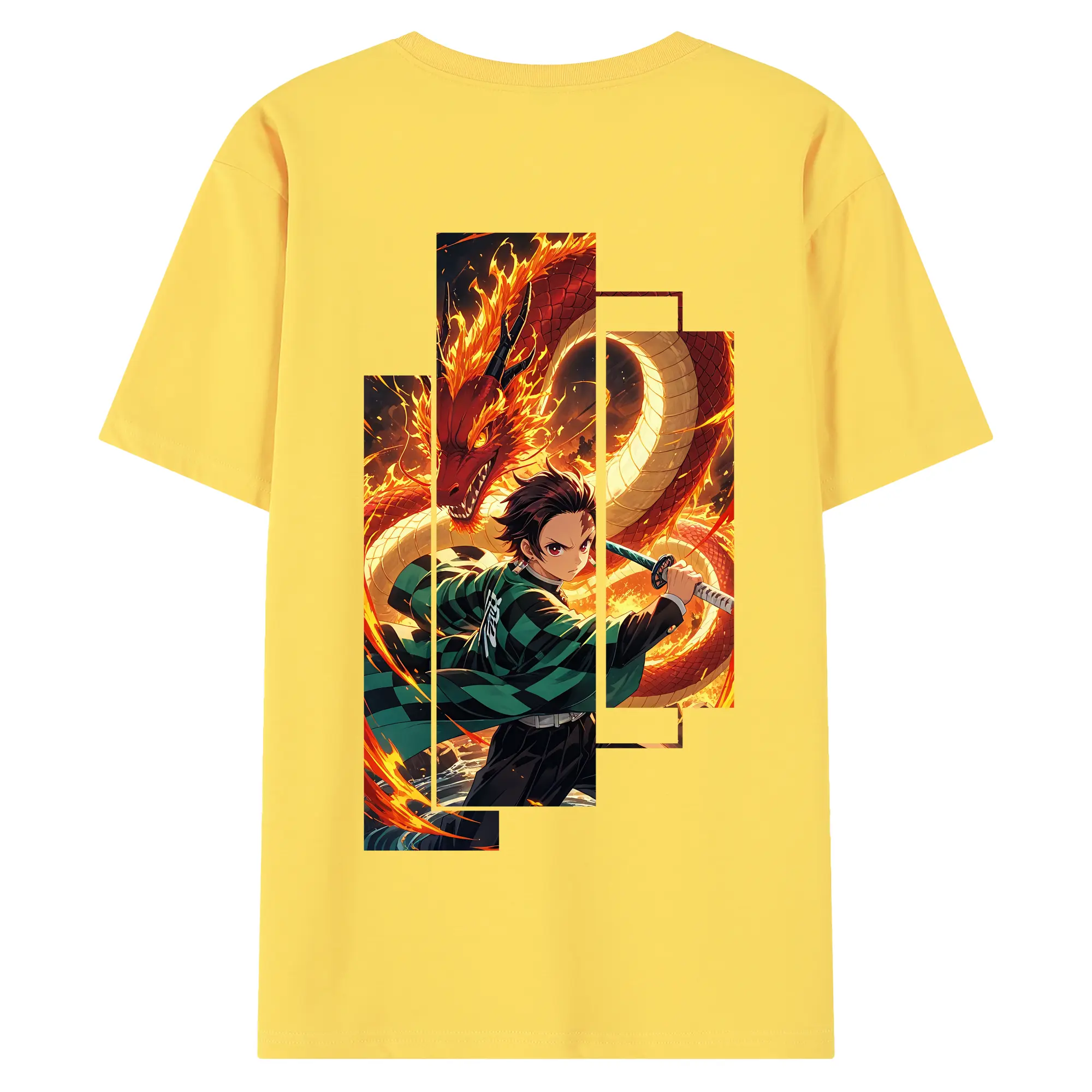 鬼滅の刃 グッズ,竈門 炭治郎 - 綿100% 半袖Tシャツ ・ フロントプリント ・ 快適 通気性 ・ 日常使い 散歩 スポーツ用