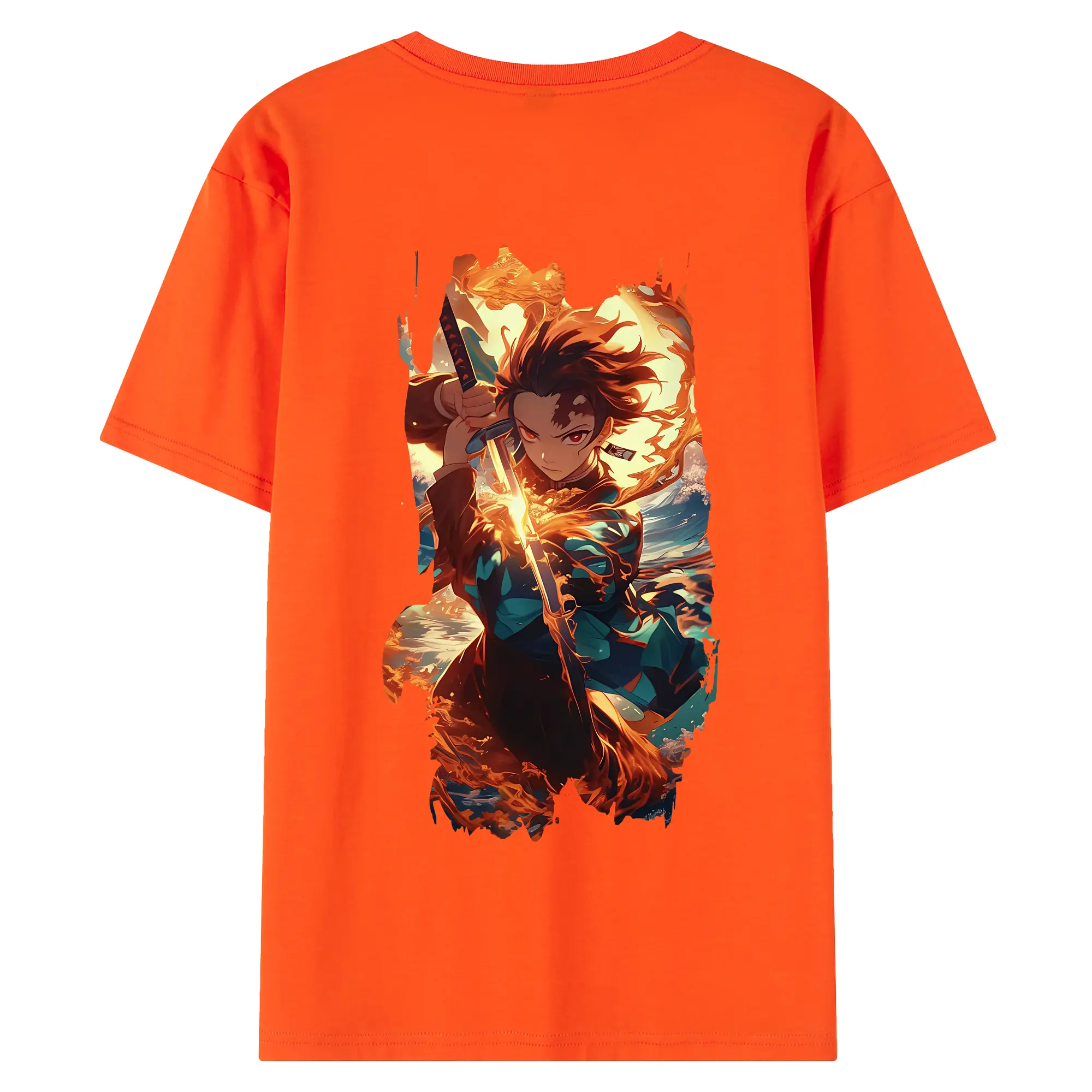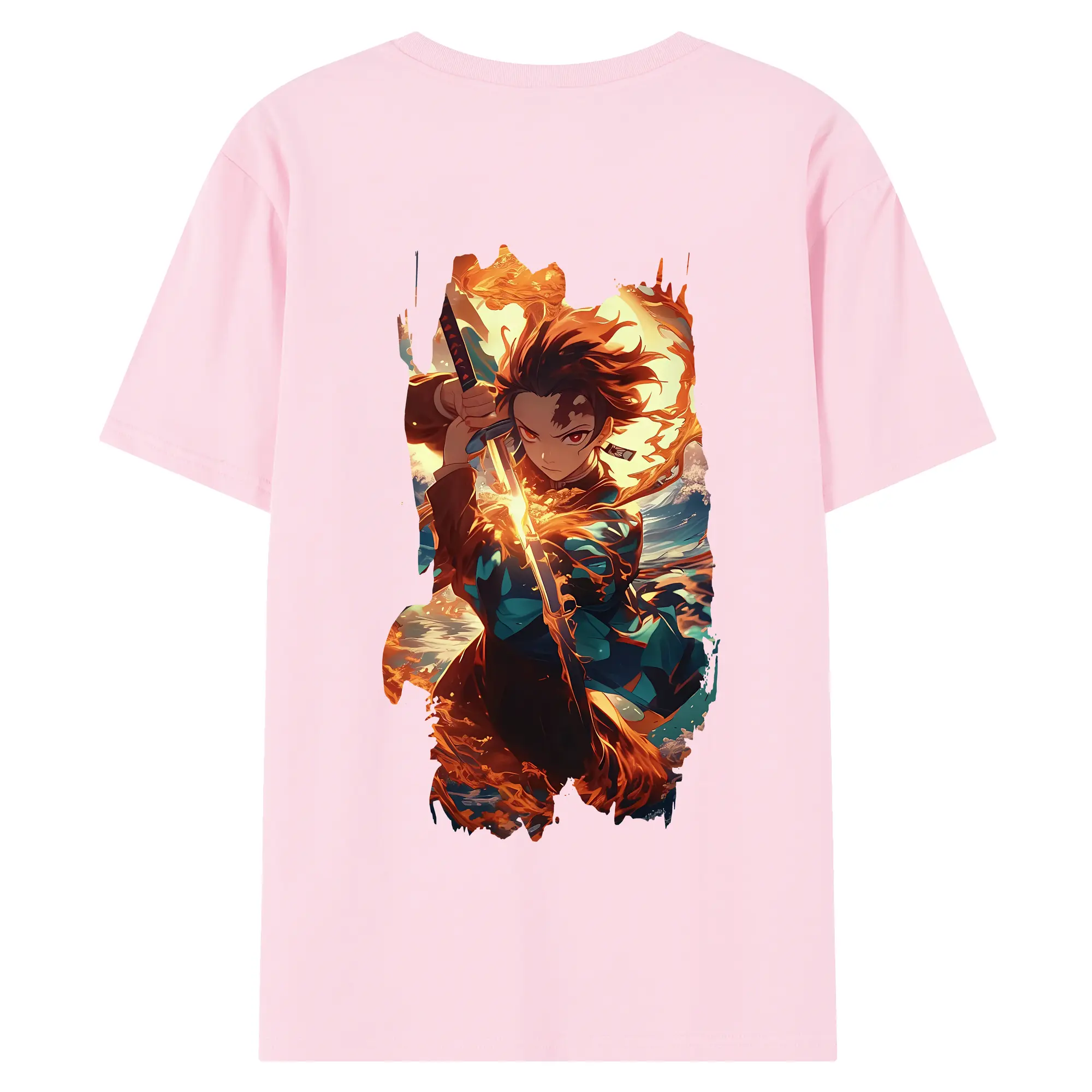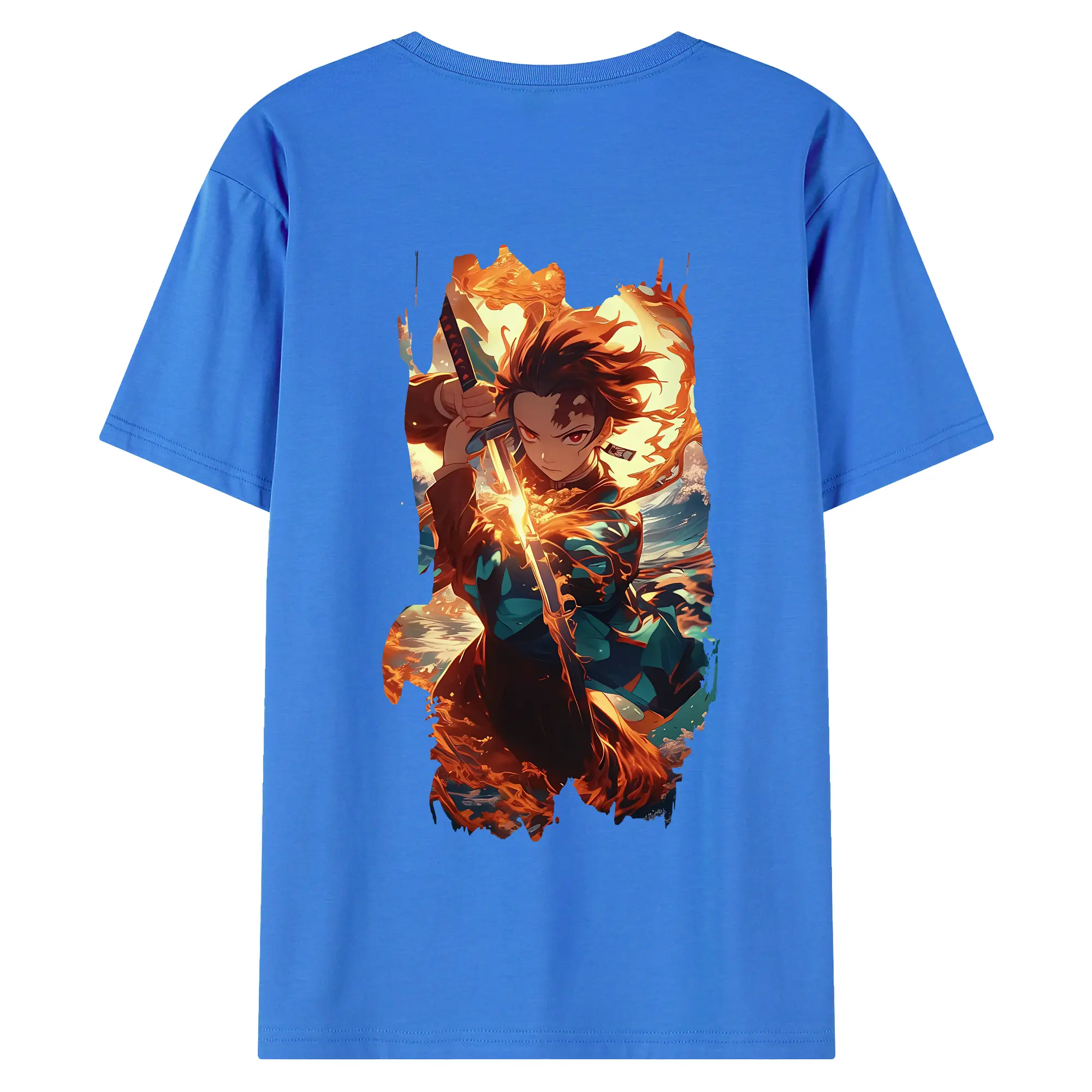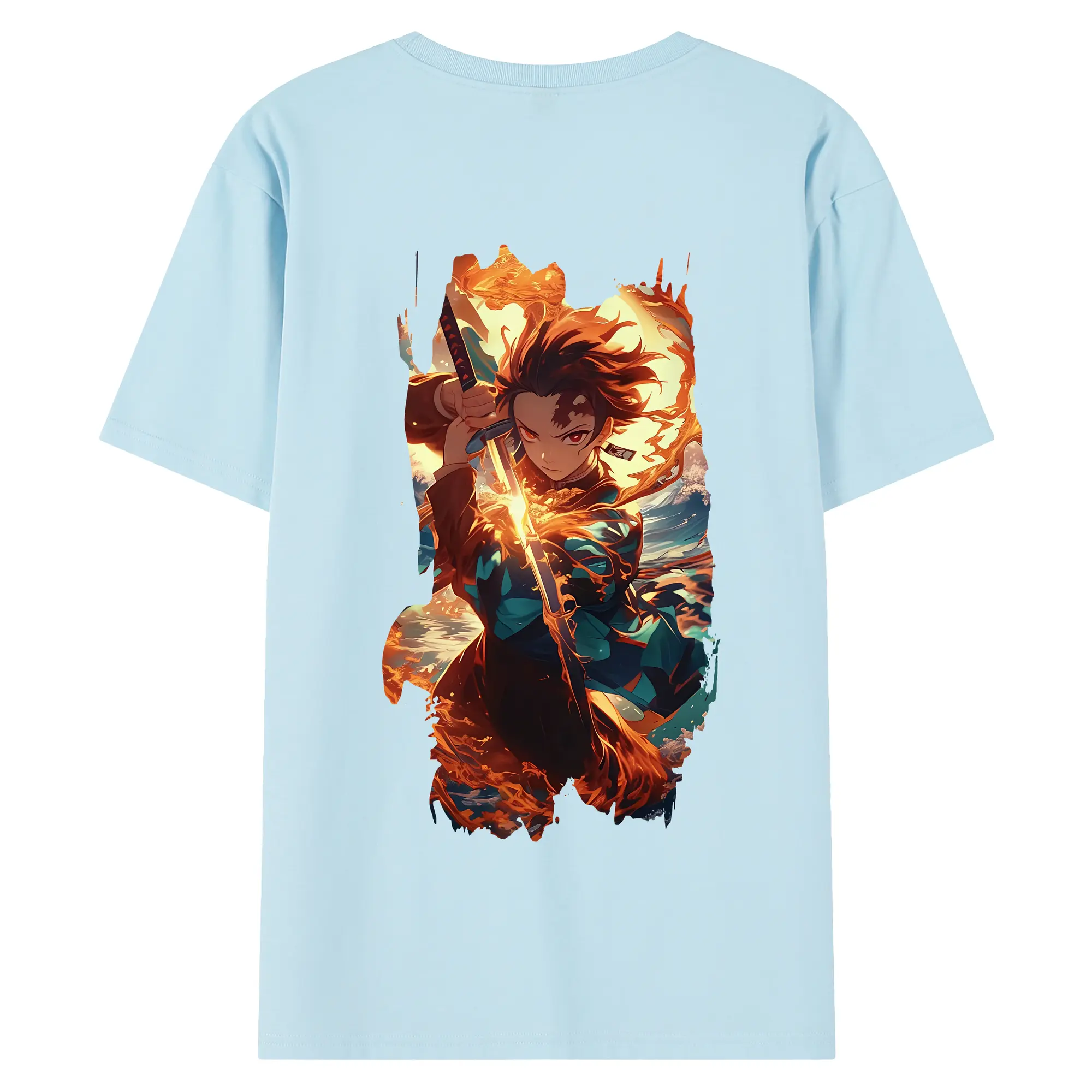 鬼滅の刃 グッズ,竈門 炭治郎 - 綿100% 半袖Tシャツ ・ フロントプリント ・ 快適 通気性 ・ 日常使い 散歩 スポーツ用