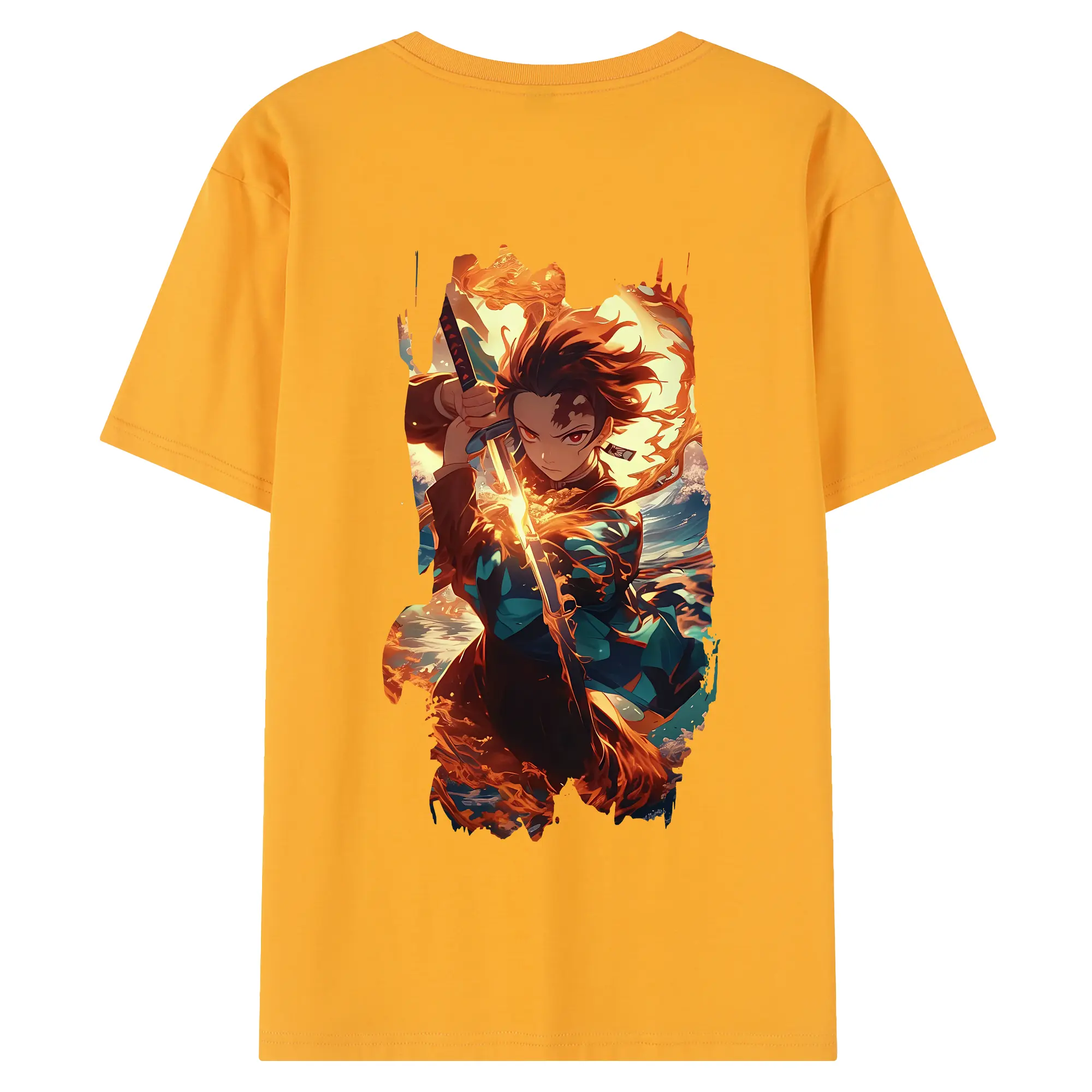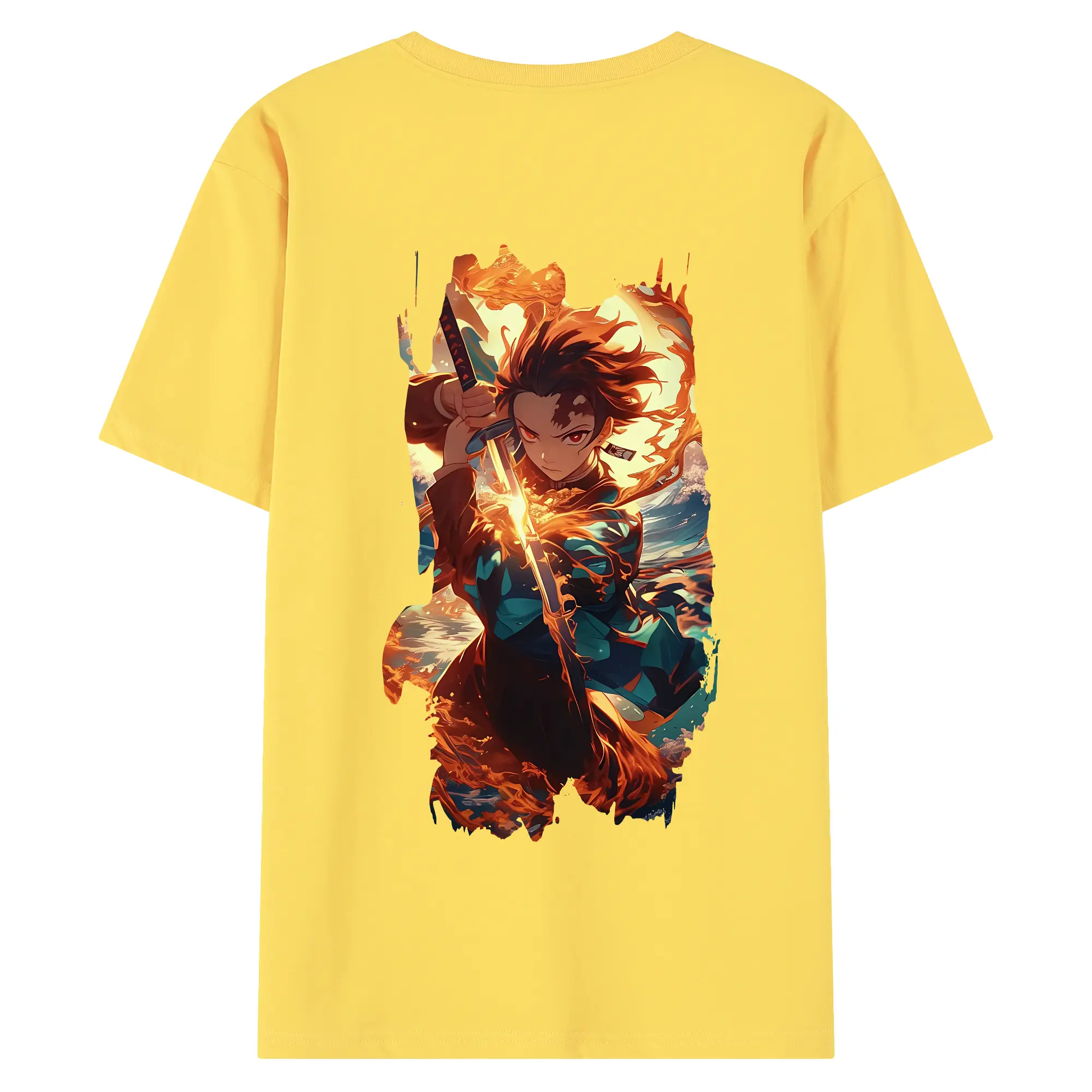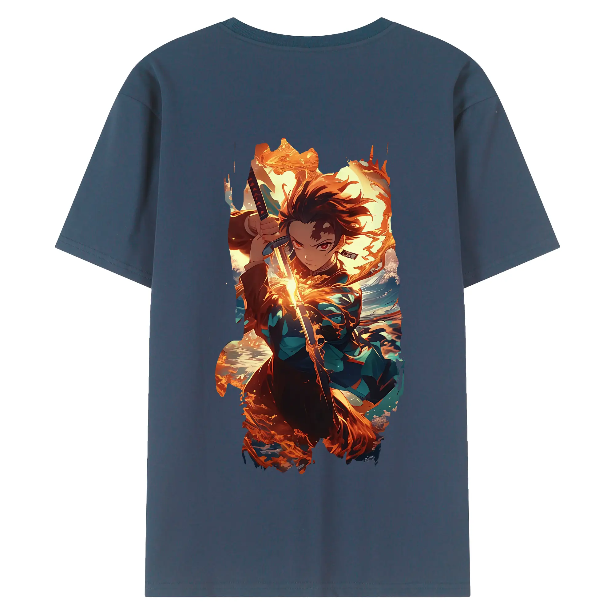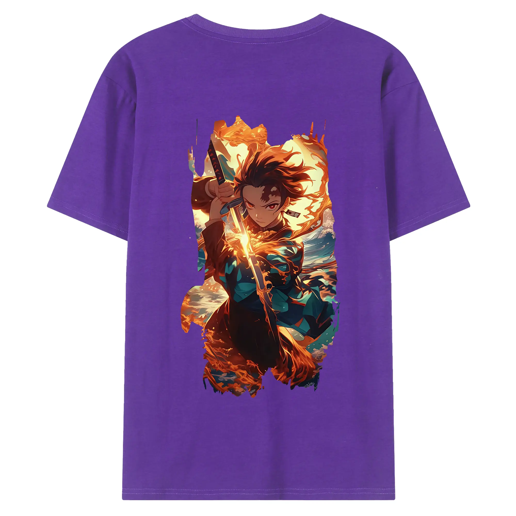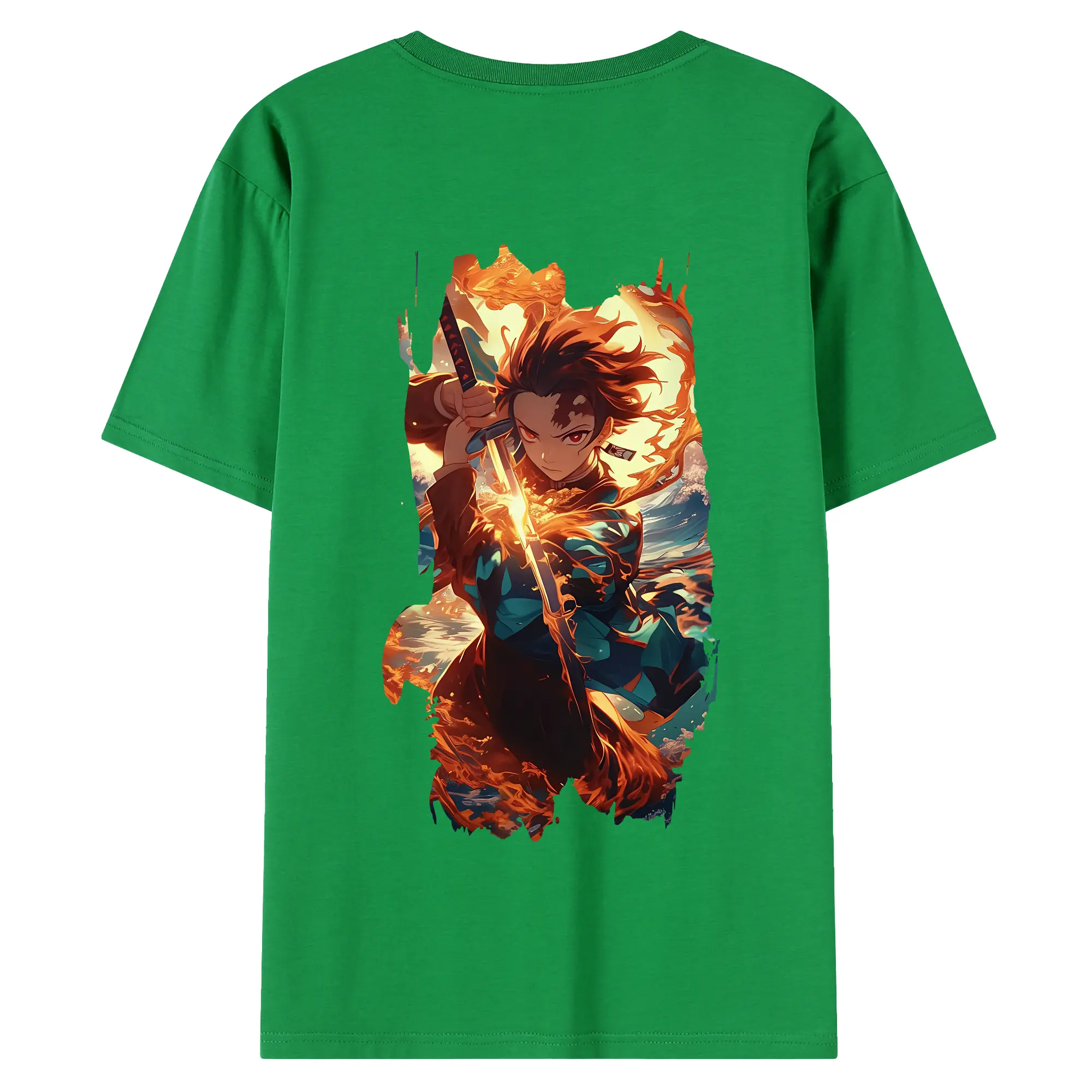 鬼滅の刃 グッズ,竈門 炭治郎 - 綿100% 半袖Tシャツ ・ フロントプリント ・ 快適 通気性 ・ 日常使い 散歩 スポーツ用