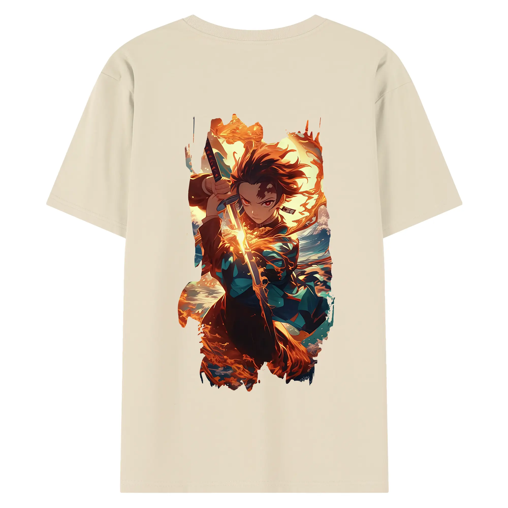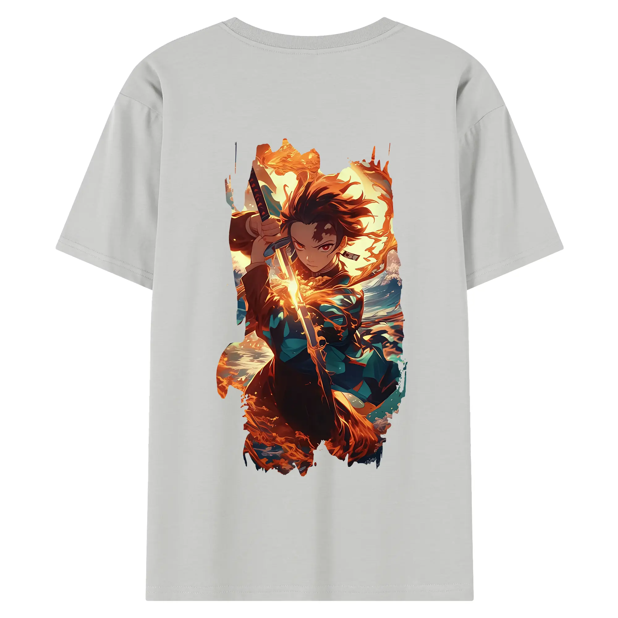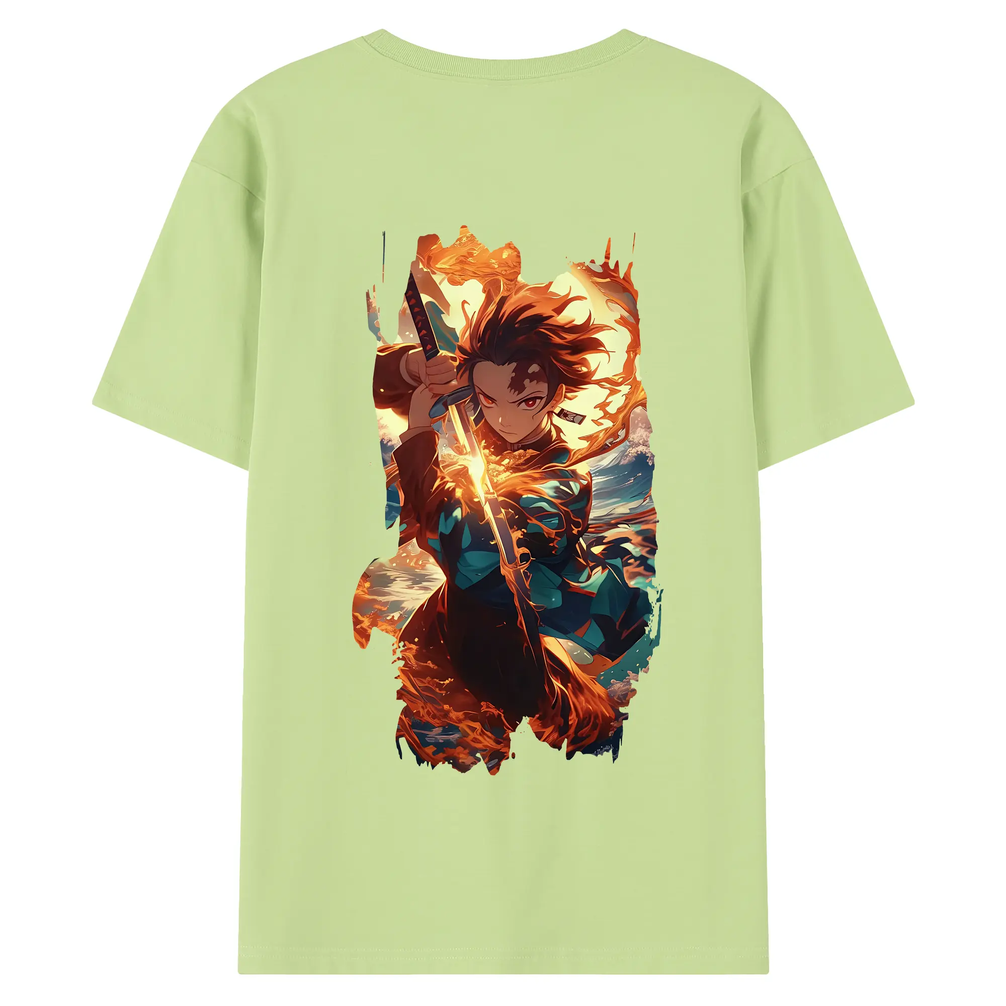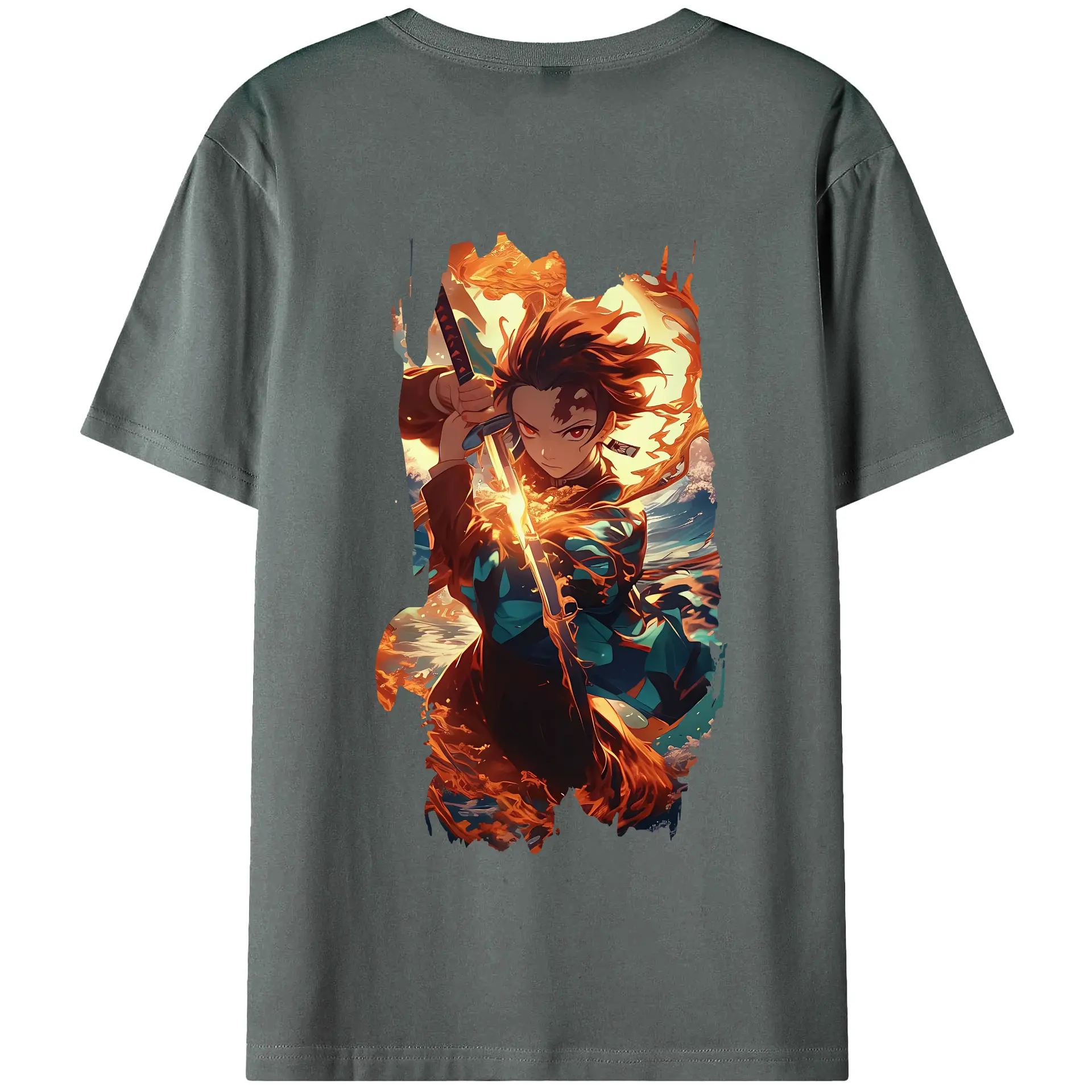鬼滅の刃 グッズ,竈門 炭治郎 - 綿100% 半袖Tシャツ ・ フロントプリント ・ 快適 通気性 ・ 日常使い 散歩 スポーツ用