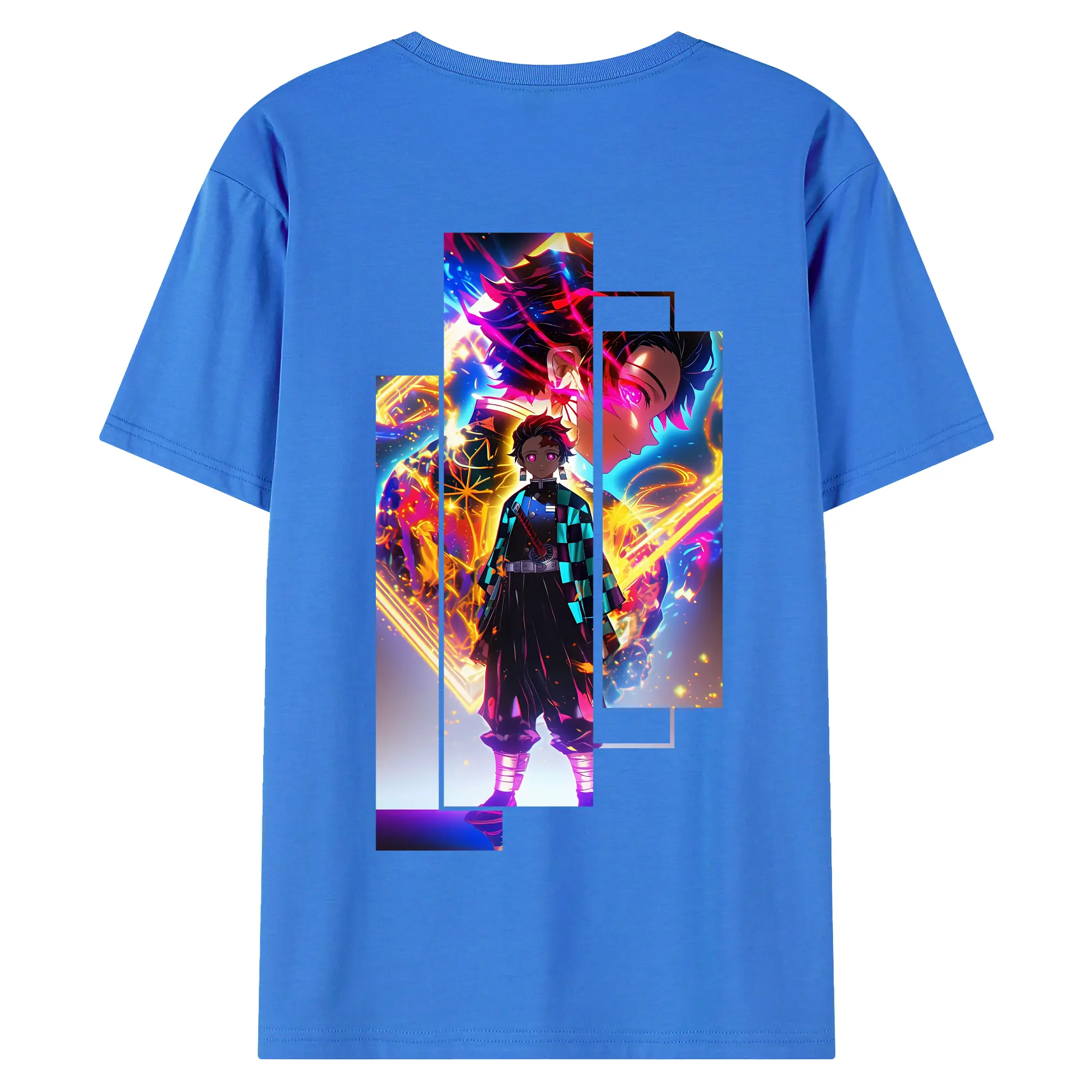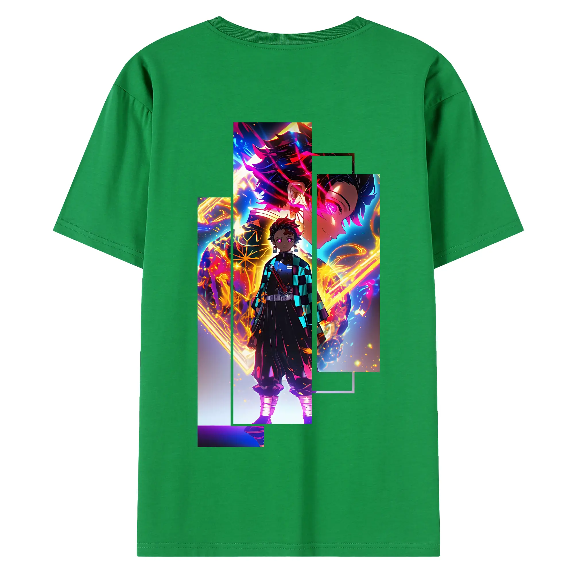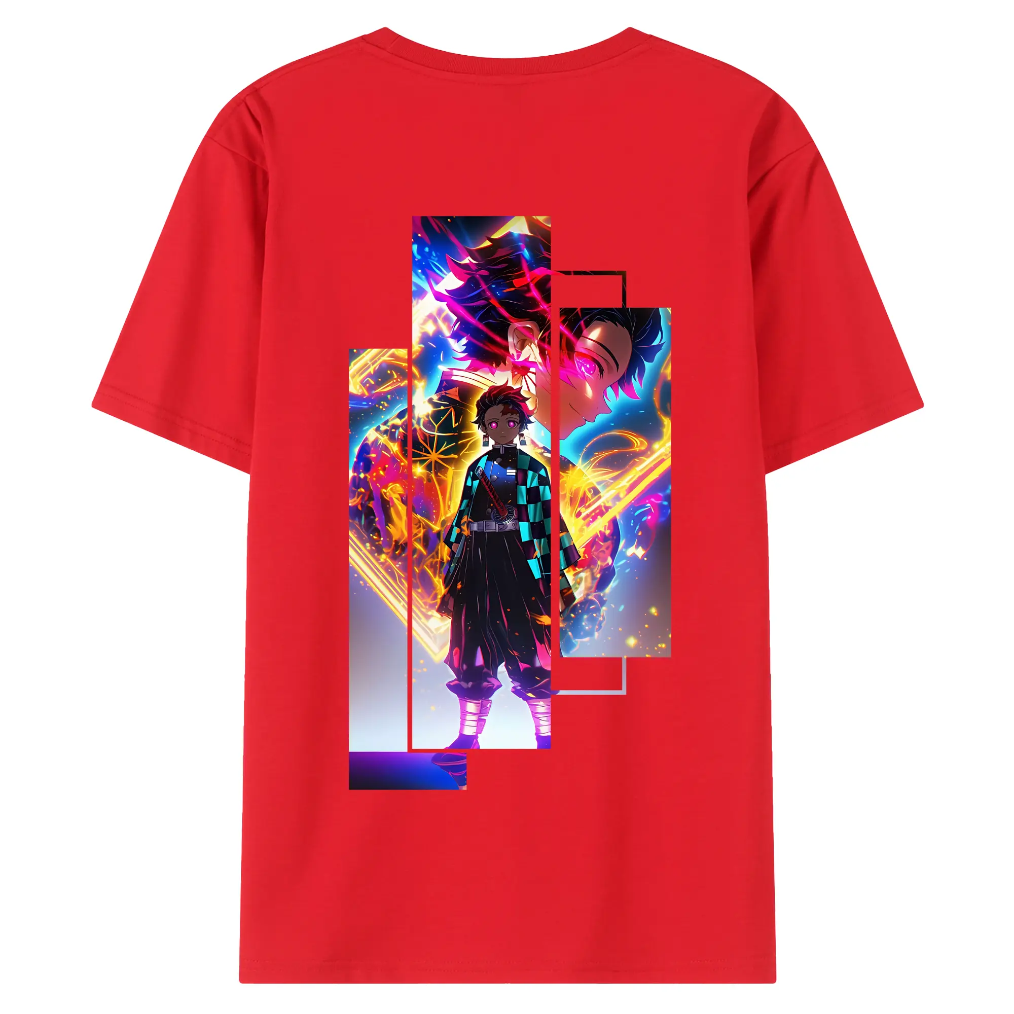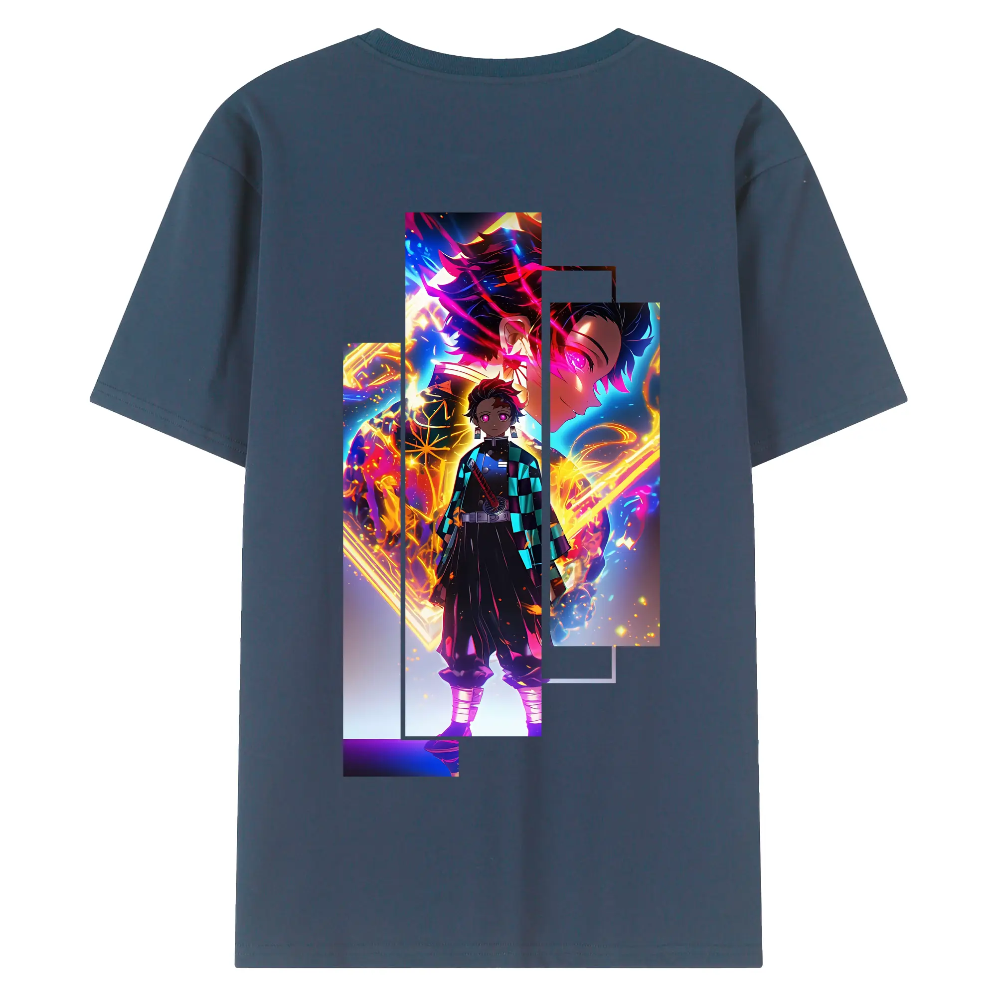 鬼滅の刃 グッズ,竈門 炭治郎 - 綿100% 半袖Tシャツ ・ バックプリント ・ 快適 通気性 ・ 日常使い 散歩 スポーツ用