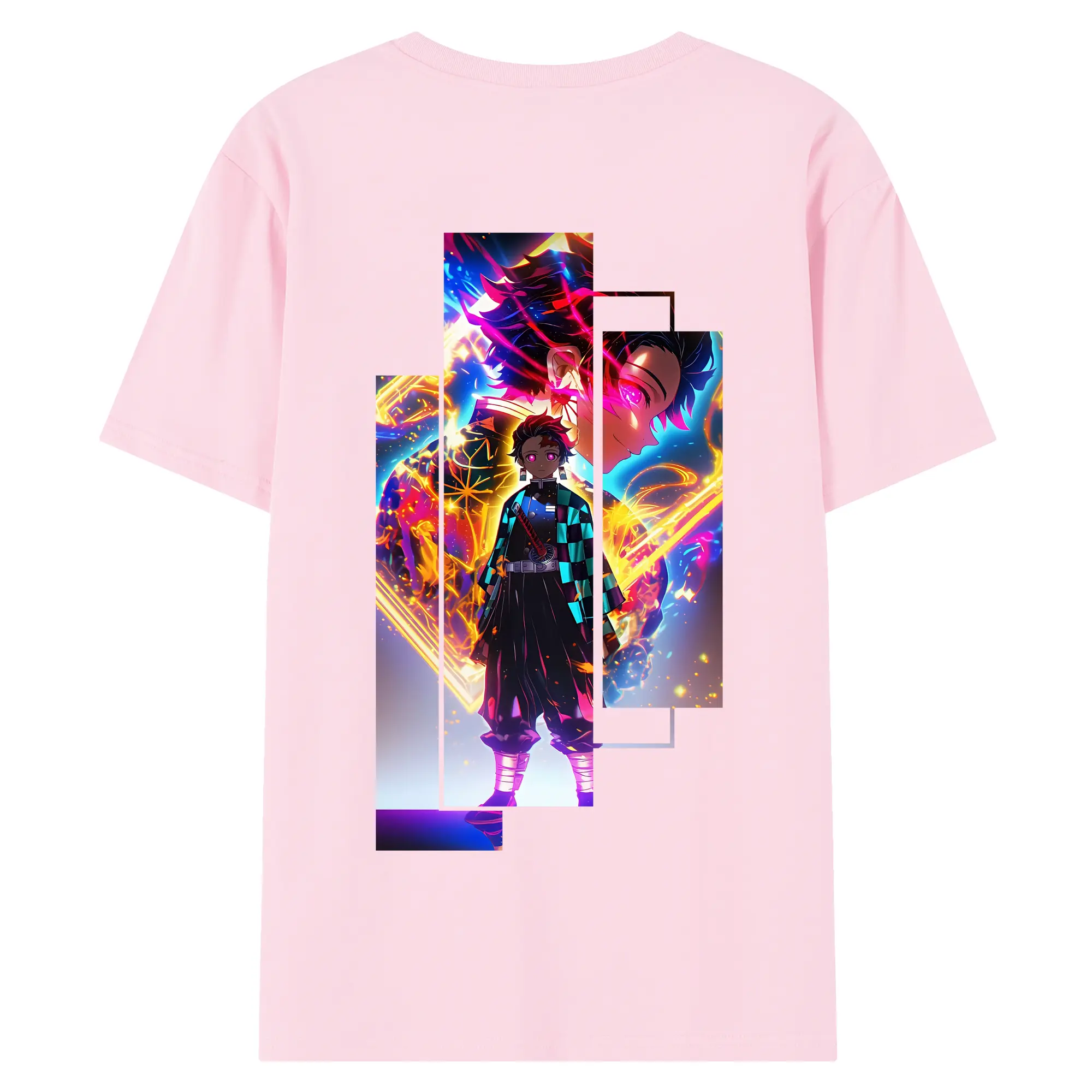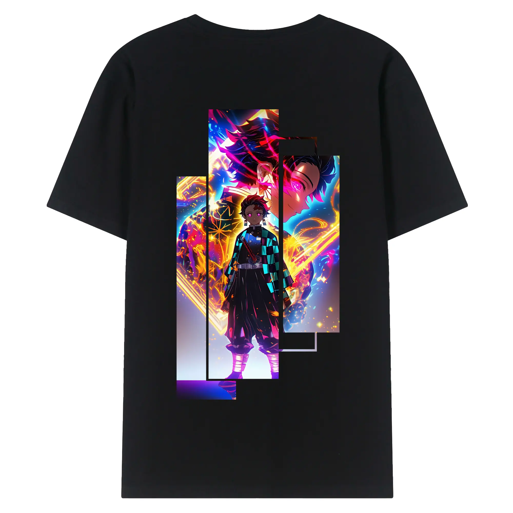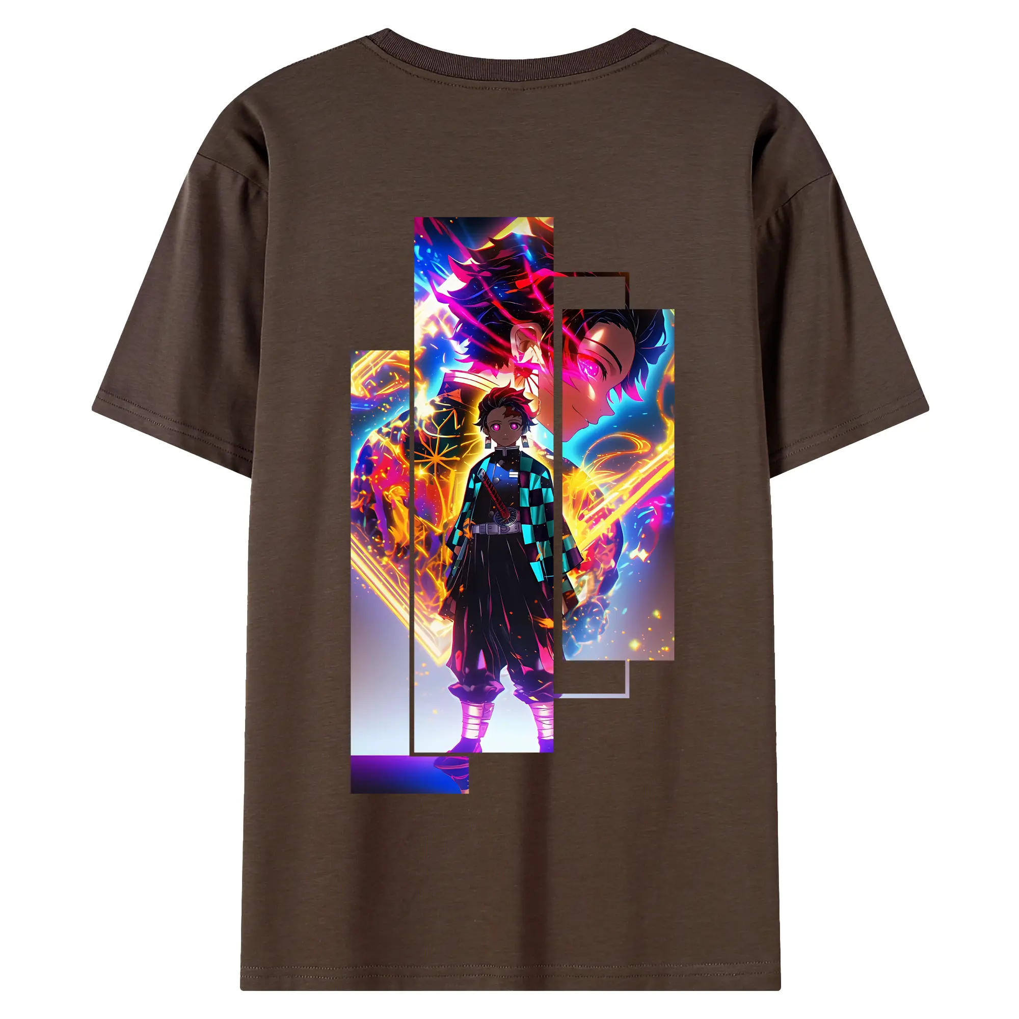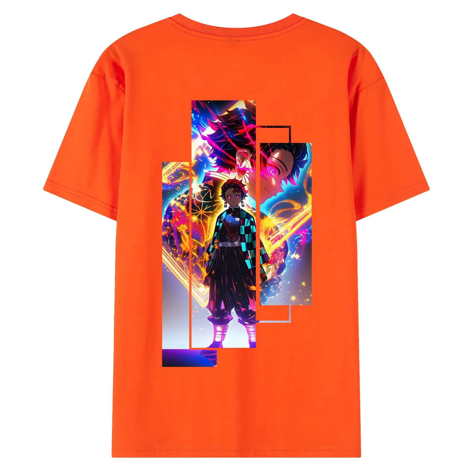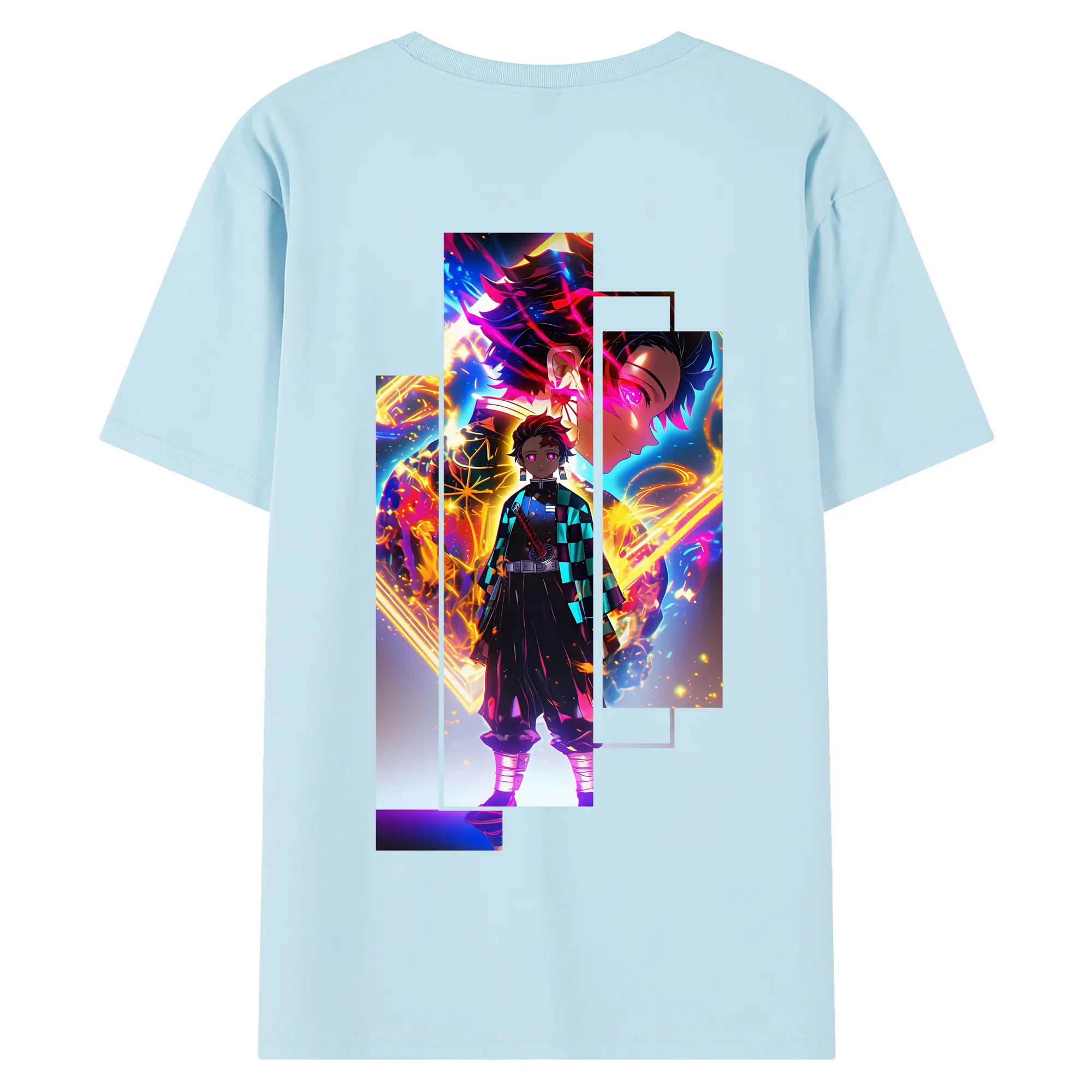 鬼滅の刃 グッズ,竈門 炭治郎 - 綿100% 半袖Tシャツ ・ バックプリント ・ 快適 通気性 ・ 日常使い 散歩 スポーツ用
