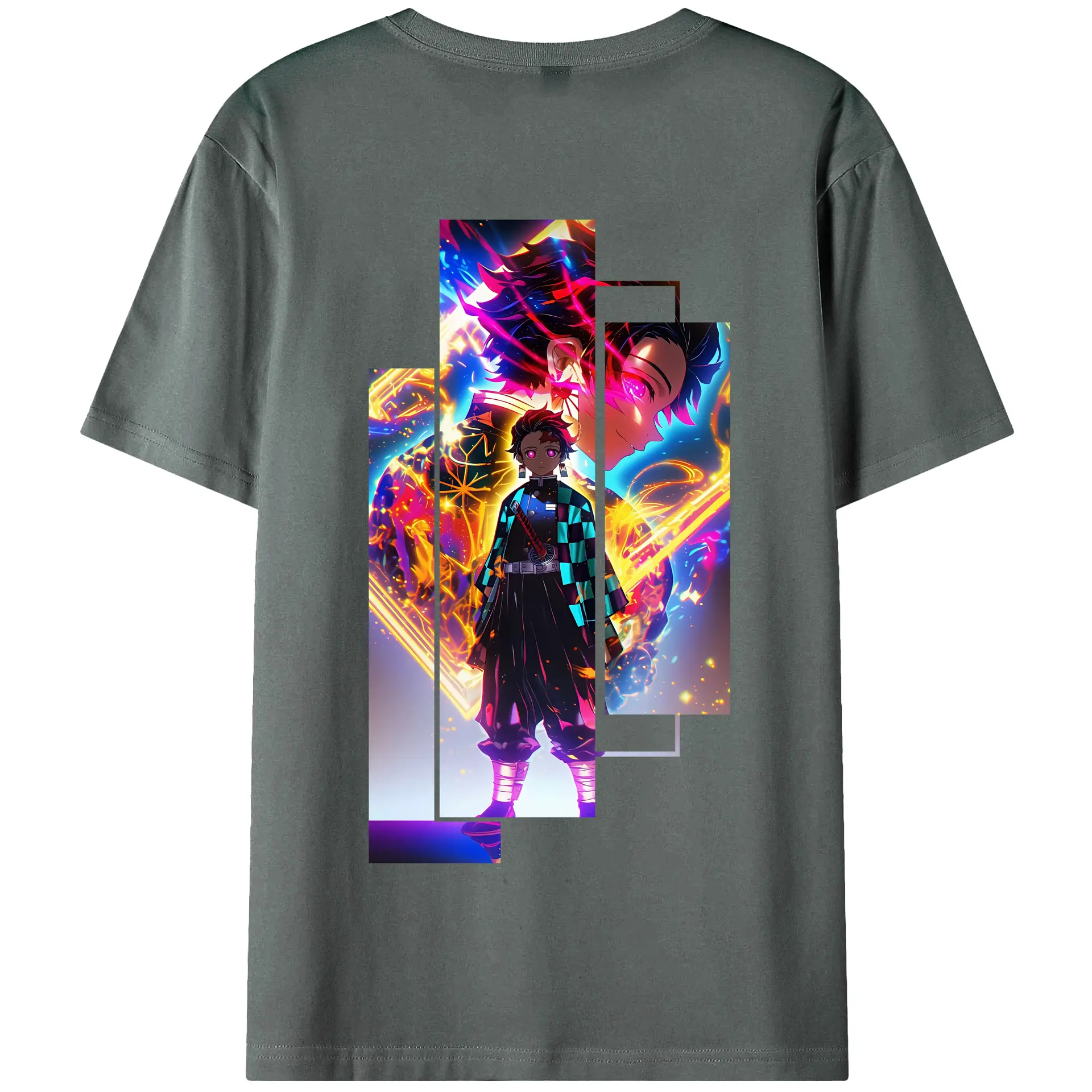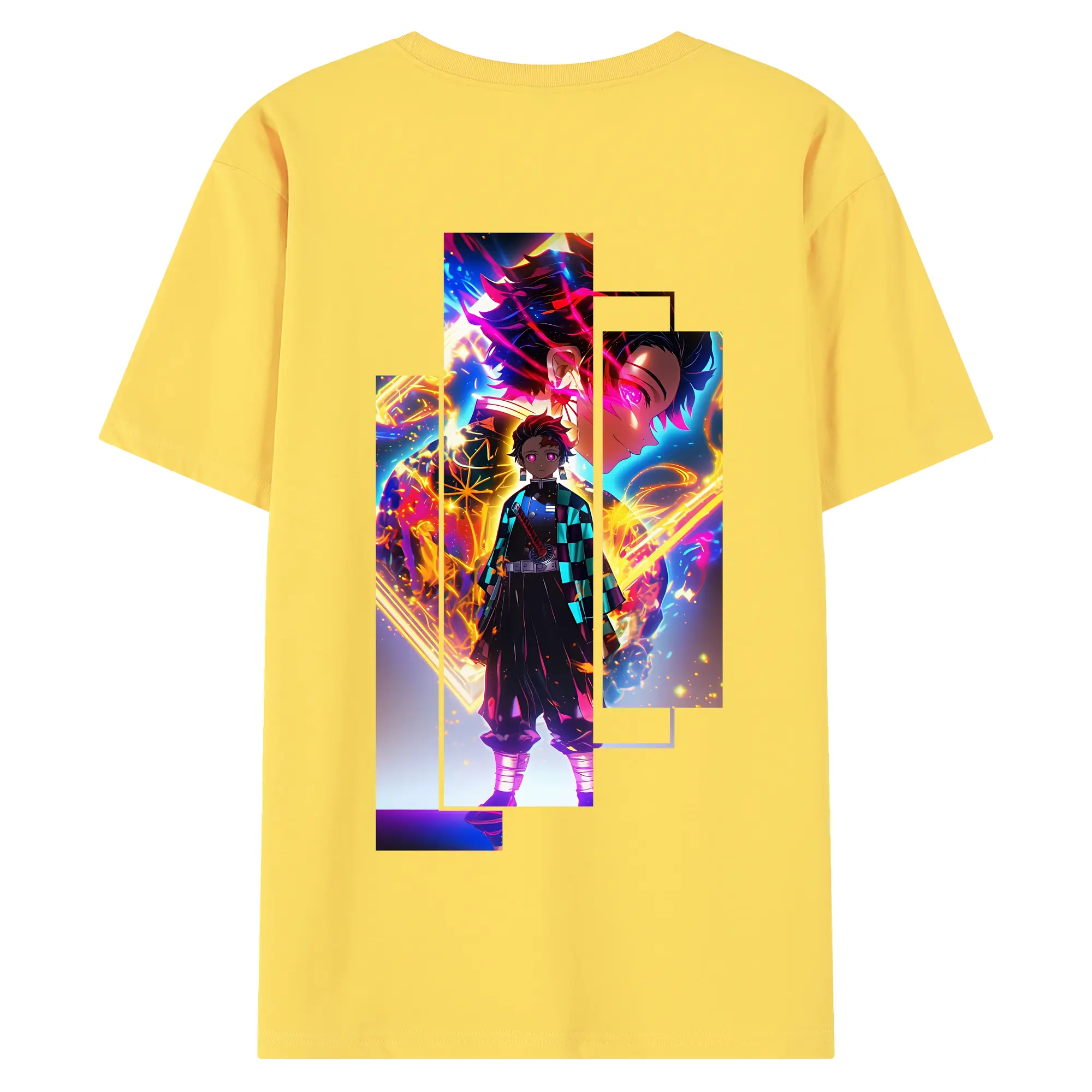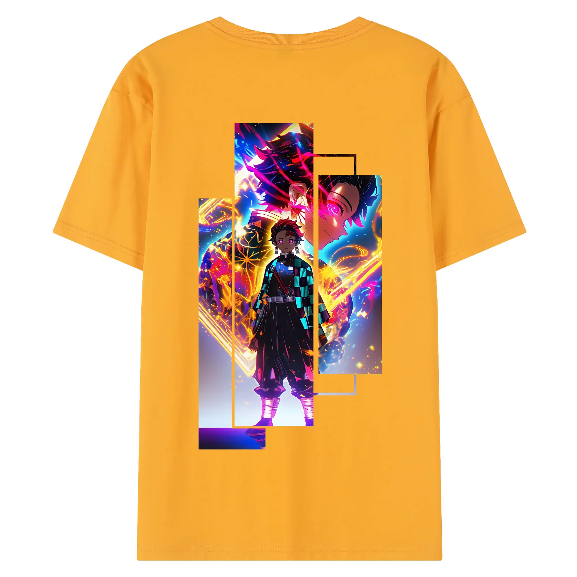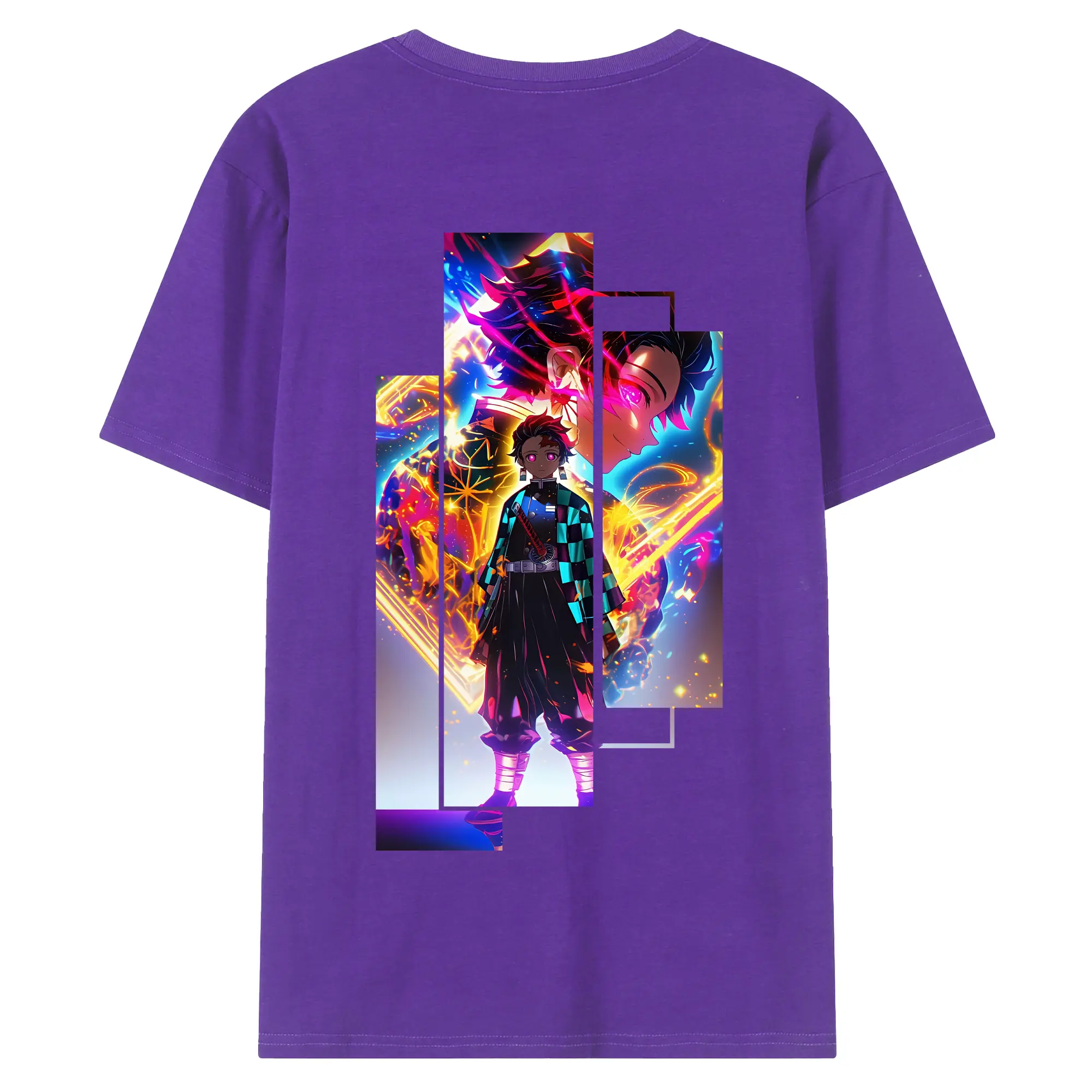 鬼滅の刃 グッズ,竈門 炭治郎 - 綿100% 半袖Tシャツ ・ バックプリント ・ 快適 通気性 ・ 日常使い 散歩 スポーツ用