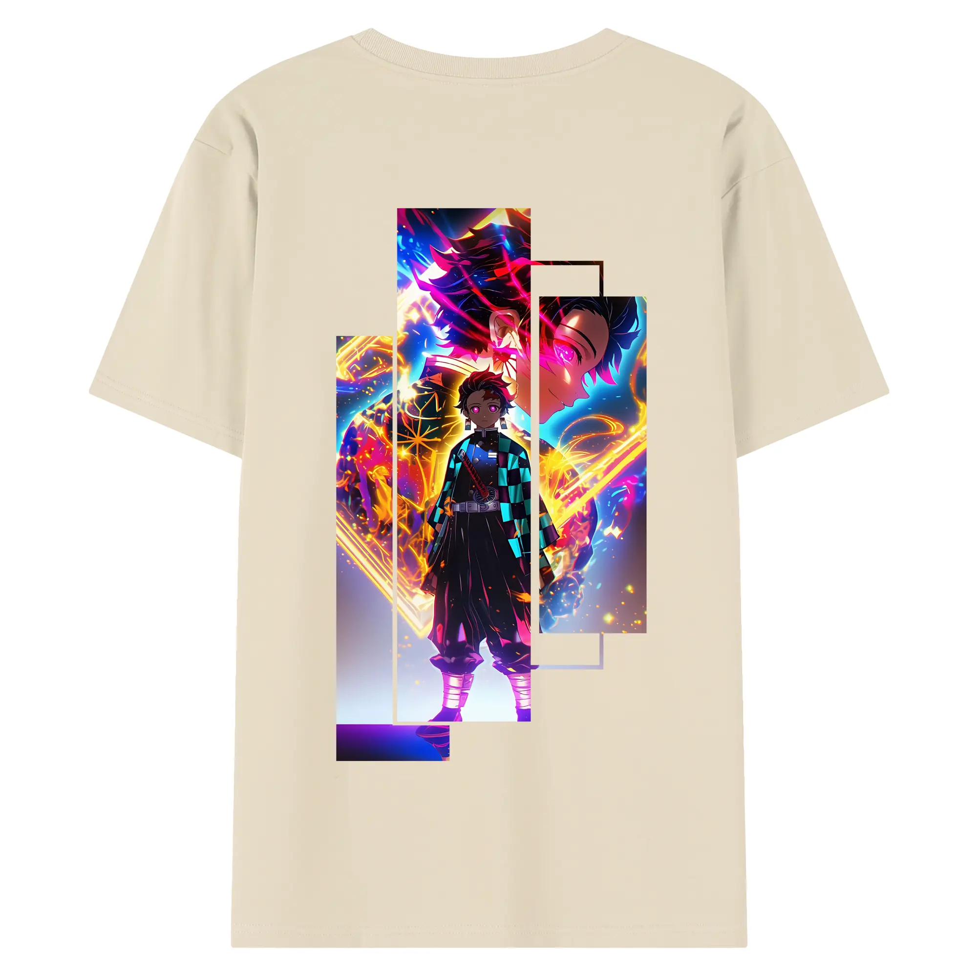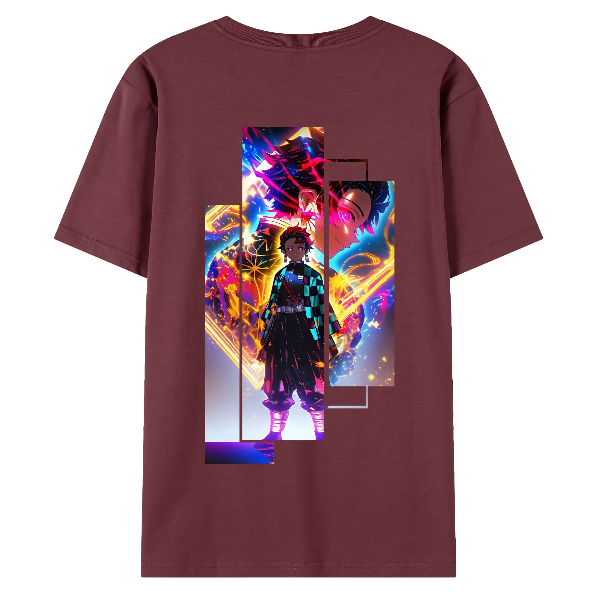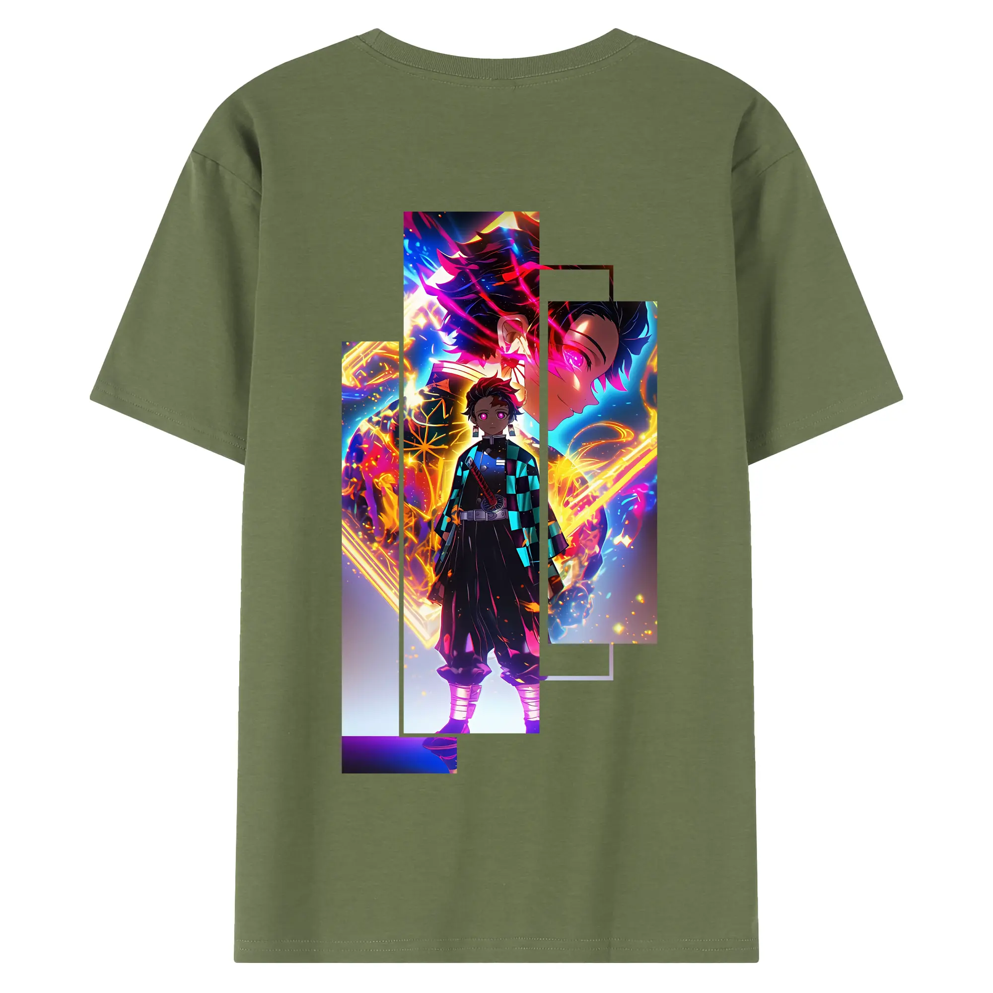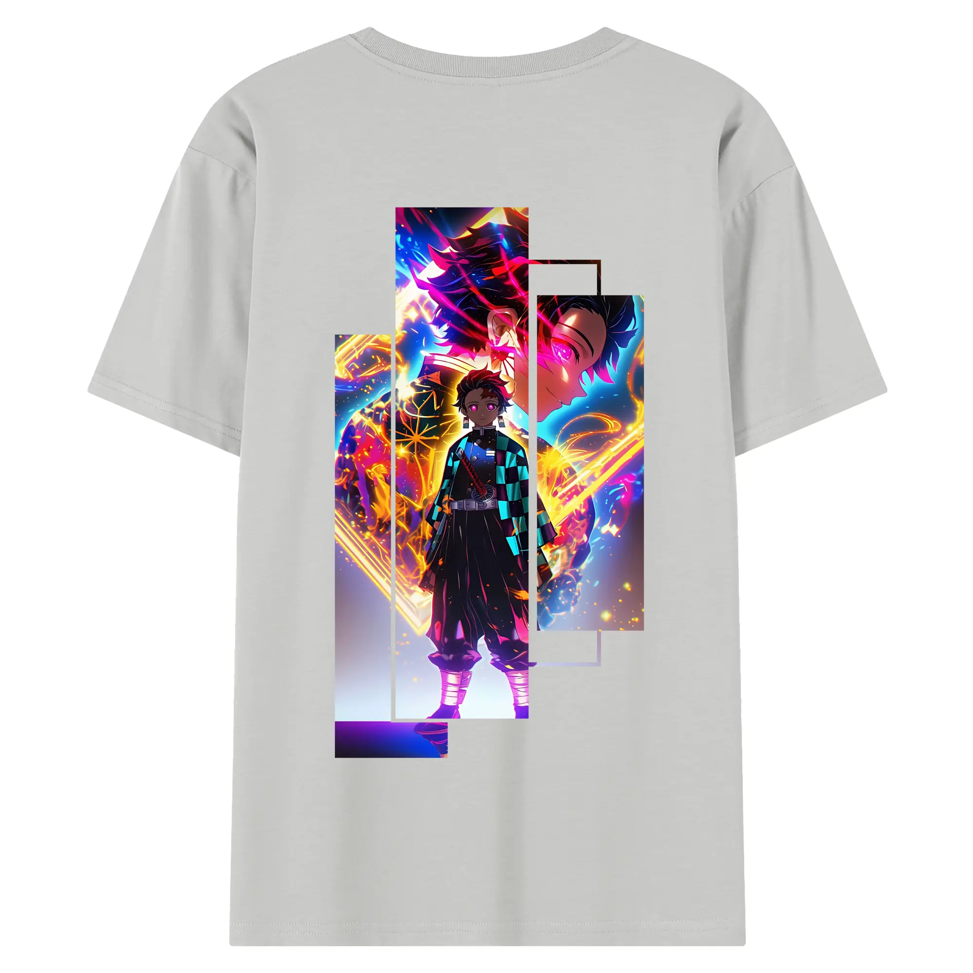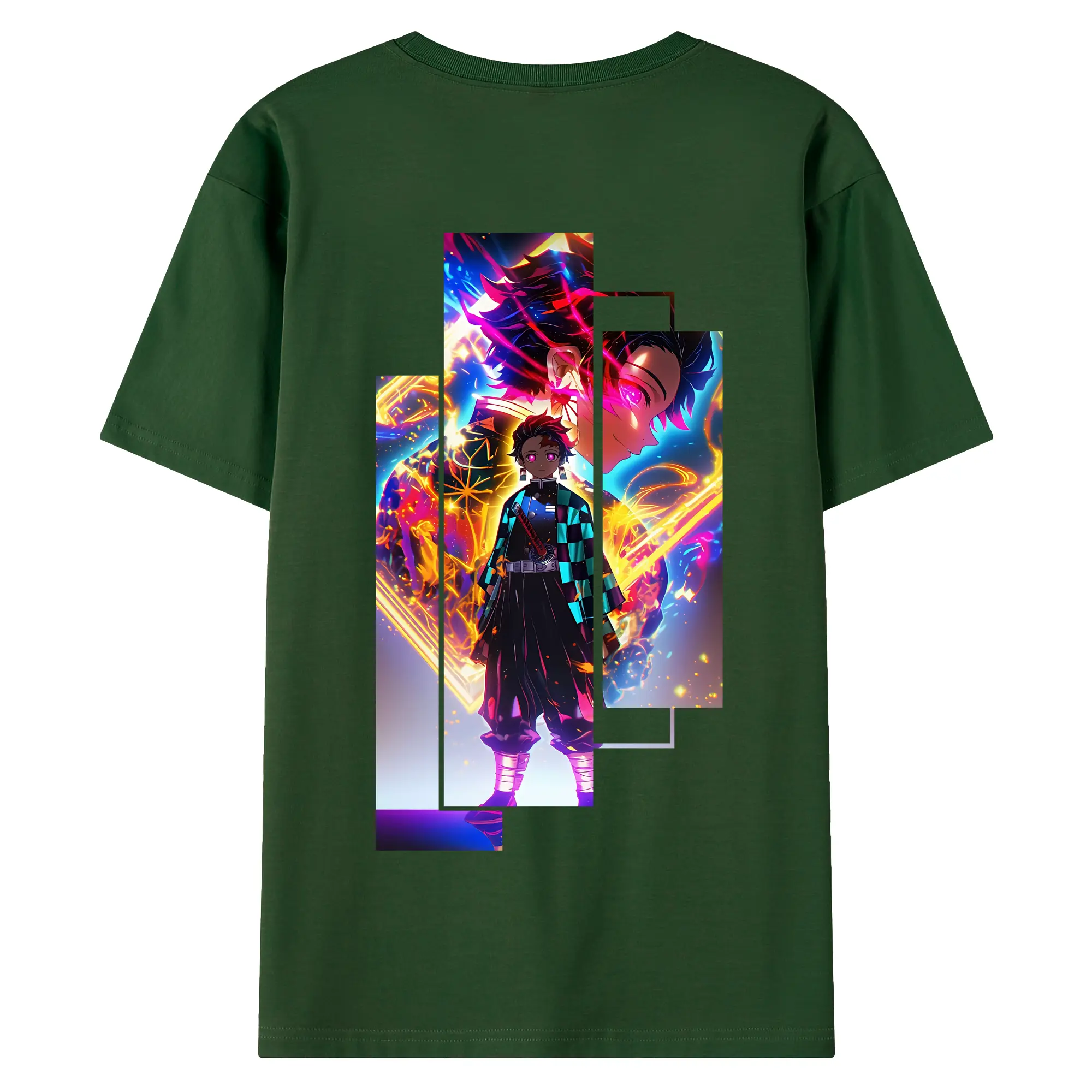 鬼滅の刃 グッズ,竈門 炭治郎 - 綿100% 半袖Tシャツ ・ バックプリント ・ 快適 通気性 ・ 日常使い 散歩 スポーツ用