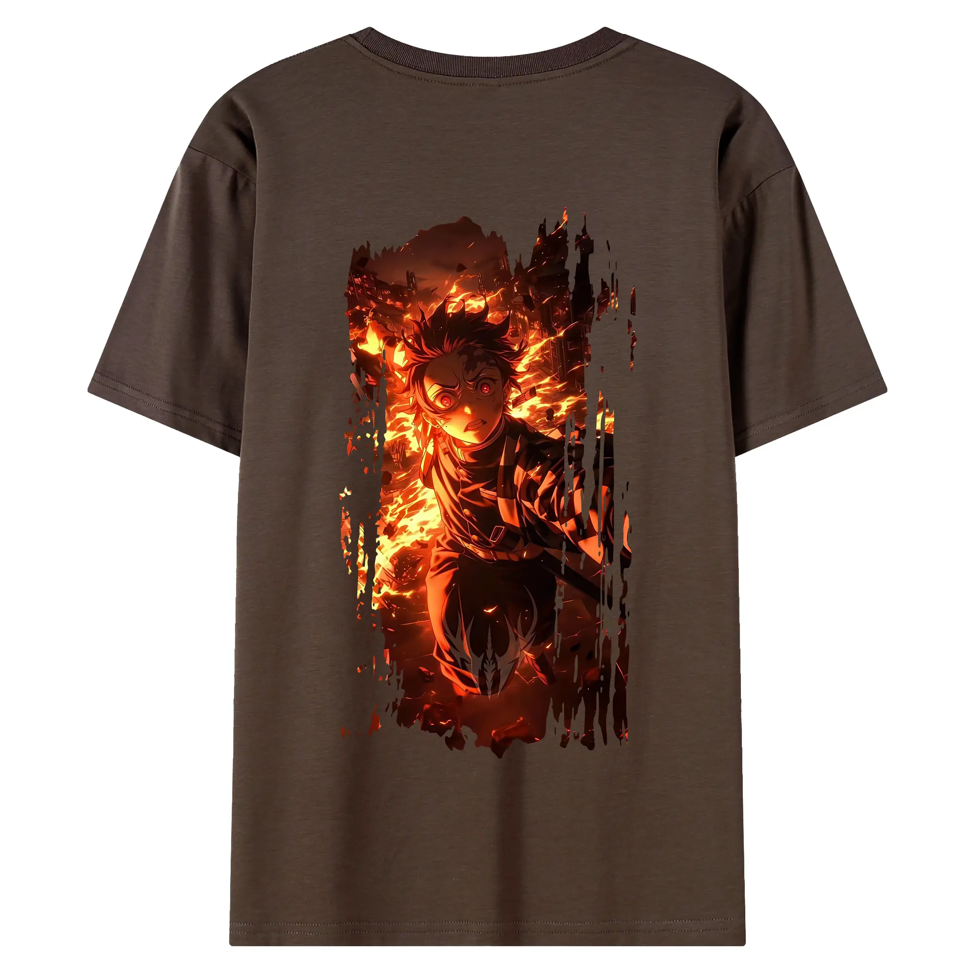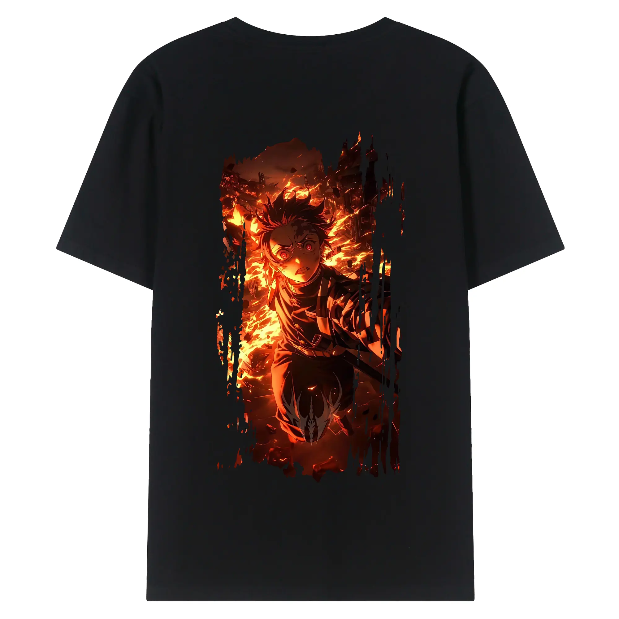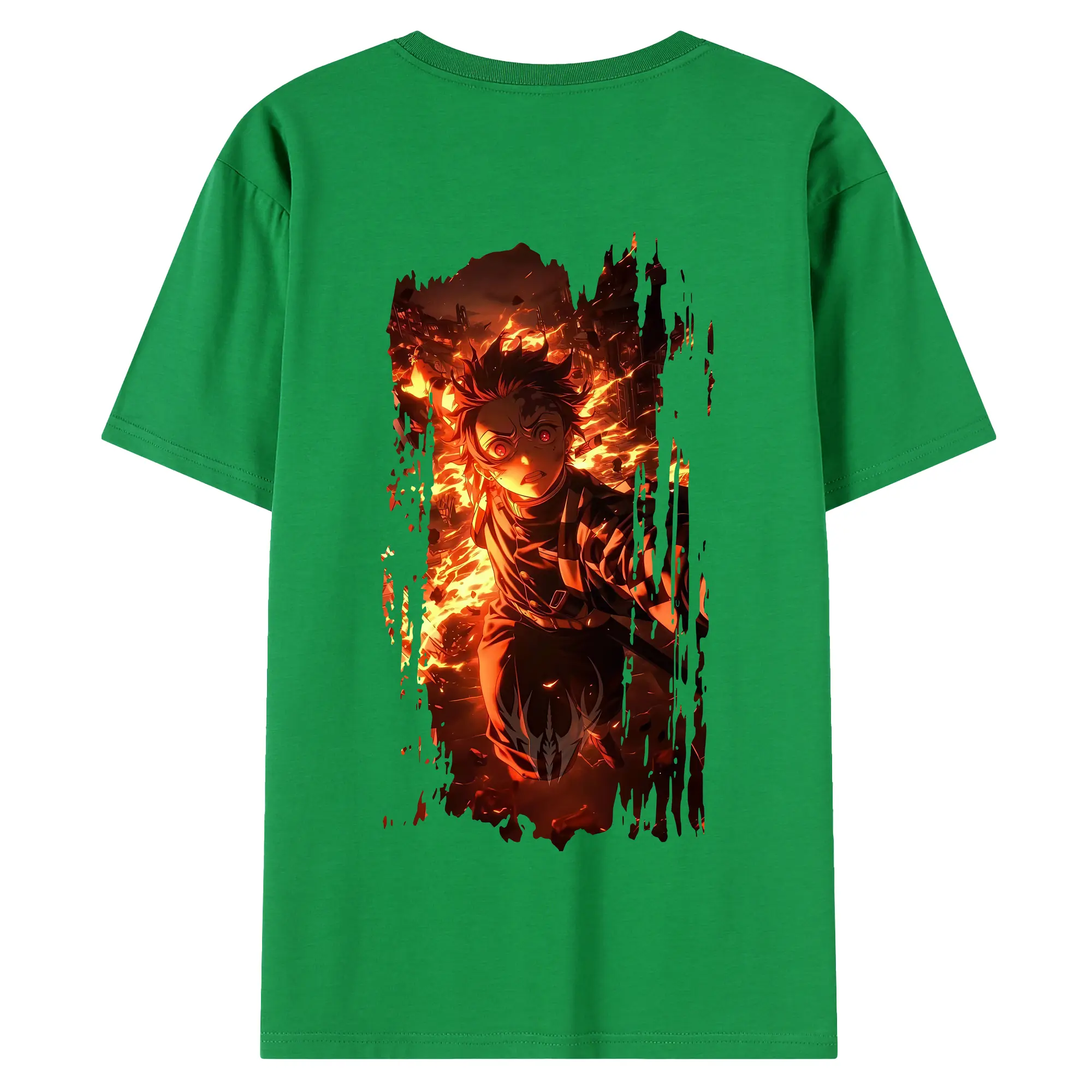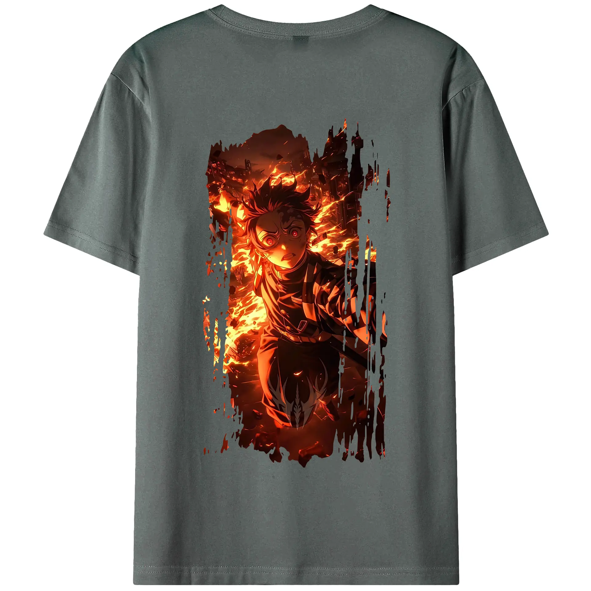 鬼滅の刃 グッズ,竈門 炭治郎 - 綿100% 半袖Tシャツ ・ フロントプリント ・ 快適 通気性 ・ 日常使い 散歩 スポーツ用