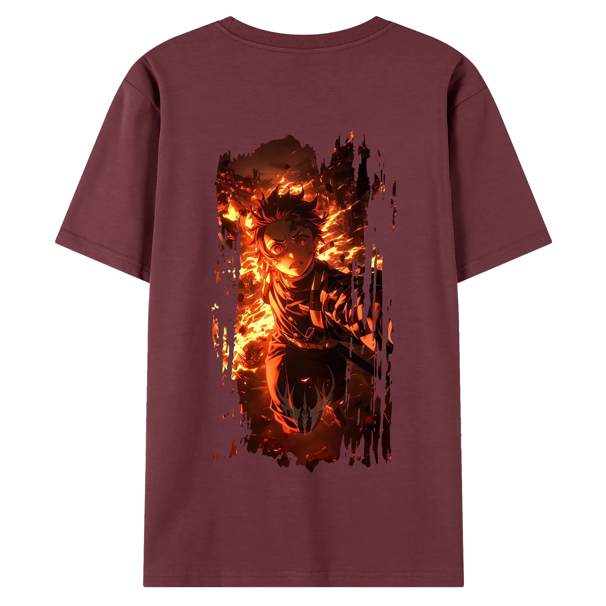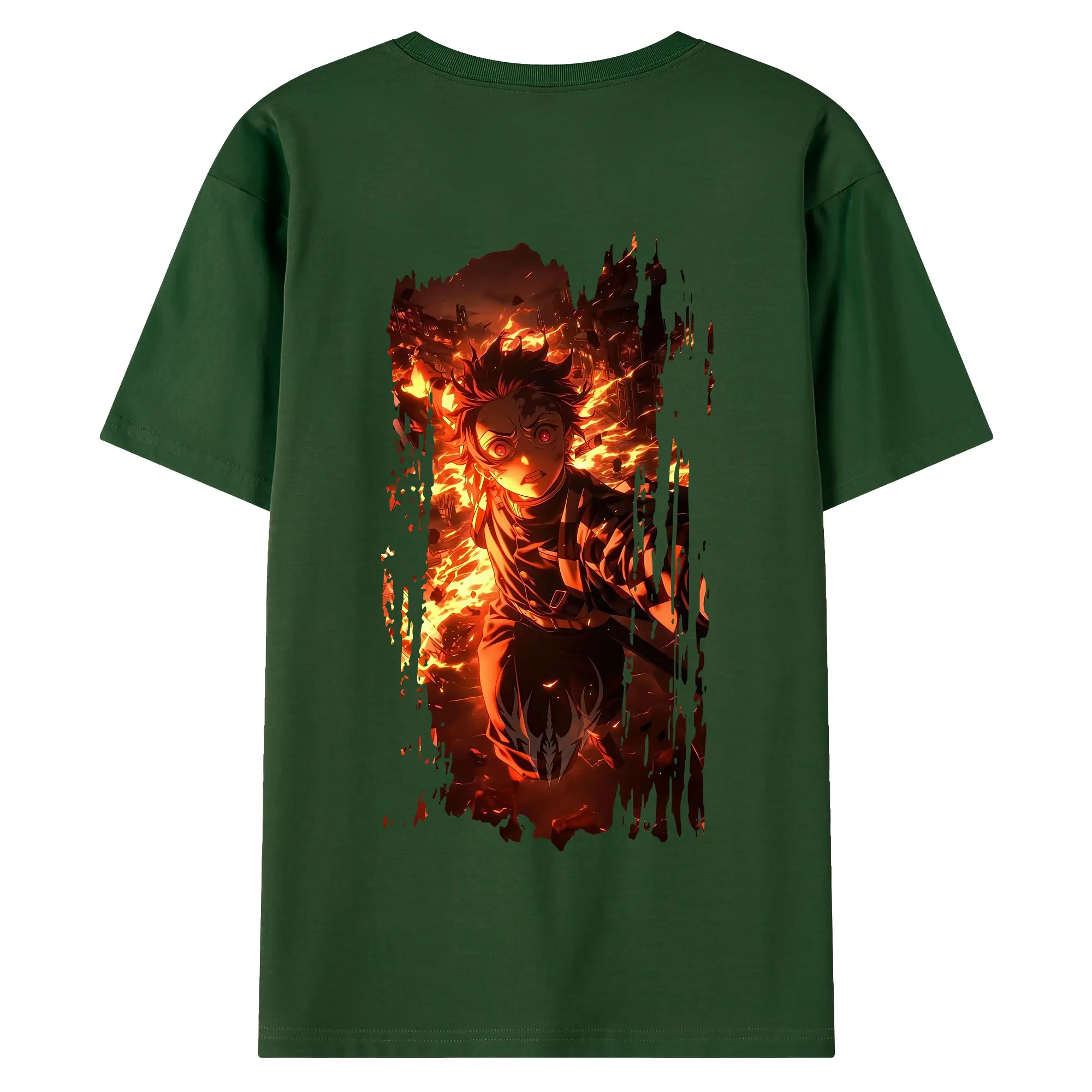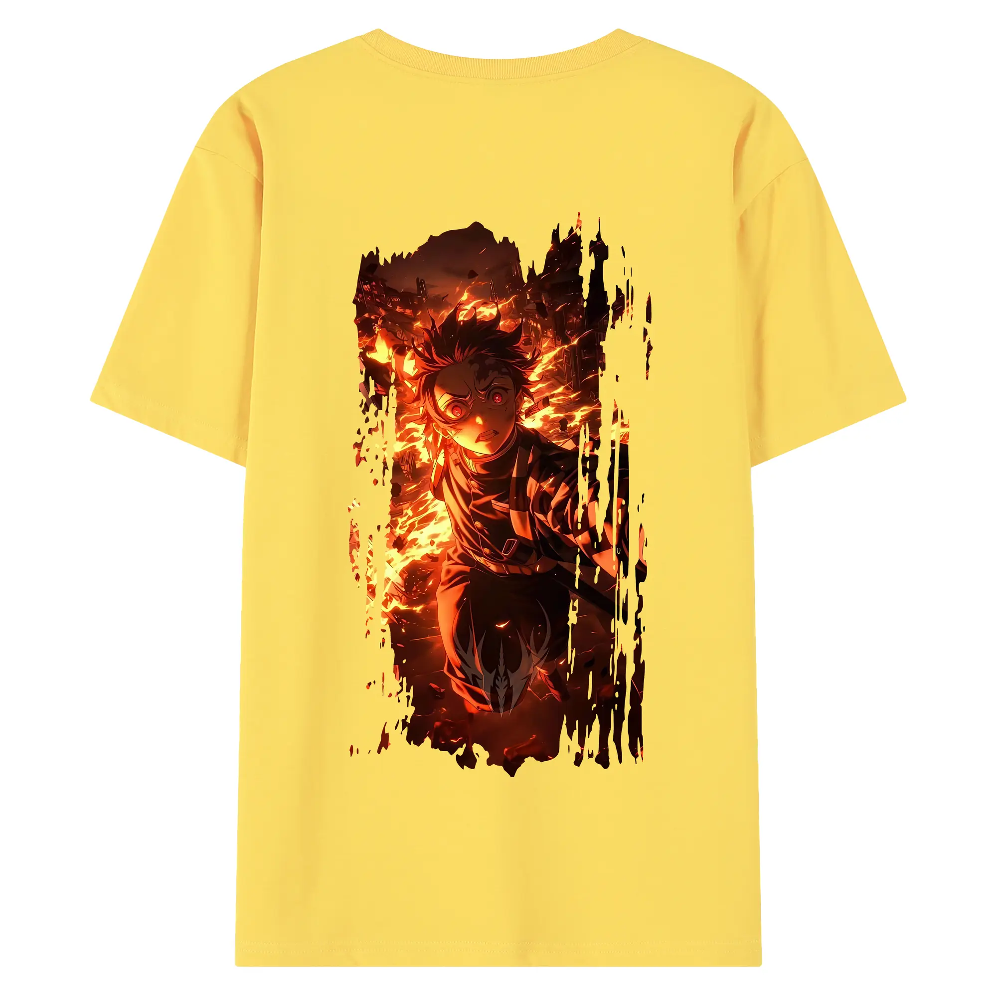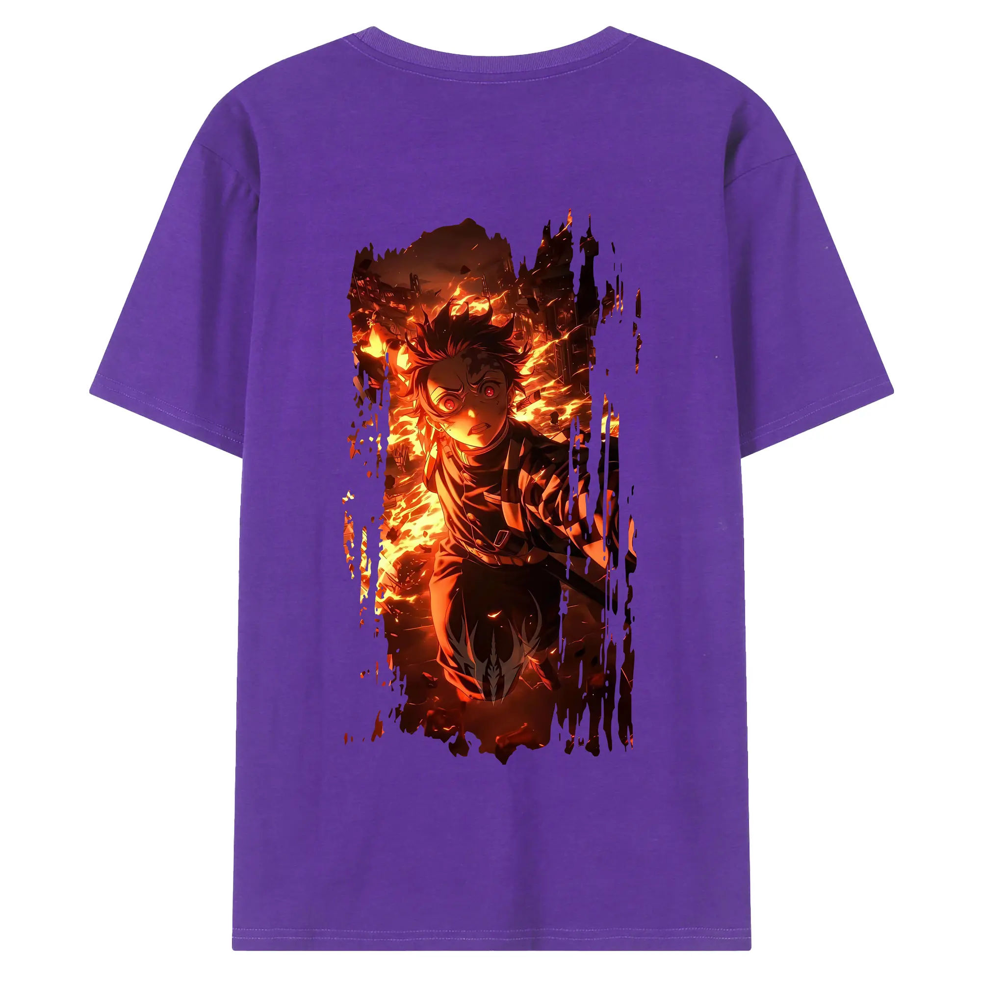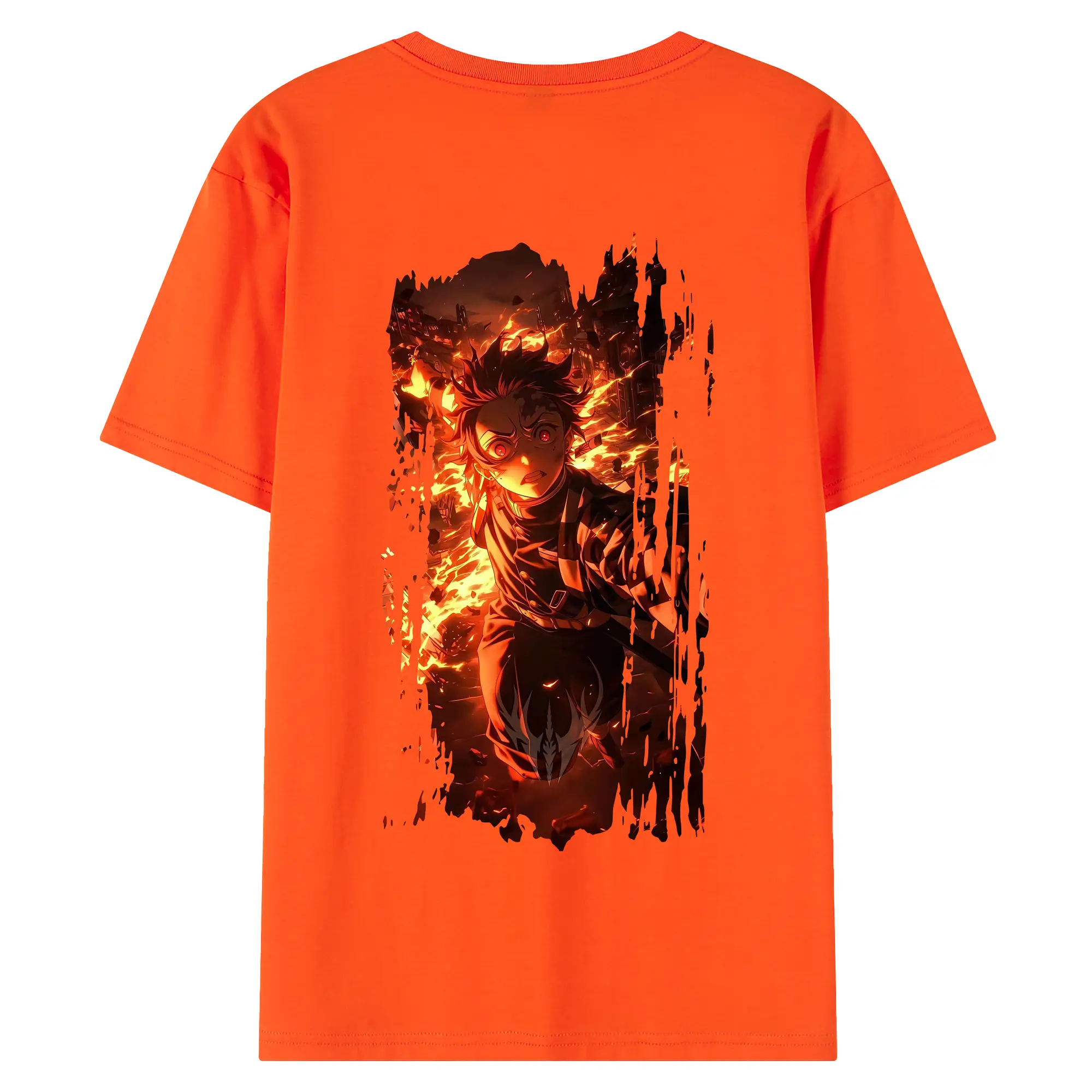 鬼滅の刃 グッズ,竈門 炭治郎 - 綿100% 半袖Tシャツ ・ フロントプリント ・ 快適 通気性 ・ 日常使い 散歩 スポーツ用