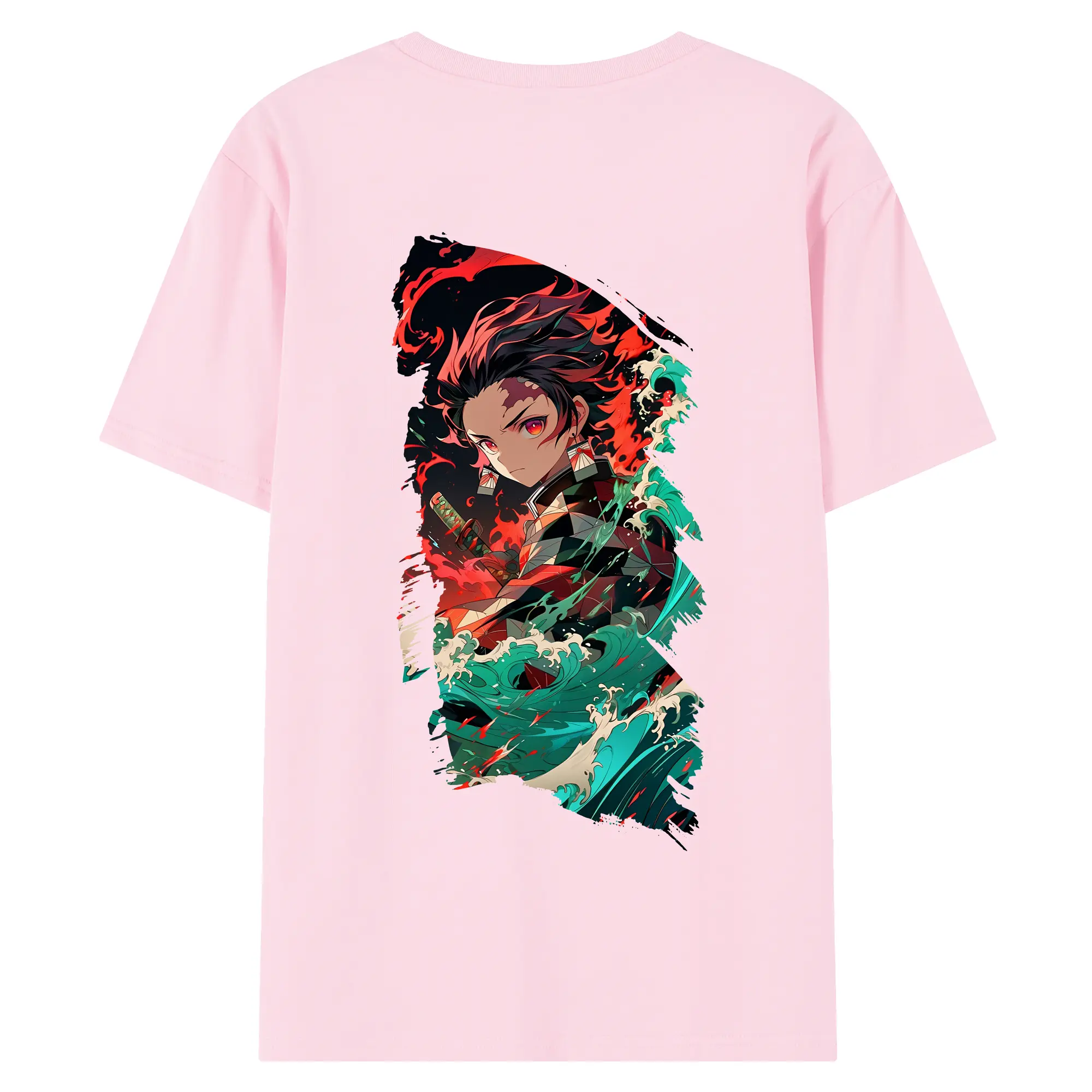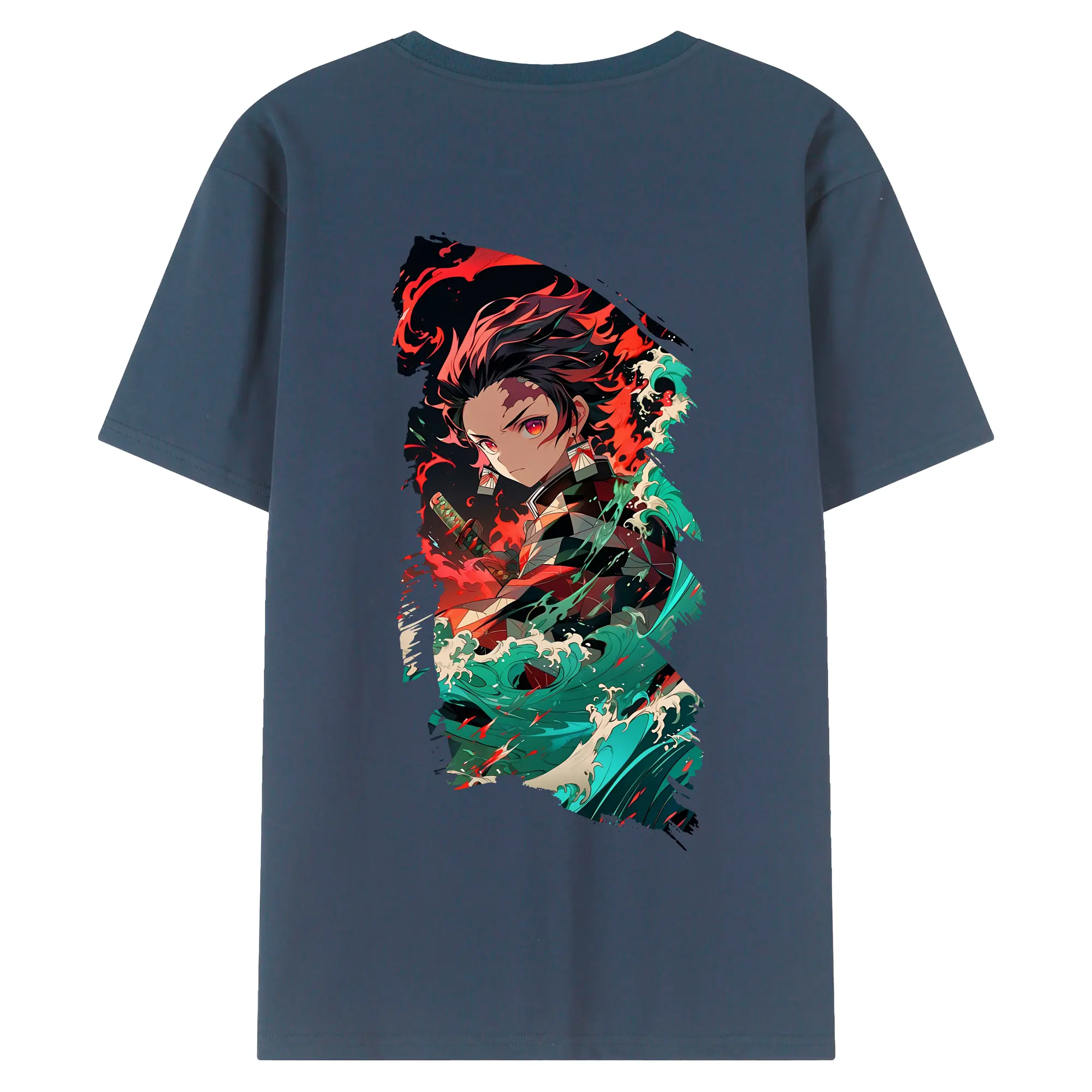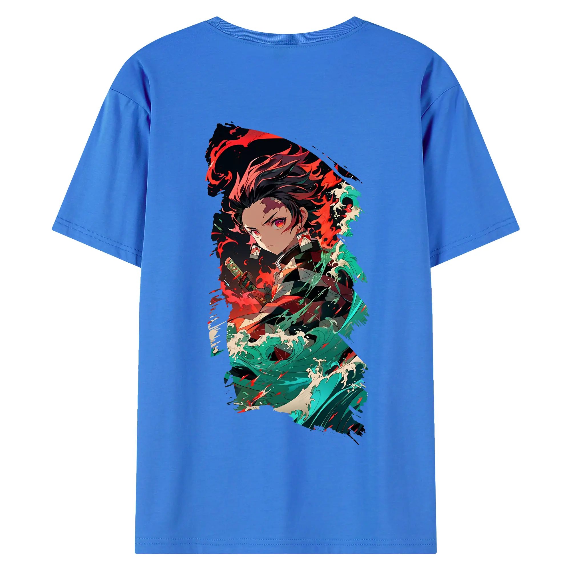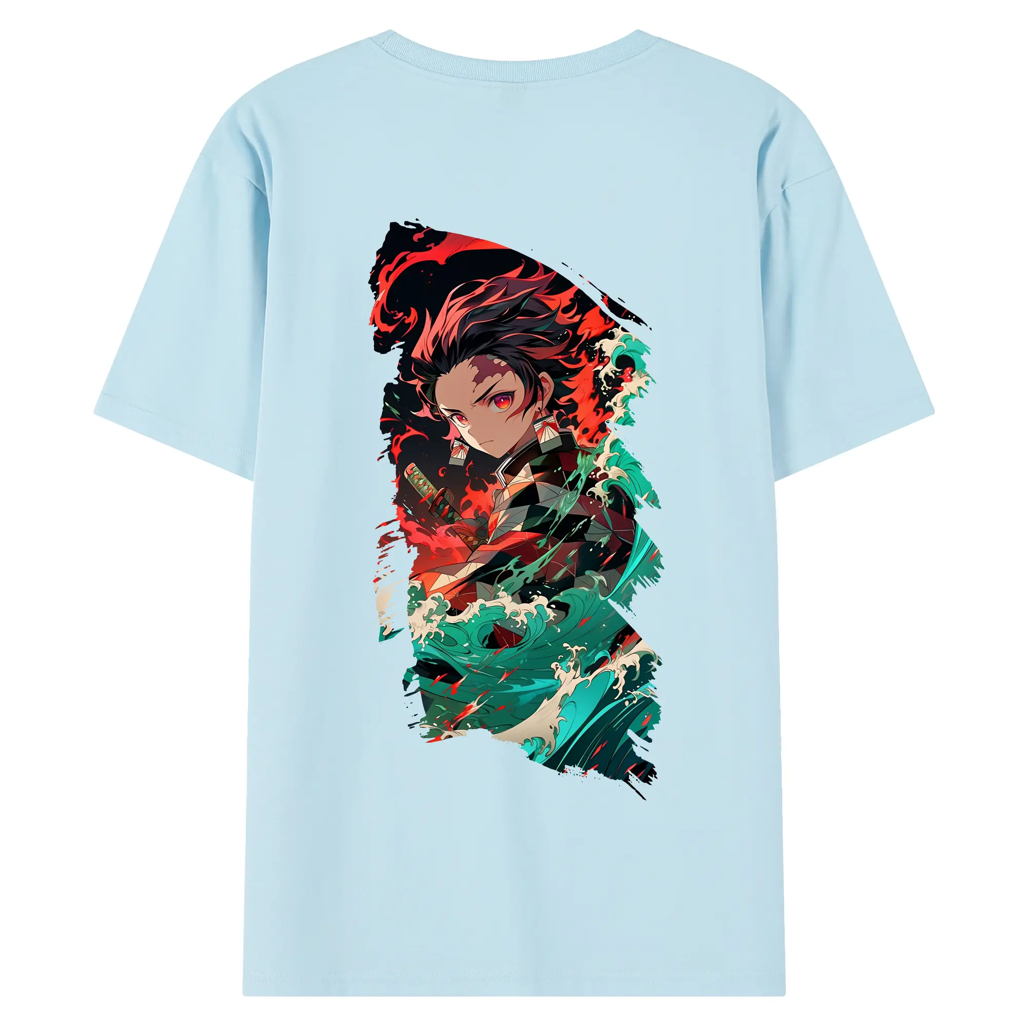 鬼滅の刃 グッズ,竈門 炭治郎 - 綿100% 半袖Tシャツ ・ フロントプリント ・ 快適 通気性 ・ 日常使い 散歩 スポーツ用