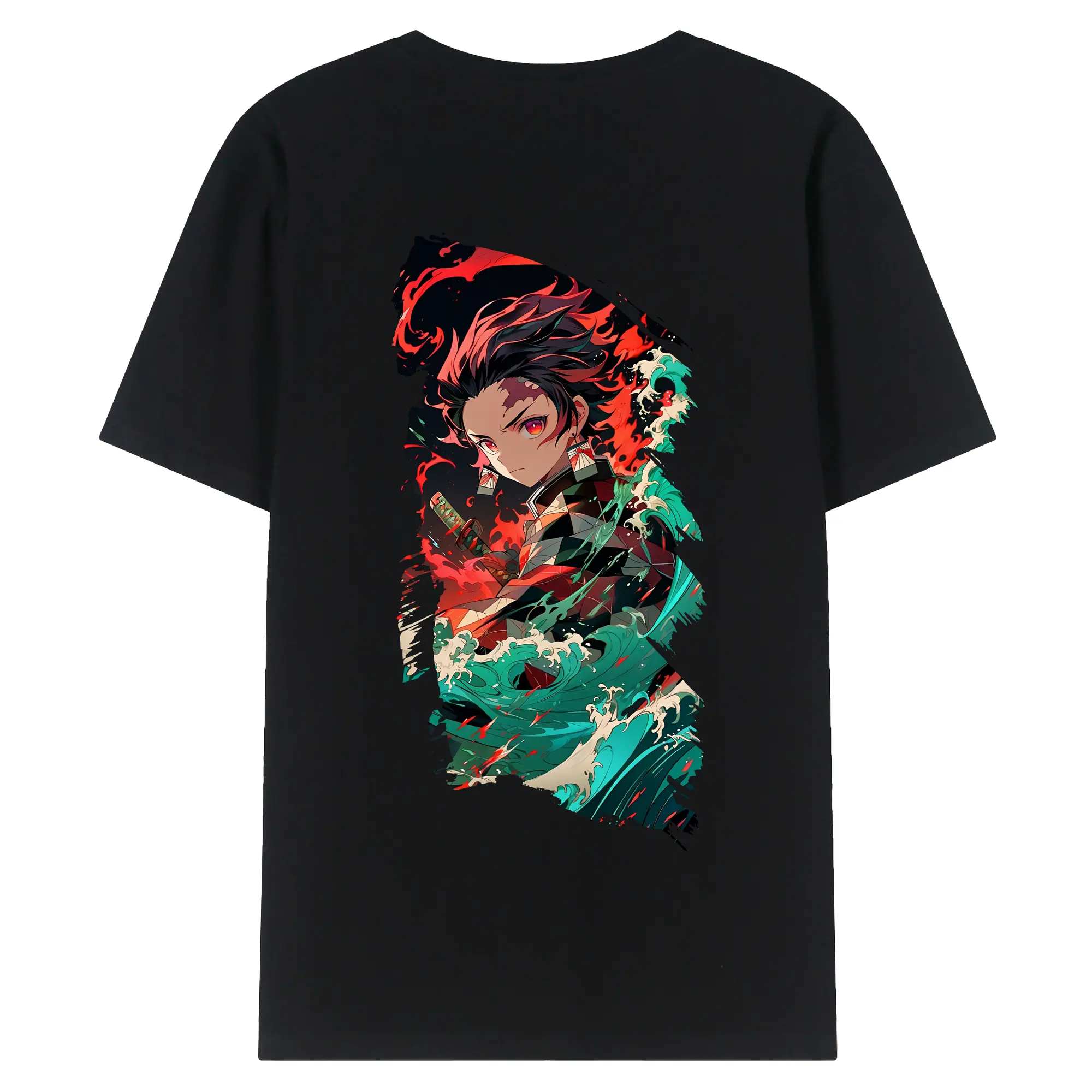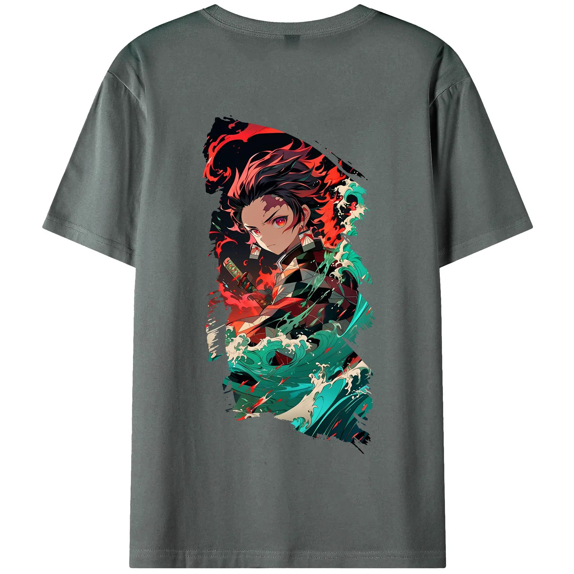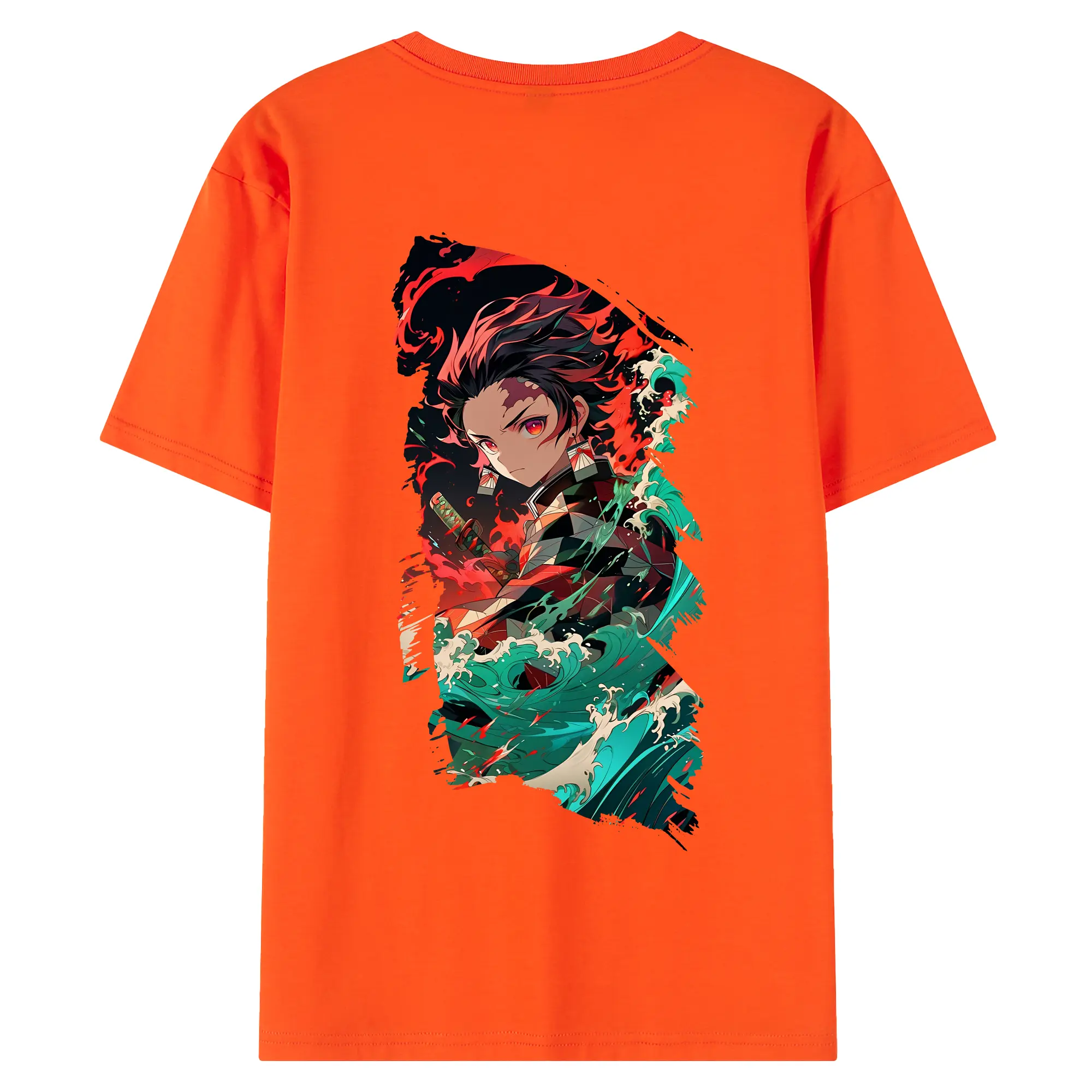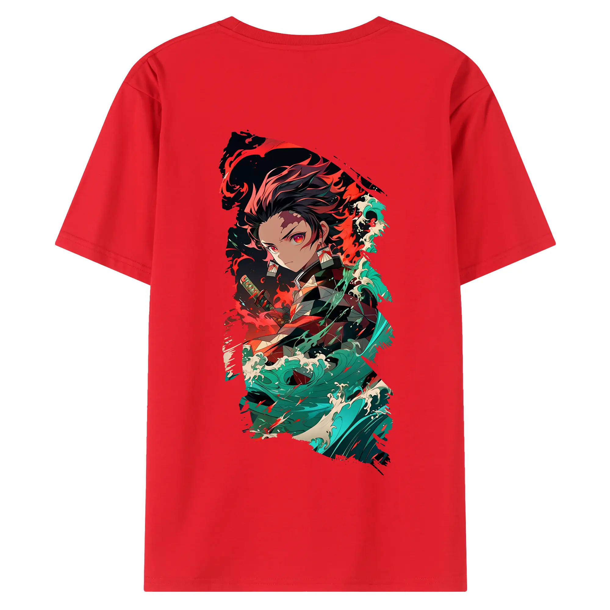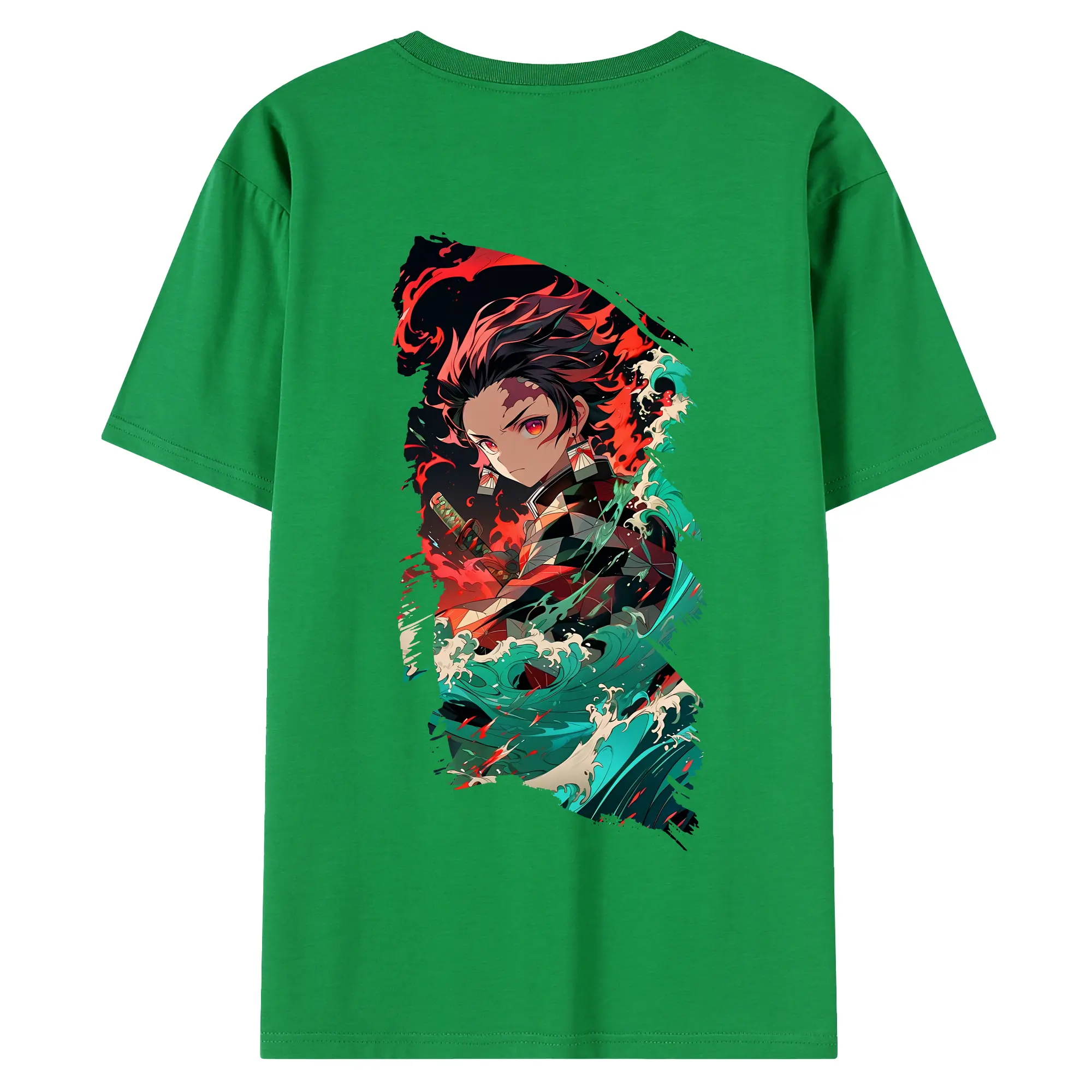 鬼滅の刃 グッズ,竈門 炭治郎 - 綿100% 半袖Tシャツ ・ フロントプリント ・ 快適 通気性 ・ 日常使い 散歩 スポーツ用