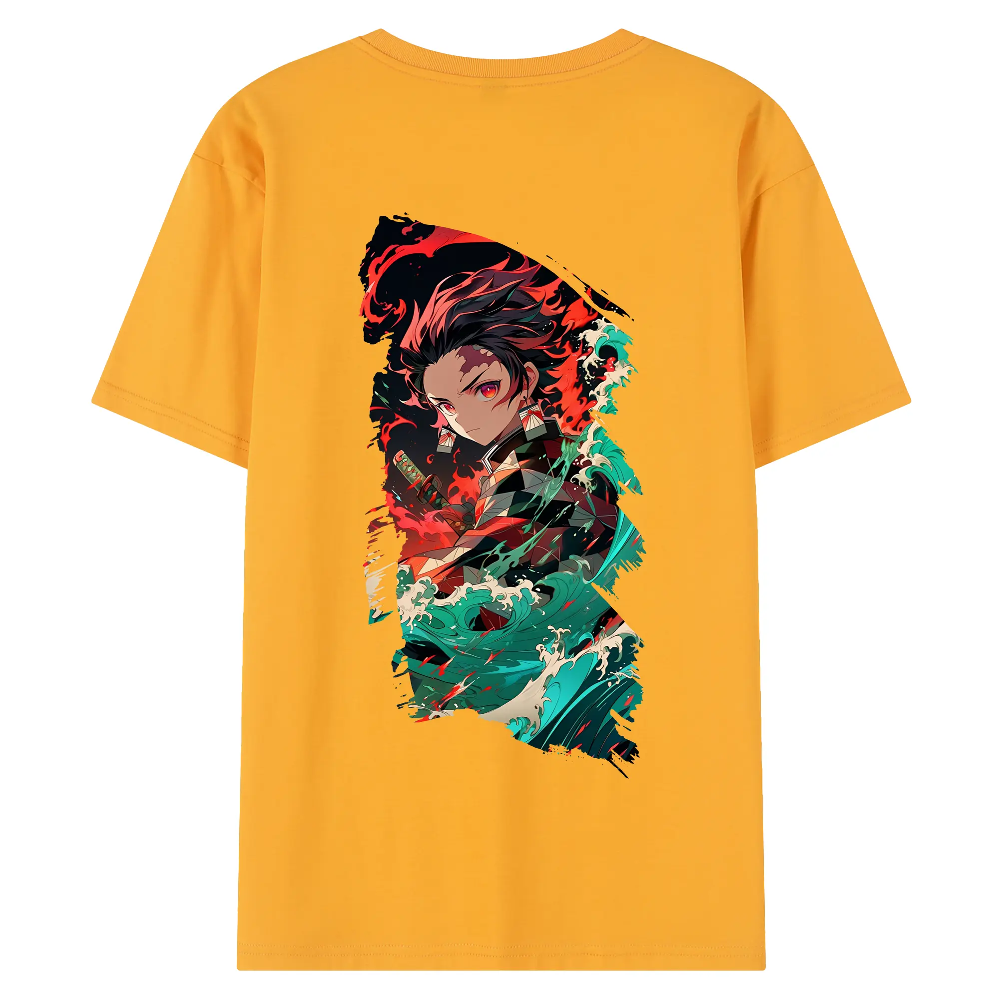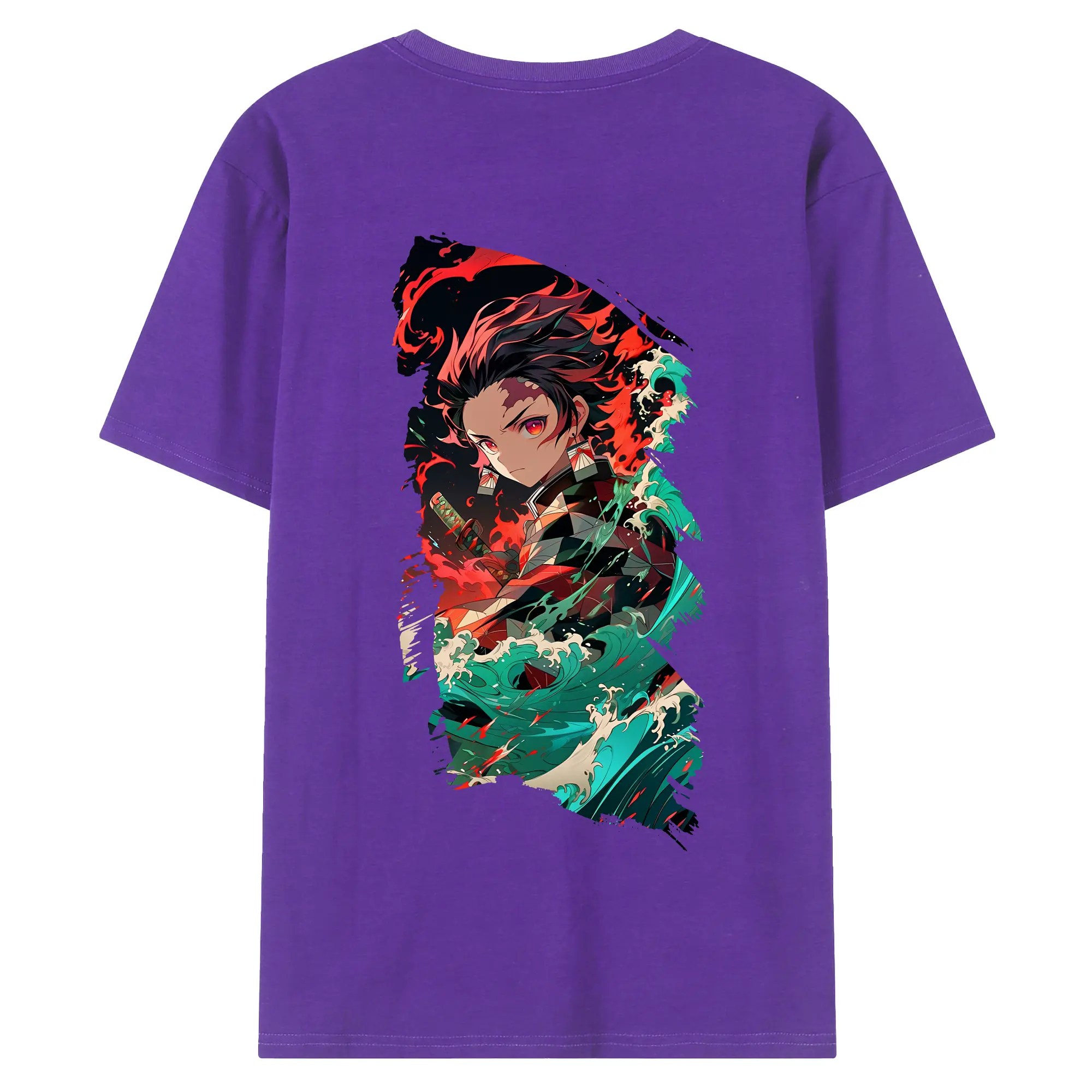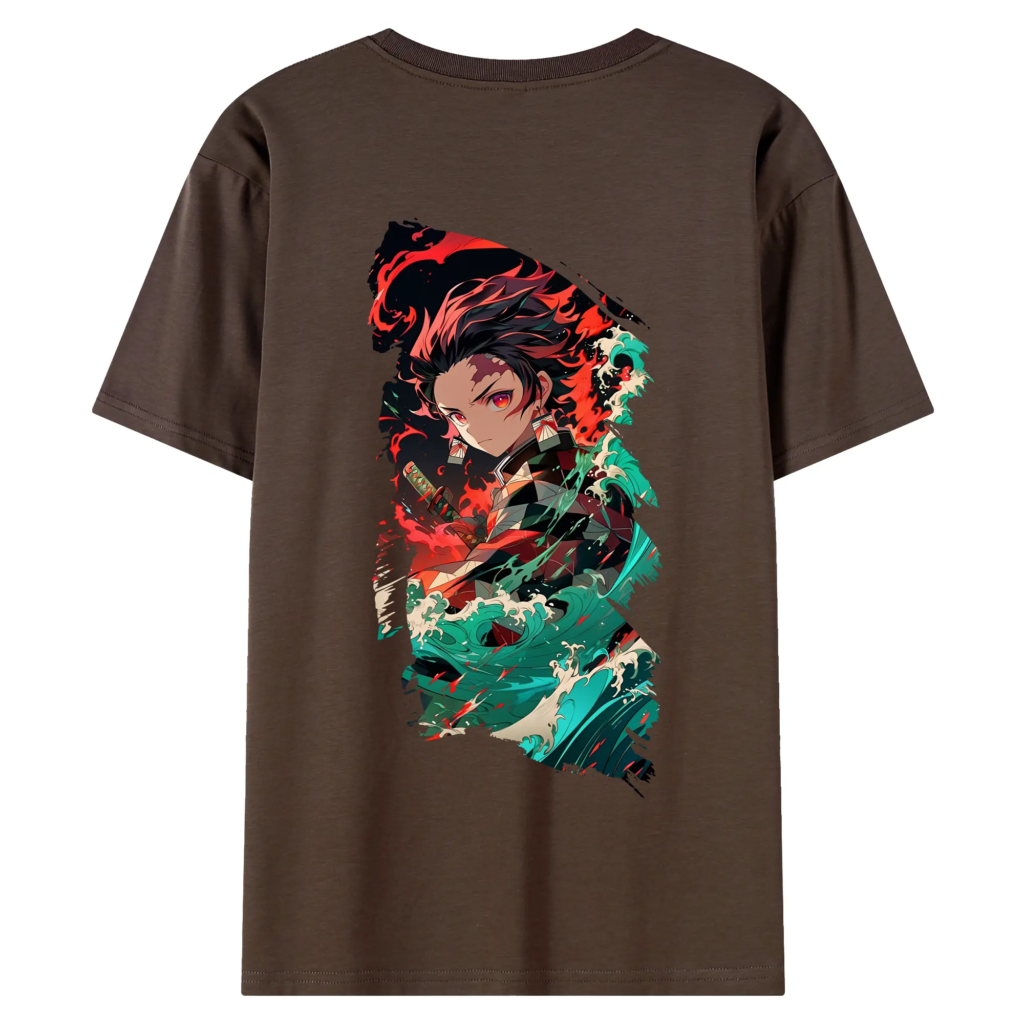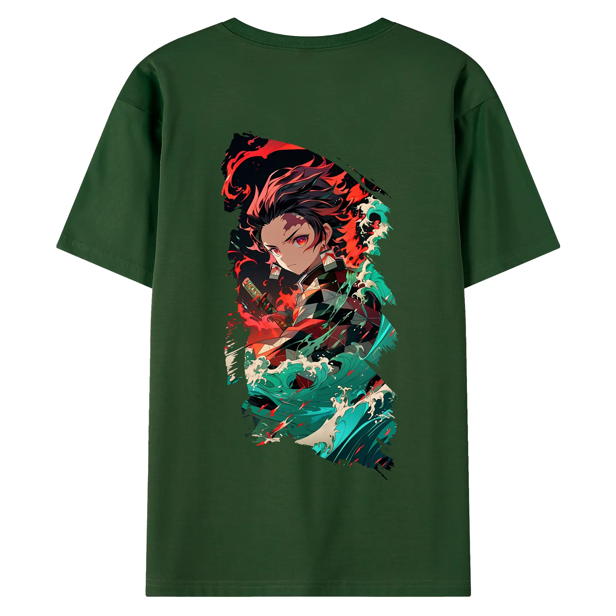 鬼滅の刃 グッズ,竈門 炭治郎 - 綿100% 半袖Tシャツ ・ フロントプリント ・ 快適 通気性 ・ 日常使い 散歩 スポーツ用