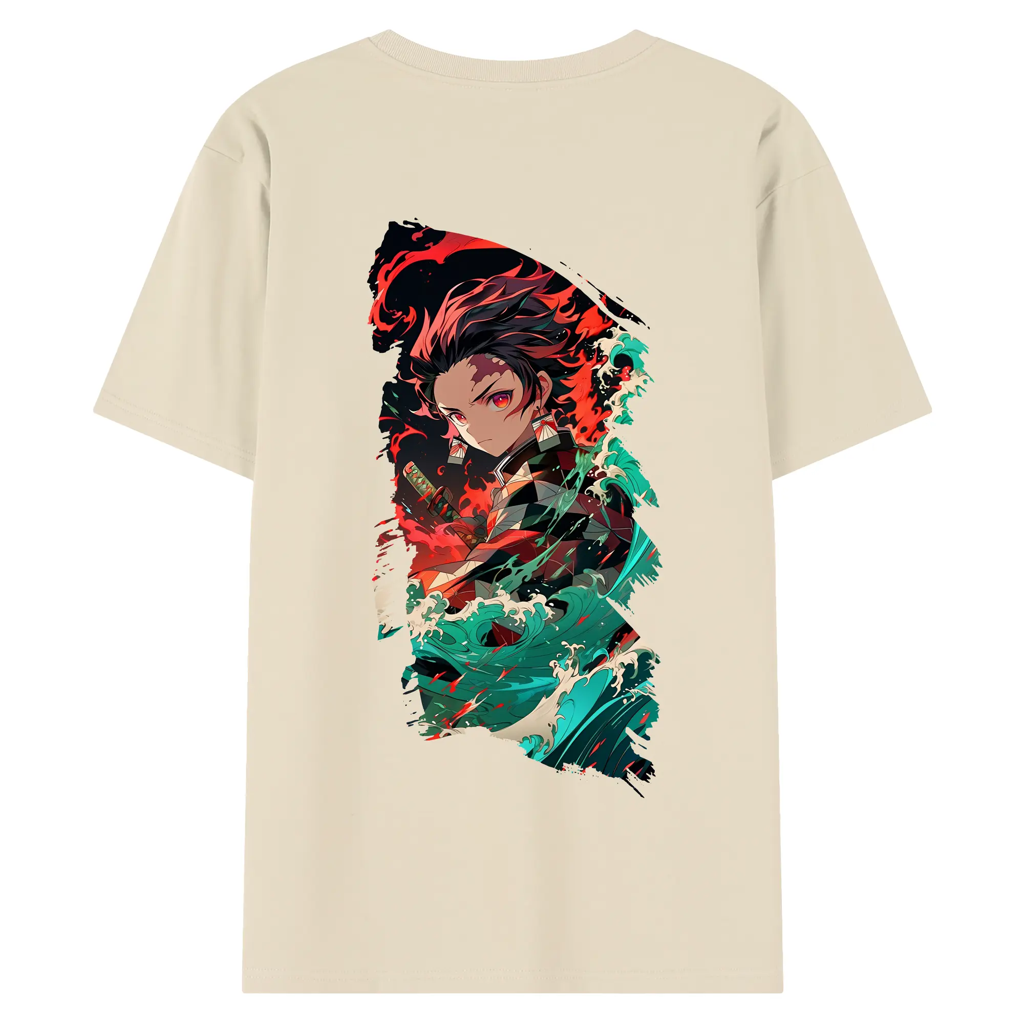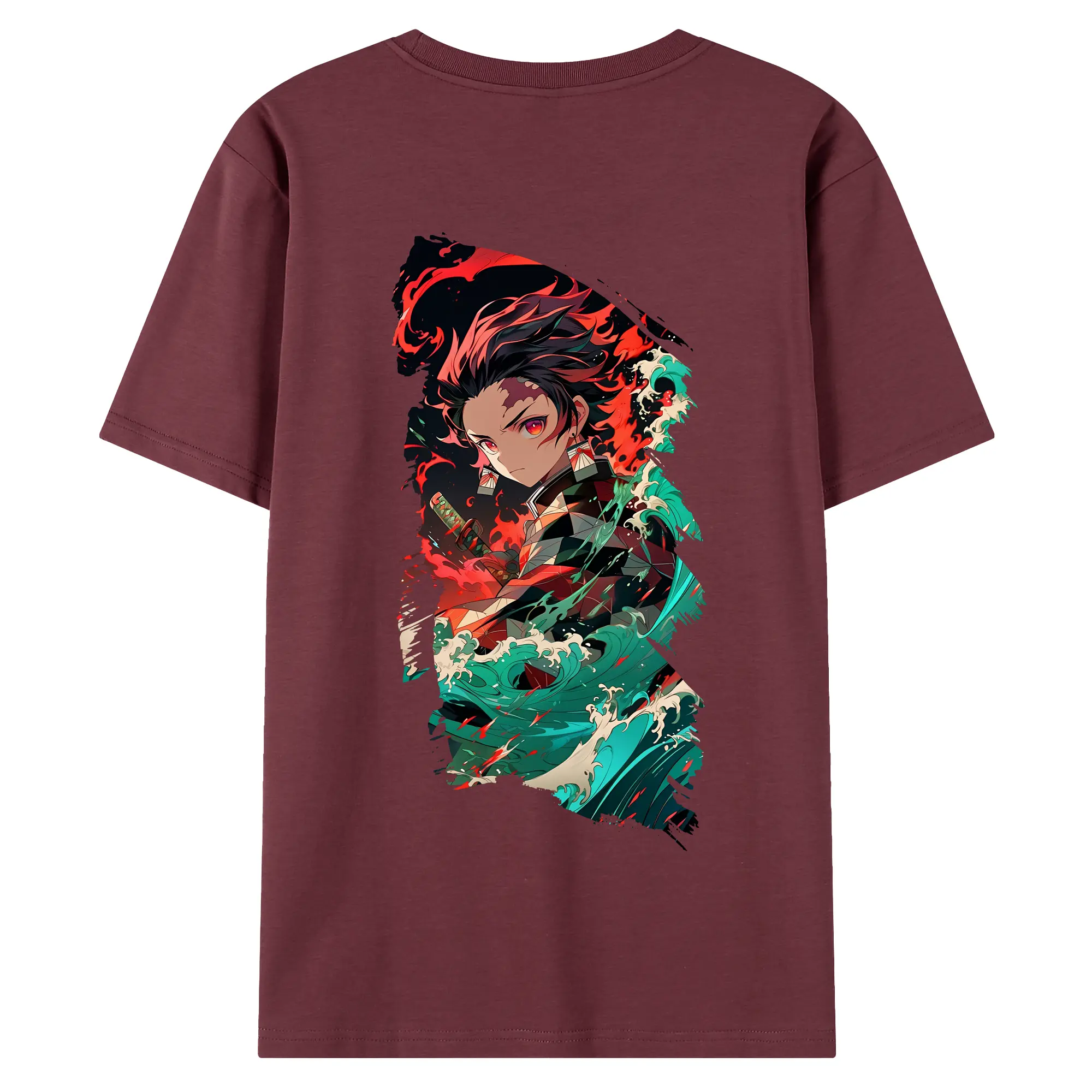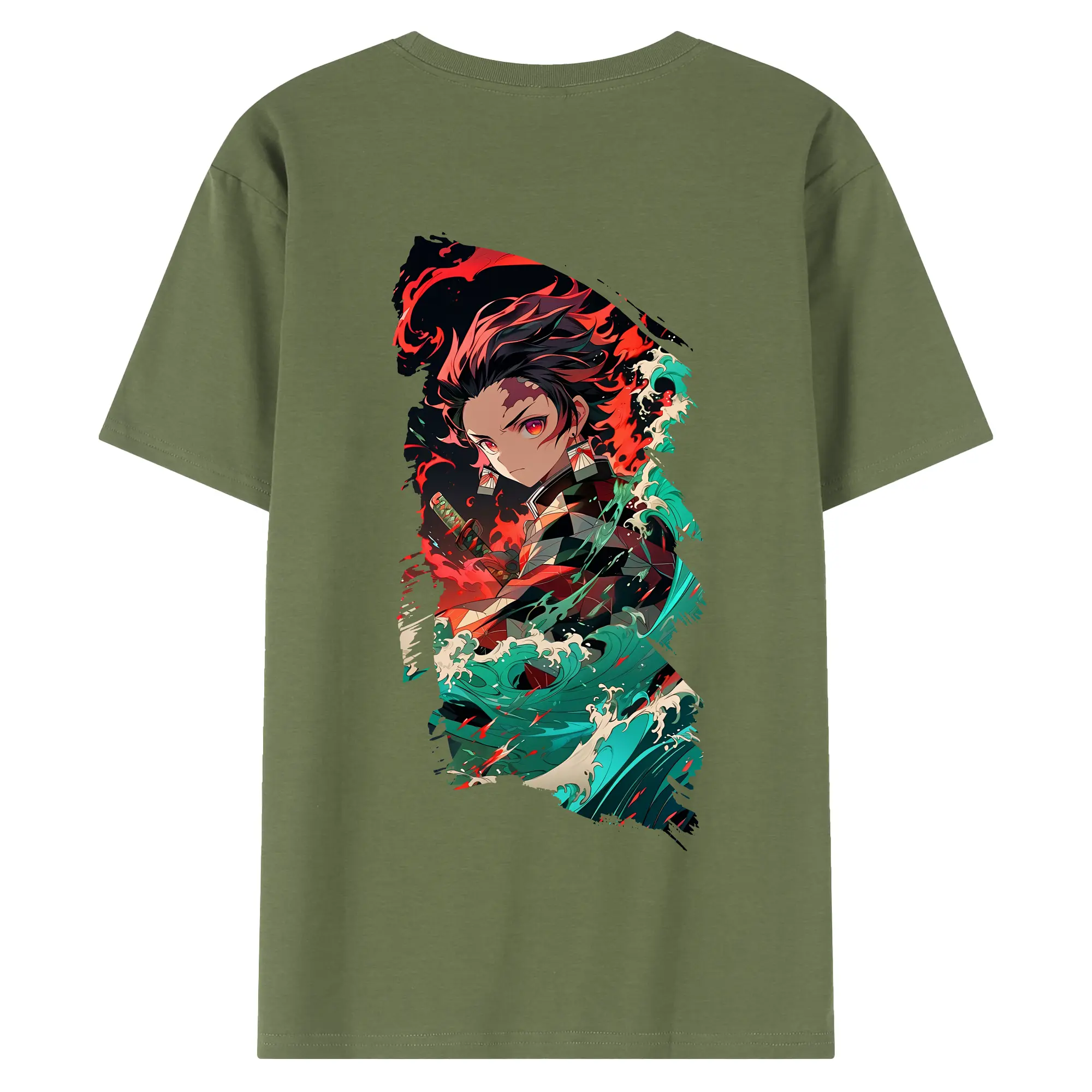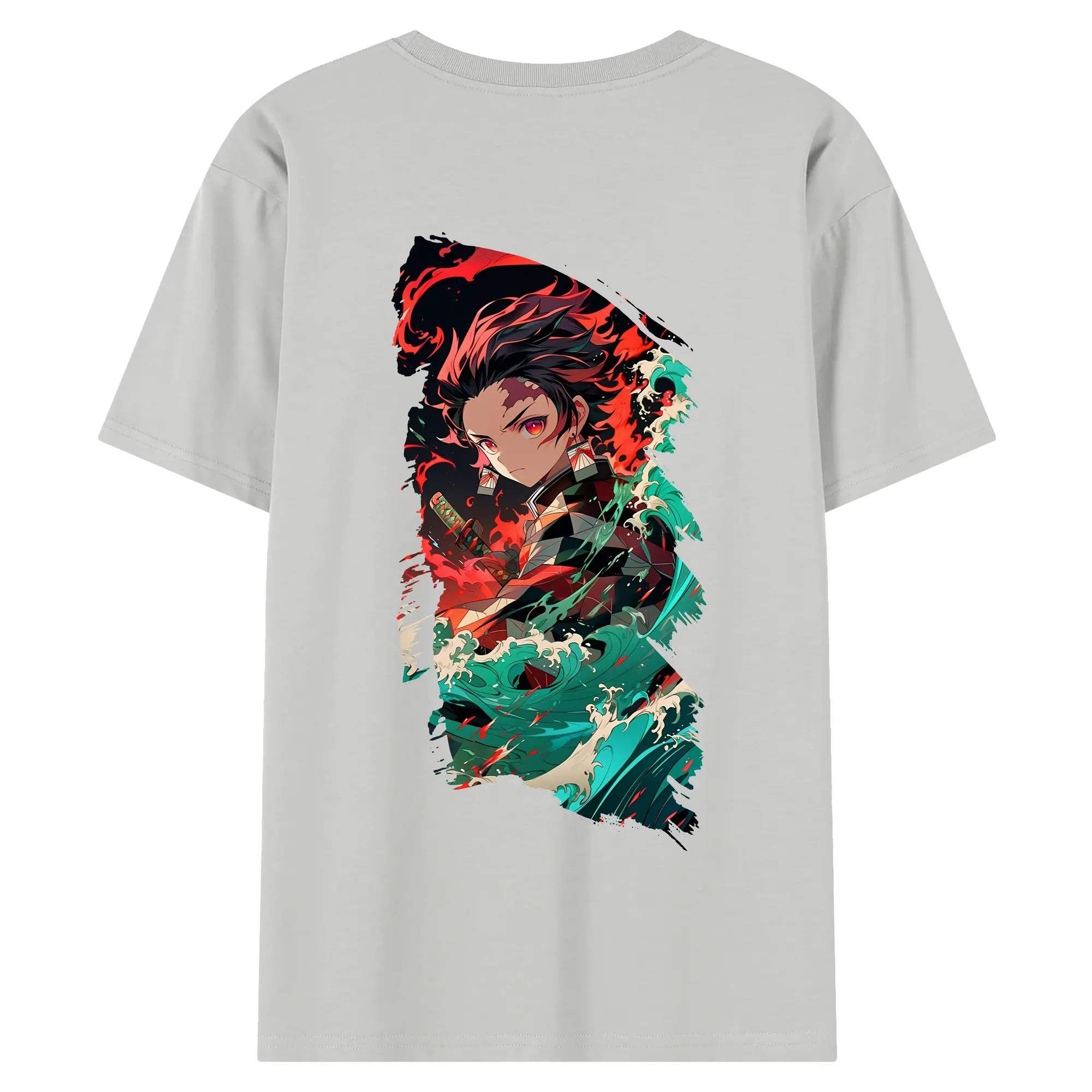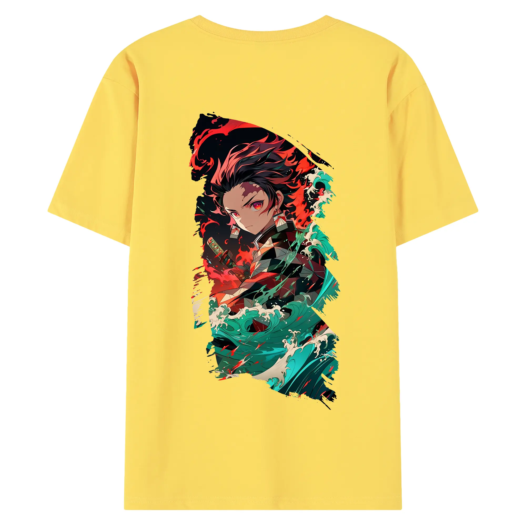 鬼滅の刃 グッズ,竈門 炭治郎 - 綿100% 半袖Tシャツ ・ フロントプリント ・ 快適 通気性 ・ 日常使い 散歩 スポーツ用