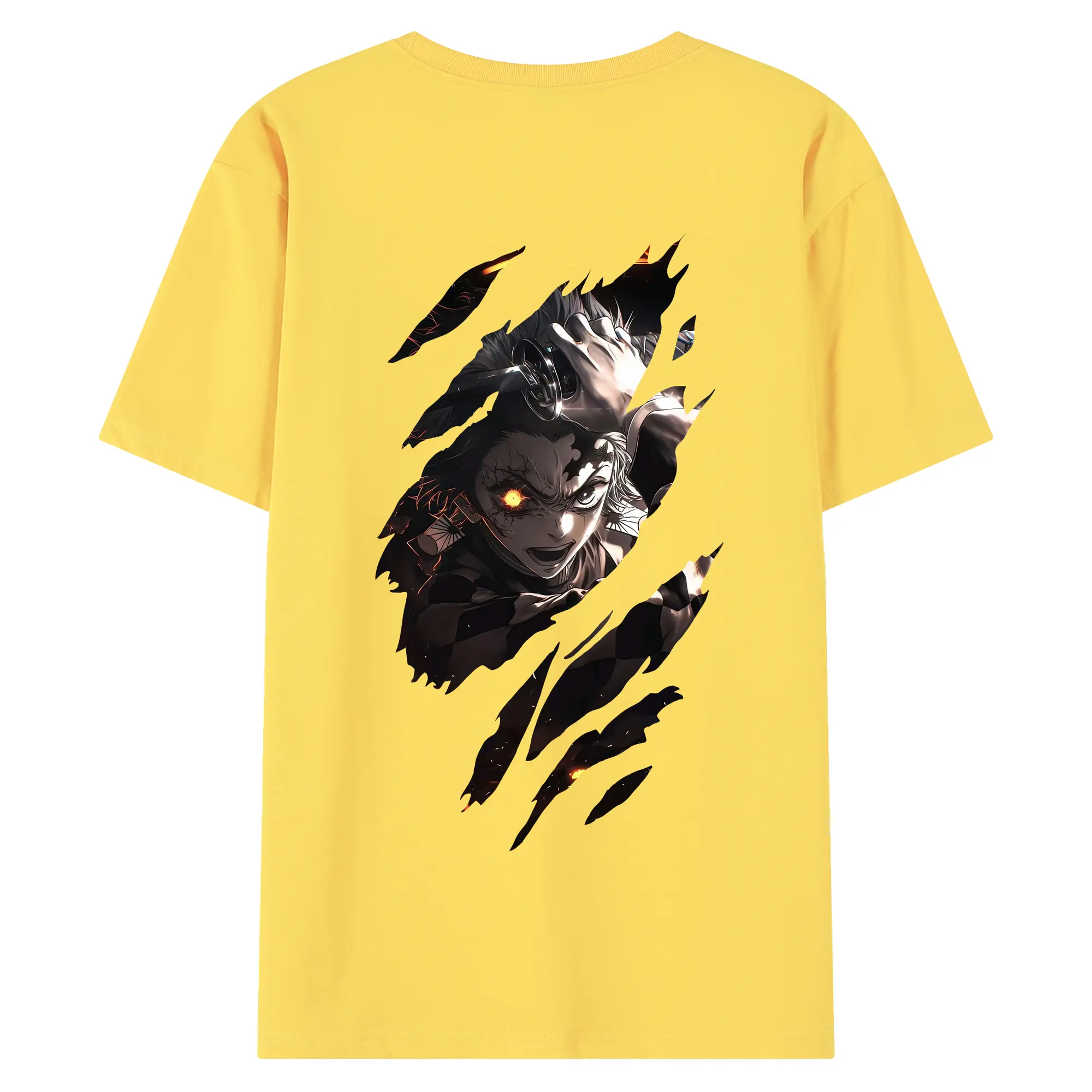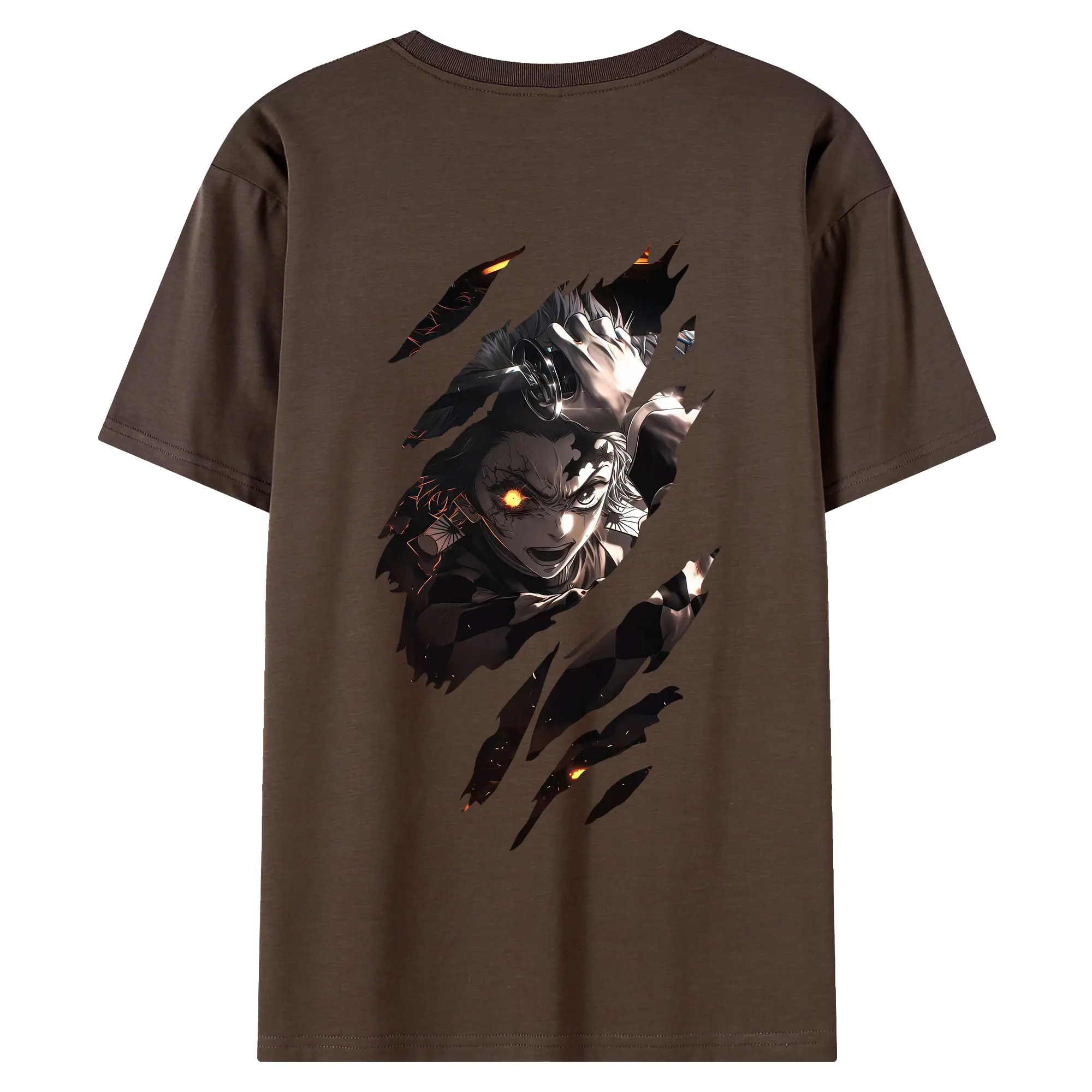 鬼滅の刃 グッズ,竈門 炭治郎 - 綿100% 半袖Tシャツ ・ フロントプリント ・ 快適 通気性 ・ 日常使い 散歩 スポーツ用