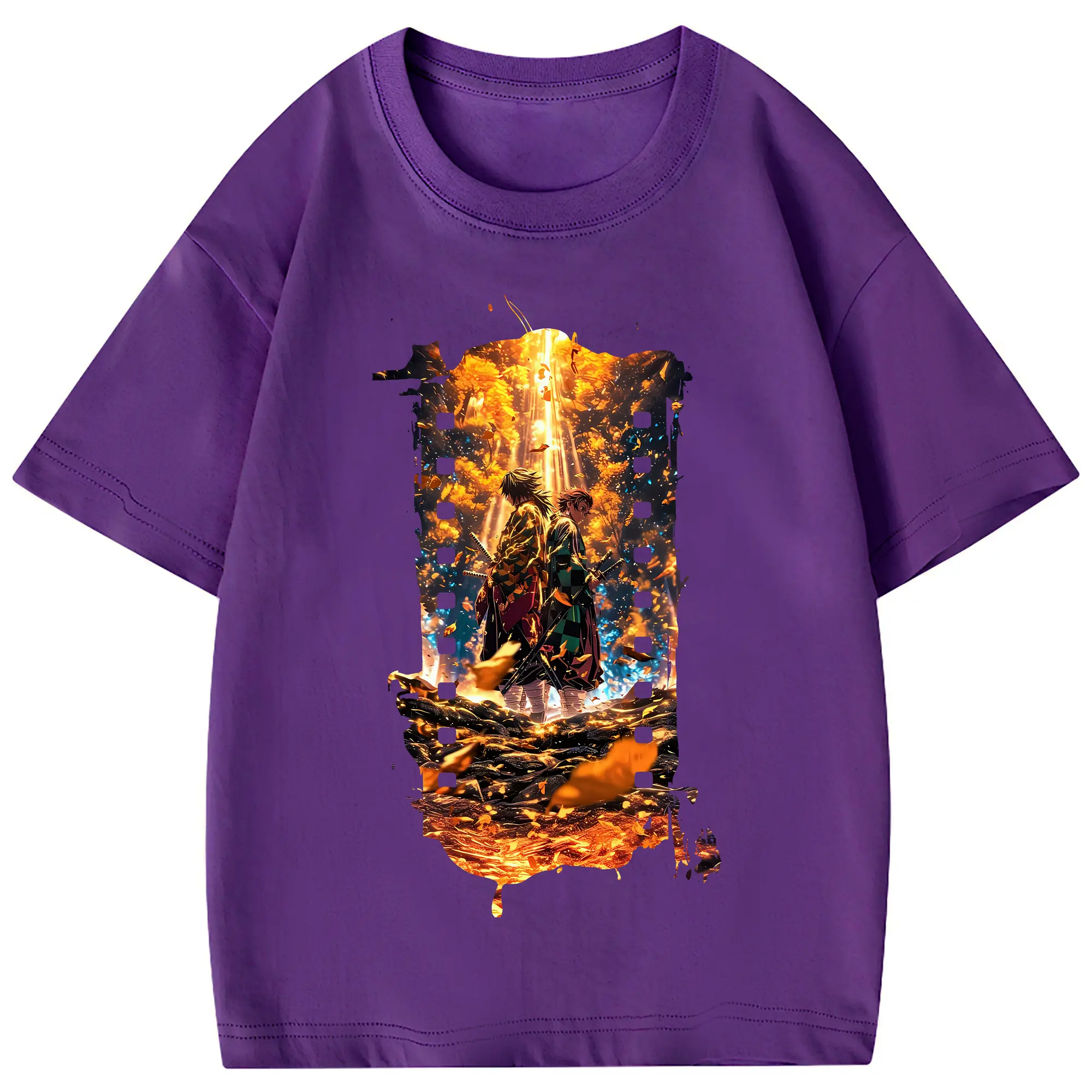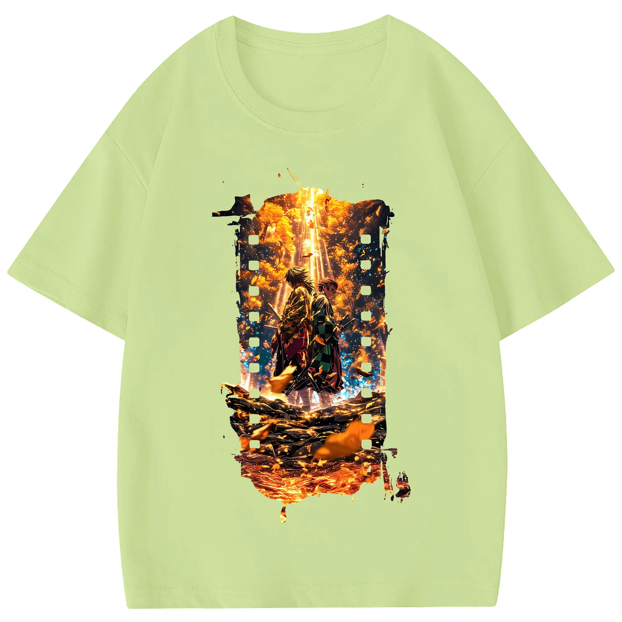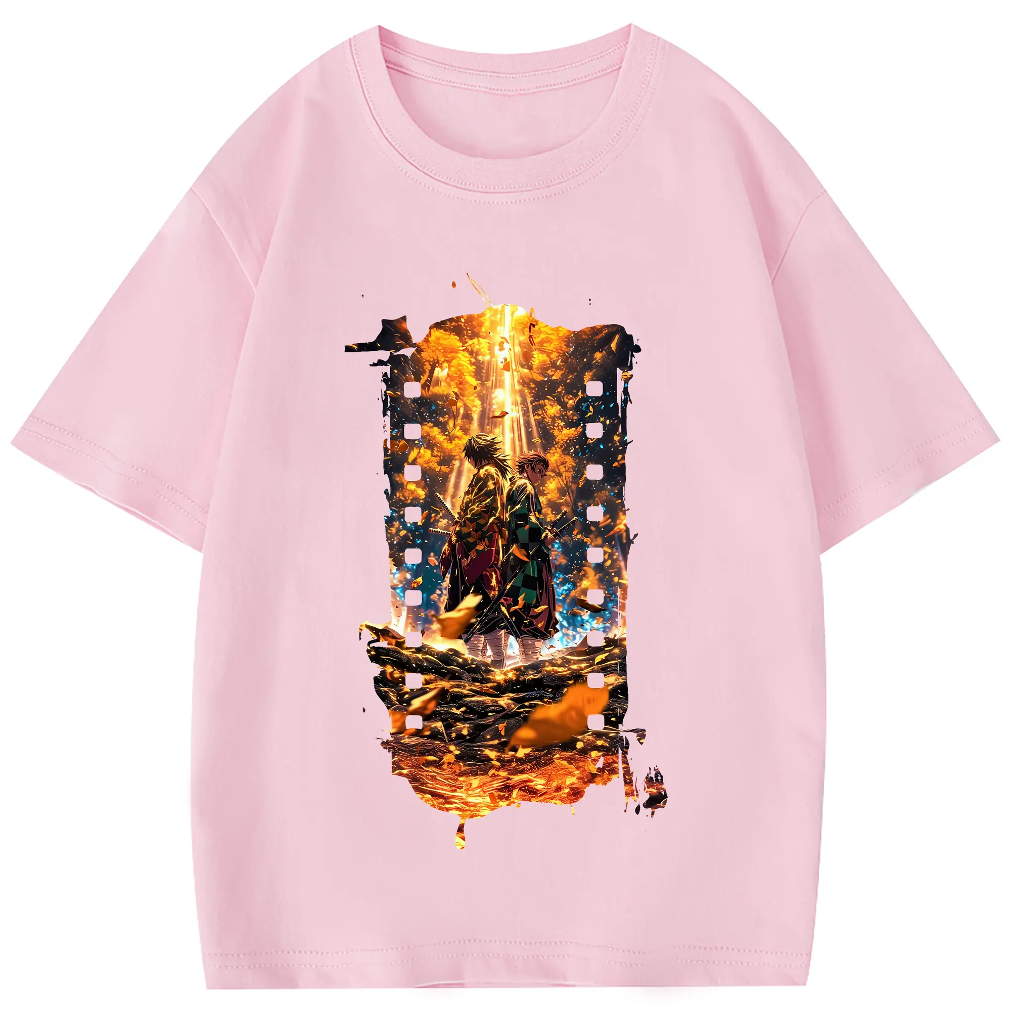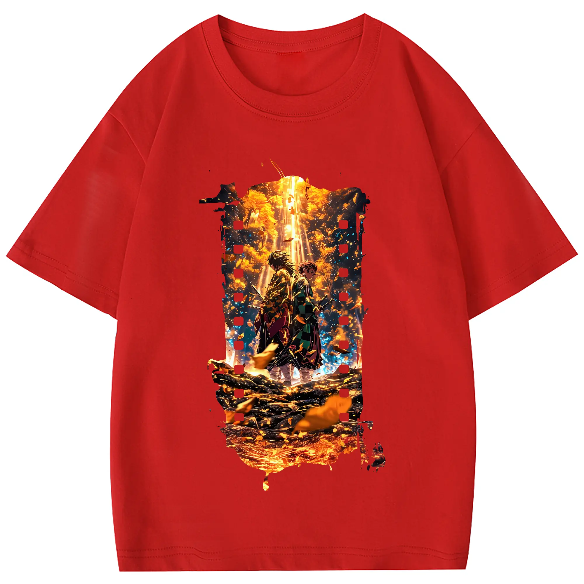 鬼滅の刃 グッズ,竈門 炭治郎 - 綿100% 半袖Tシャツ ・ フロントプリント ・ 快適 通気性 ・ 日常使い 散歩 スポーツ用