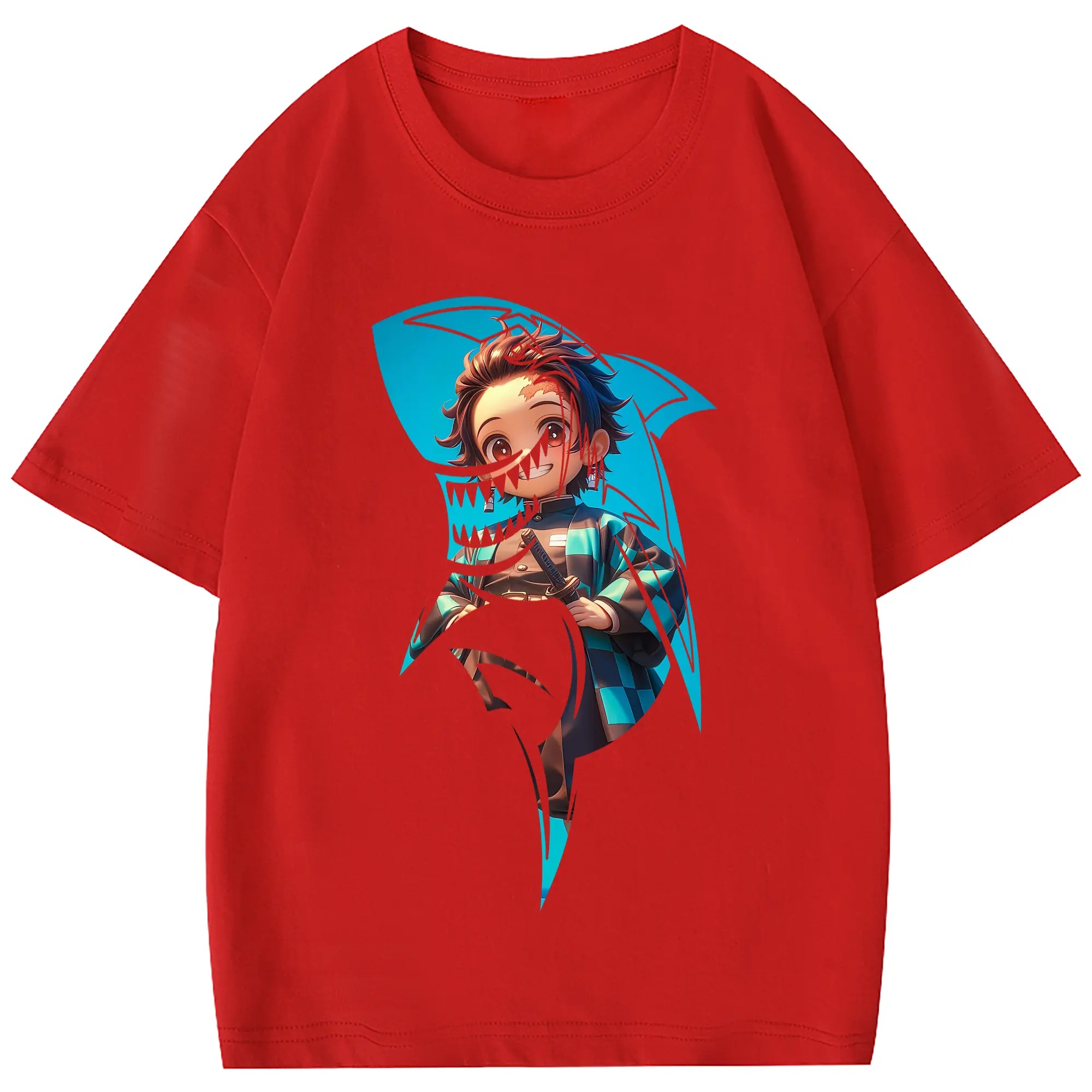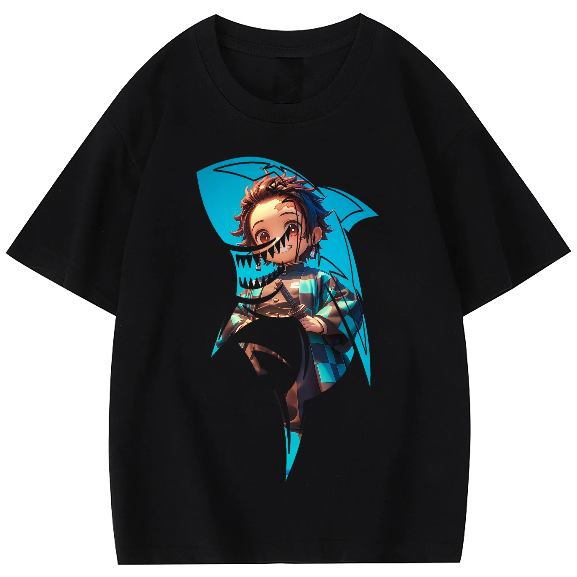 鬼滅の刃 グッズ,竈門 炭治郎 - 綿100% 半袖Tシャツ ・ フロントプリント ・ 快適 通気性 ・ 日常使い 散歩 スポーツ用