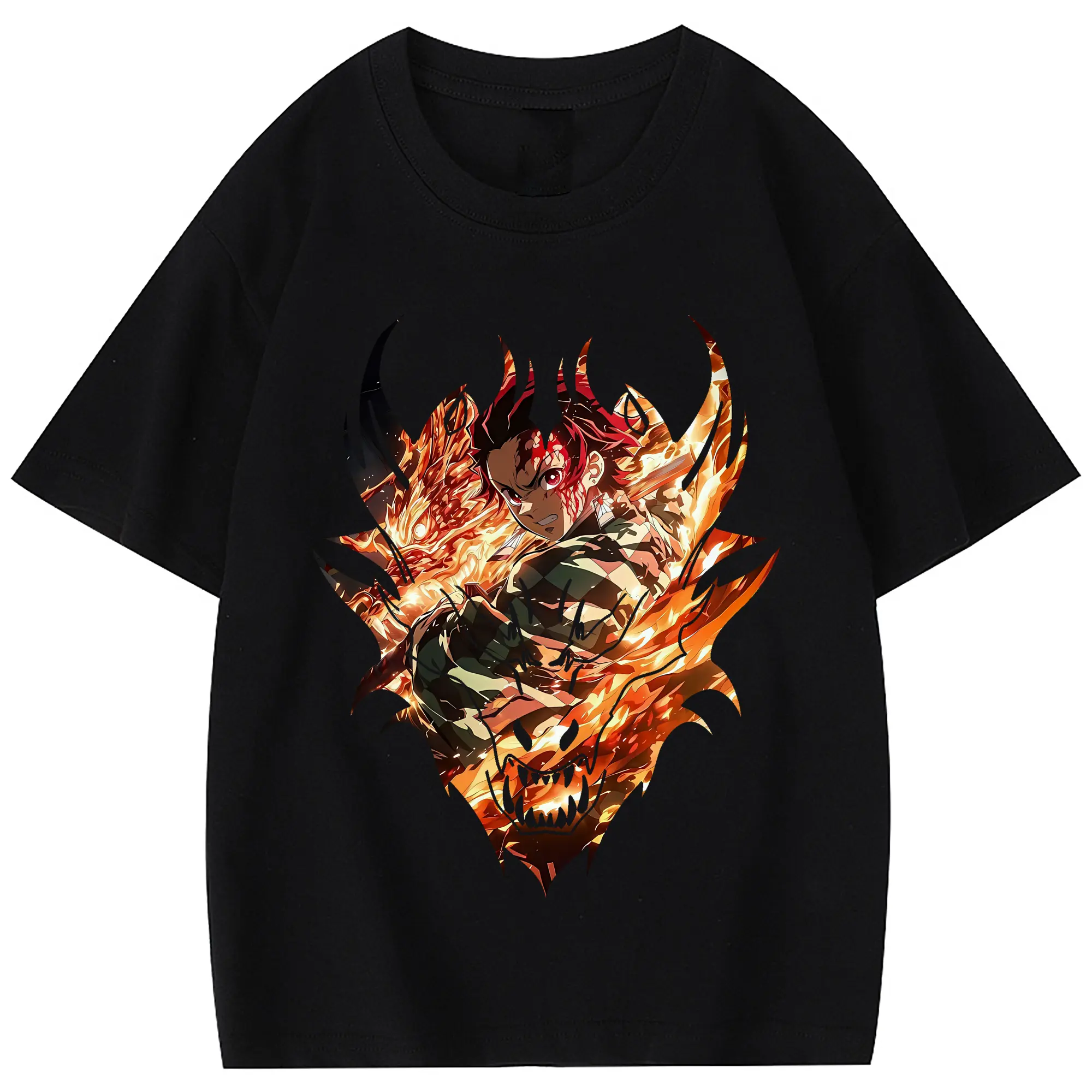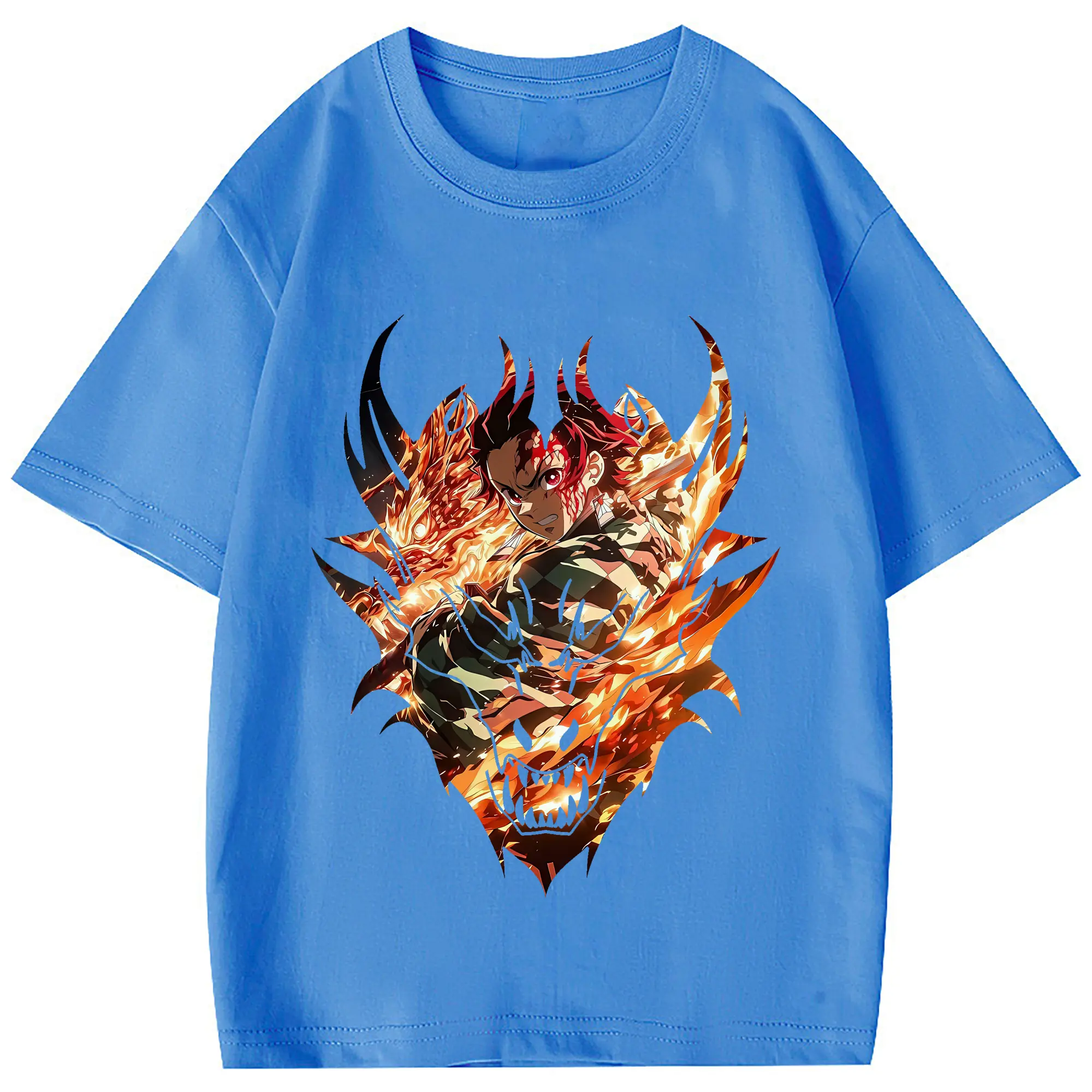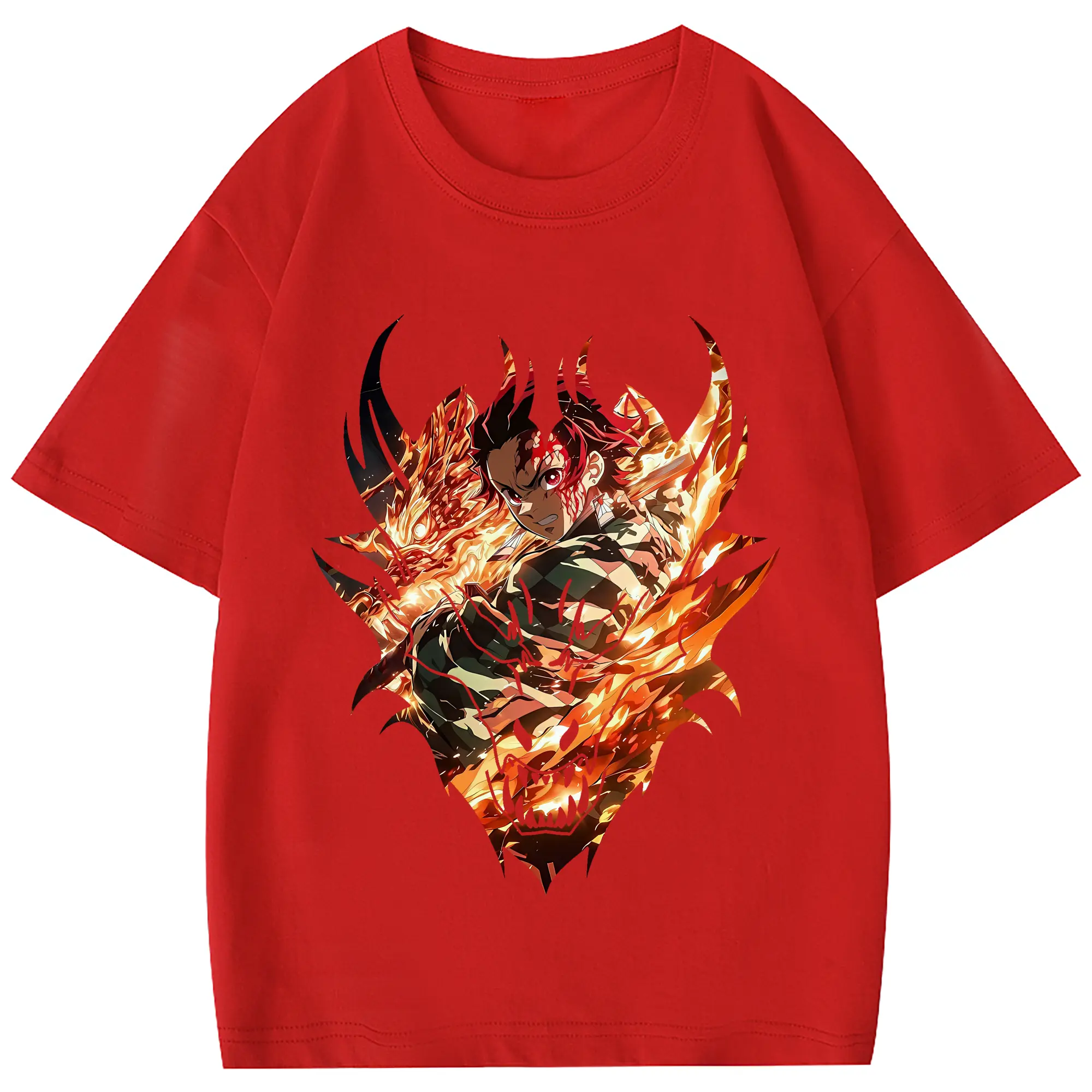 鬼滅の刃 グッズ,竈門 炭治郎 - 綿100% 半袖Tシャツ ・ フロントプリント ・ 快適 通気性 ・ 日常使い 散歩 スポーツ用