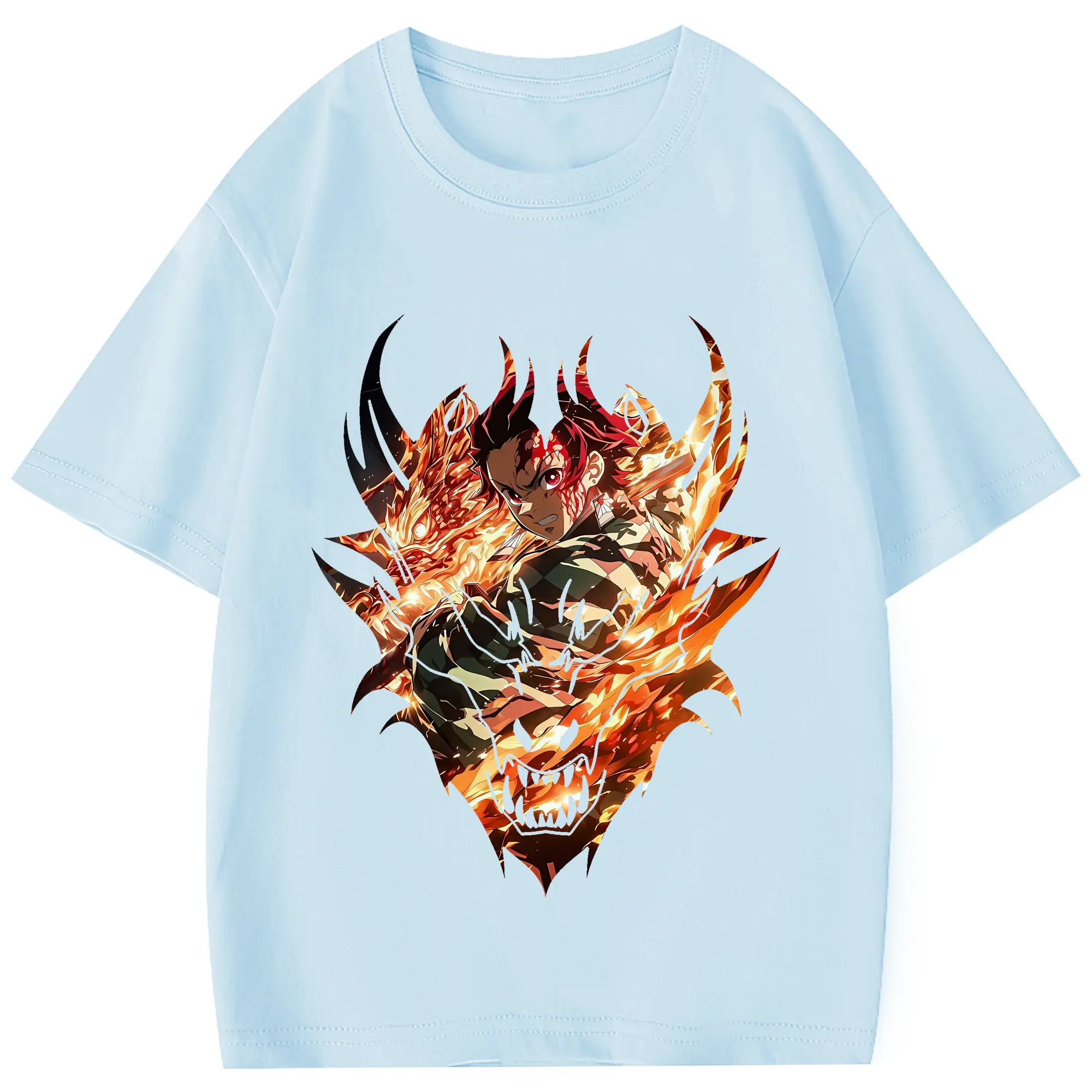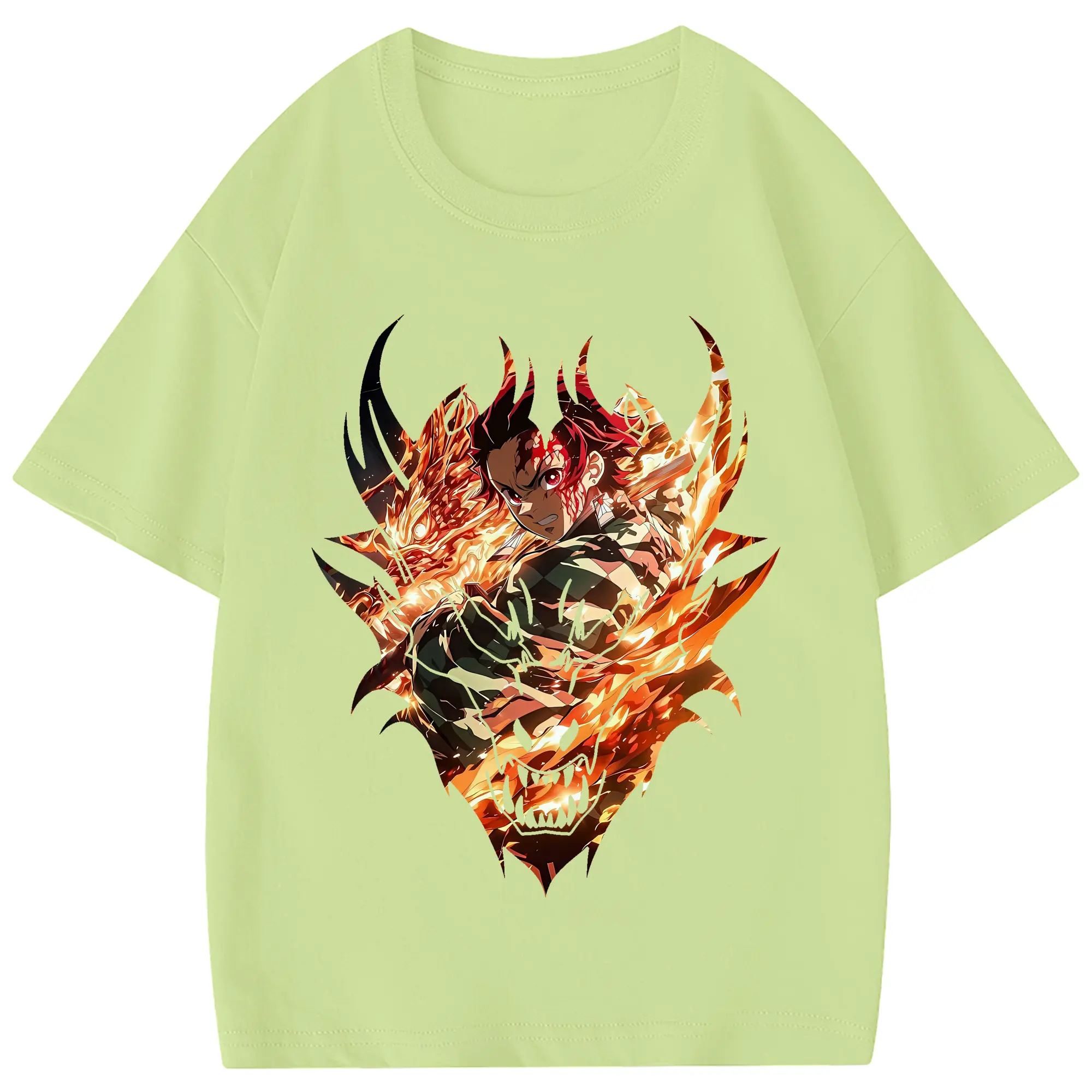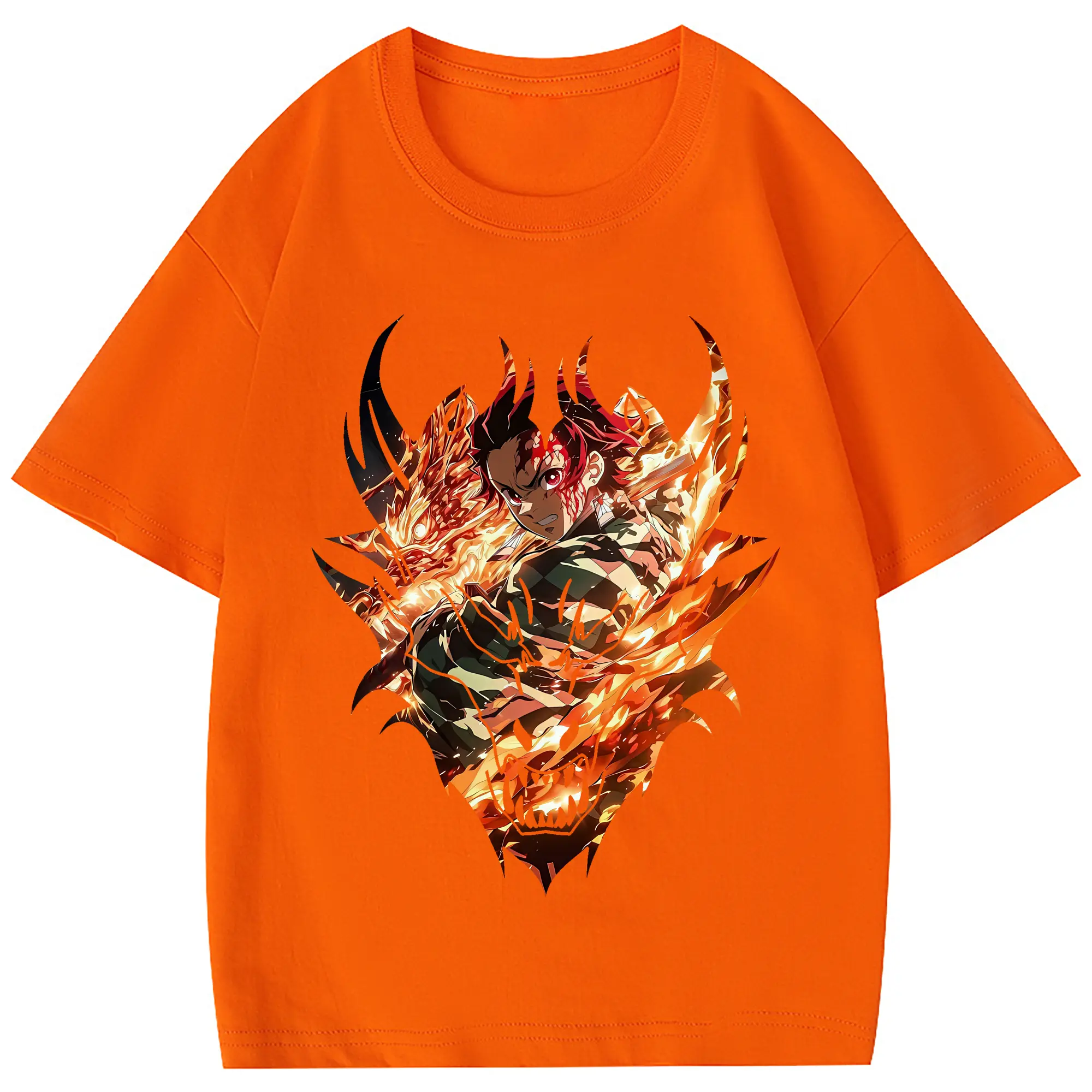 鬼滅の刃 グッズ,竈門 炭治郎 - 綿100% キッズTシャツ ・ フロントプリント ・ 快適 通気性 ・ スポーツ カジュアル 散歩用