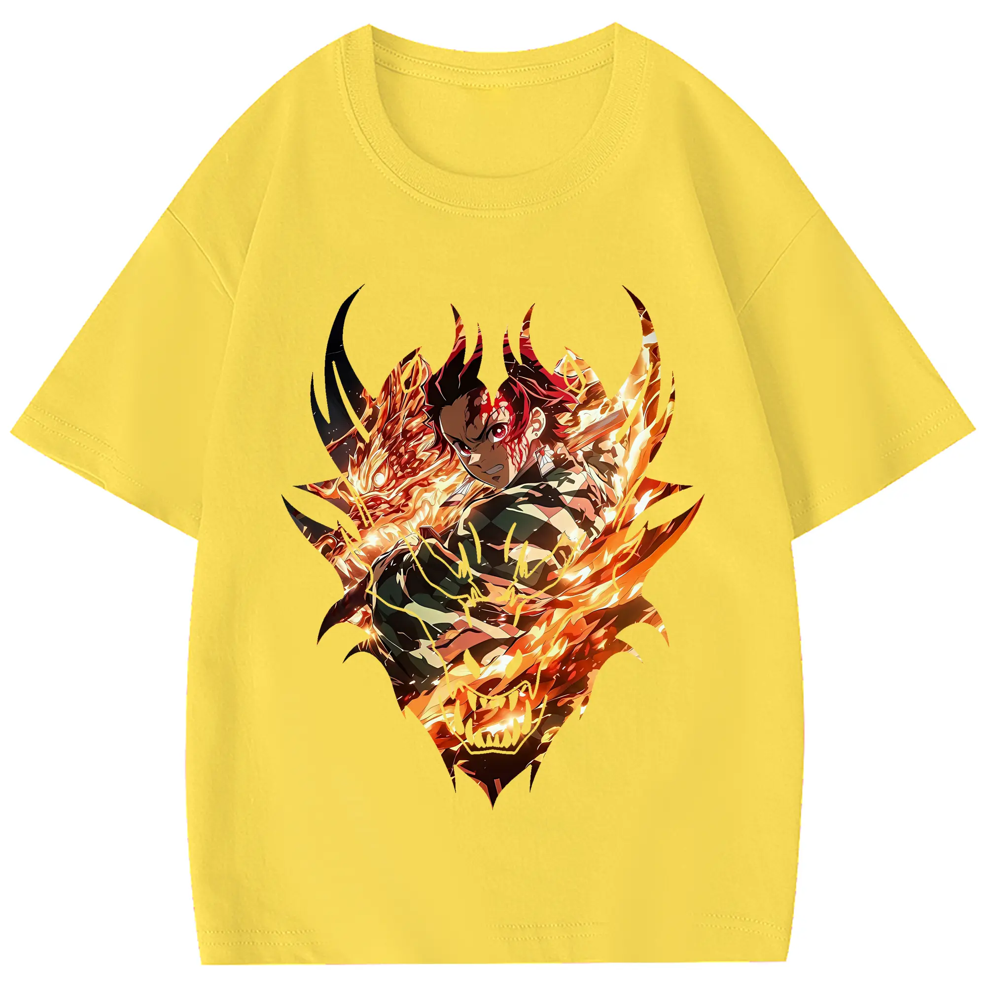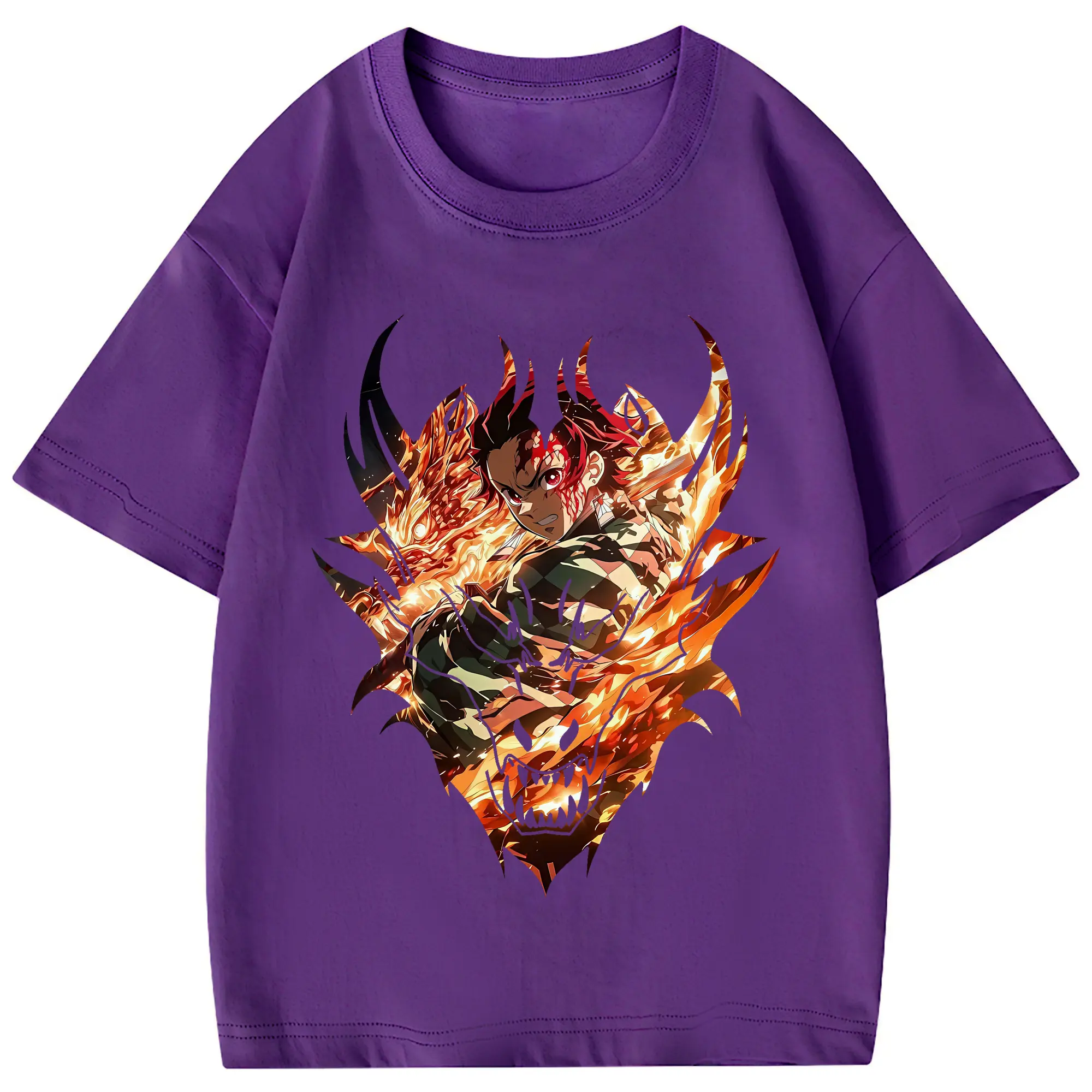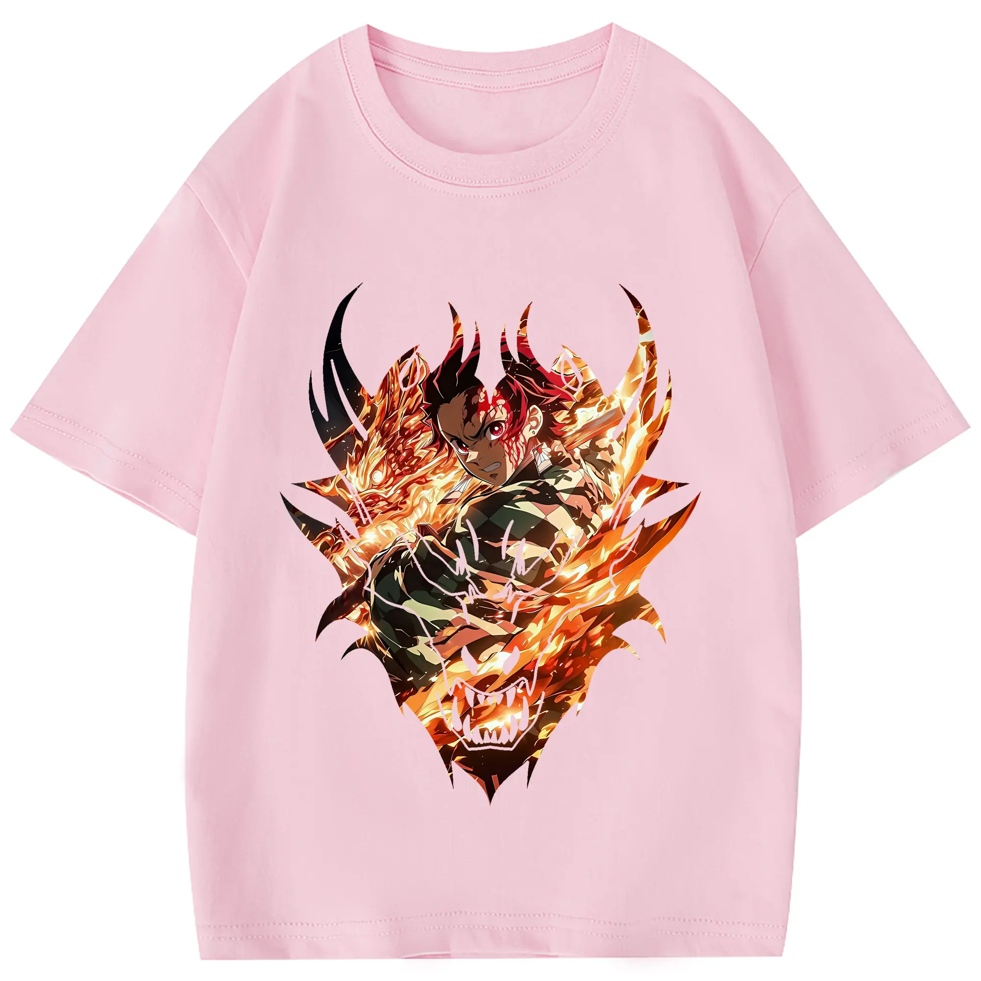 鬼滅の刃 グッズ,竈門 炭治郎 - 綿100% キッズTシャツ ・ フロントプリント ・ 快適 通気性 ・ スポーツ カジュアル 散歩用