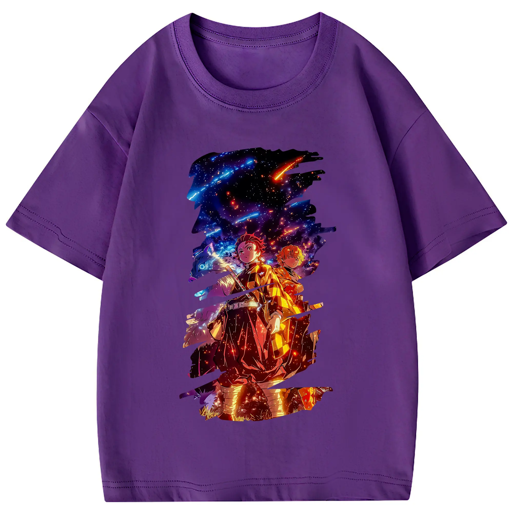 鬼滅の刃 グッズ,竈門 炭治郎 - 綿100% 半袖Tシャツ ・ フロントプリント ・ 快適 通気性 ・ 日常使い 散歩 スポーツ用