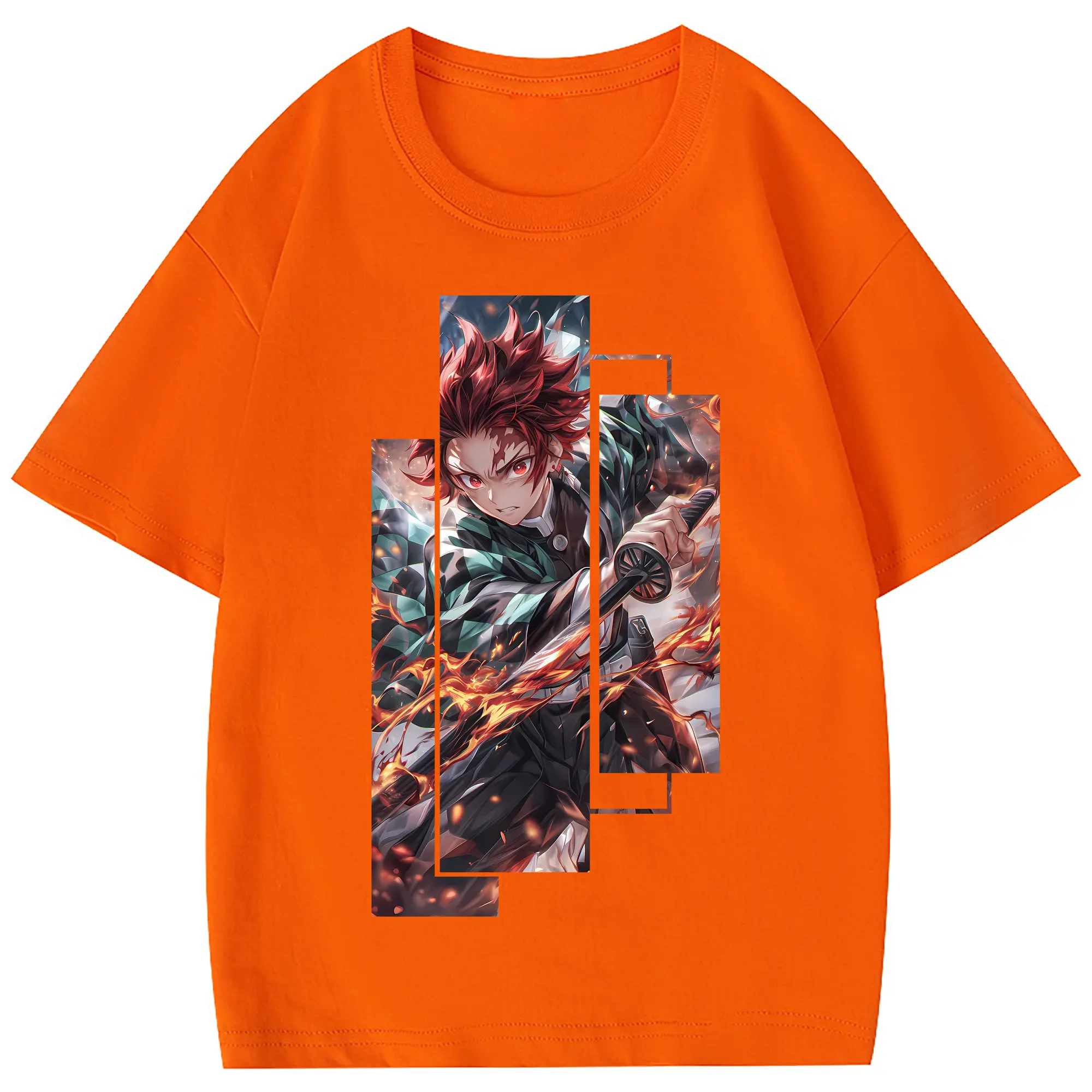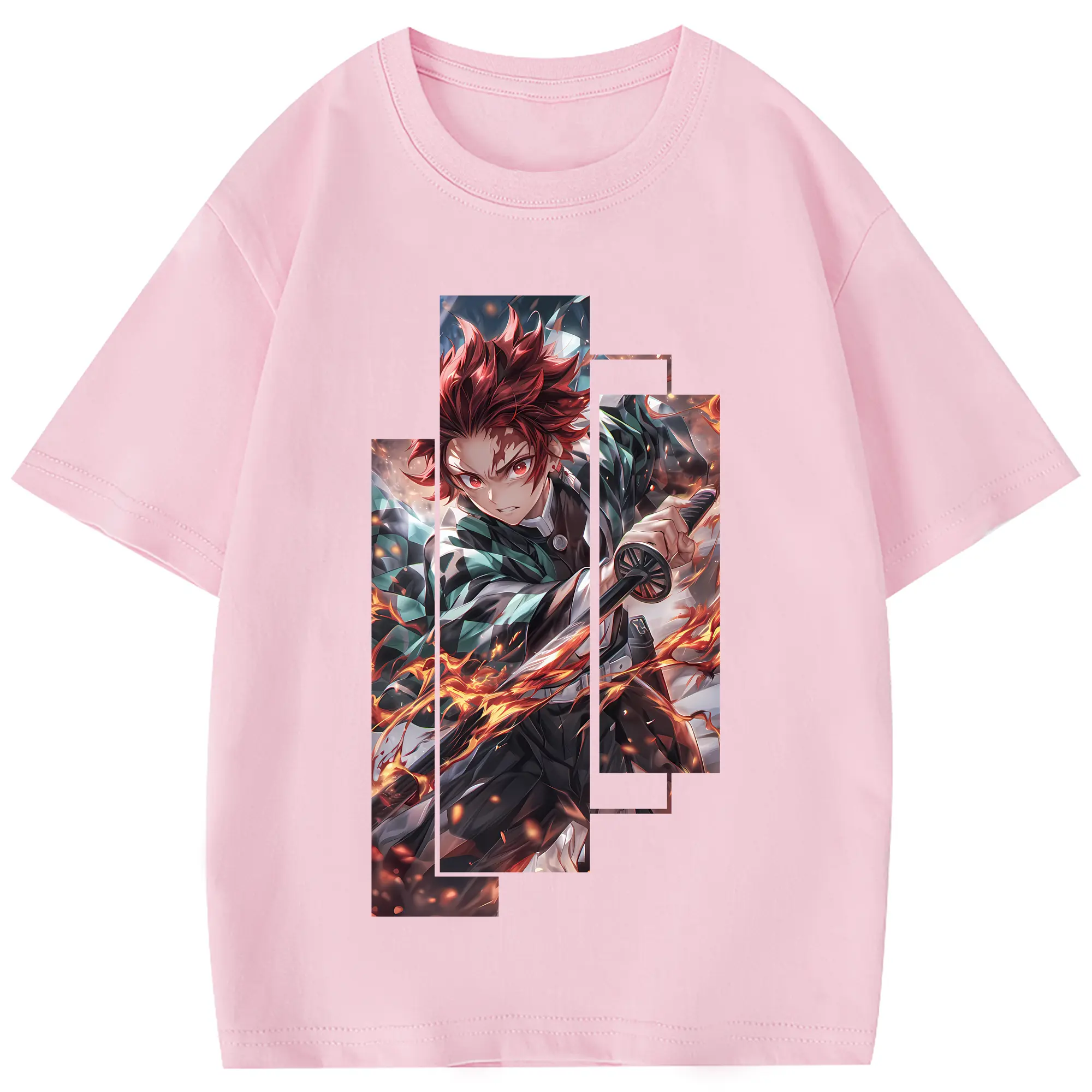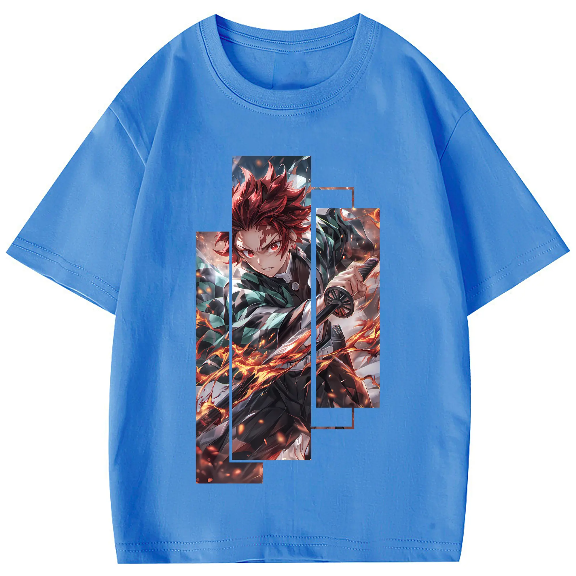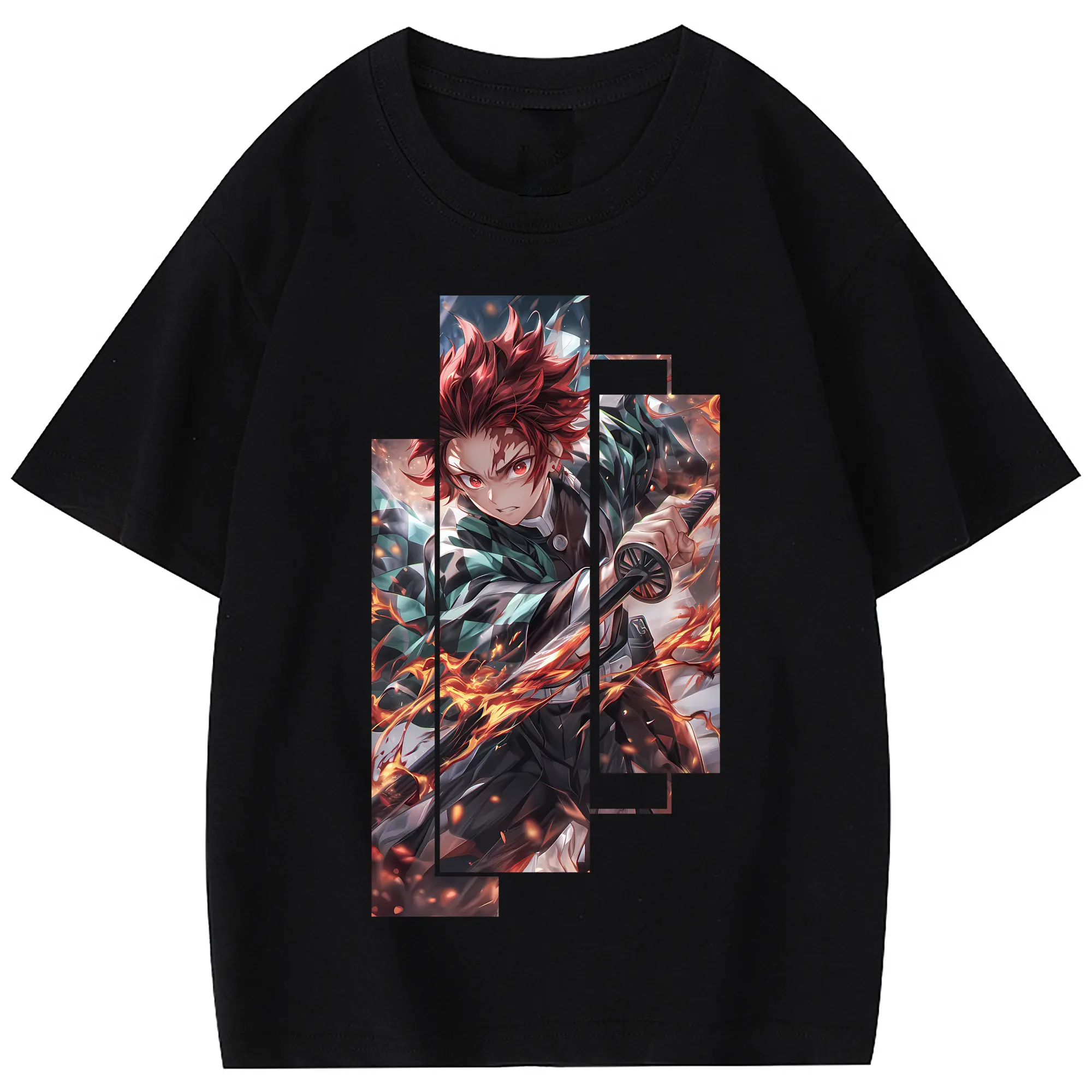 鬼滅の刃 グッズ,竈門 炭治郎 - 綿100% 半袖Tシャツ ・ フロントプリント ・ 快適 通気性 ・ 日常使い 散歩 スポーツ用