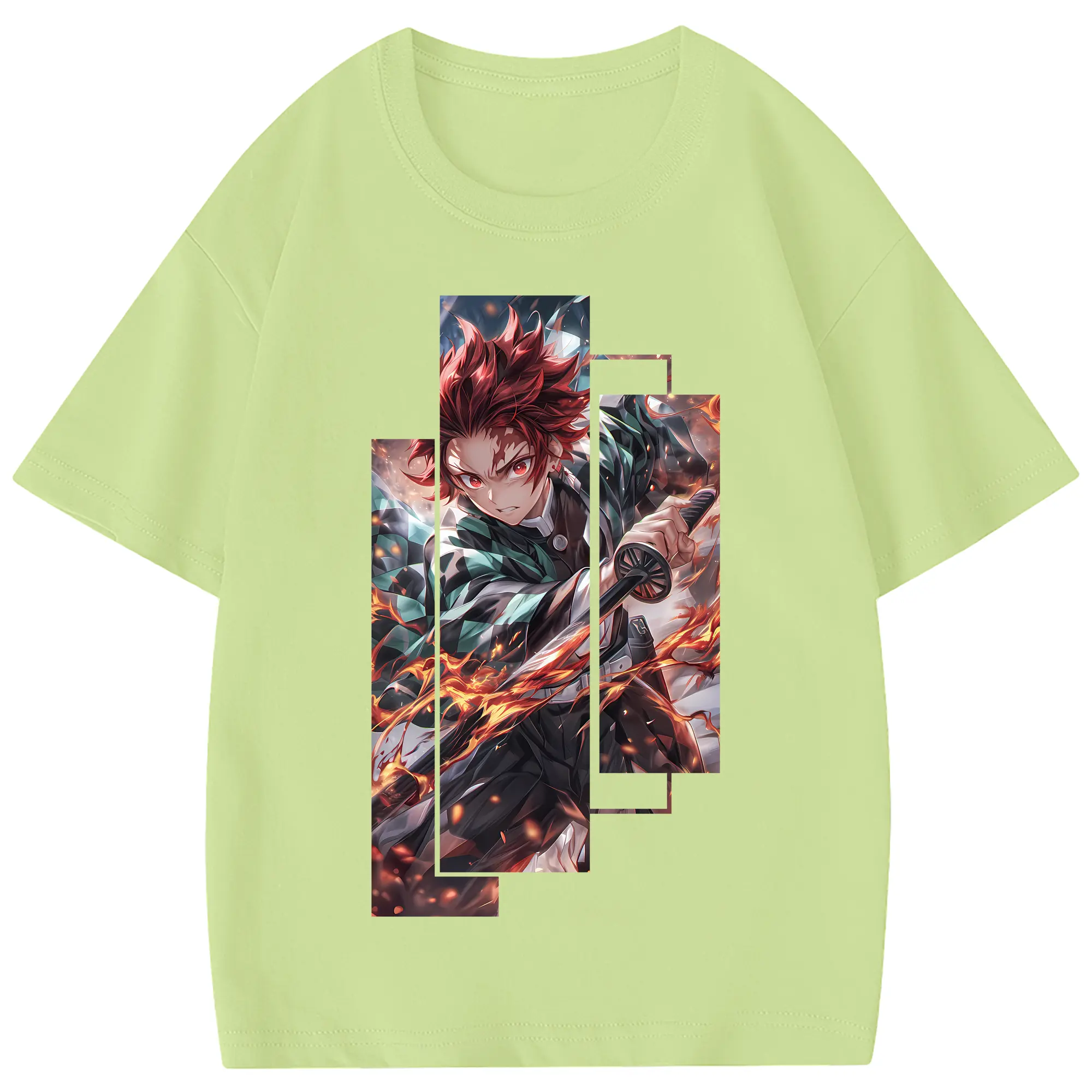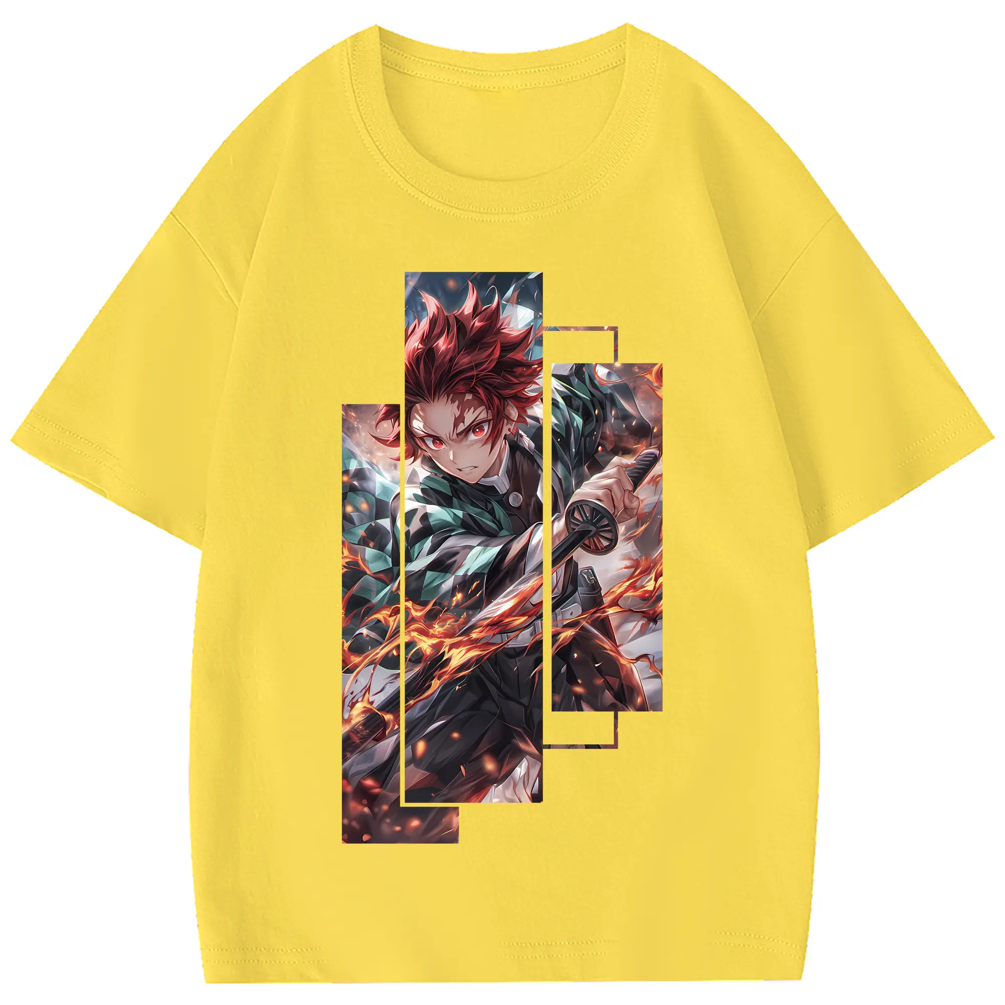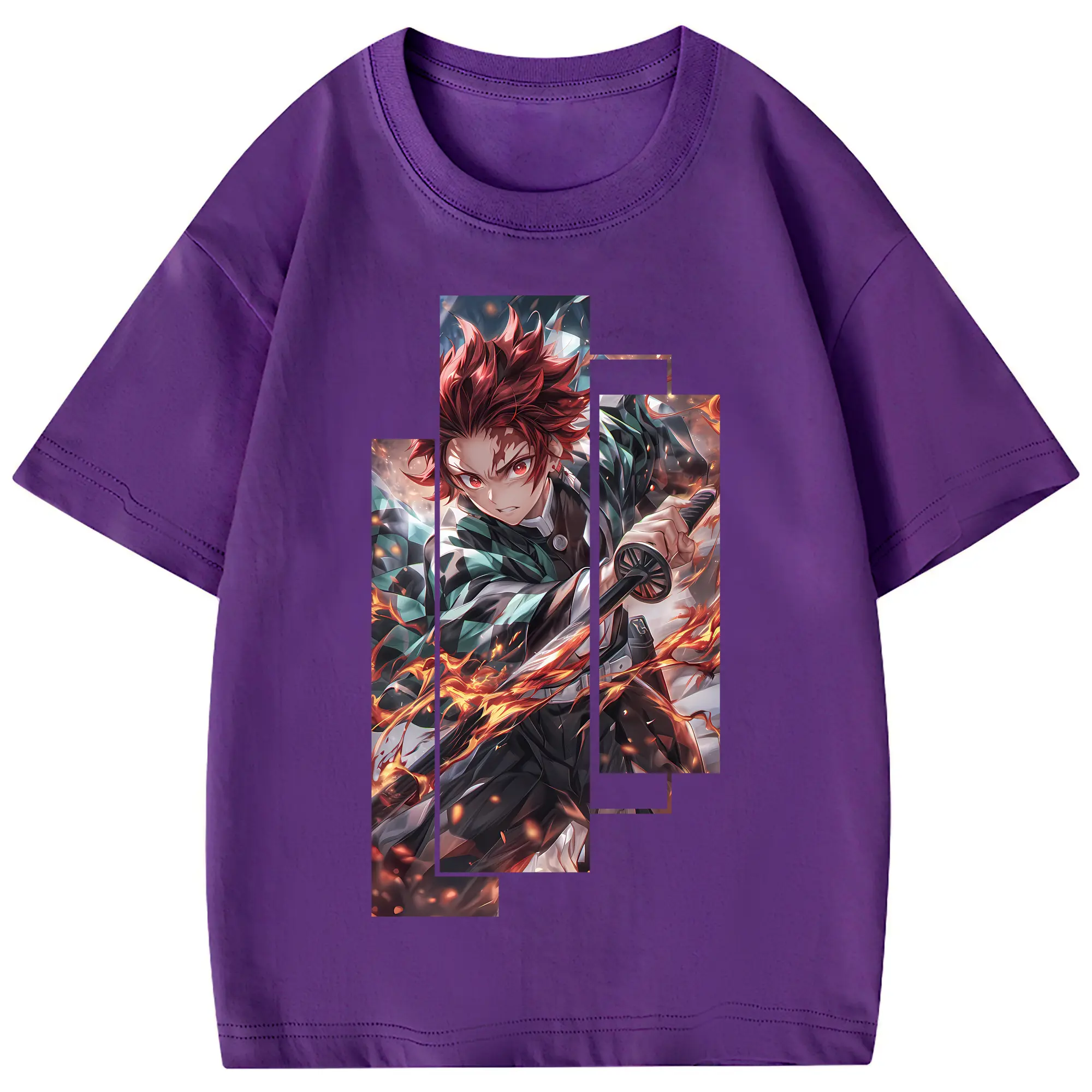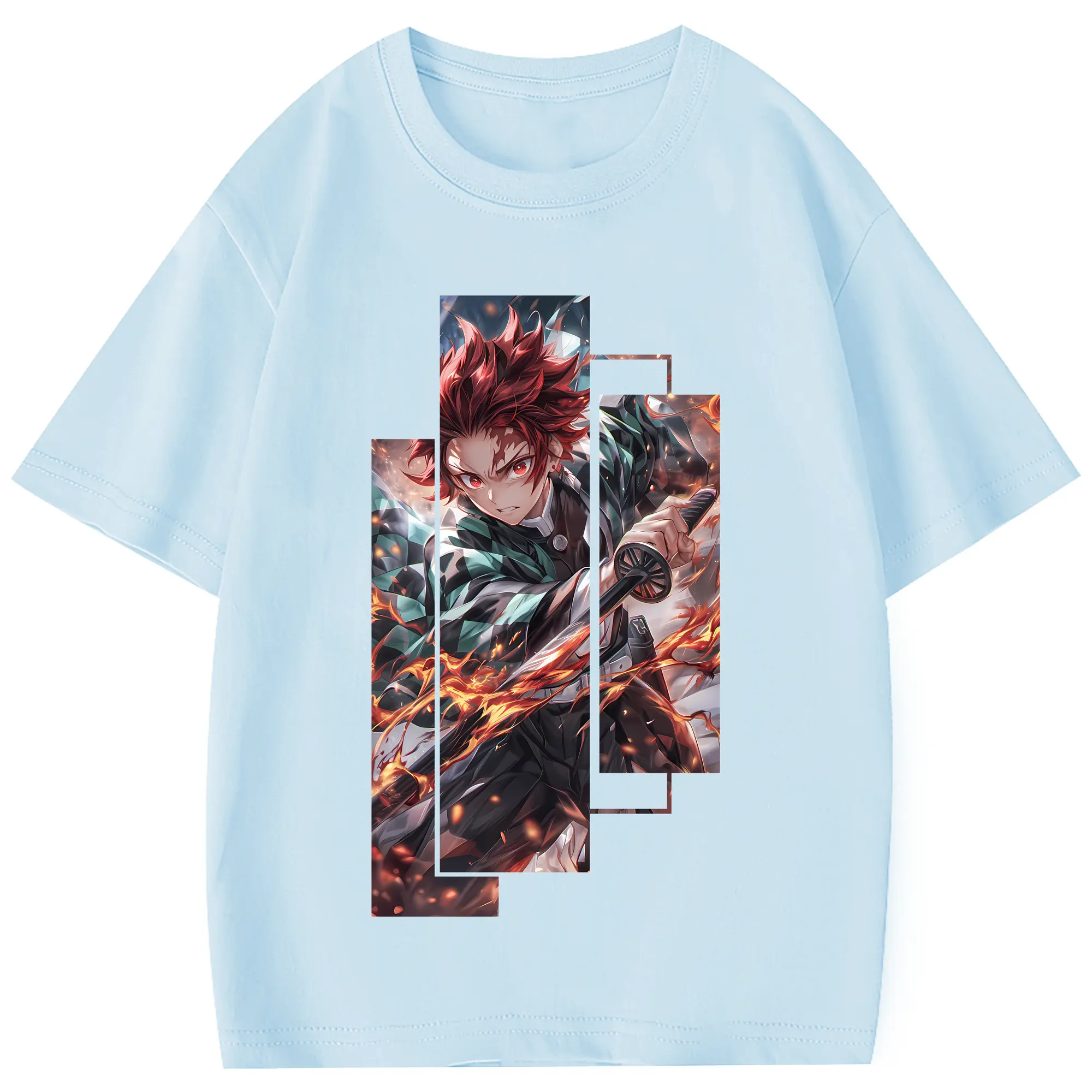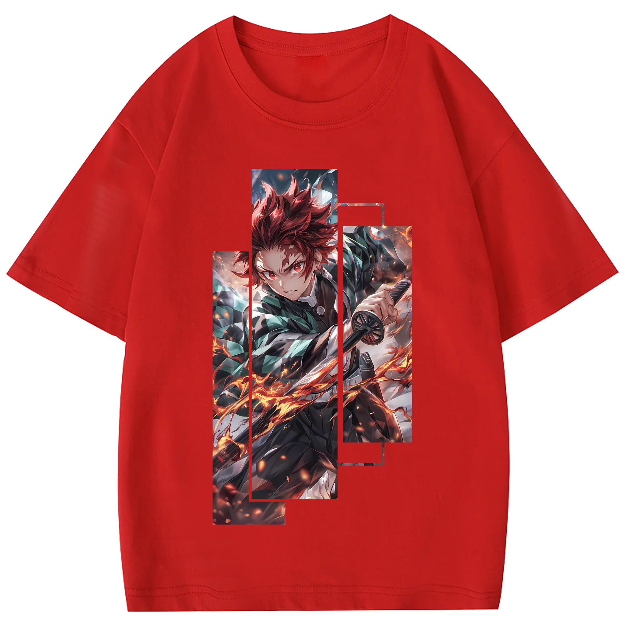 鬼滅の刃 グッズ,竈門 炭治郎 - 綿100% 半袖Tシャツ ・ フロントプリント ・ 快適 通気性 ・ 日常使い 散歩 スポーツ用
