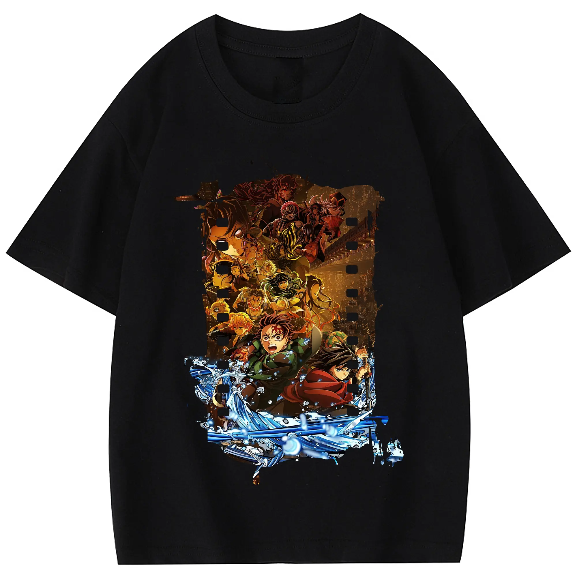 鬼滅の刃 グッズ,竈門 炭治郎 - 綿100% 半袖Tシャツ ・ フロントプリント ・ 快適 通気性 ・ 日常使い 散歩 スポーツ用
