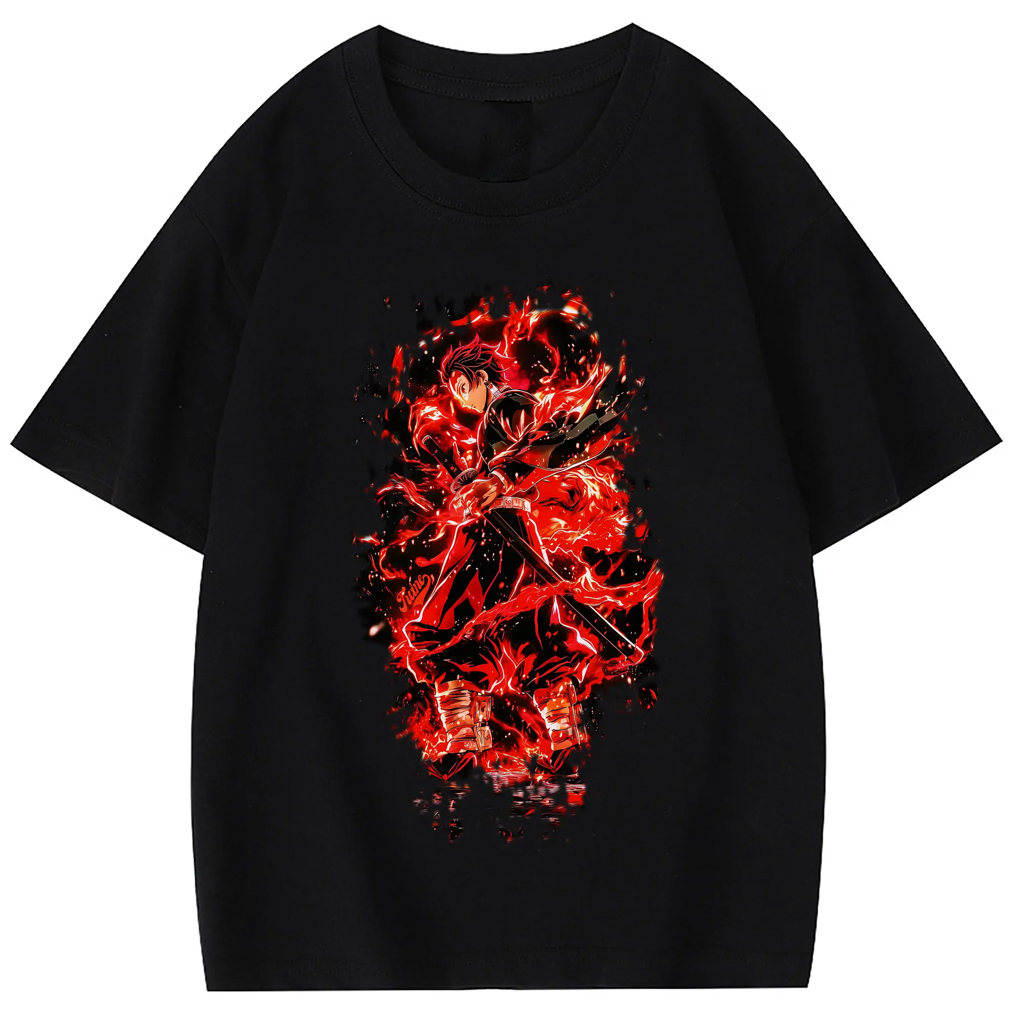 鬼滅の刃 グッズ,竈門 炭治郎 - 綿100% 半袖Tシャツ ・ バックプリント ・ 快適 通気性 ・ 日常使い 散歩 スポーツ用
